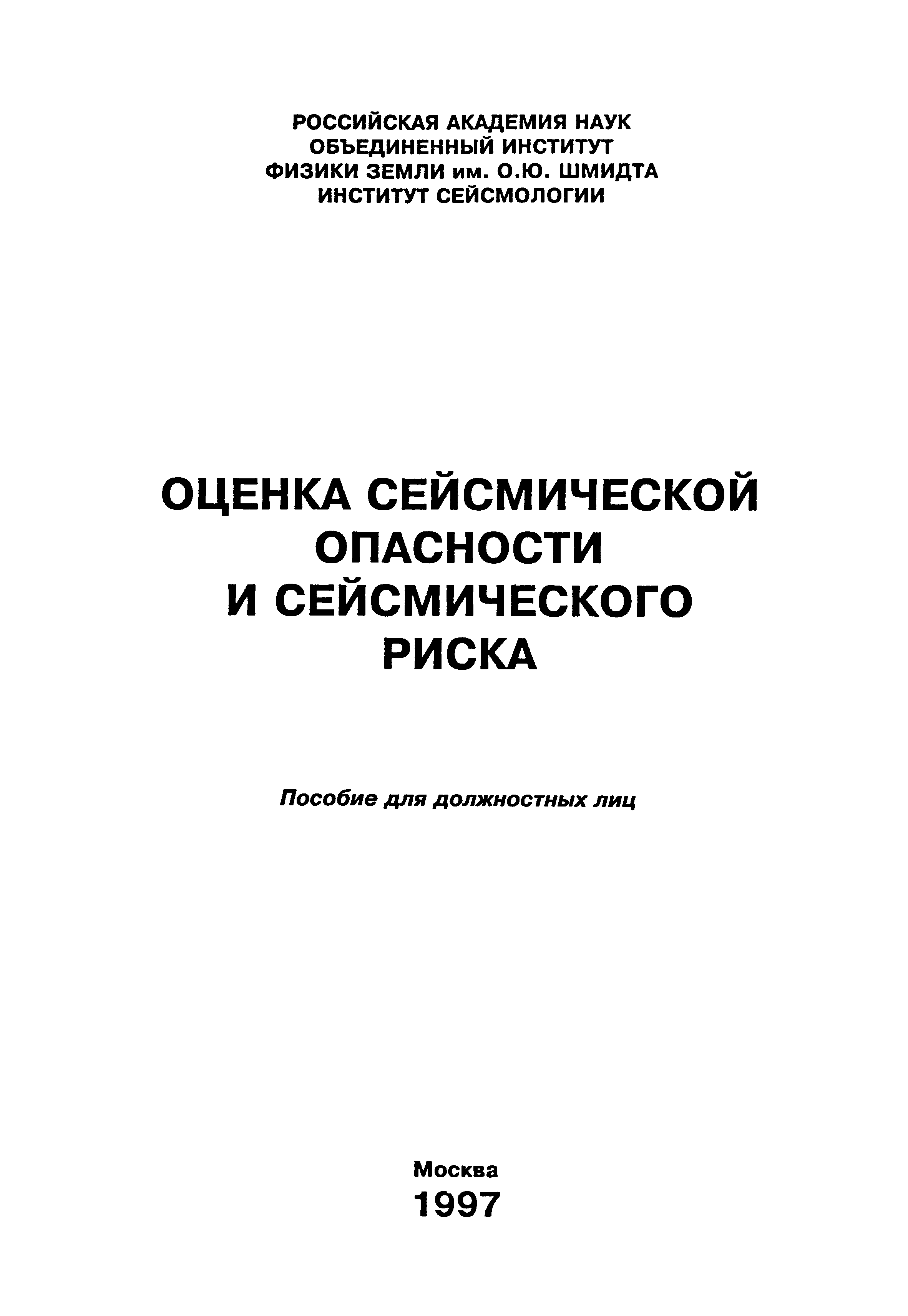 Скачать Оценка сейсмической опасности и сейсмического риска. Пособие для должностных лицДата актуализации: 01.01.2021