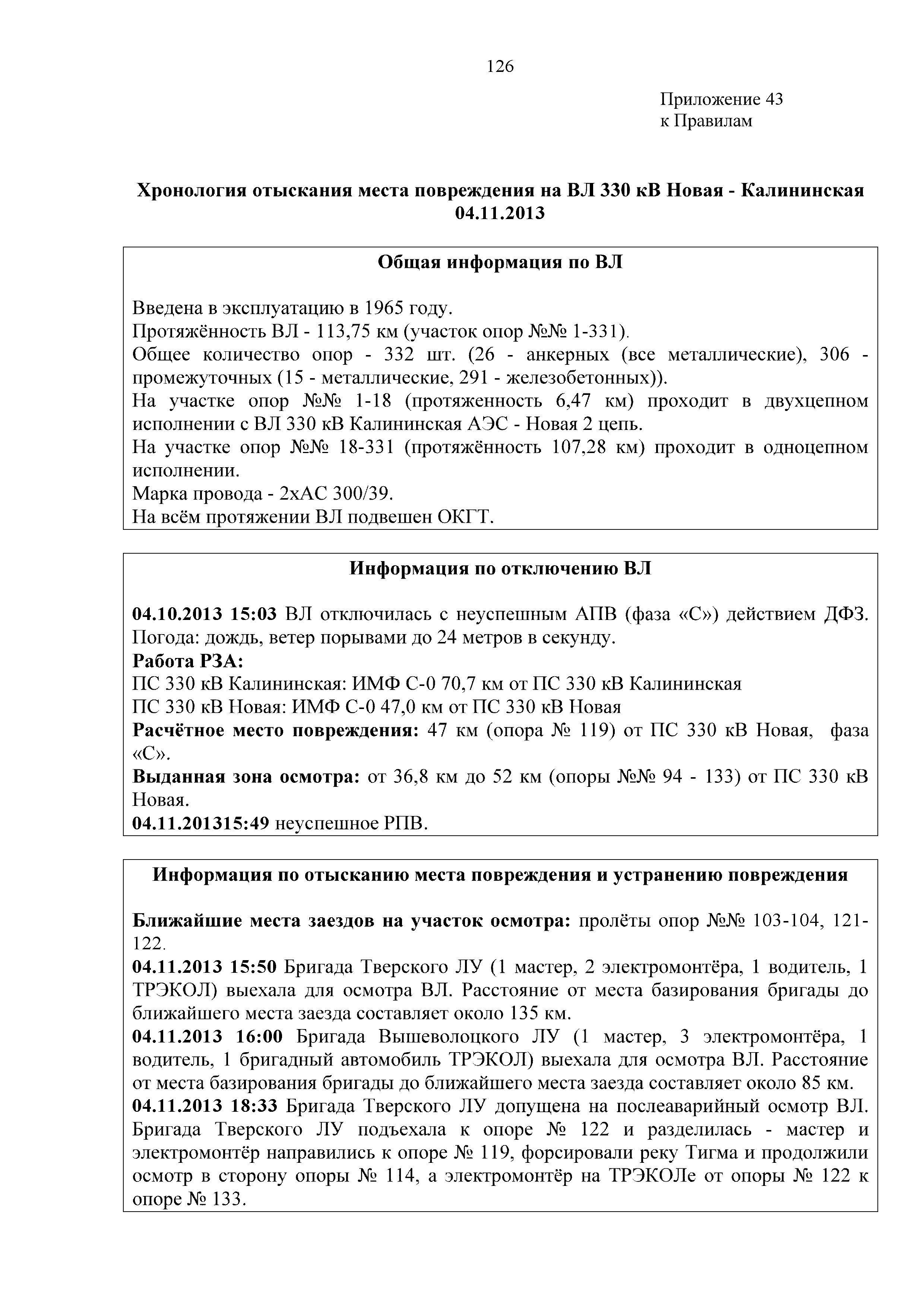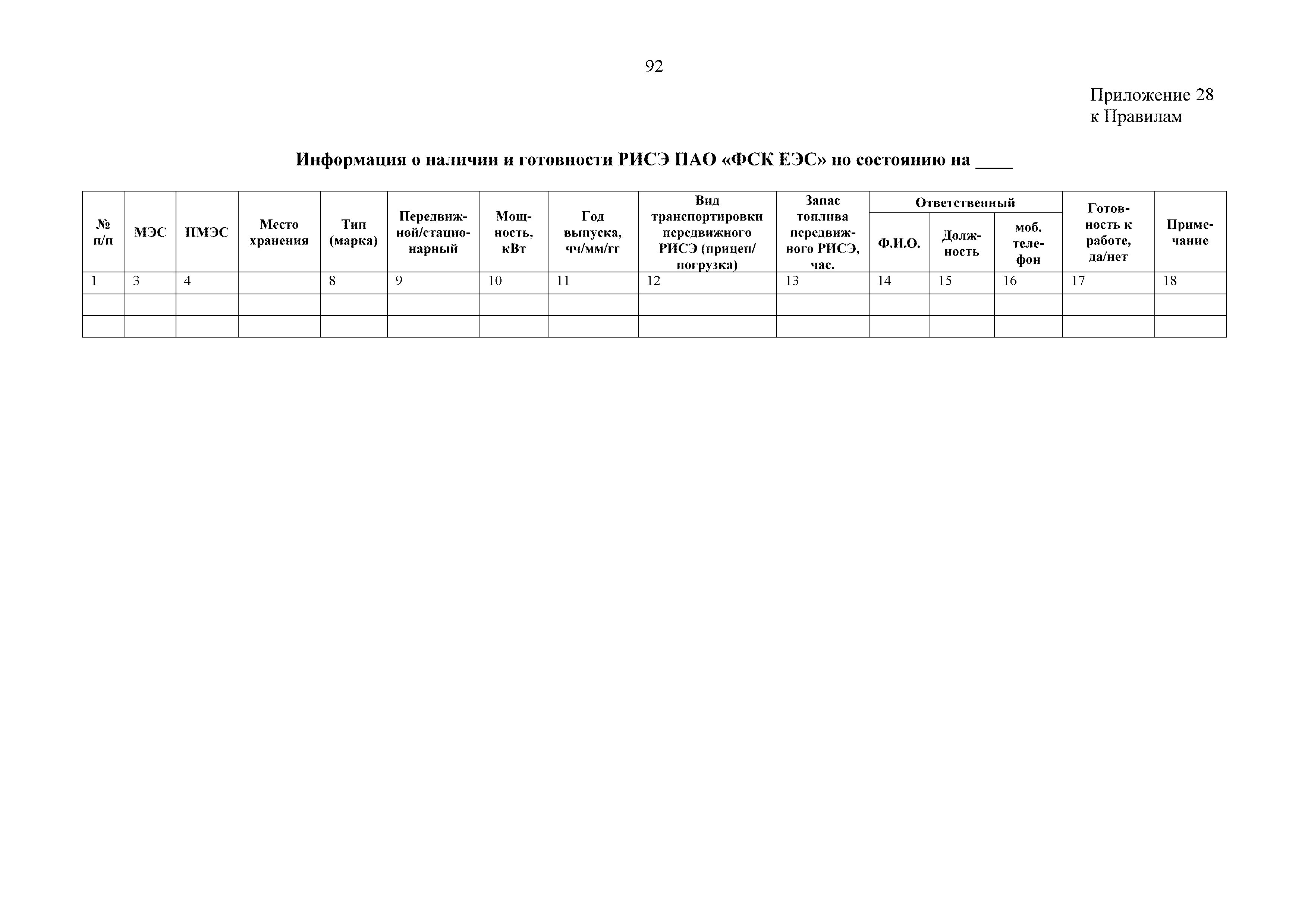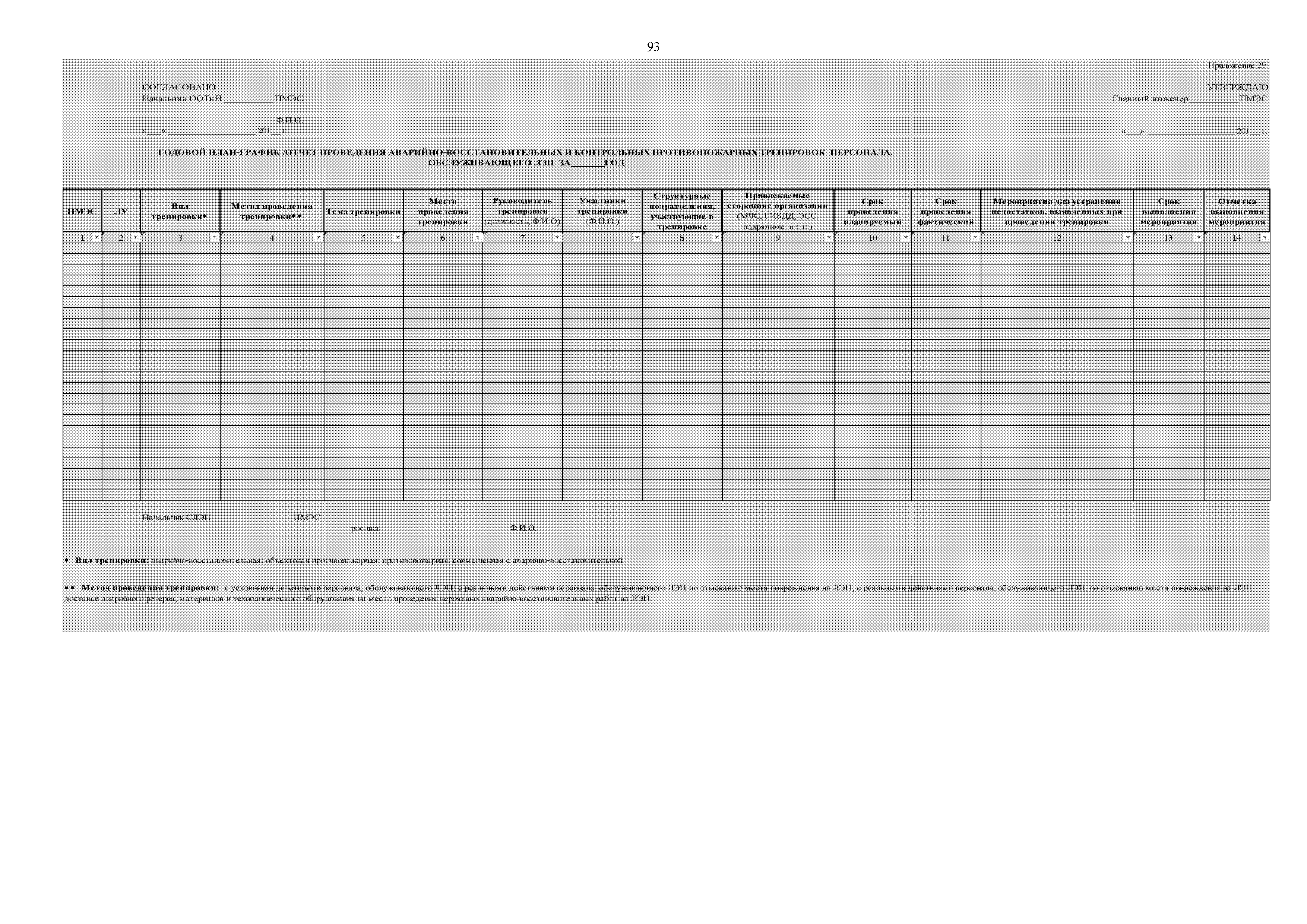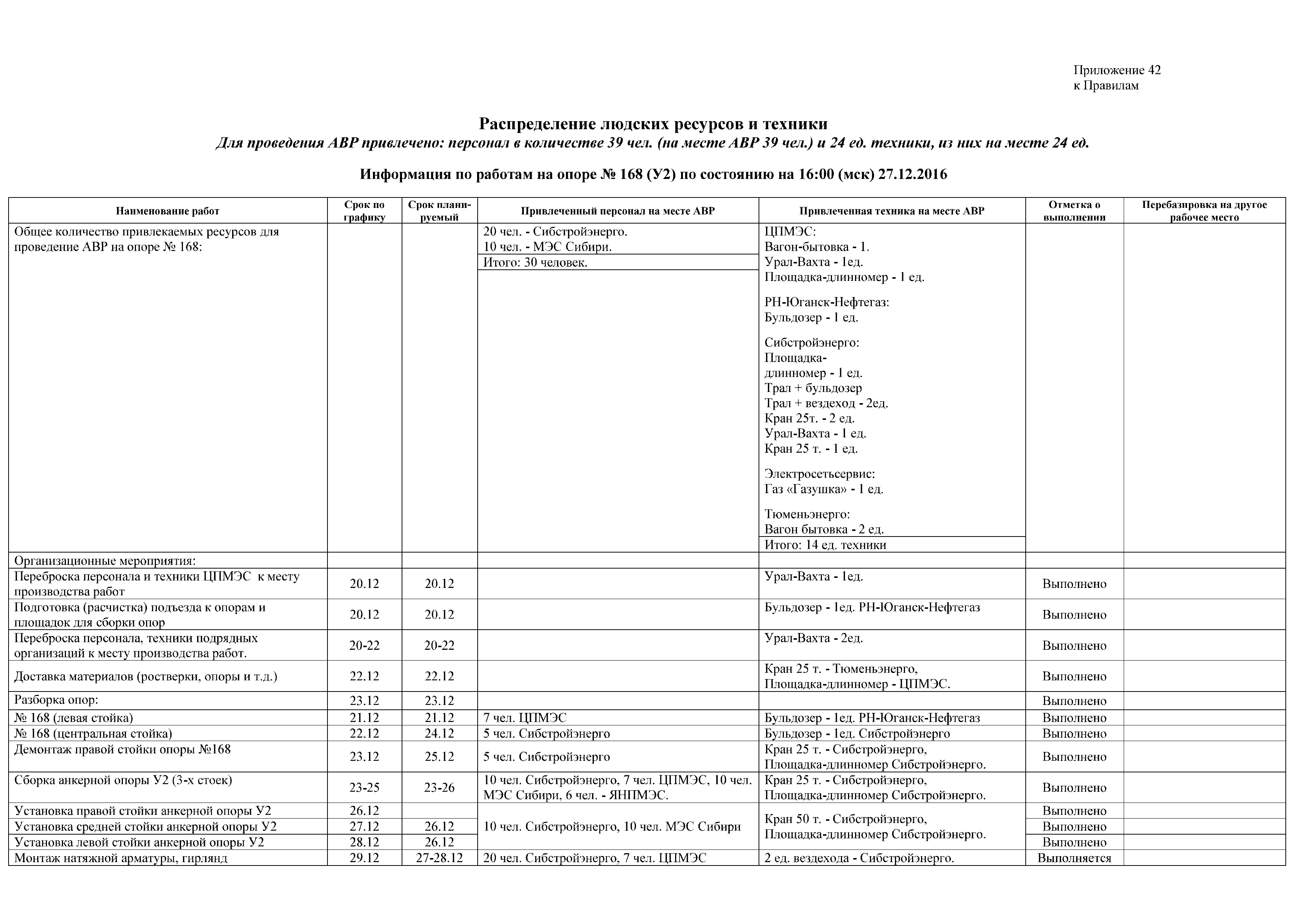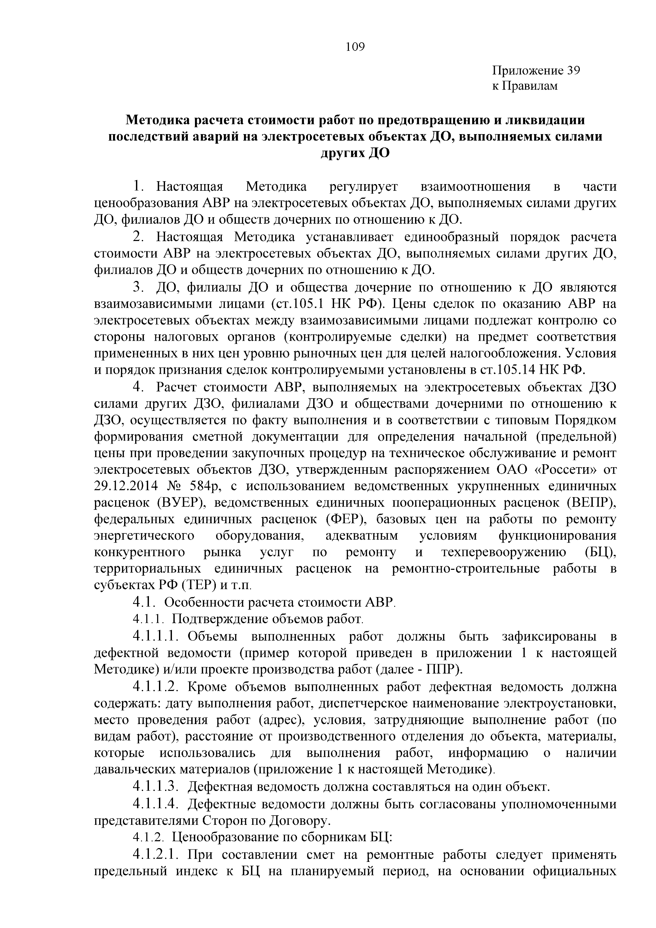| Оглавление: | 1. Аннотация 1.1. Цель разработки документа 1.2. Краткое содержание документа 1.3. Целевой пользователь документа 1.4. Ответственность за разработку документа 2. Термины и определения 3. Общие положения 4. Общие принципы организации и основные этапы выполнения АВР на электросетевых объектах 5. Разработка филиалами ПАО "ФСК ЕЭС" - МЭС документов в области предотвращения и ликвидации аварий 6. Организация управления аварийным резервом ПАО "ФСК ЕЭС" 6.1. Общая часть 6.2. Комплектование аварийного резерва ПАО "ФСК ЕЭС" 6.3. Хранение и содержание аварийного резерва ПАО "ФСК ЕЭС" 6.4. Текущий контроль состояния АР 6.5. Использование аварийного резерва ПАО "ФСК ЕЭС" при выполнении АВР и работ, направленных на предупреждение аварийных ситуаций 6.6. Восполнение аварийного резерва ПАО "ФСК ЕЭС" 6.7. Ротация оборудования и материалов аварийного резерва ПАО "ФСК ЕЭС" 6.8. Учет оборудования и материалов аварийного резерва 6.9. Истечение срока хранения оборудования и материалов АР 7. Применение РИСЭ ПАО "ФСК ЕЭС" 7.1. Порядок формирования парка РИСЭ 7.2. Порядок учета РИСЭ и ведения необходимой документации 7.3. Приемка РИСЭ в эксплуатацию 7.4. Требования к хранению и содержанию РИСЭ 7.5. Порядок применения РИСЭ при нарушениях электроснабжения 7.6. Порядок учета работы РИСЭ 7.7. Порядок представления РИСЭ другим субъектам электроэнергетики во временное пользование 8. Организация учений и тренировок по отработке взаимодействия при ликвидации аварийных ситуаций в электросетевом комплексе 9. Организация АВР на электросетевых объектах ПАО "ФСК ЕЭС" 9.1. Действия при возникновении и обнаружении мест аварийных повреждений электросетевого оборудования 9.2. Особенности организации и проведения послеаварийных осмотров ВЛ, КВЛ с расчетным местом повреждения в пределах воздушного участка КВЛ с успешным АПВ или РПВ 9.3. Действия при ликвидации аварийных повреждений на электросетевых объектах ПАО "ФСК ЕЭС" 9.4. Действия при ликвидации аварийных повреждений ОАО "Электросетьсервис ЕНЭС" или внешним подрядчиком 9.5. Требования к сдаче-приемке объекта после аварийно-восстановительных работ 9.6. Порядок привлечения сил и средств филиалов ПАО "ФСК ЕЭС" - МЭС для ликвидации аварийных повреждений на объектах электросетевых компаний, функционирующих на одноименных территориях 10. Организационные мероприятия по ликвидации массовых отключений электросетевых объектов Приложение 1. Предельные сроки выполнения мероприятий по организации АВР Приложение 2. Порядок и сроки представления документации в ПАО "ФСК ЕЭС" и ПАО "Россети" Приложение 3. Информация о привлечении к АВР дополнительных сил и средств (других ДО ПАО "Россети", подрядных организаций), а также информации о выполнении АВР собственными силами на электросетевых объектах иных собственников (кроме ДО ПАО "Россети") в рамках оказания содействия в проведении АВР Приложение 4. Информация о зонах покрытия радиотелефонной связи стандарта GSM и спутниковой связи МЭС Приложение 5. Наличие, распределение и состояние автотранспортных средств и механизмов филиала ПАО "ФСК ЕЭС" - МЭС Приложение 6. Информация о наличии и местах размещения ММПС филиала ПАО "ФСК ЕЭС" - МЭС Приложение 7. Сетевой график на проведение аварийно-востановительных работ по замене промежуточной (или анкерной) опоры на ВЛ Приложение 8. Сетевой график на проведение ава