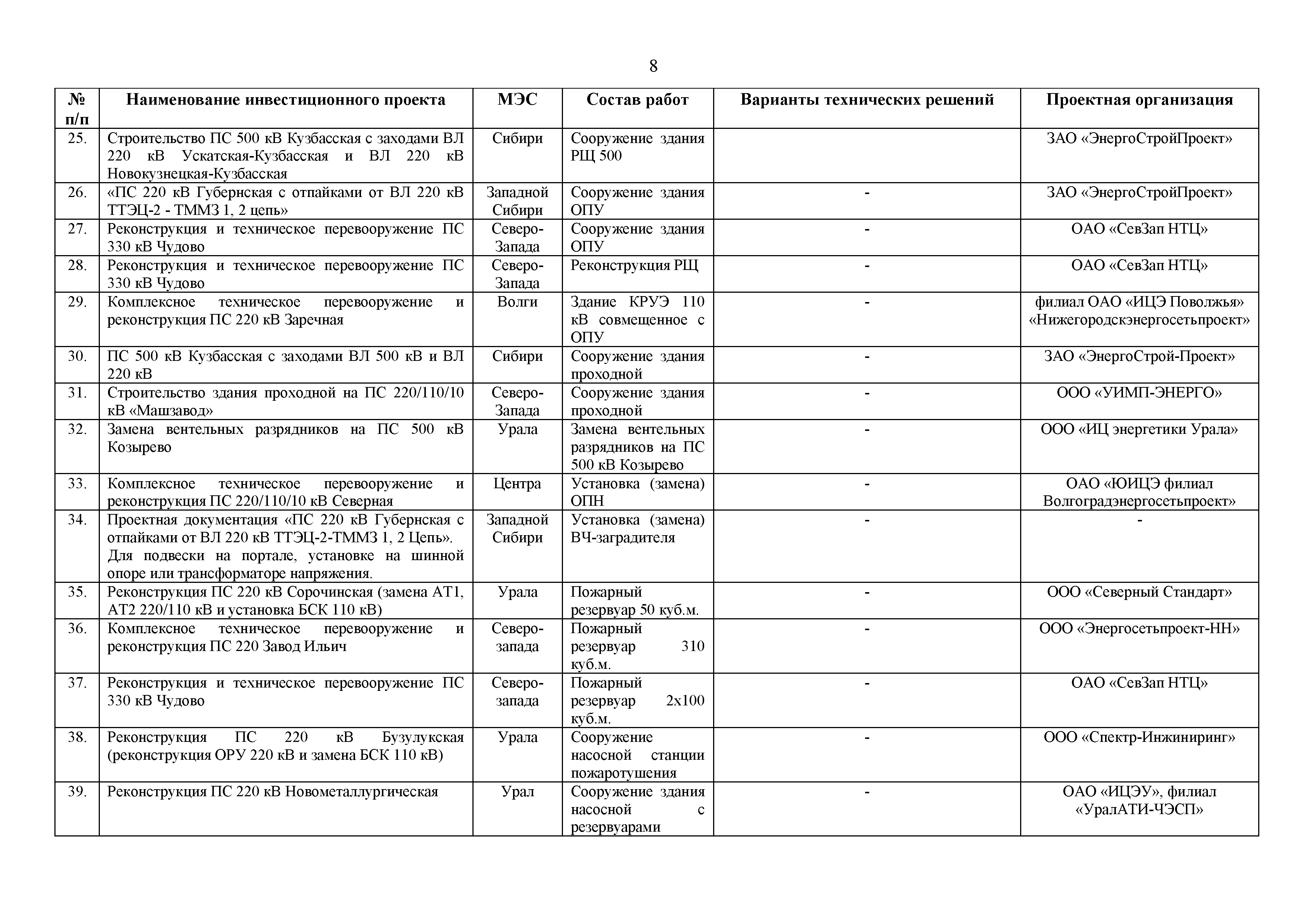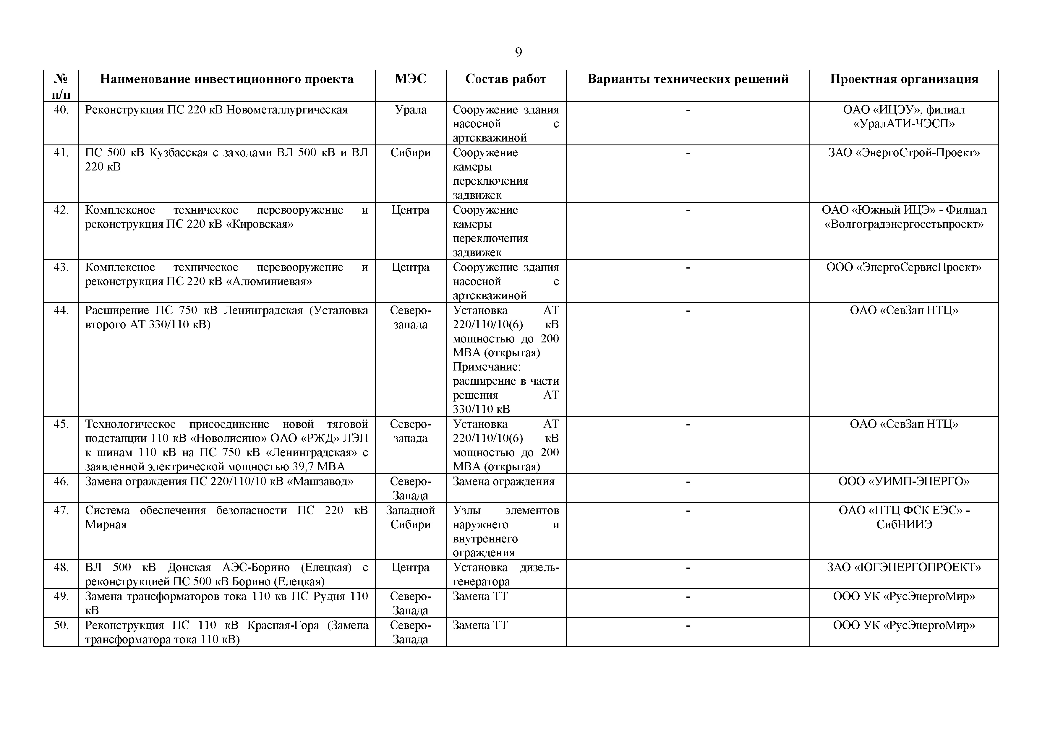 Перечень инвестиционных проектов, по которым разработанная и апробированная проектная документация рекомендуется к применению при проектировании объектов электросетевого хозяйства ПАО "ФСК ЕЭС"| Статус: | действует | | Название рус.: | Перечень инвестиционных проектов, по которым разработанная и апробированная проектная документация рекомендуется к применению при проектировании объектов электросетевого хозяйства ПАО "ФСК ЕЭС" | | Дата добавления в базу: | 01.01.2019 | | Дата актуализации: | 01.01.2021 | | Дата введения: | 23.09.2014 | | Утверждён: | 23.09.2014 ОАО ФСК ЕЭС (413)