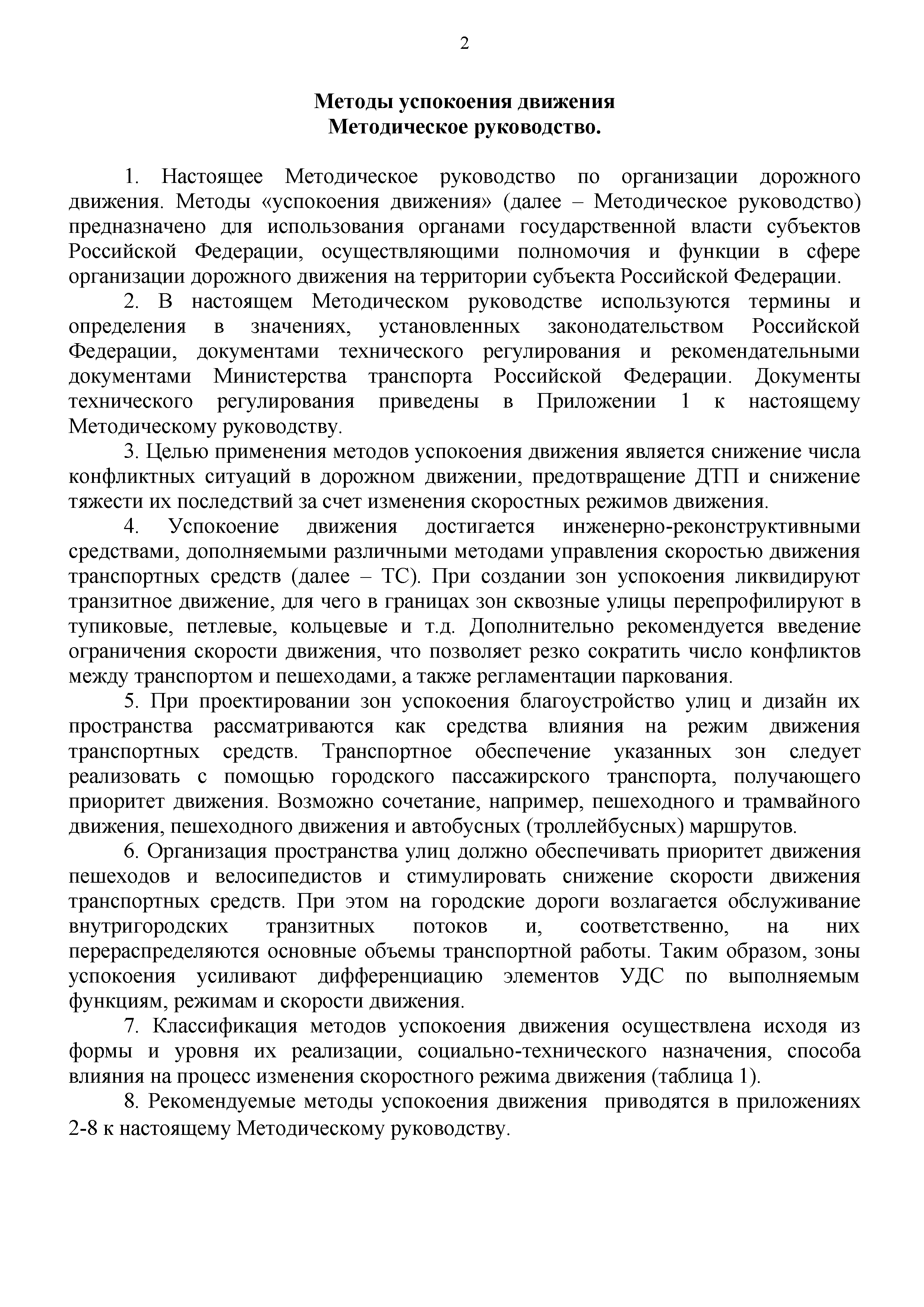 | Область применения: | Методическое руководство по организации дорожного движения. Методы «успокоения движения» (далее — Методическое руководство) предназначено для использования органами государственной власти субъектов Российской Федерации, осуществляющими полномочия и функции в сфере организации дорожного движения на территории субъекта Российской Федерации. Целью применения методов успокоения движения является снижение числа конфликтных ситуаций в дорожном движении, предотвращение дТП и снижение тяжести их последствий за счет изменения скоростных режимов движения |