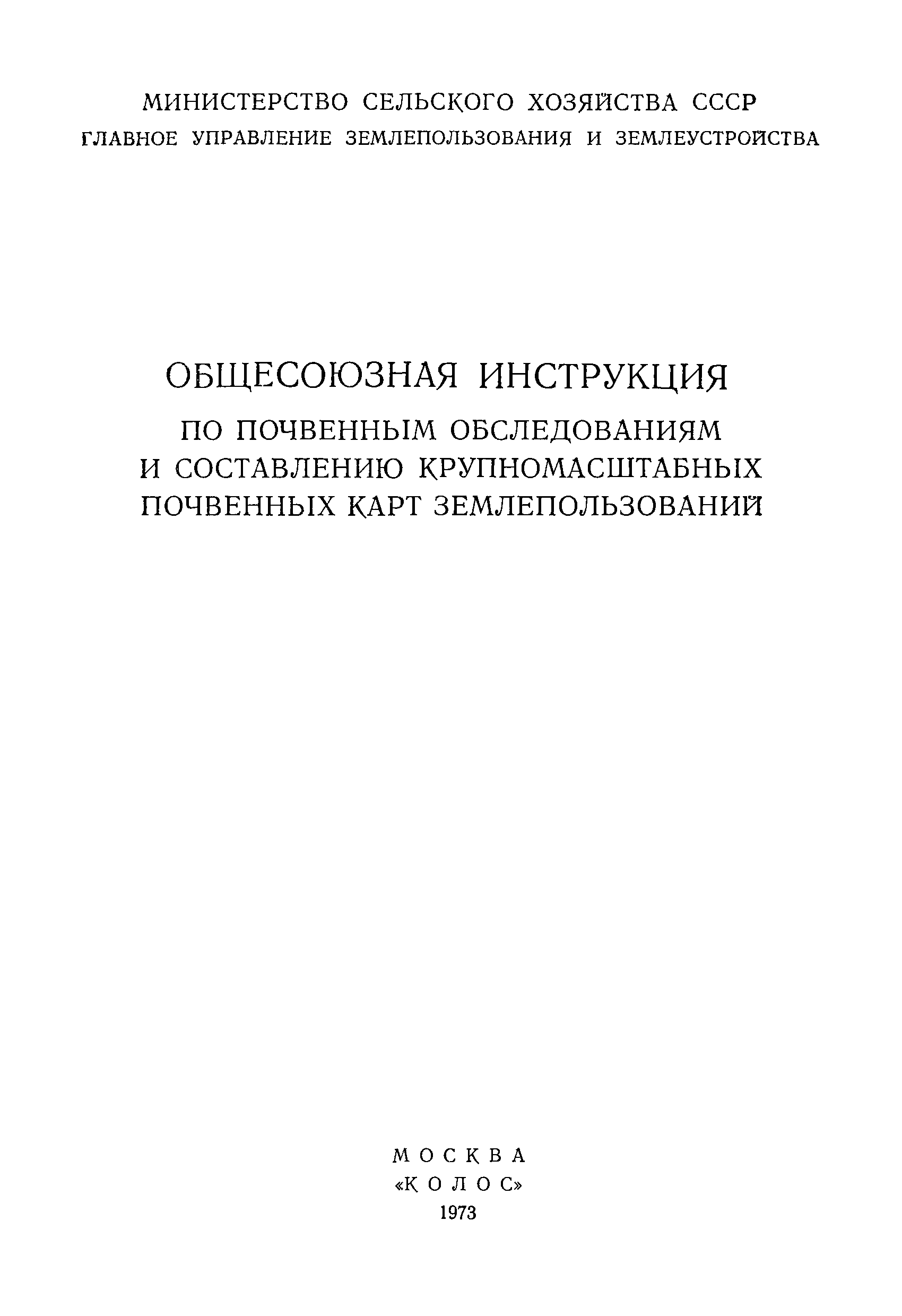 | Название рус.: | Общесоюзная инструкция по почвенным обследованиям и составлению крупномасштабных почвенных карт землепользования |