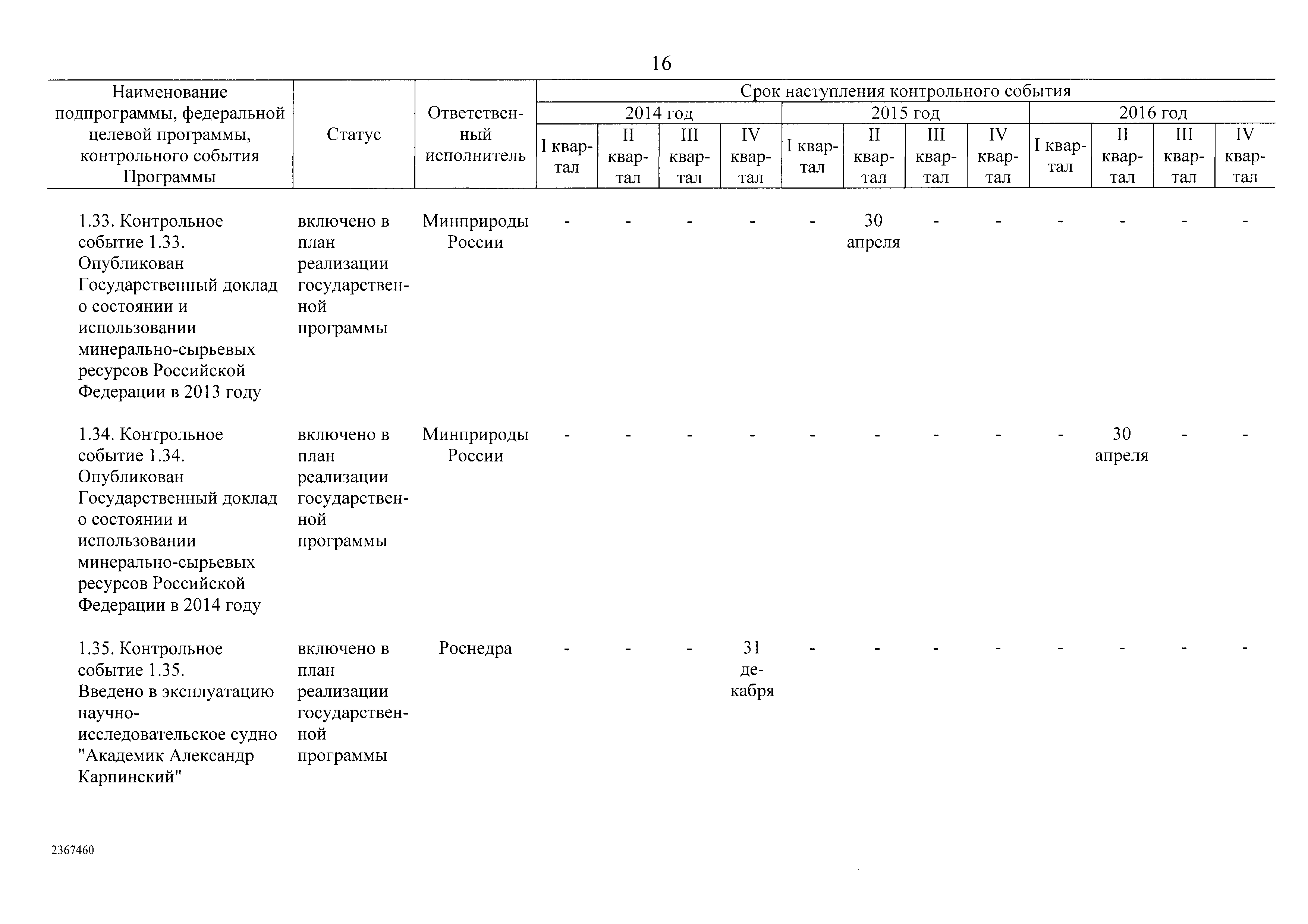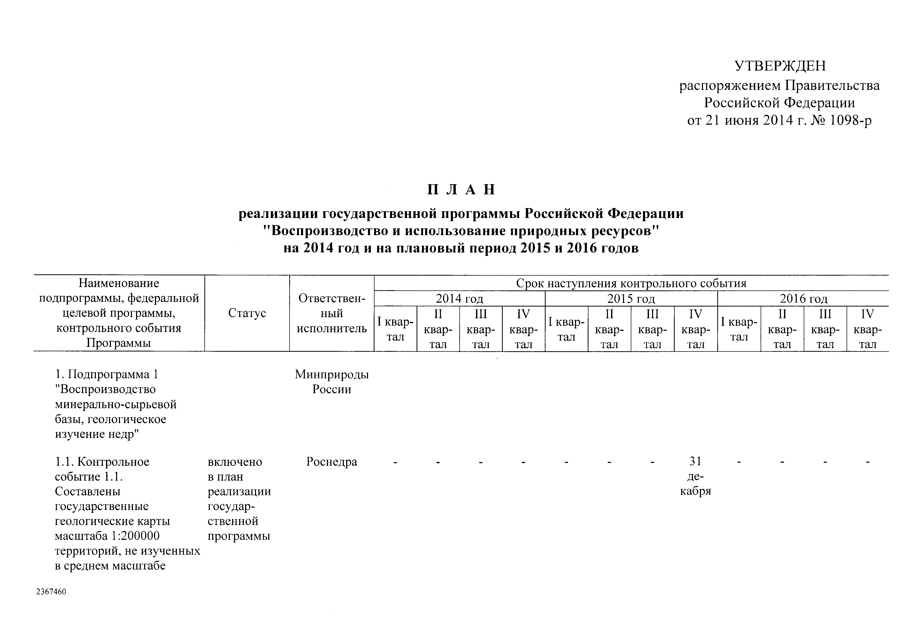| Название рус.: | План реализации государственной программы Российской Федерации "Воспроизводство и использование природных ресурсов" на 2014 год и на плановый период 2015 и 2016 годов |