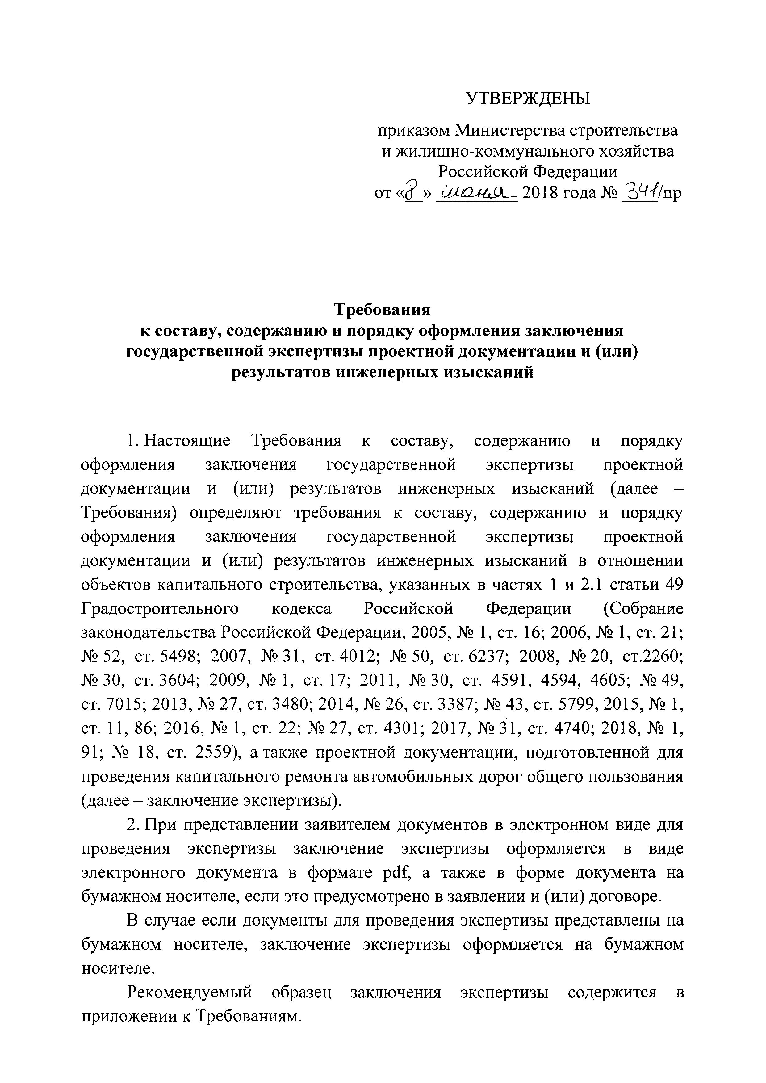 | Область применения: | Требования определяют требования к составу, содержанию и порядку оформления заключения государственной экспертизы проектной документации и (или) результатов инженерных изысканий в отношении объектов капитального строительства, указанных в частях 1 и 2.1. статьи 49 Градостроительного кодекса Российской Федерации |