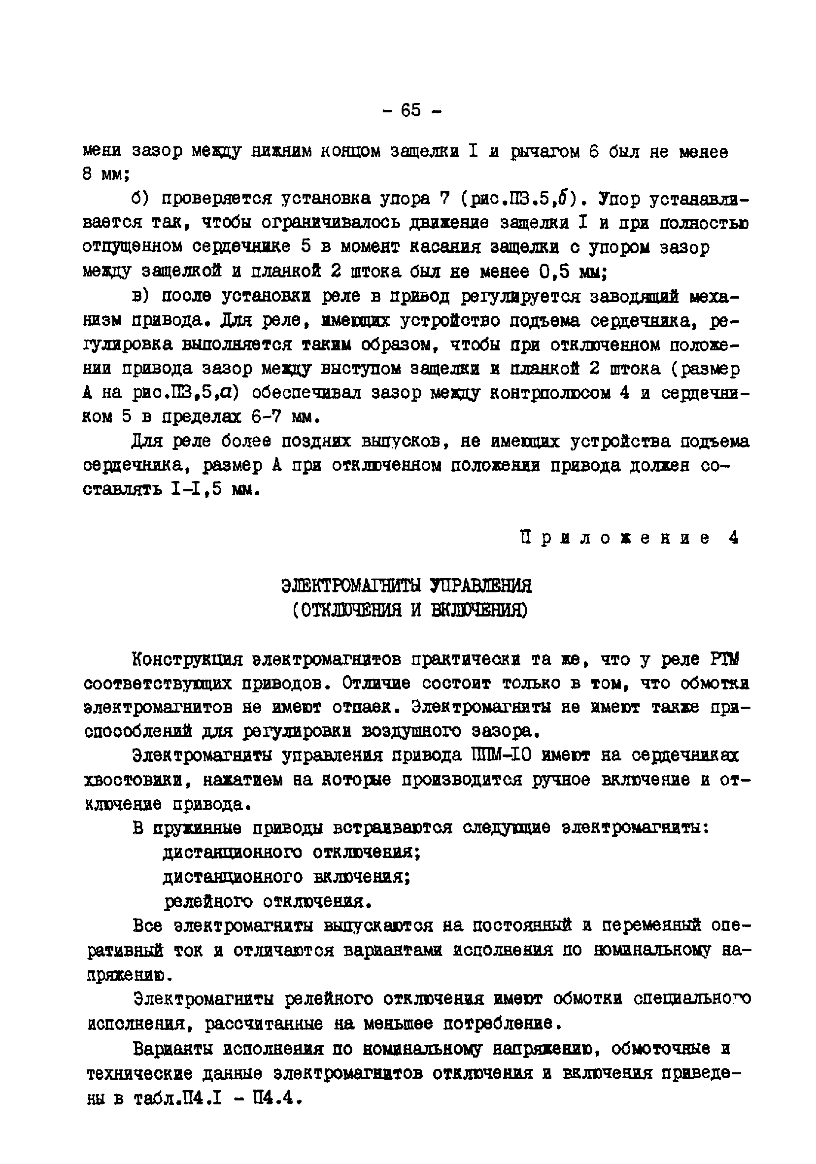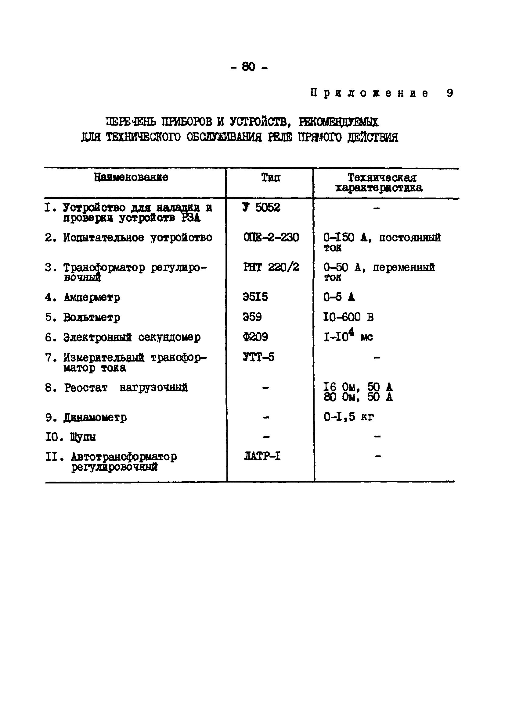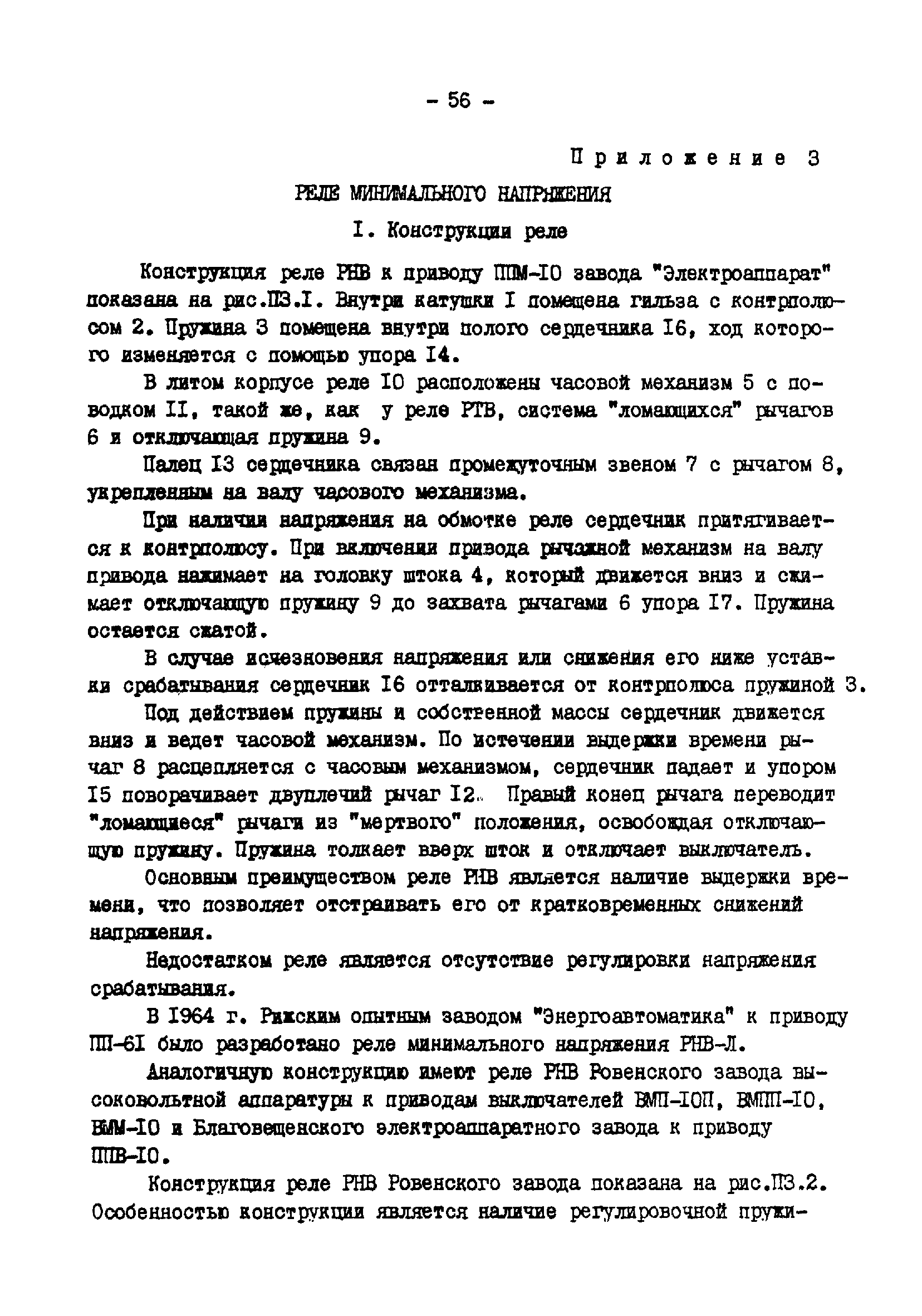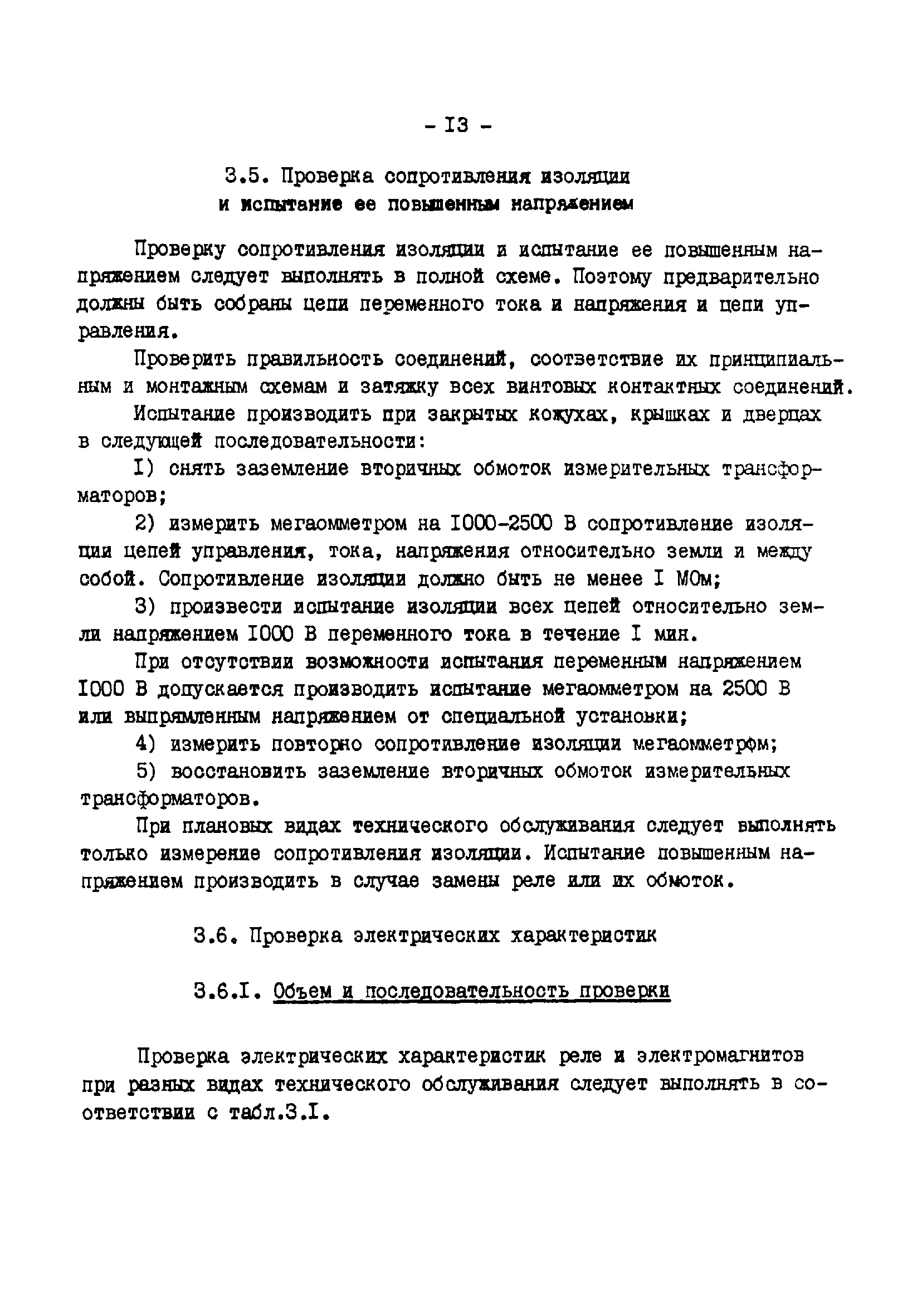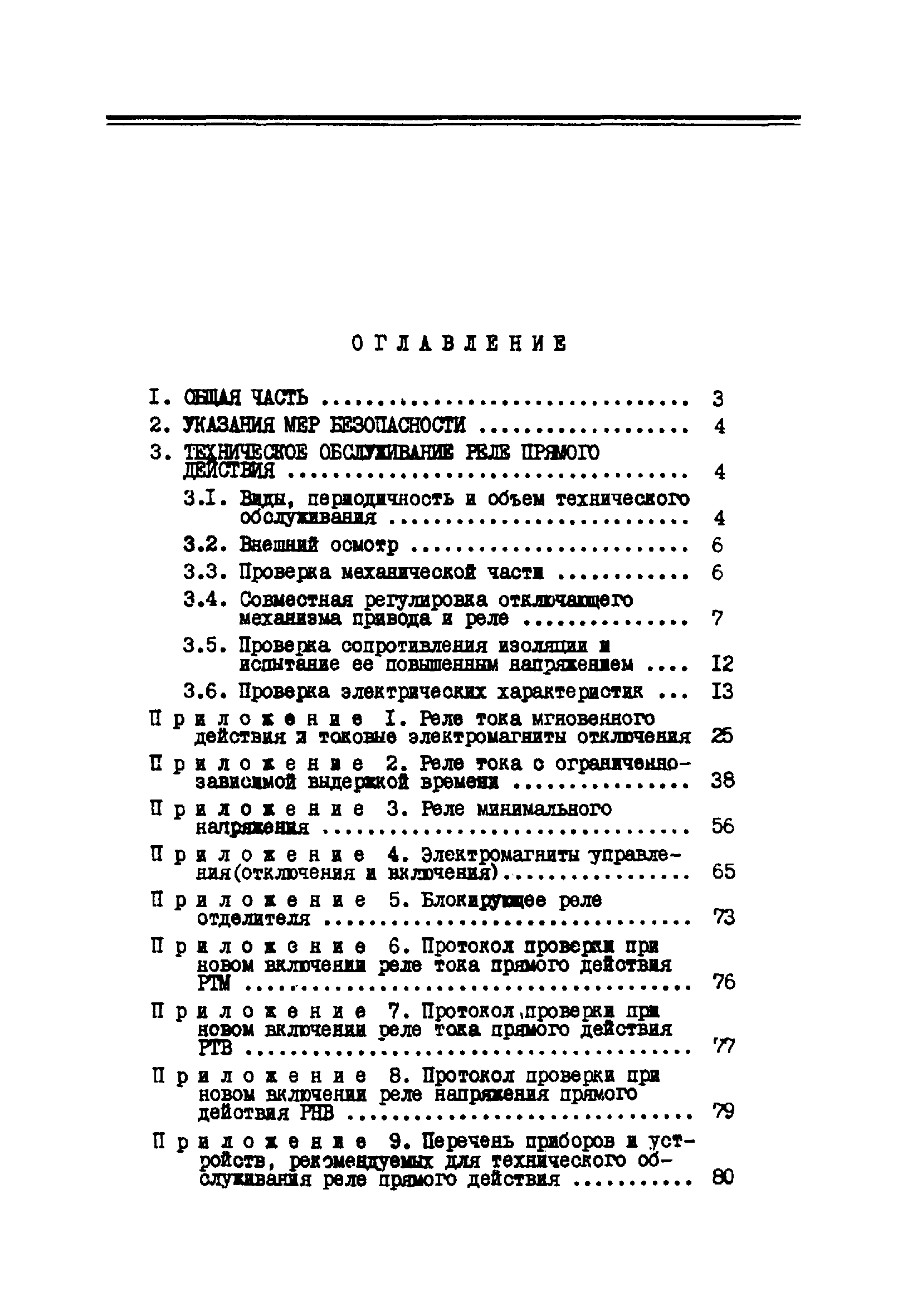 | Оглавление: | 1. Общая часть 2. Указания мер безопасности 3. Техническое обслуживание реле прямого действия 3.1. Виды, периодичность и объем технического обслуживания 3.2. Внешний осмотр 3.3. Проверка механической части 3.4. Совместная регулировка отключащего механизма привода и реле 3.5. Проверка сопротивления изоляции и испытание ее повышенным напряжением 3.6. Проверка электрических характеристик Приложение 1. Реле тока мгновенного действия и токовые электромагниты отключения Приложение 2. Реле тока с ограниченно-зависимой выдержкой времени Приложение 3. Реле минимального напряжения Приложение 4. Электромагниты управления (отключения и включения) Приложение 5. Блокирующее реле отделителя Приложение 6. Протокол проверки при новом включении реле тока прямого действия РТМ Приложение 7. Протокол проверки при новом включении реле тока прямого действия РТВ Приложение 8. Протокол проверки при новом включении реле напряжения прямого действия РНВ Приложение 9. Перечень приборов и устройств, рекомендуемых для технического обслуживания реле прямого действия |