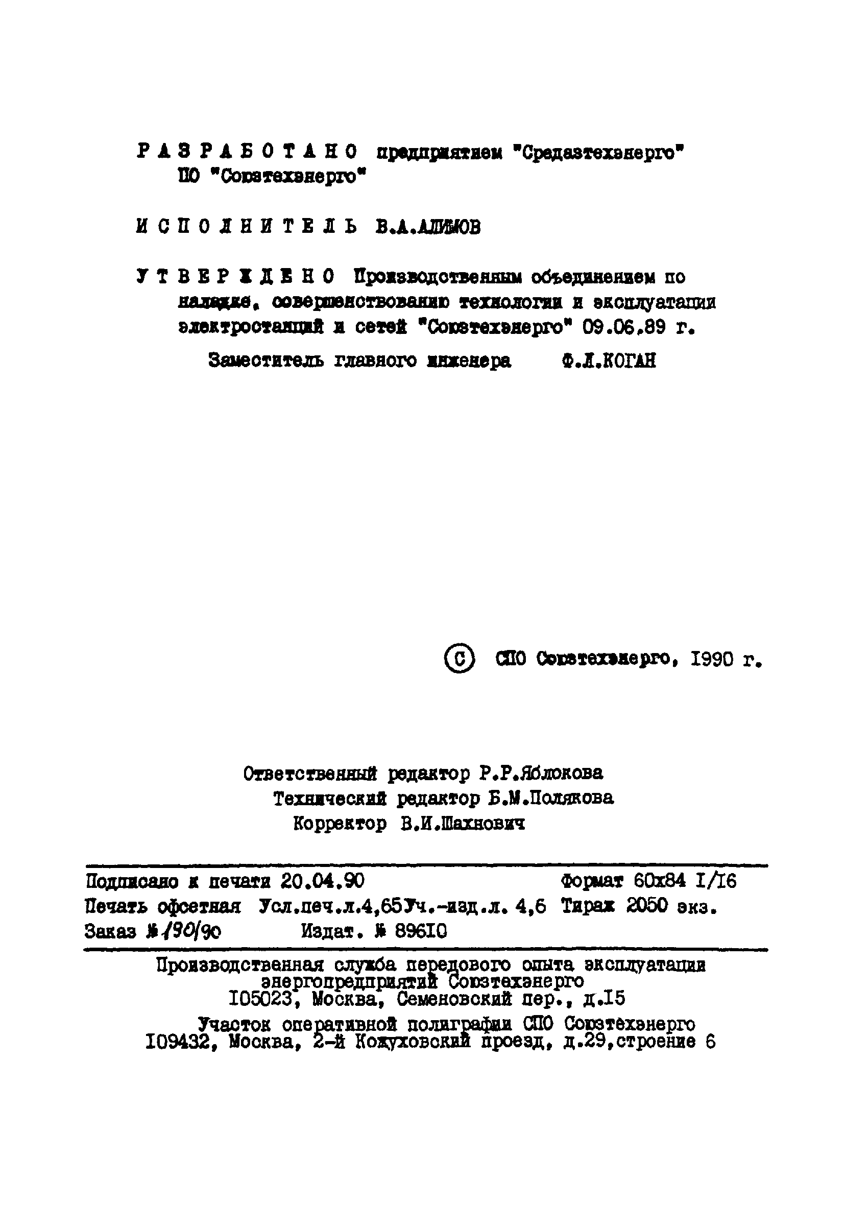 | Утверждён: | 09.06.1989 Союзтехэнерго