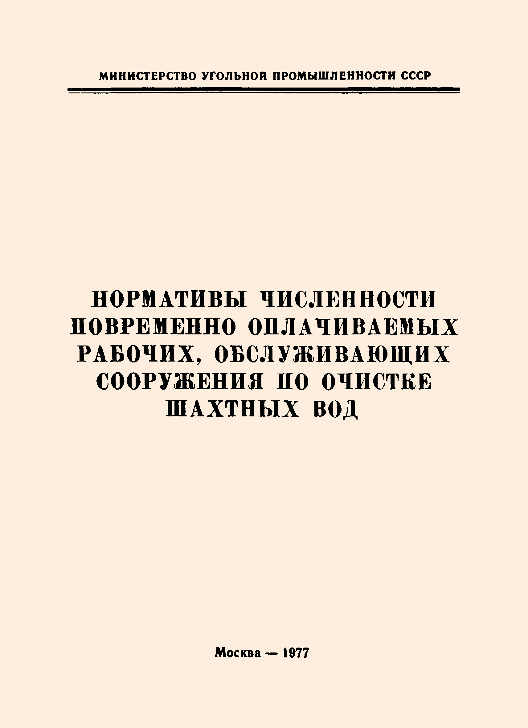 | Название рус.: | Нормативы численности повременно оплачиваемых рабочих, обслуживающих сооружения по очистке шахтных вод |