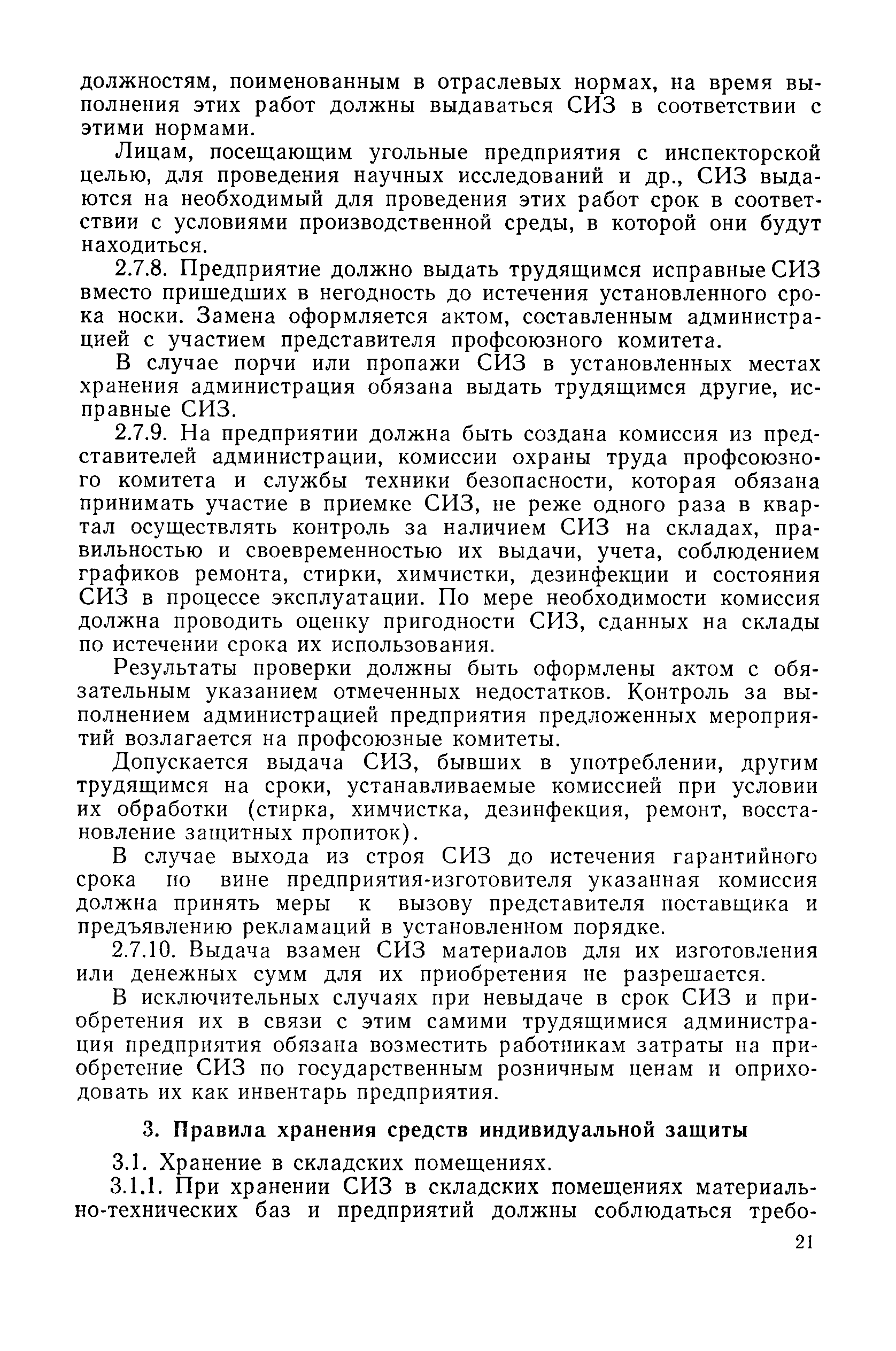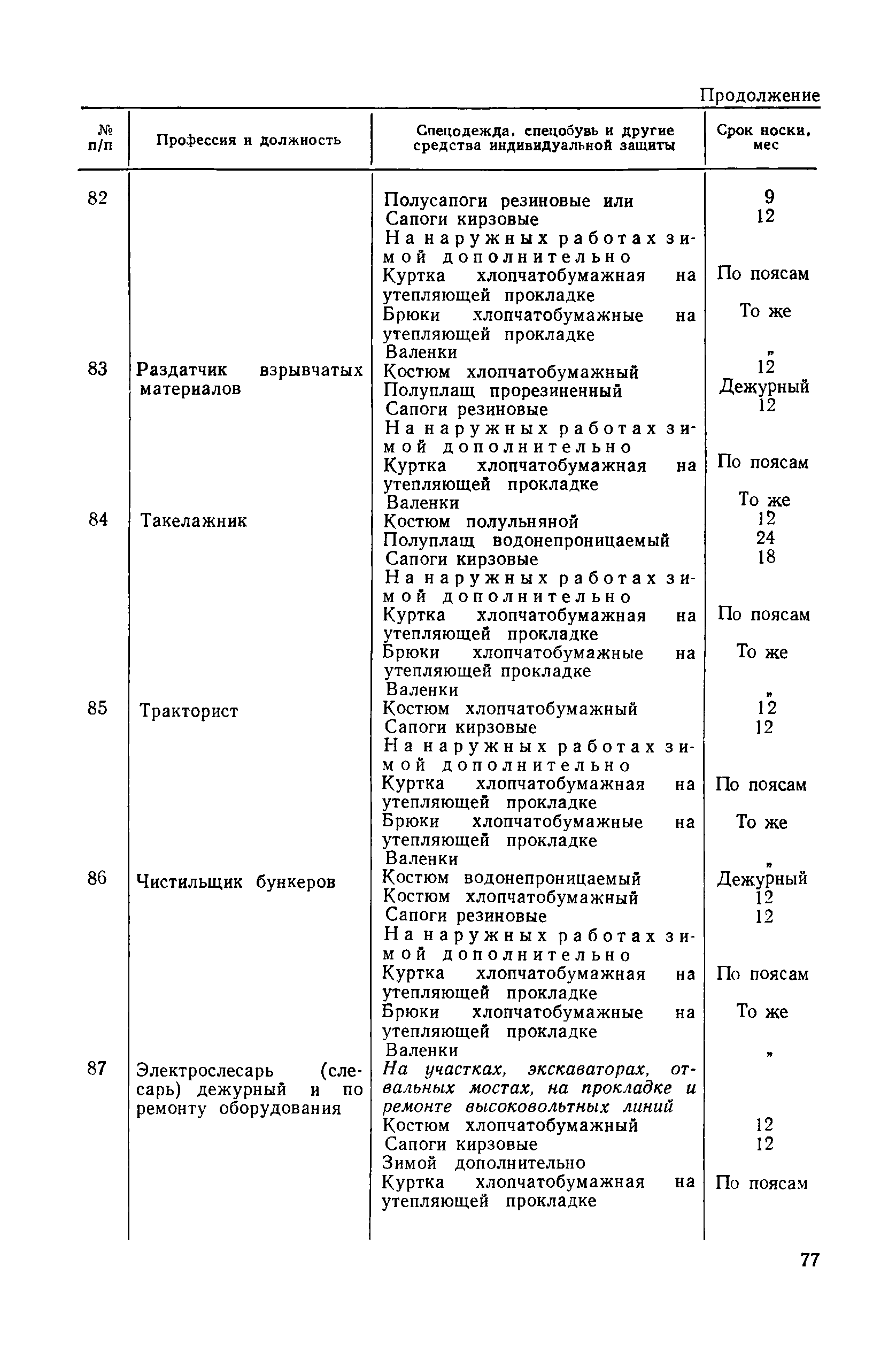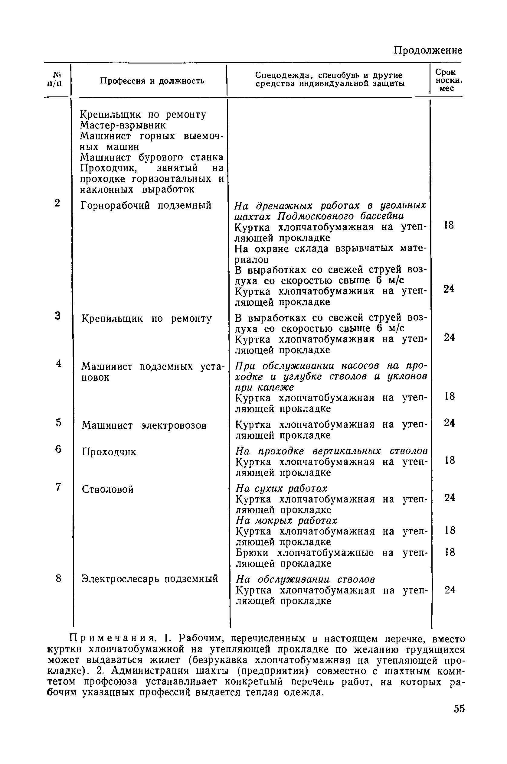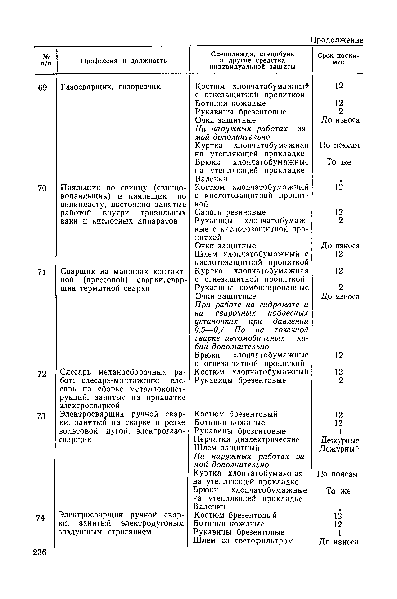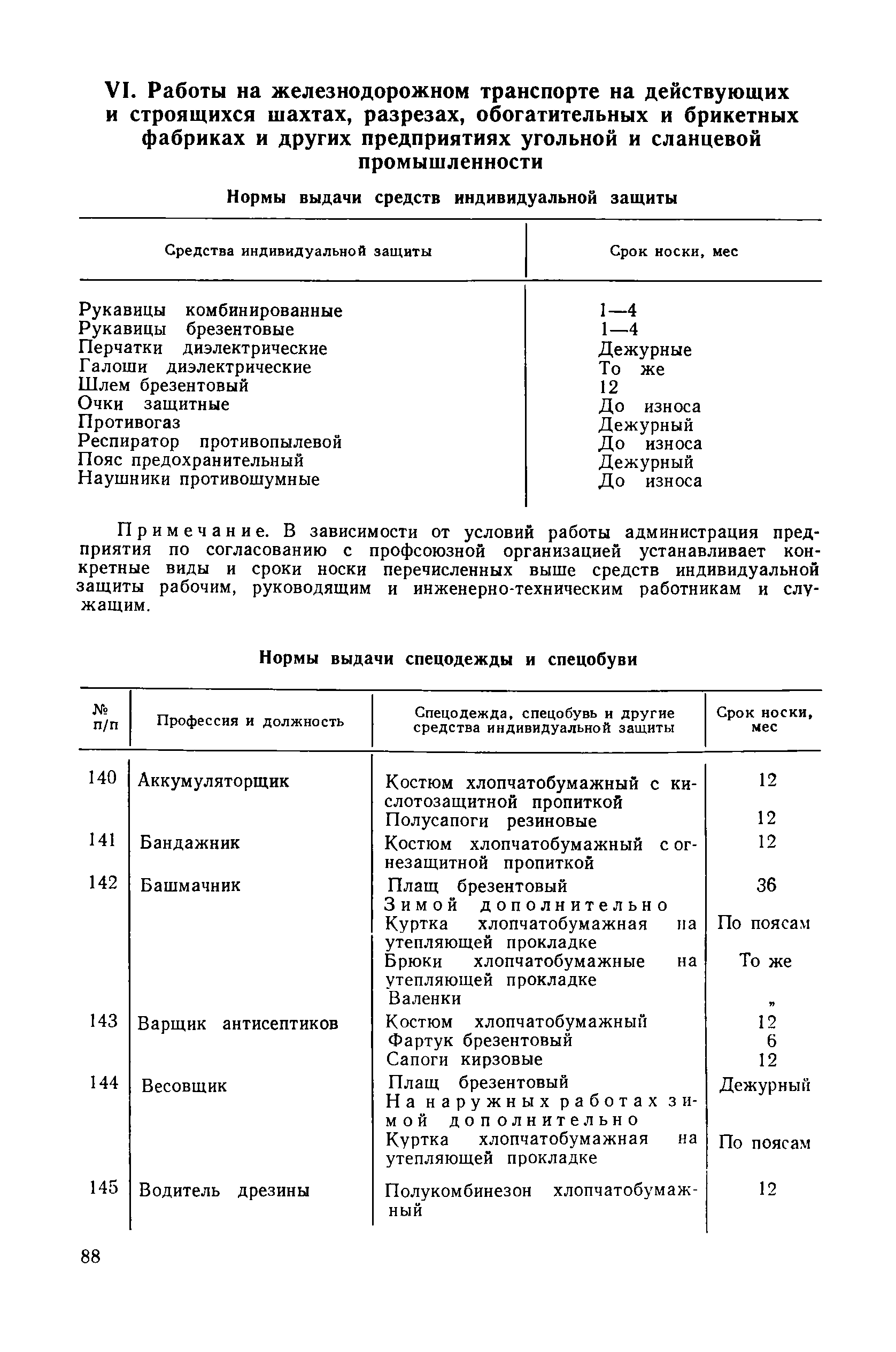 Нормы бесплатной выдачи средств индивидуальной защиты для работников угольной промышленности| Статус: | справочные материалы, мп, тпр | | Название рус.: | Нормы бесплатной выдачи средств индивидуальной защиты для работников угольной промышленности | | Дата добавления в базу: | 01.02.2020 | | Дата актуализации: | 01.01.2021 | | Область применения: | В документе приведены типовые отраслевые (угольной промышленности) нормы бесплатной выдачи спецодежды, спецобуви и необходимые извлечения из типовых норм других отраслей для работающих в шахтах, карьерах, на шахтной поверхности и обогатительных фабриках | | Оглавление: | Инструкция о порядке обеспечения рабочих и служащих специальной одеждой, специальной обувью и другими средствами индивидуальной защиты Система стандартов безопасности труда. Средства индивидуальной защиты. Порядок обеспечения. Правила хранения, эксплуатации и ухода. ОСТ 12.24.255-85 Временная инструкция о порядке испытаний, приемки, хранения и транспортировки спецодежды, спецобуви и защитных шахтерских касок Инструкция о порядке выдачи, хранения, пользования и учета санитарной одежды, санитарной обуви и санпринадлежностей на предприятиях системы Министерства торговли СССР Типовые отраслевые нормы бесплатной выдачи специальной одежды, специальной обуви и других средств индивидуальной защиты работникам действующих и строящихся шахт, разрезов и предприятий угольной и сланцевой промышленности Нормы бесплатной выдачи рабочим и служащим теплой специальной одежды и специальной обуви по климатическим поясам, единым для всех отраслей народного хозяйства (кроме климатических районов, предусмотренных особо в Типовых отраслевых нормах бесплатной выдачи специальной одежды, специальной обуви и других средств ндивидуальной защиты; рабочим и служащим морского транспорта; рабочим и служащим гражданской авиации; рабочим и служащим, осуществляющим наблюдения и работы по гидрометеорологическому режиму окружающей среды; постоянному и переменному составу учебных и спортивных организаций ДОСААФ СССР) Типовые отраслевые нормы бесплатной выдачи специальной одежды, специальной обуви и других средств индивидуальной защиты рабочим и служащим сквозных профессий и должностей всех отраслей народного хозяйства и отдельных производств Типовые отраслевые нормы бесплатной выдачи специальной одежды, специальной обуви и других средств индивидуальной защиты рабочим и служащим, занятым на геологических, топографо-геодезических, изыскательских, землеустроительных работах и в картографическом производстве Типовые отраслевые нормы бесплатной выдачи специальной одежды, специальной обуви и других средств индивидуальной защиты рабочим и служащим паросилового и энергетического хозяйства (кроме производства электрической энергии) Типовые отраслевые нормы бесплатной выдачи специальной одежды, специальной обуви и других средств индивидуальной защиты рабочим и служащим автомобильного транспорта и шоссейных дорог Типовые отраслевые нормы бесплатной выдачи специальной одежды, специальной обуви и других средств индивидуальной защиты рабочим и служащим железнодорожного транспорта (железнодорожный внутризаводской транспорт) Типовые отраслевые нормы бесплатной выдачи специальной одежды, специальной обуви я других средств индивидуа