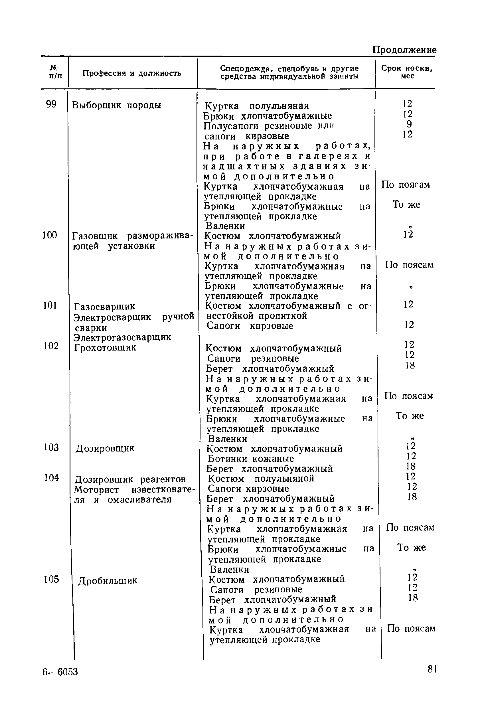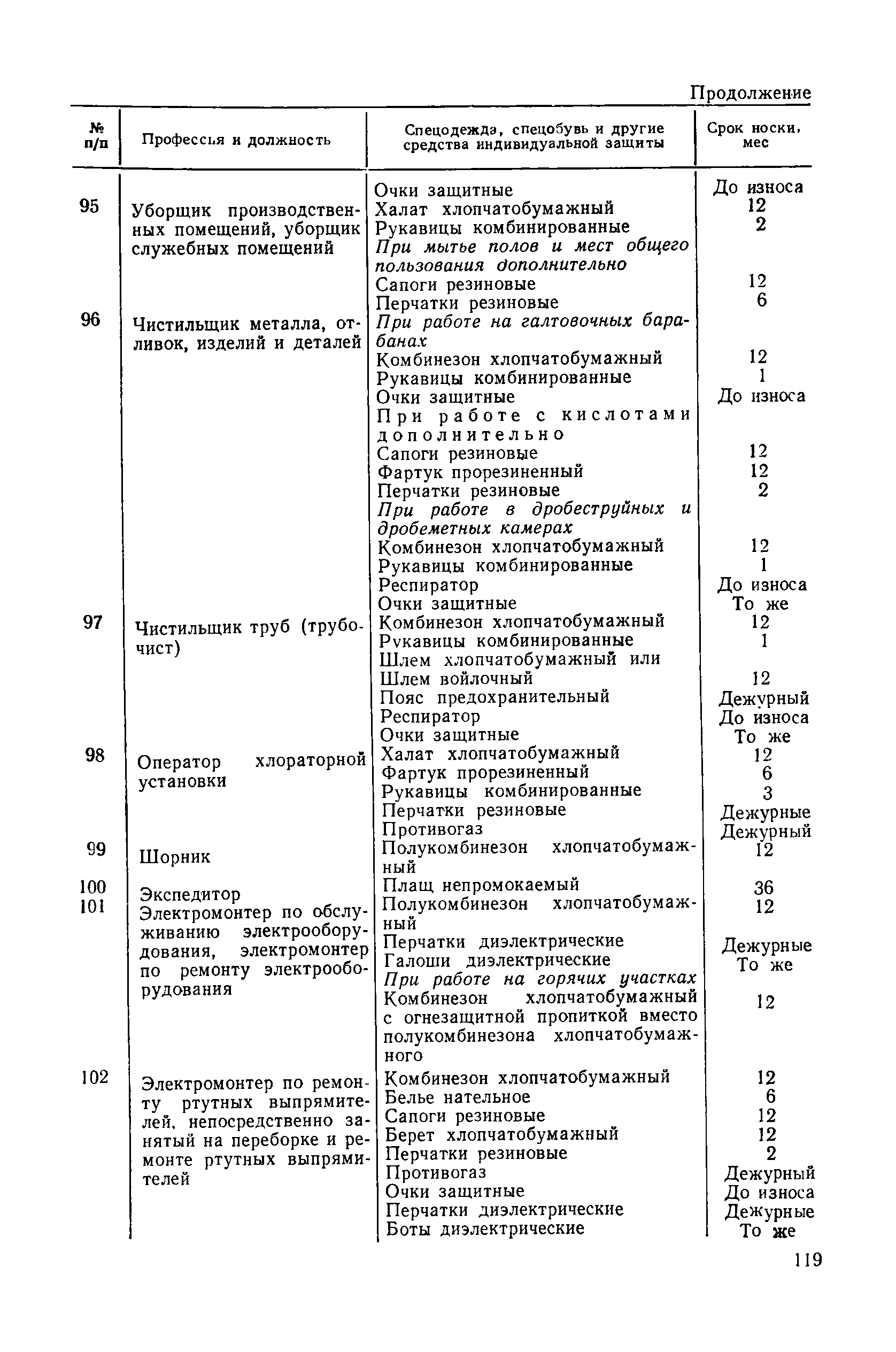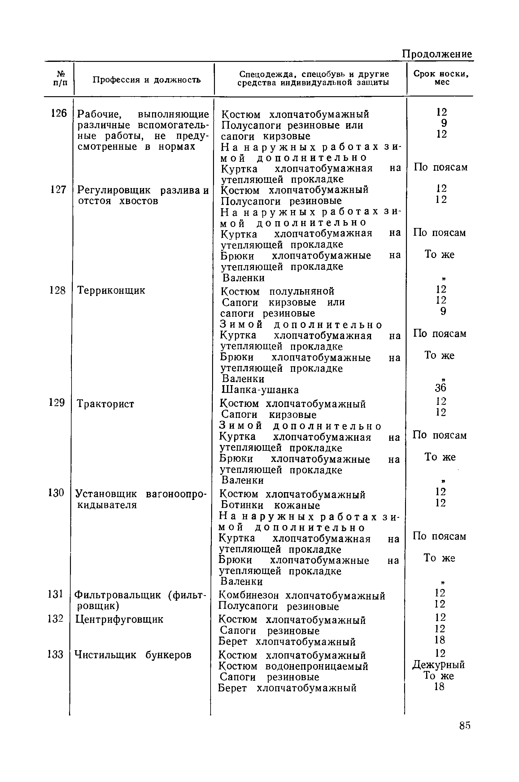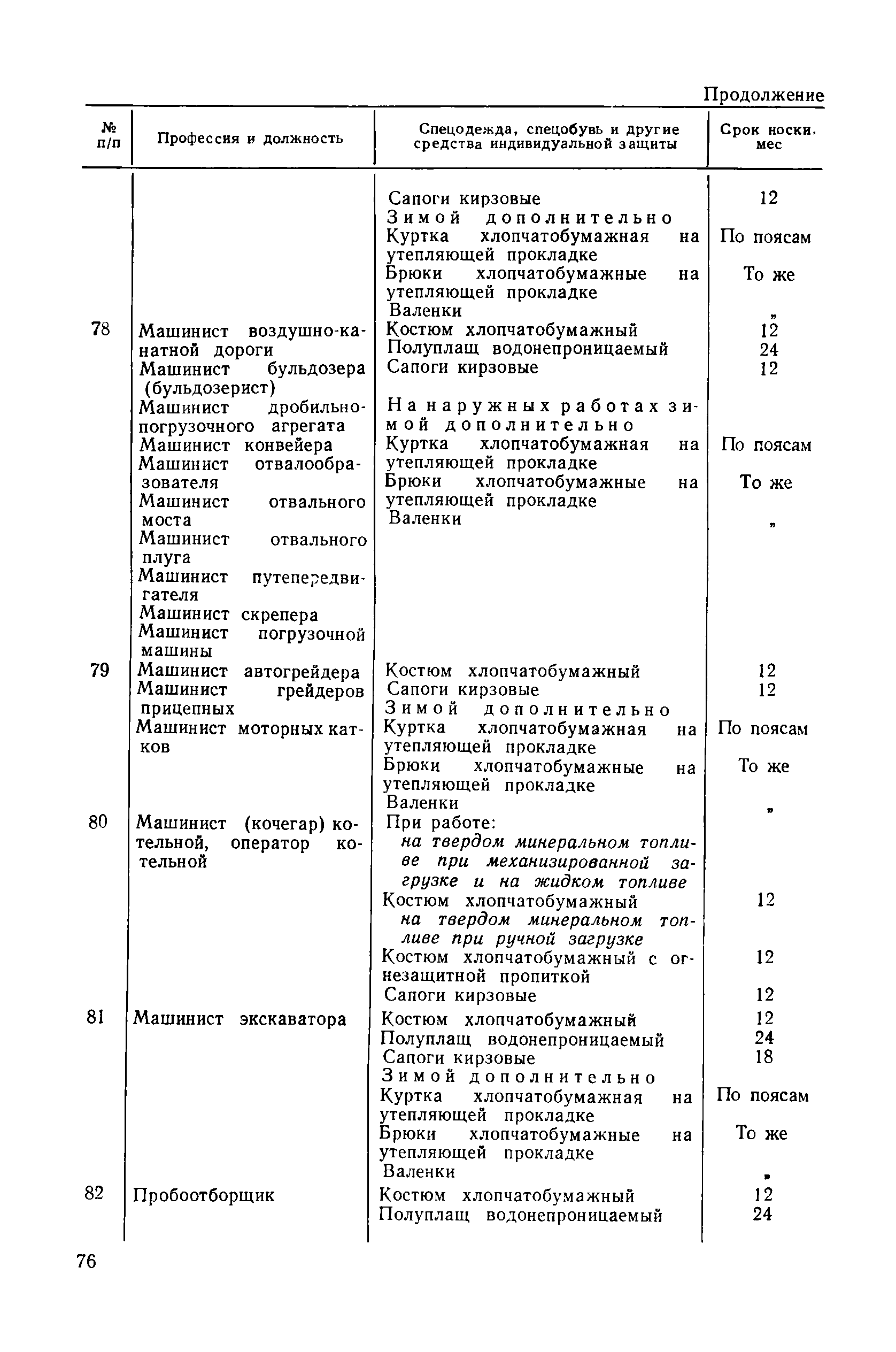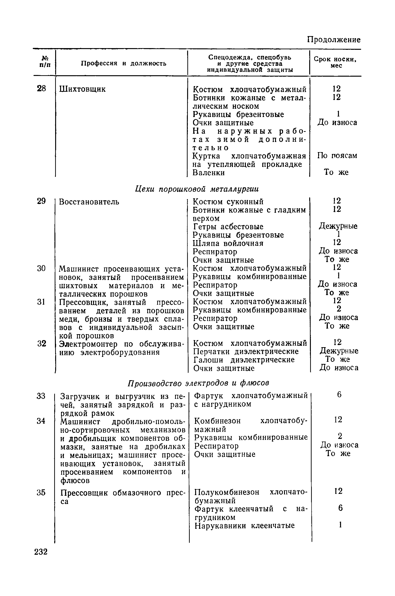 Нормы бесплатной выдачи средств индивидуальной защиты для работников угольной промышленности| Статус: | справочные материалы, мп, тпр | | Название рус.: | Нормы бесплатной выдачи средств индивидуальной защиты для работников угольной промышленности | | Дата добавления в базу: | 01.02.2020 | | Дата актуализации: | 01.01.2021 | | Область применения: | В документе приведены типовые отраслевые (угольной промышленности) нормы бесплатной выдачи спецодежды, спецобуви и необходимые извлечения из типовых норм других отраслей для работающих в шахтах, карьерах, на шахтной поверхности и обогатительных фабриках | | Оглавление: | Инструкция о порядке обеспечения рабочих и служащих специальной одеждой, специальной обувью и другими средствами индивидуальной защиты Система стандартов безопасности труда. Средства индивидуальной защиты. Порядок обеспечения. Правила хранения, эксплуатации и ухода. ОСТ 12.24.255-85 Временная инструкция о порядке испытаний, приемки, хранения и транспортировки спецодежды, спецобуви и защитных шахтерских касок Инструкция о порядке выдачи, хранения, пользования и учета санитарной одежды, санитарной обуви и санпринадлежностей на предприятиях системы Министерства торговли СССР Типовые отраслевые нормы бесплатной выдачи специальной одежды, специальной обуви и других средств индивидуальной защиты работникам действующих и строящихся шахт, разрезов и предприятий угольной и сланцевой промышленности Нормы бесплатной выдачи рабочим и служащим теплой специальной одежды и специальной обуви по климатическим поясам, единым для всех отраслей народного хозяйства (кроме климатических районов, предусмотренных особо в Типовых отраслевых нормах бесплатной выдачи специальной одежды, специальной обуви и других средств ндивидуальной защиты; рабочим и служащим морского транспорта; рабочим и служащим гражданской авиации; рабочим и служащим, осуществляющим наблюдения и работы по гидрометеорологическому режиму окружающей среды; постоянному и переменному составу учебных и спортивных организаций ДОСААФ СССР) Типовые отраслевые нормы бесплатной выдачи специальной одежды, специальной обуви и других средств индивидуальной защиты рабочим и служащим сквозных профессий и должностей всех отраслей народного хозяйства и отдельных производств Типовые отраслевые нормы бесплатной выдачи специальной одежды, специальной обуви и других средств индивидуальной защиты рабочим и служащим, занятым на геологических, топографо-геодезических, изыскательских, землеустроительных работах и в картографическом производстве Типовые отраслевые нормы бесплатной выдачи специальной одежды, специальной обуви и других средств индивидуальной защиты рабочим и служащим паросилового и энергетического хозяйства (кроме производства электрической энергии) Типовые отраслевые нормы бесплатной выдачи специальной одежды, специальной обуви и других средств индивидуальной защиты рабочим и служащим автомобильного транспорта и шоссейных дорог Типовые отраслевые нормы бесплатной выдачи специальной одежды, специальной обуви и других средств индивидуальной защиты рабочим и служащим железнодорожного транспорта (железнодорожный внутризаводской транспорт) Типовые отраслевые нормы бесплатной выдачи специальной одежды, специальной обуви я других средств индивидуа