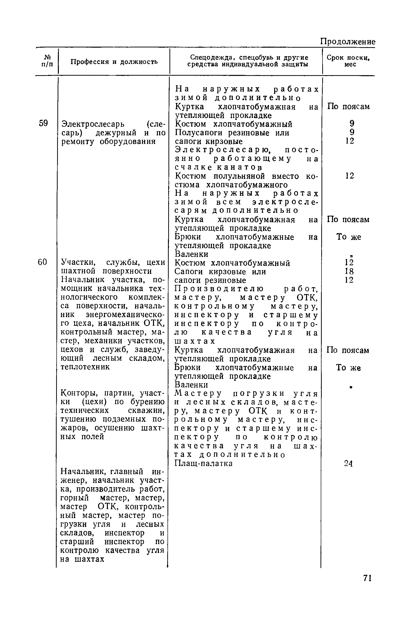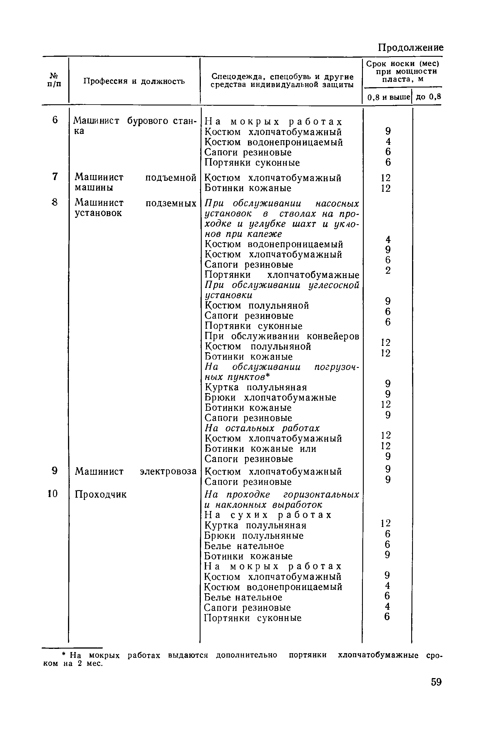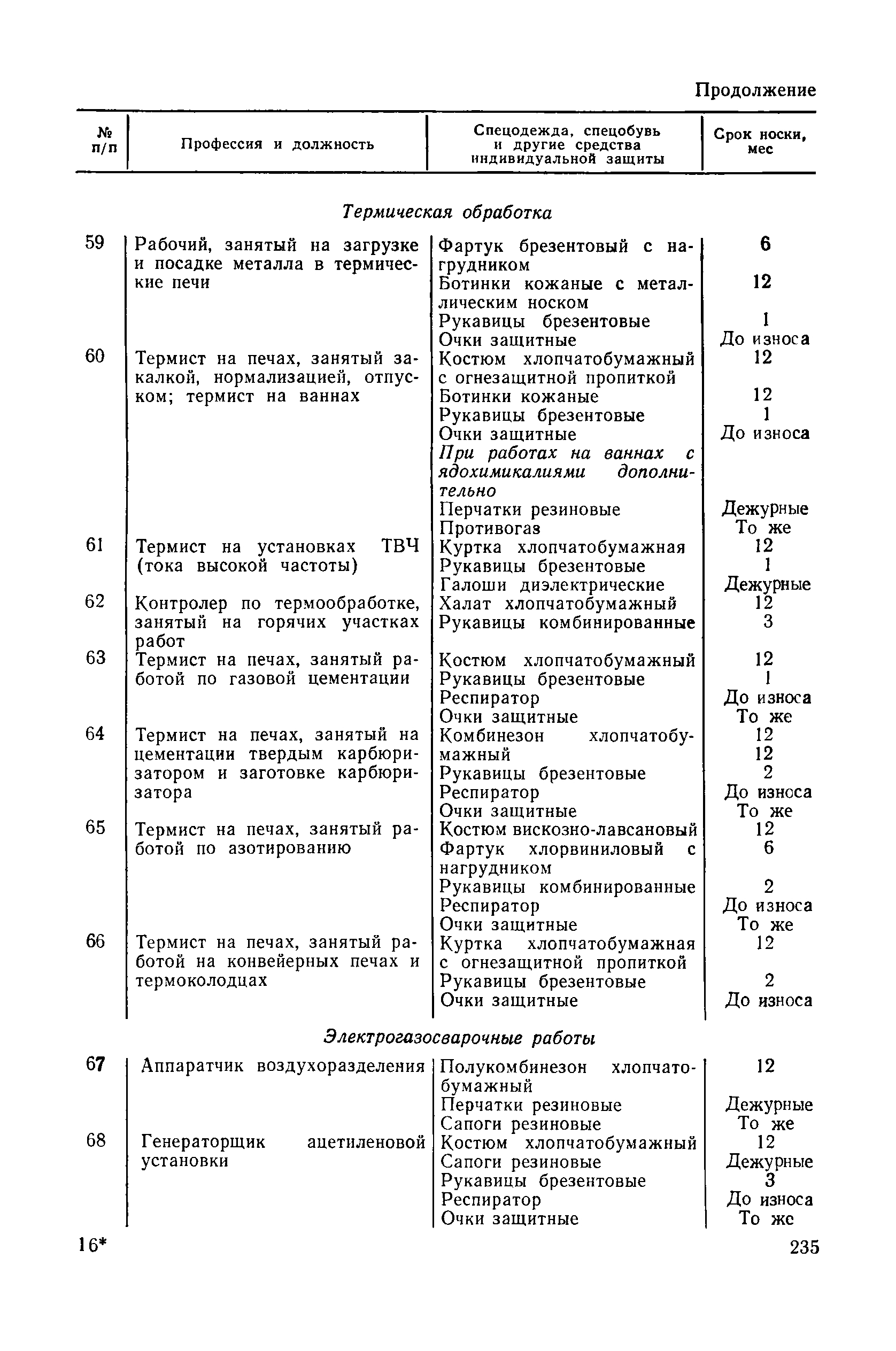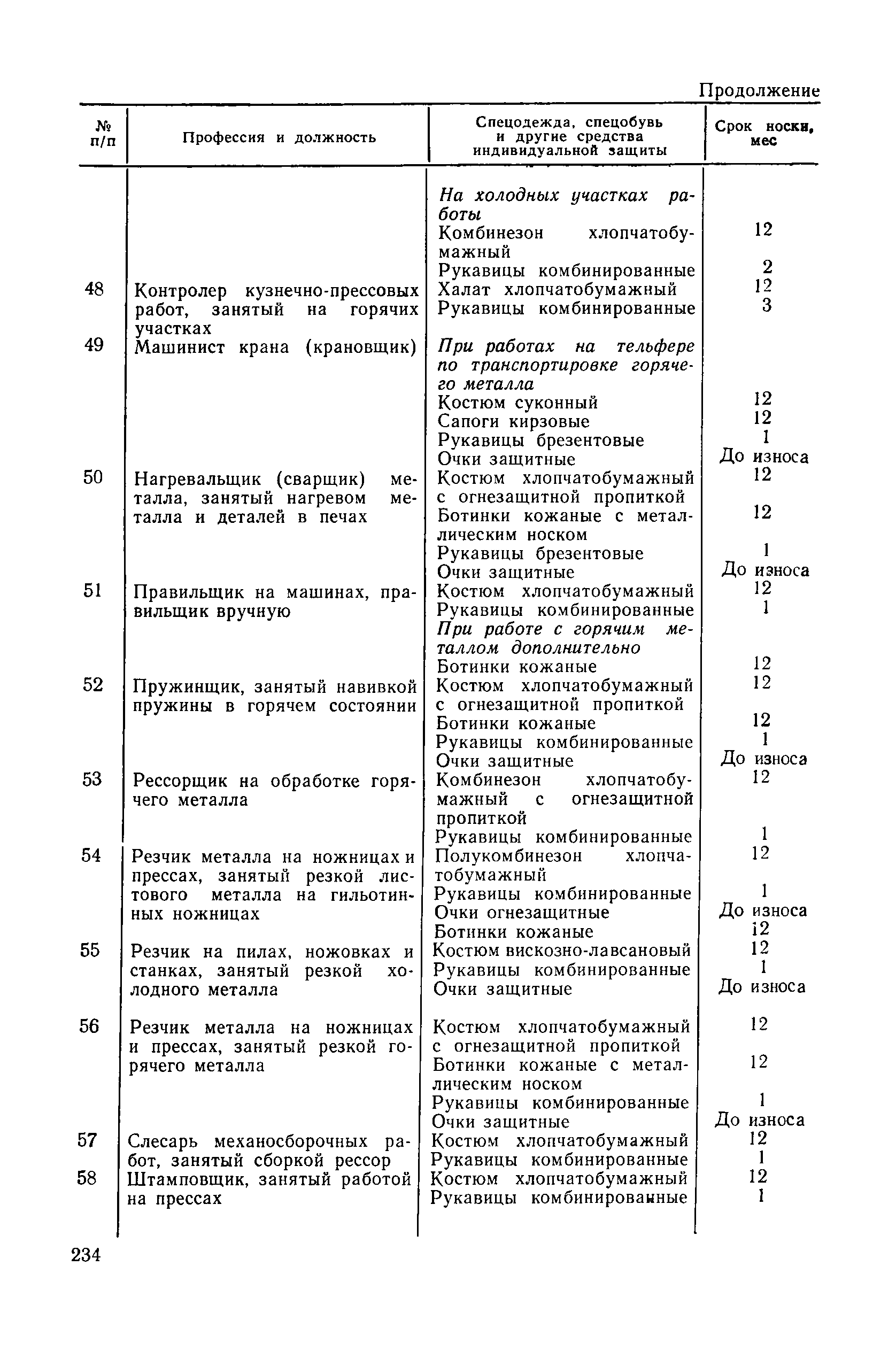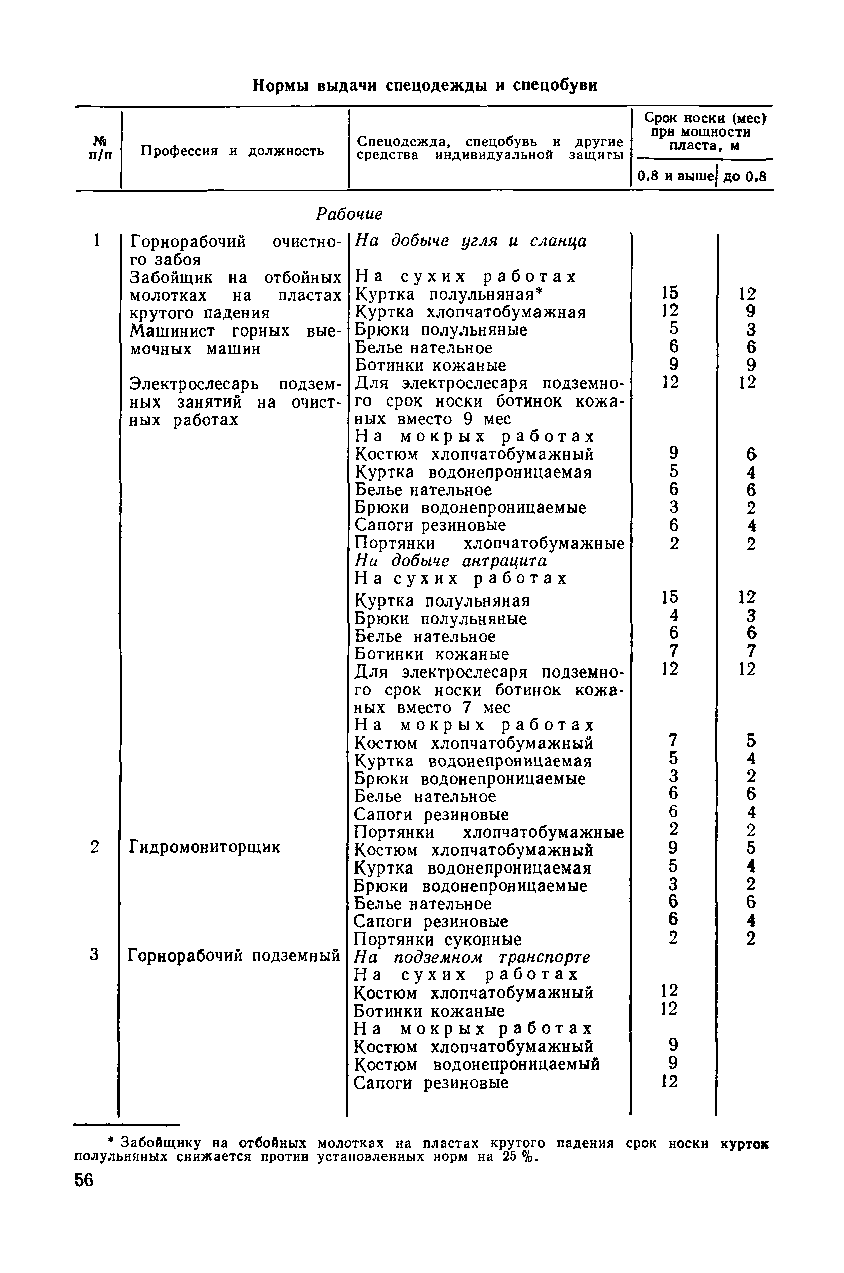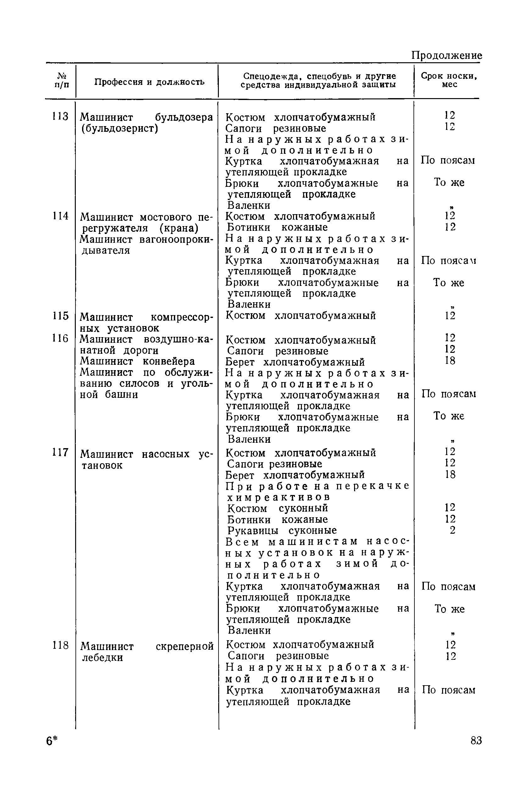 Нормы бесплатной выдачи средств индивидуальной защиты для работников угольной промышленности| Статус: | справочные материалы, мп, тпр | | Название рус.: | Нормы бесплатной выдачи средств индивидуальной защиты для работников угольной промышленности | | Дата добавления в базу: | 01.02.2020 | | Дата актуализации: | 01.01.2021 | | Область применения: | В документе приведены типовые отраслевые (угольной промышленности) нормы бесплатной выдачи спецодежды, спецобуви и необходимые извлечения из типовых норм других отраслей для работающих в шахтах, карьерах, на шахтной поверхности и обогатительных фабриках | | Оглавление: | Инструкция о порядке обеспечения рабочих и служащих специальной одеждой, специальной обувью и другими средствами индивидуальной защиты Система стандартов безопасности труда. Средства индивидуальной защиты. Порядок обеспечения. Правила хранения, эксплуатации и ухода. ОСТ 12.24.255-85 Временная инструкция о порядке испытаний, приемки, хранения и транспортировки спецодежды, спецобуви и защитных шахтерских касок Инструкция о порядке выдачи, хранения, пользования и учета санитарной одежды, санитарной обуви и санпринадлежностей на предприятиях системы Министерства торговли СССР Типовые отраслевые нормы бесплатной выдачи специальной одежды, специальной обуви и других средств индивидуальной защиты работникам действующих и строящихся шахт, разрезов и предприятий угольной и сланцевой промышленности Нормы бесплатной выдачи рабочим и служащим теплой специальной одежды и специальной обуви по климатическим поясам, единым для всех отраслей народного хозяйства (кроме климатических районов, предусмотренных особо в Типовых отраслевых нормах бесплатной выдачи специальной одежды, специальной обуви и других средств ндивидуальной защиты; рабочим и служащим морского транспорта; рабочим и служащим гражданской авиации; рабочим и служащим, осуществляющим наблюдения и работы по гидрометеорологическому режиму окружающей среды; постоянному и переменному составу учебных и спортивных организаций ДОСААФ СССР) Типовые отраслевые нормы бесплатной выдачи специальной одежды, специальной обуви и других средств индивидуальной защиты рабочим и служащим сквозных профессий и должностей всех отраслей народного хозяйства и отдельных производств Типовые отраслевые нормы бесплатной выдачи специальной одежды, специальной обуви и других средств индивидуальной защиты рабочим и служащим, занятым на геологических, топографо-геодезических, изыскательских, землеустроительных работах и в картографическом производстве Типовые отраслевые нормы бесплатной выдачи специальной одежды, специальной обуви и других средств индивидуальной защиты рабочим и служащим паросилового и энергетического хозяйства (кроме производства электрической энергии) Типовые отраслевые нормы бесплатной выдачи специальной одежды, специальной обуви и других средств индивидуальной защиты рабочим и служащим автомобильного транспорта и шоссейных дорог Типовые отраслевые нормы бесплатной выдачи специальной одежды, специальной обуви и других средств индивидуальной защиты рабочим и служащим железнодорожного транспорта (железнодорожный внутризаводской транспорт) Типовые отраслевые нормы бесплатной выдачи специальной одежды, специальной обуви я других средств индивидуа