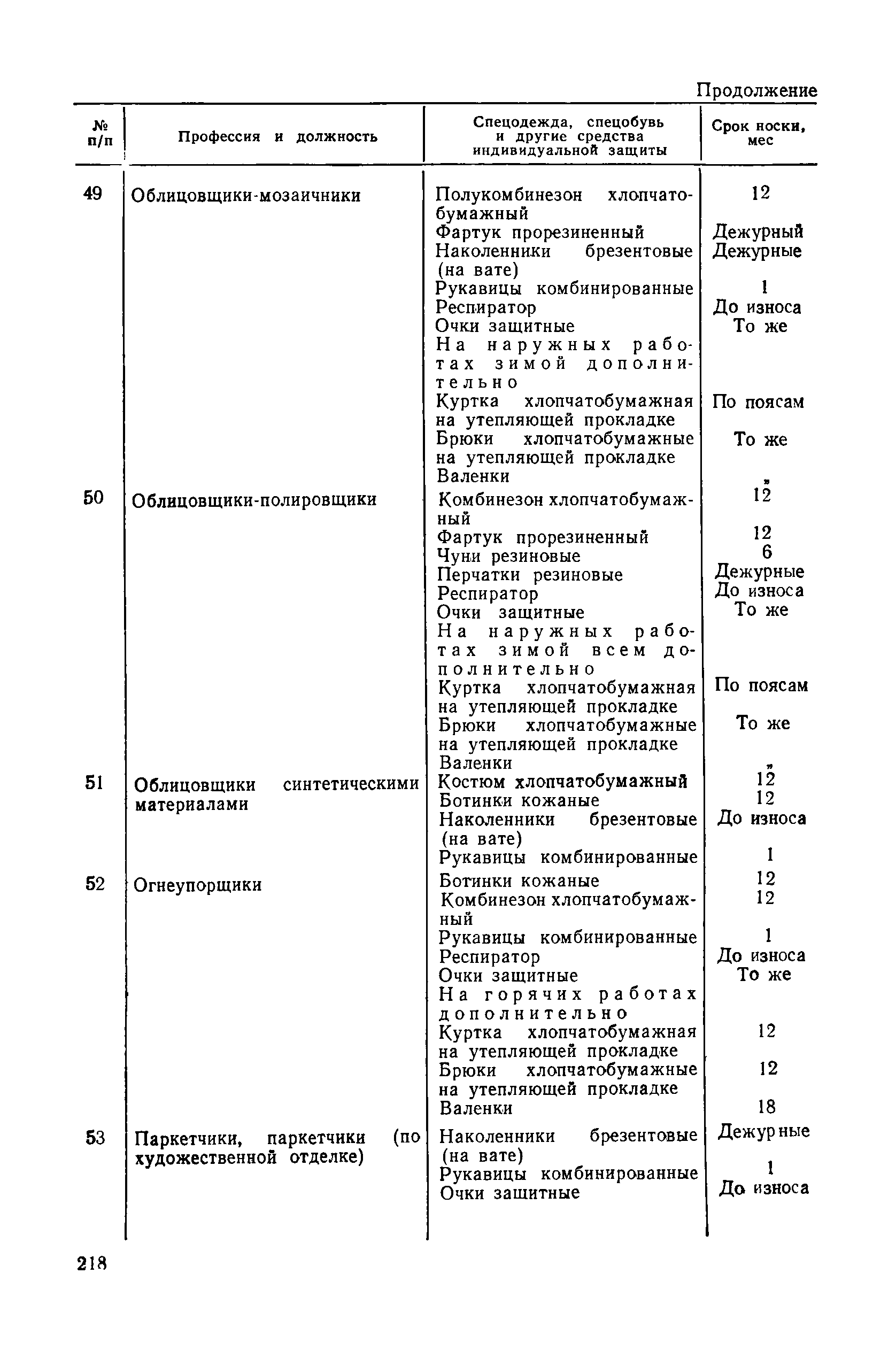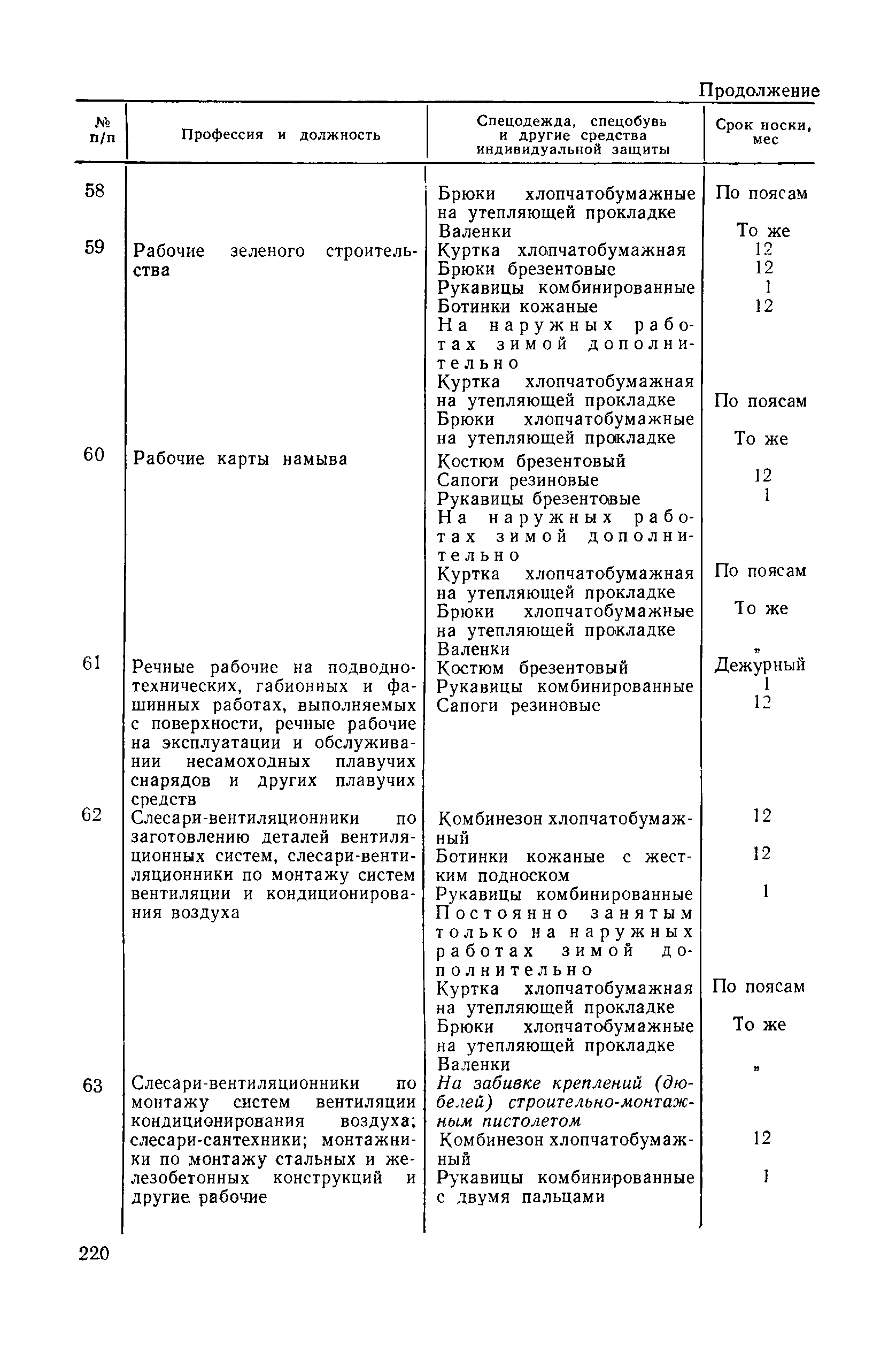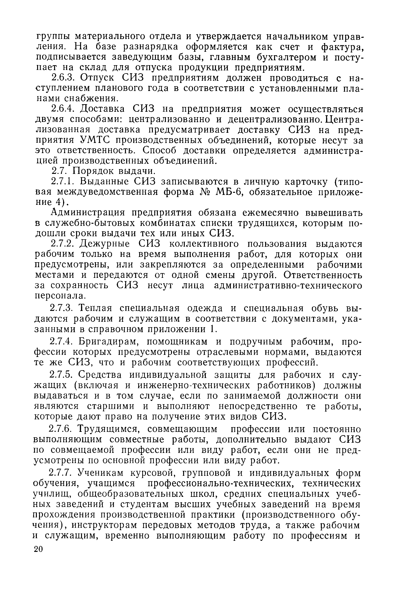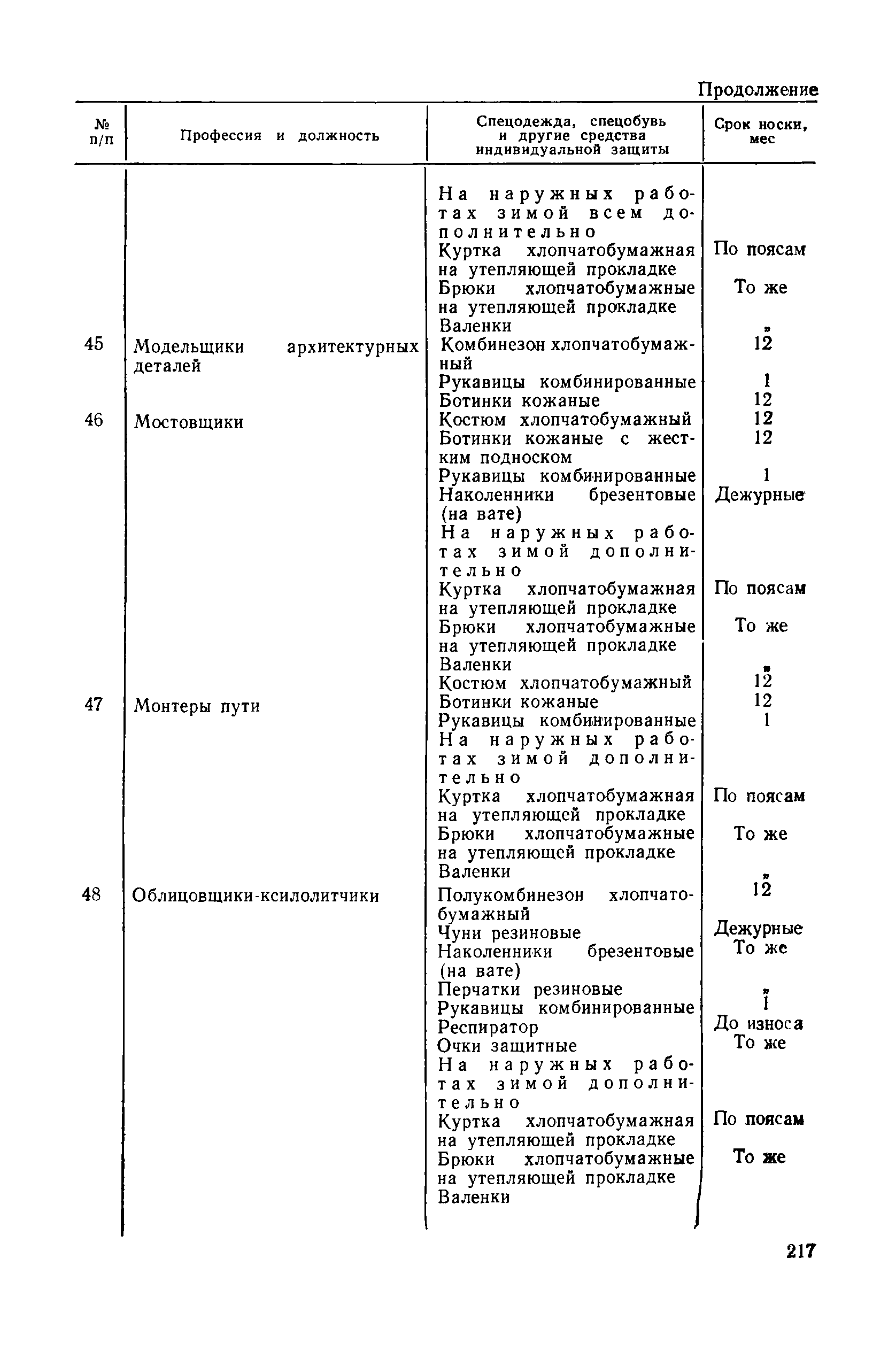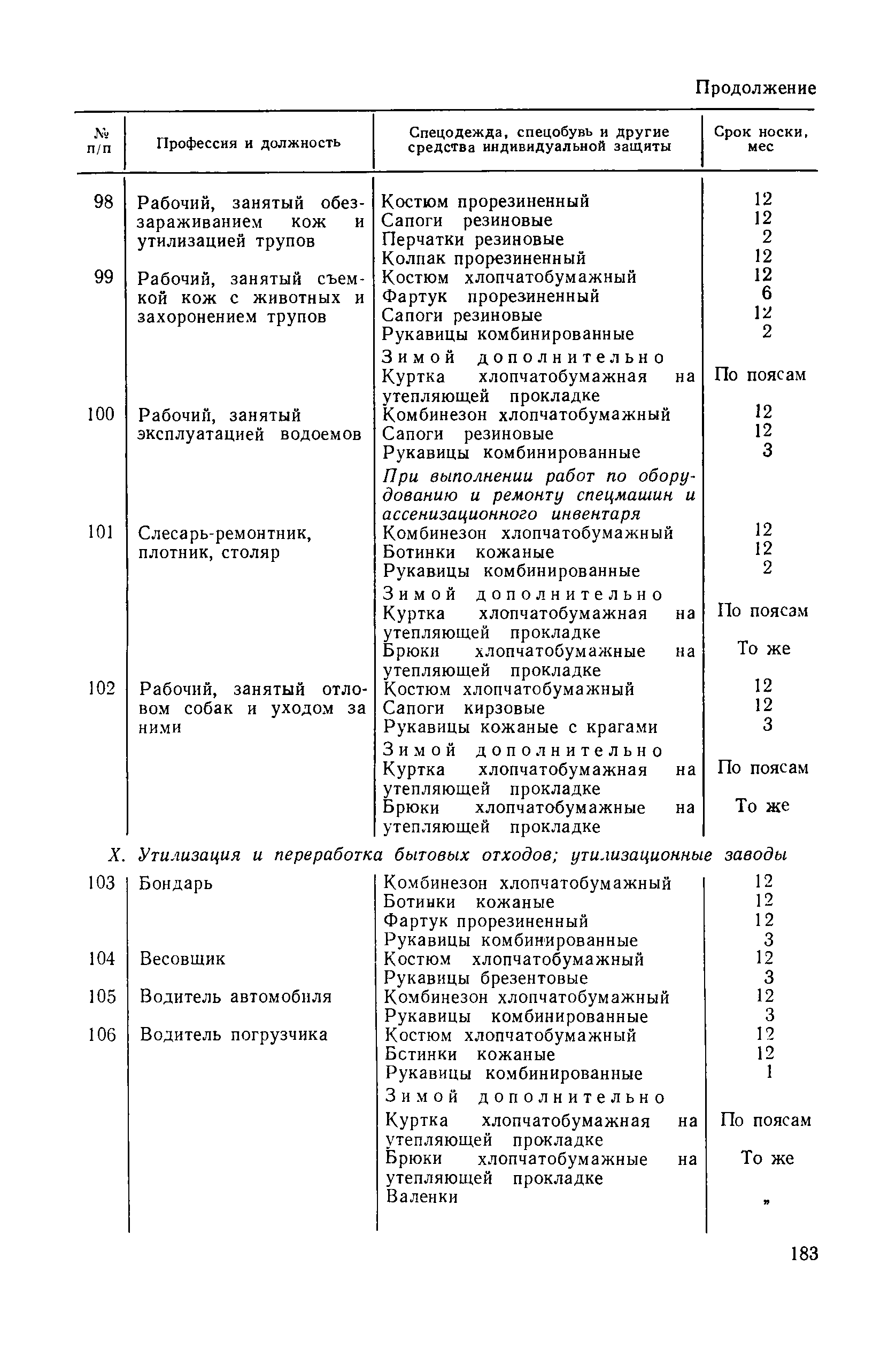 Нормы бесплатной выдачи средств индивидуальной защиты для работников угольной промышленности| Статус: | справочные материалы, мп, тпр | | Название рус.: | Нормы бесплатной выдачи средств индивидуальной защиты для работников угольной промышленности | | Дата добавления в базу: | 01.02.2020 | | Дата актуализации: | 01.01.2021 | | Область применения: | В документе приведены типовые отраслевые (угольной промышленности) нормы бесплатной выдачи спецодежды, спецобуви и необходимые извлечения из типовых норм других отраслей для работающих в шахтах, карьерах, на шахтной поверхности и обогатительных фабриках | | Оглавление: | Инструкция о порядке обеспечения рабочих и служащих специальной одеждой, специальной обувью и другими средствами индивидуальной защиты Система стандартов безопасности труда. Средства индивидуальной защиты. Порядок обеспечения. Правила хранения, эксплуатации и ухода. ОСТ 12.24.255-85 Временная инструкция о порядке испытаний, приемки, хранения и транспортировки спецодежды, спецобуви и защитных шахтерских касок Инструкция о порядке выдачи, хранения, пользования и учета санитарной одежды, санитарной обуви и санпринадлежностей на предприятиях системы Министерства торговли СССР Типовые отраслевые нормы бесплатной выдачи специальной одежды, специальной обуви и других средств индивидуальной защиты работникам действующих и строящихся шахт, разрезов и предприятий угольной и сланцевой промышленности Нормы бесплатной выдачи рабочим и служащим теплой специальной одежды и специальной обуви по климатическим поясам, единым для всех отраслей народного хозяйства (кроме климатических районов, предусмотренных особо в Типовых отраслевых нормах бесплатной выдачи специальной одежды, специальной обуви и других средств ндивидуальной защиты; рабочим и служащим морского транспорта; рабочим и служащим гражданской авиации; рабочим и служащим, осуществляющим наблюдения и работы по гидрометеорологическому режиму окружающей среды; постоянному и переменному составу учебных и спортивных организаций ДОСААФ СССР) Типовые отраслевые нормы бесплатной выдачи специальной одежды, специальной обуви и других средств индивидуальной защиты рабочим и служащим сквозных профессий и должностей всех отраслей народного хозяйства и отдельных производств Типовые отраслевые нормы бесплатной выдачи специальной одежды, специальной обуви и других средств индивидуальной защиты рабочим и служащим, занятым на геологических, топографо-геодезических, изыскательских, землеустроительных работах и в картографическом производстве Типовые отраслевые нормы бесплатной выдачи специальной одежды, специальной обуви и других средств индивидуальной защиты рабочим и служащим паросилового и энергетического хозяйства (кроме производства электрической энергии) Типовые отраслевые нормы бесплатной выдачи специальной одежды, специальной обуви и других средств индивидуальной защиты рабочим и служащим автомобильного транспорта и шоссейных дорог Типовые отраслевые нормы бесплатной выдачи специальной одежды, специальной обуви и других средств индивидуальной защиты рабочим и служащим железнодорожного транспорта (железнодорожный внутризаводской транспорт) Типовые отраслевые нормы бесплатной выдачи специальной одежды, специальной обуви я других средств индивидуа