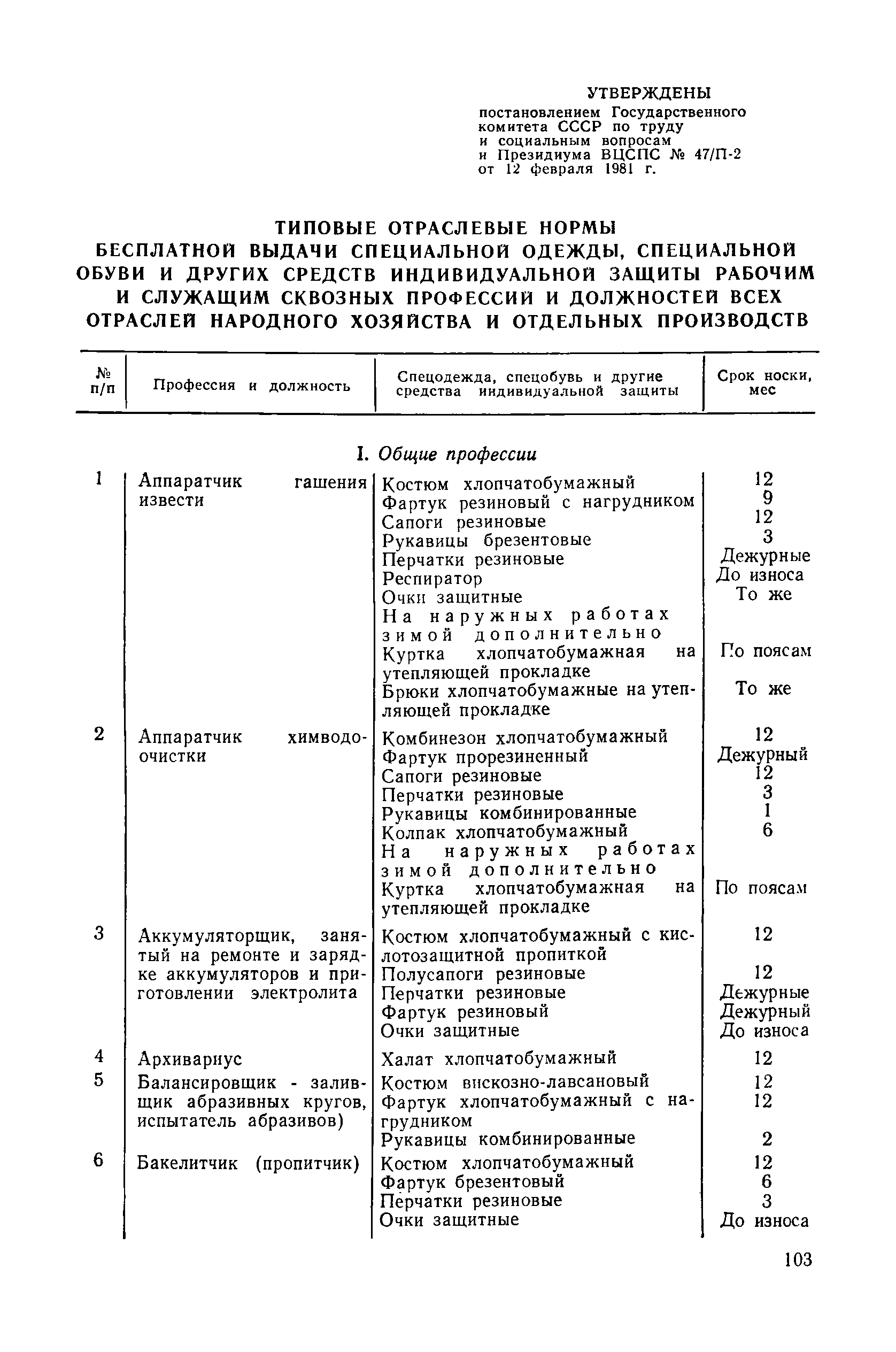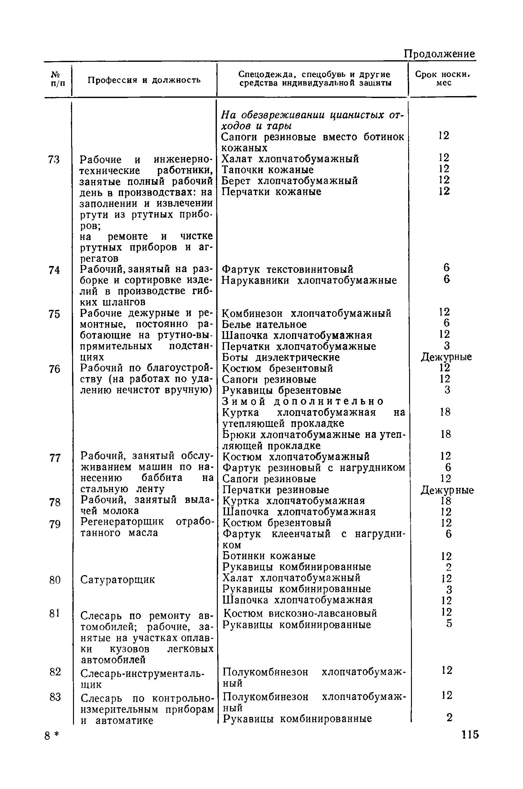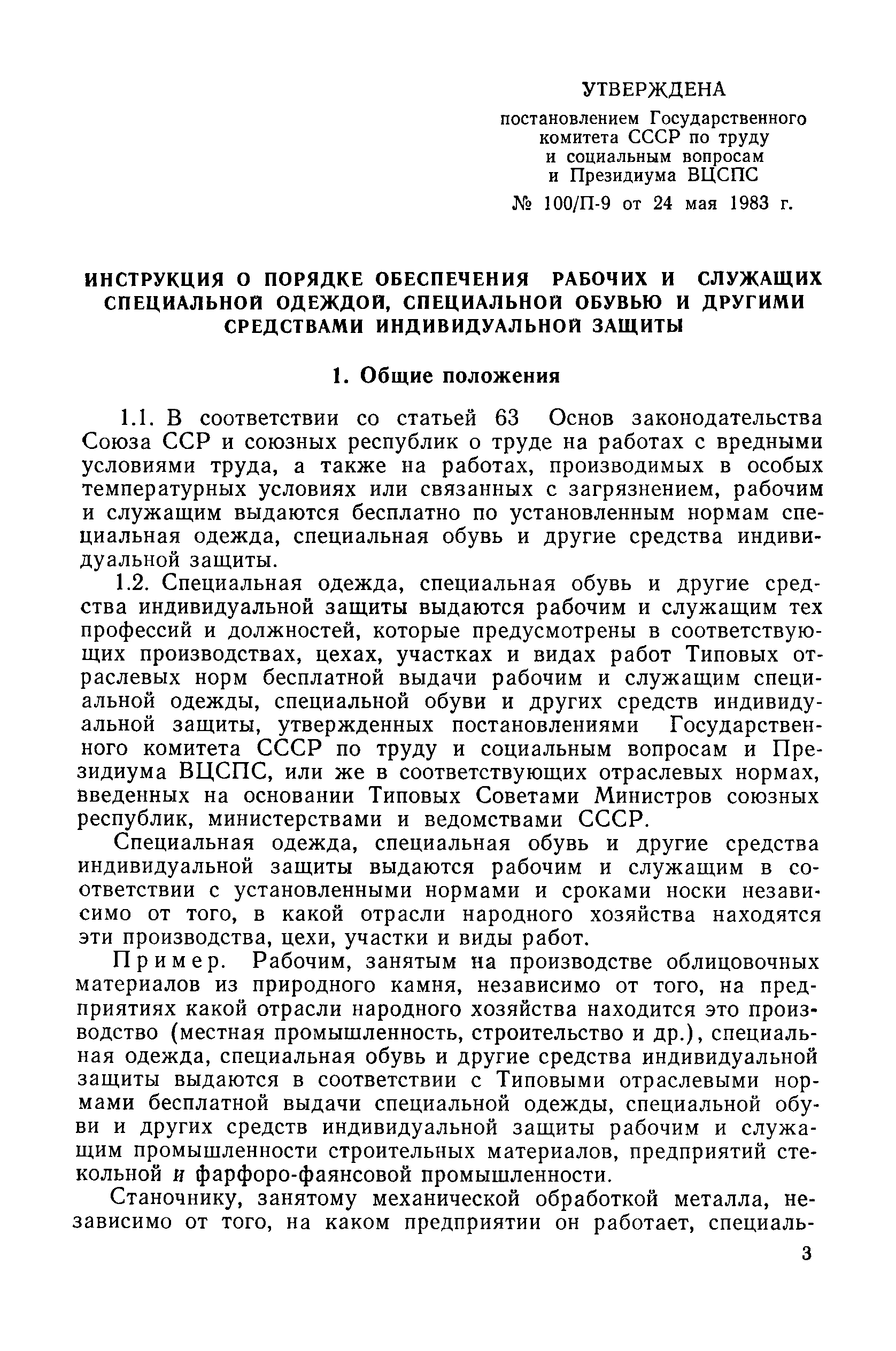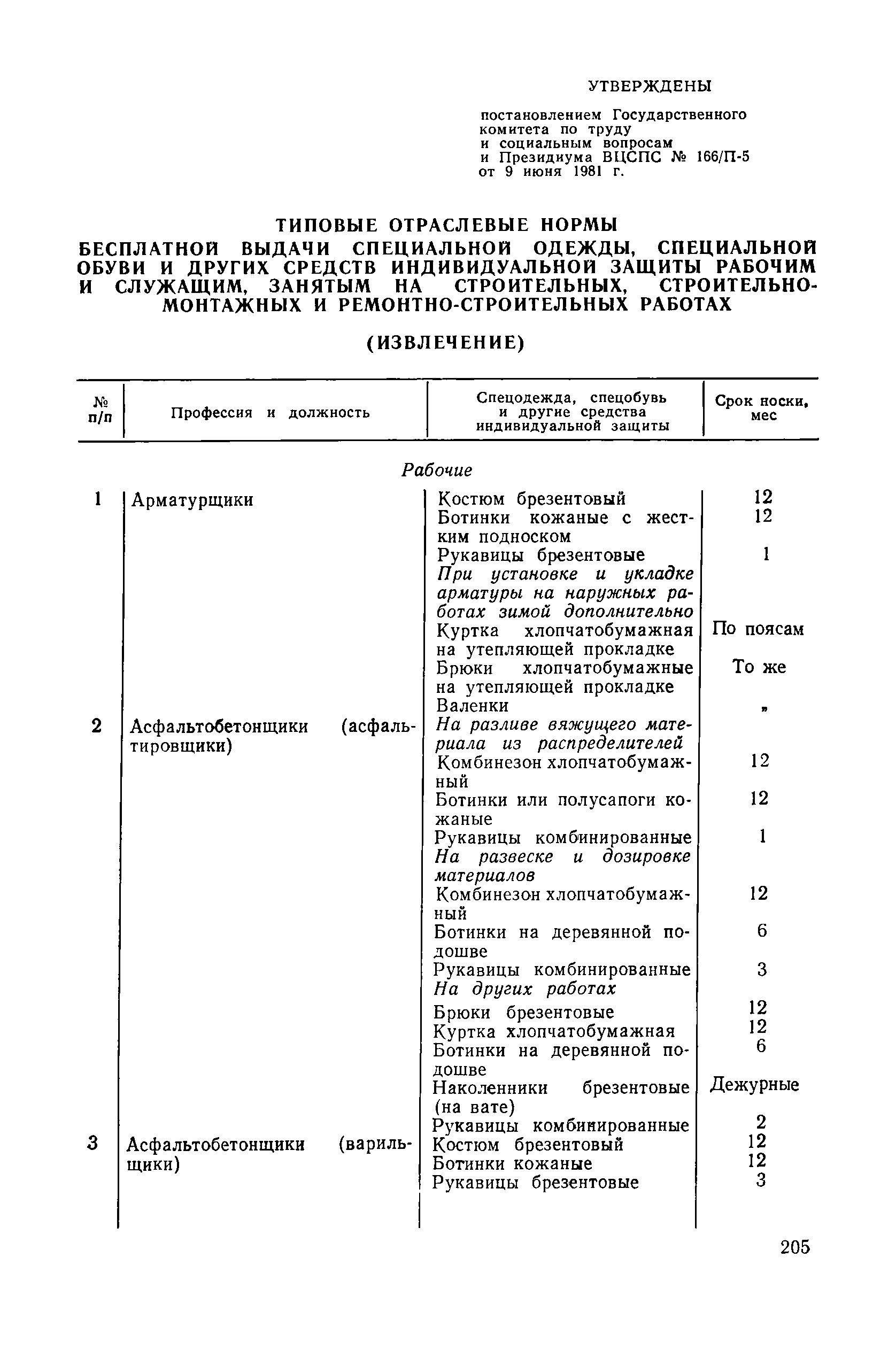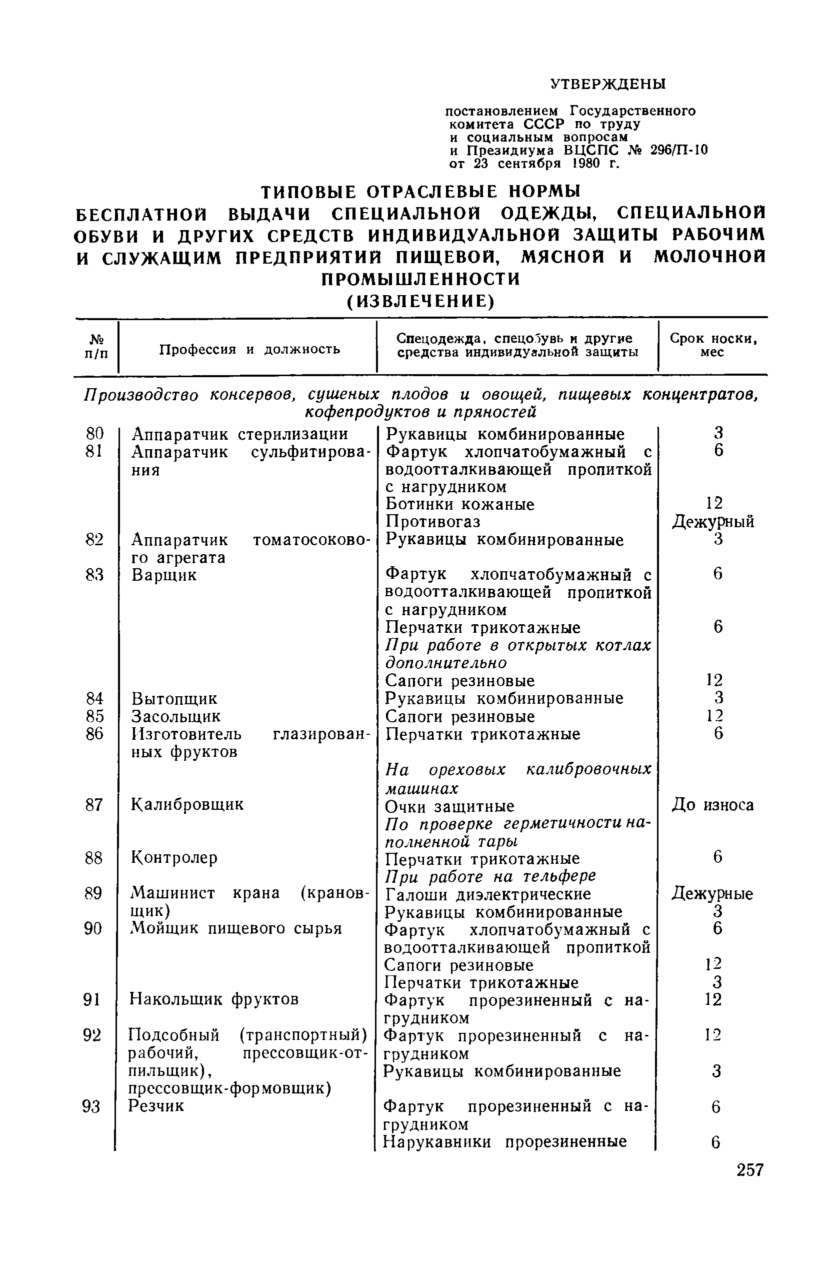 Нормы бесплатной выдачи средств индивидуальной защиты для работников угольной промышленности| Статус: | справочные материалы, мп, тпр | | Название рус.: | Нормы бесплатной выдачи средств индивидуальной защиты для работников угольной промышленности | | Дата добавления в базу: | 01.02.2020 | | Дата актуализации: | 01.01.2021 | | Область применения: | В документе приведены типовые отраслевые (угольной промышленности) нормы бесплатной выдачи спецодежды, спецобуви и необходимые извлечения из типовых норм других отраслей для работающих в шахтах, карьерах, на шахтной поверхности и обогатительных фабриках | | Оглавление: | Инструкция о порядке обеспечения рабочих и служащих специальной одеждой, специальной обувью и другими средствами индивидуальной защиты Система стандартов безопасности труда. Средства индивидуальной защиты. Порядок обеспечения. Правила хранения, эксплуатации и ухода. ОСТ 12.24.255-85 Временная инструкция о порядке испытаний, приемки, хранения и транспортировки спецодежды, спецобуви и защитных шахтерских касок Инструкция о порядке выдачи, хранения, пользования и учета санитарной одежды, санитарной обуви и санпринадлежностей на предприятиях системы Министерства торговли СССР Типовые отраслевые нормы бесплатной выдачи специальной одежды, специальной обуви и других средств индивидуальной защиты работникам действующих и строящихся шахт, разрезов и предприятий угольной и сланцевой промышленности Нормы бесплатной выдачи рабочим и служащим теплой специальной одежды и специальной обуви по климатическим поясам, единым для всех отраслей народного хозяйства (кроме климатических районов, предусмотренных особо в Типовых отраслевых нормах бесплатной выдачи специальной одежды, специальной обуви и других средств ндивидуальной защиты; рабочим и служащим морского транспорта; рабочим и служащим гражданской авиации; рабочим и служащим, осуществляющим наблюдения и работы по гидрометеорологическому режиму окружающей среды; постоянному и переменному составу учебных и спортивных организаций ДОСААФ СССР) Типовые отраслевые нормы бесплатной выдачи специальной одежды, специальной обуви и других средств индивидуальной защиты рабочим и служащим сквозных профессий и должностей всех отраслей народного хозяйства и отдельных производств Типовые отраслевые нормы бесплатной выдачи специальной одежды, специальной обуви и других средств индивидуальной защиты рабочим и служащим, занятым на геологических, топографо-геодезических, изыскательских, землеустроительных работах и в картографическом производстве Типовые отраслевые нормы бесплатной выдачи специальной одежды, специальной обуви и других средств индивидуальной защиты рабочим и служащим паросилового и энергетического хозяйства (кроме производства электрической энергии) Типовые отраслевые нормы бесплатной выдачи специальной одежды, специальной обуви и других средств индивидуальной защиты рабочим и служащим автомобильного транспорта и шоссейных дорог Типовые отраслевые нормы бесплатной выдачи специальной одежды, специальной обуви и других средств индивидуальной защиты рабочим и служащим железнодорожного транспорта (железнодорожный внутризаводской транспорт) Типовые отраслевые нормы бесплатной выдачи специальной одежды, специальной обуви я других средств индивидуа