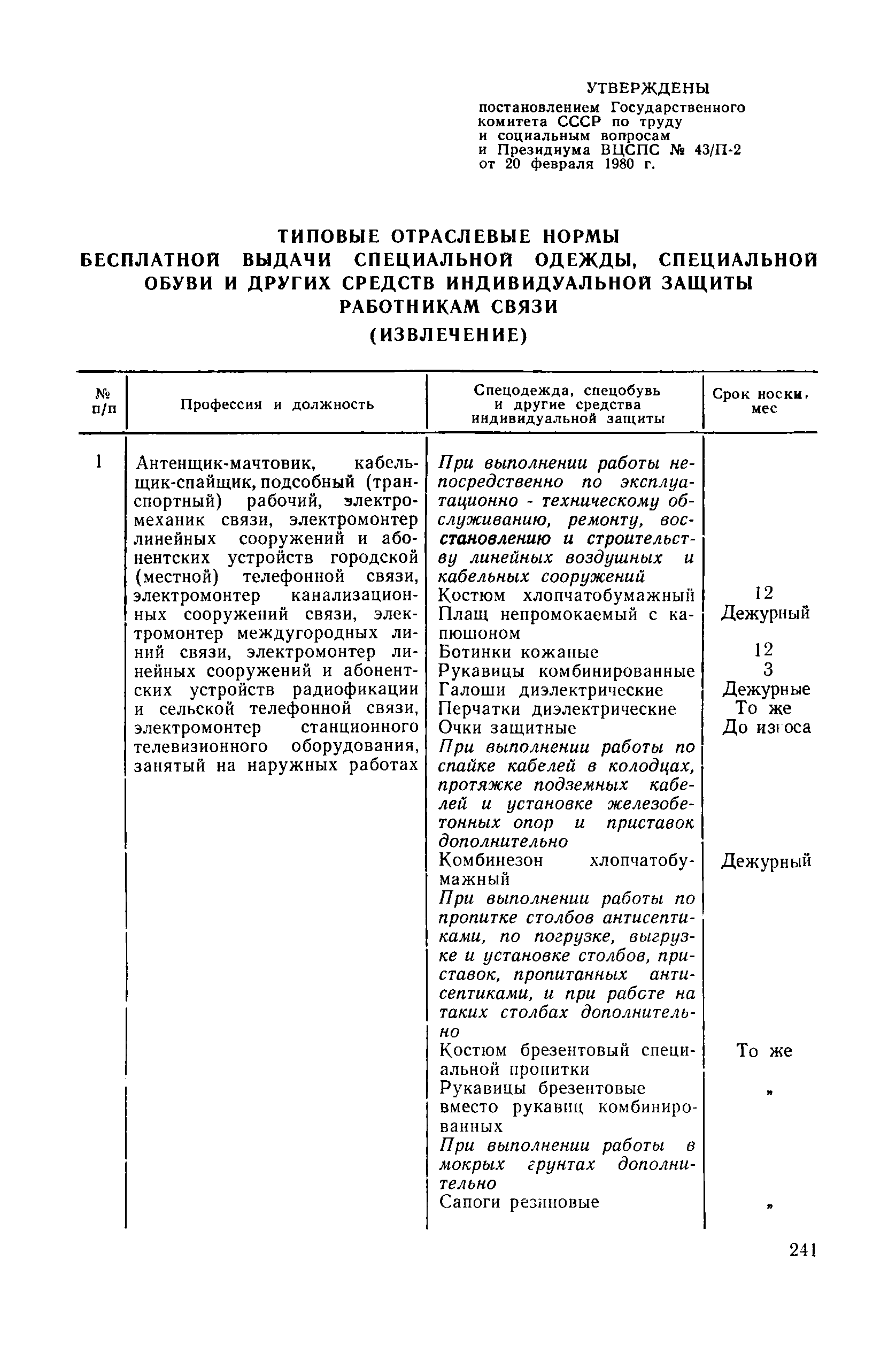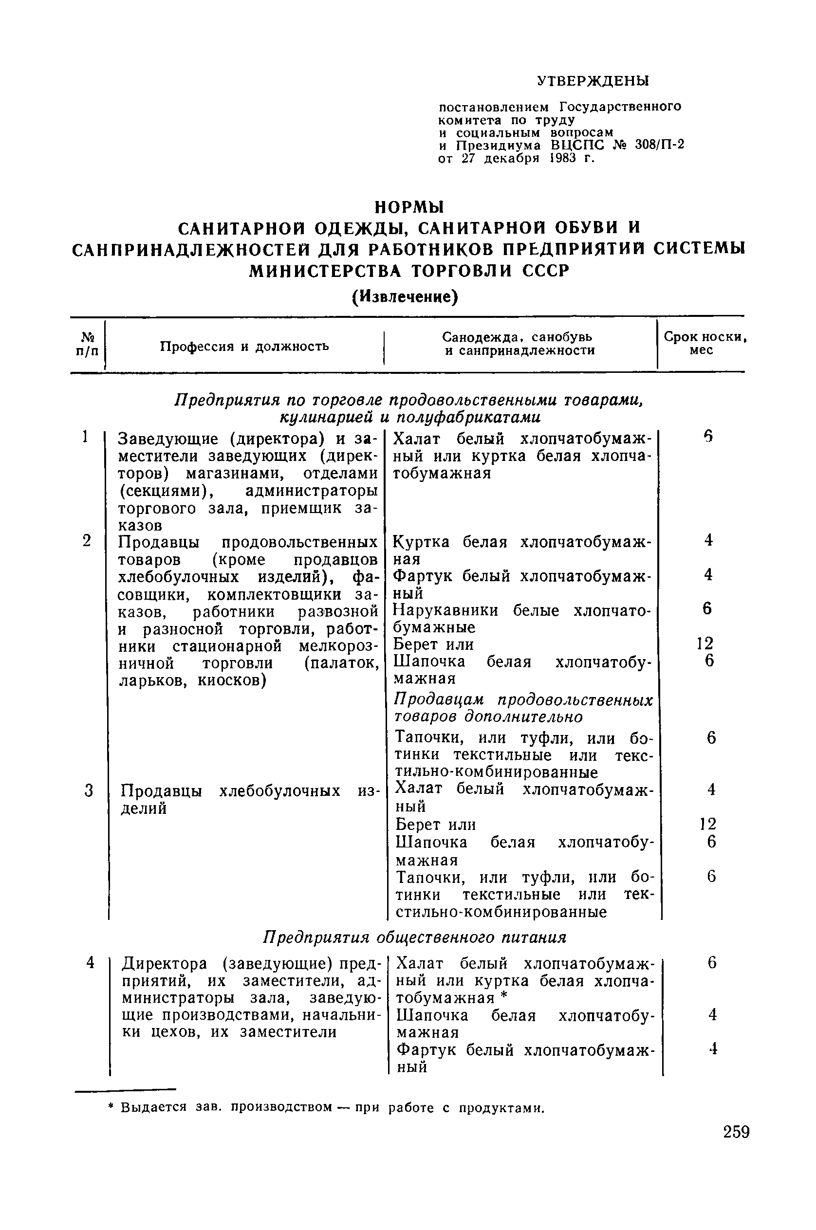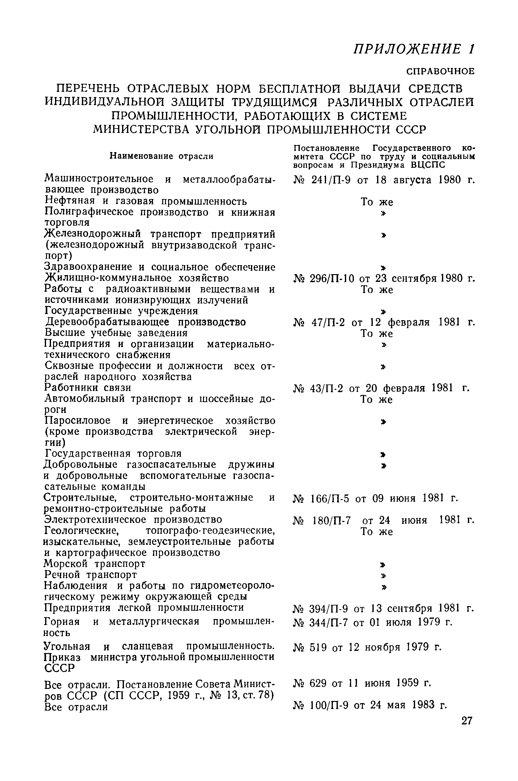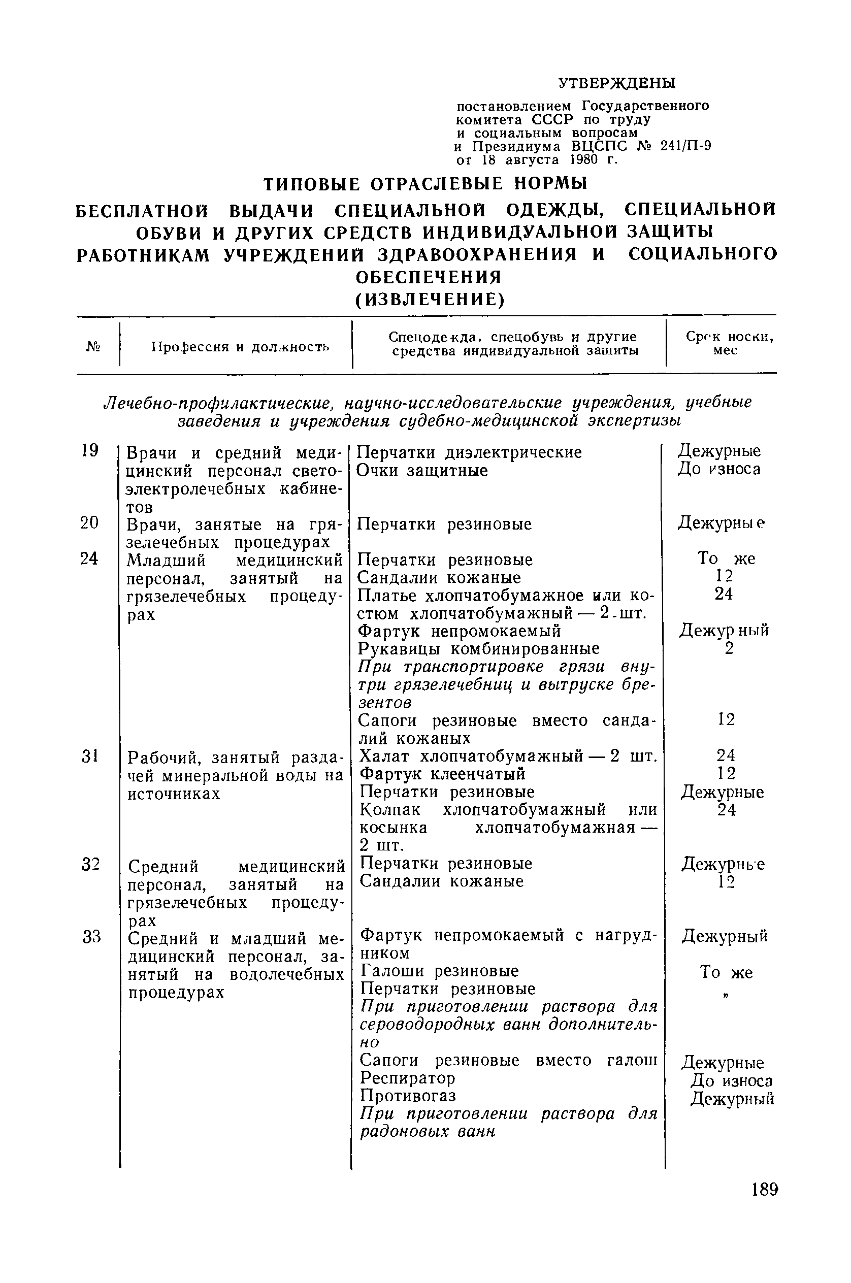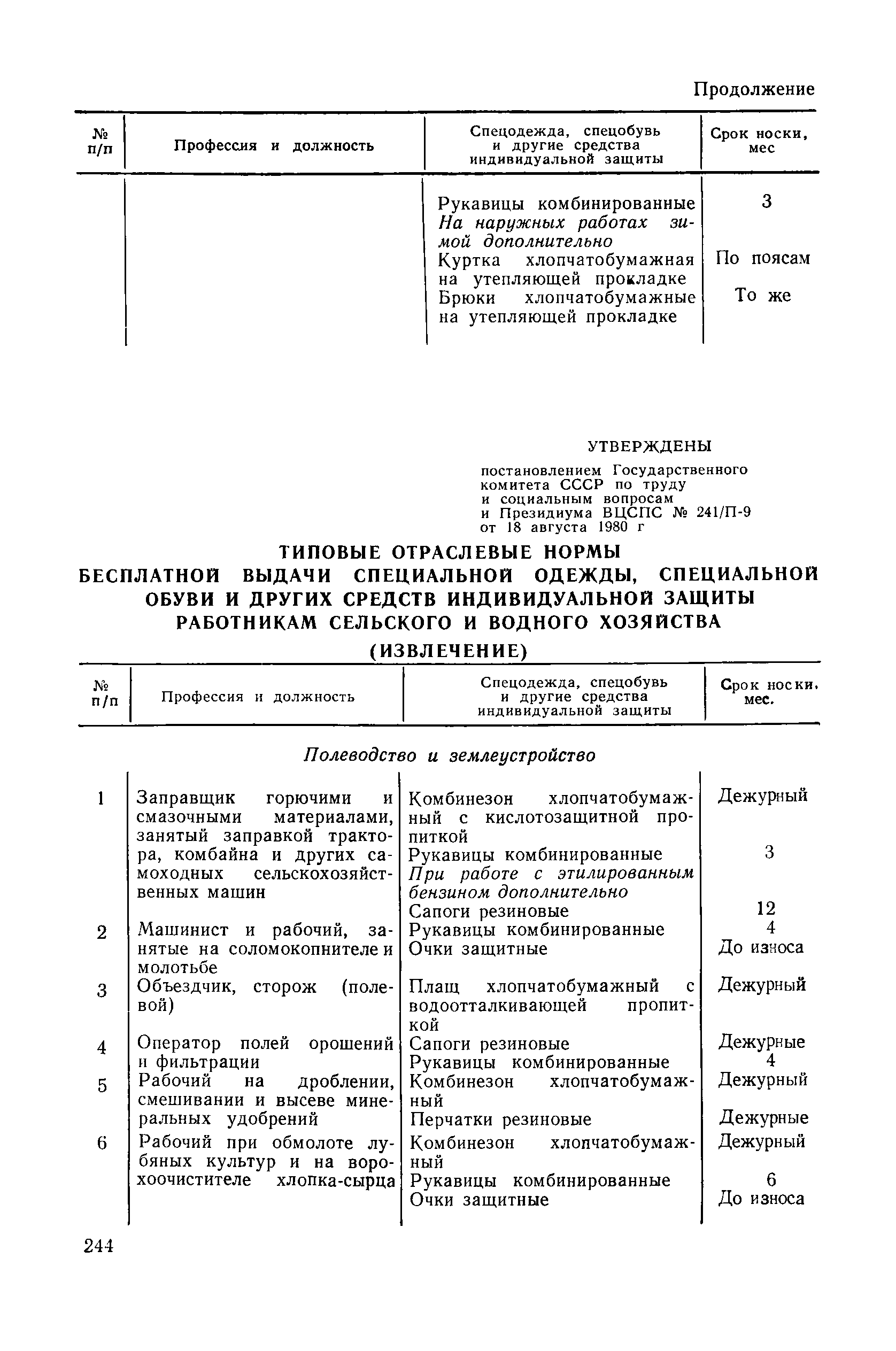 Нормы бесплатной выдачи средств индивидуальной защиты для работников угольной промышленности| Статус: | справочные материалы, мп, тпр | | Название рус.: | Нормы бесплатной выдачи средств индивидуальной защиты для работников угольной промышленности | | Дата добавления в базу: | 01.02.2020 | | Дата актуализации: | 01.01.2021 | | Область применения: | В документе приведены типовые отраслевые (угольной промышленности) нормы бесплатной выдачи спецодежды, спецобуви и необходимые извлечения из типовых норм других отраслей для работающих в шахтах, карьерах, на шахтной поверхности и обогатительных фабриках | | Оглавление: | Инструкция о порядке обеспечения рабочих и служащих специальной одеждой, специальной обувью и другими средствами индивидуальной защиты Система стандартов безопасности труда. Средства индивидуальной защиты. Порядок обеспечения. Правила хранения, эксплуатации и ухода. ОСТ 12.24.255-85 Временная инструкция о порядке испытаний, приемки, хранения и транспортировки спецодежды, спецобуви и защитных шахтерских касок Инструкция о порядке выдачи, хранения, пользования и учета санитарной одежды, санитарной обуви и санпринадлежностей на предприятиях системы Министерства торговли СССР Типовые отраслевые нормы бесплатной выдачи специальной одежды, специальной обуви и других средств индивидуальной защиты работникам действующих и строящихся шахт, разрезов и предприятий угольной и сланцевой промышленности Нормы бесплатной выдачи рабочим и служащим теплой специальной одежды и специальной обуви по климатическим поясам, единым для всех отраслей народного хозяйства (кроме климатических районов, предусмотренных особо в Типовых отраслевых нормах бесплатной выдачи специальной одежды, специальной обуви и других средств ндивидуальной защиты; рабочим и служащим морского транспорта; рабочим и служащим гражданской авиации; рабочим и служащим, осуществляющим наблюдения и работы по гидрометеорологическому режиму окружающей среды; постоянному и переменному составу учебных и спортивных организаций ДОСААФ СССР) Типовые отраслевые нормы бесплатной выдачи специальной одежды, специальной обуви и других средств индивидуальной защиты рабочим и служащим сквозных профессий и должностей всех отраслей народного хозяйства и отдельных производств Типовые отраслевые нормы бесплатной выдачи специальной одежды, специальной обуви и других средств индивидуальной защиты рабочим и служащим, занятым на геологических, топографо-геодезических, изыскательских, землеустроительных работах и в картографическом производстве Типовые отраслевые нормы бесплатной выдачи специальной одежды, специальной обуви и других средств индивидуальной защиты рабочим и служащим паросилового и энергетического хозяйства (кроме производства электрической энергии) Типовые отраслевые нормы бесплатной выдачи специальной одежды, специальной обуви и других средств индивидуальной защиты рабочим и служащим автомобильного транспорта и шоссейных дорог Типовые отраслевые нормы бесплатной выдачи специальной одежды, специальной обуви и других средств индивидуальной защиты рабочим и служащим железнодорожного транспорта (железнодорожный внутризаводской транспорт) Типовые отраслевые нормы бесплатной выдачи специальной одежды, специальной обуви я других средств индивидуа