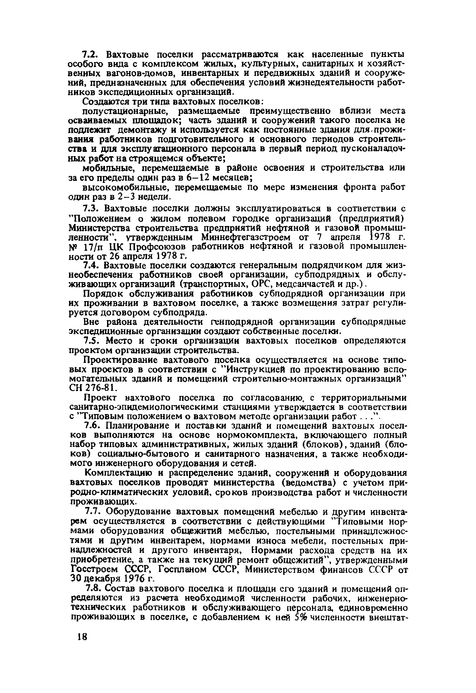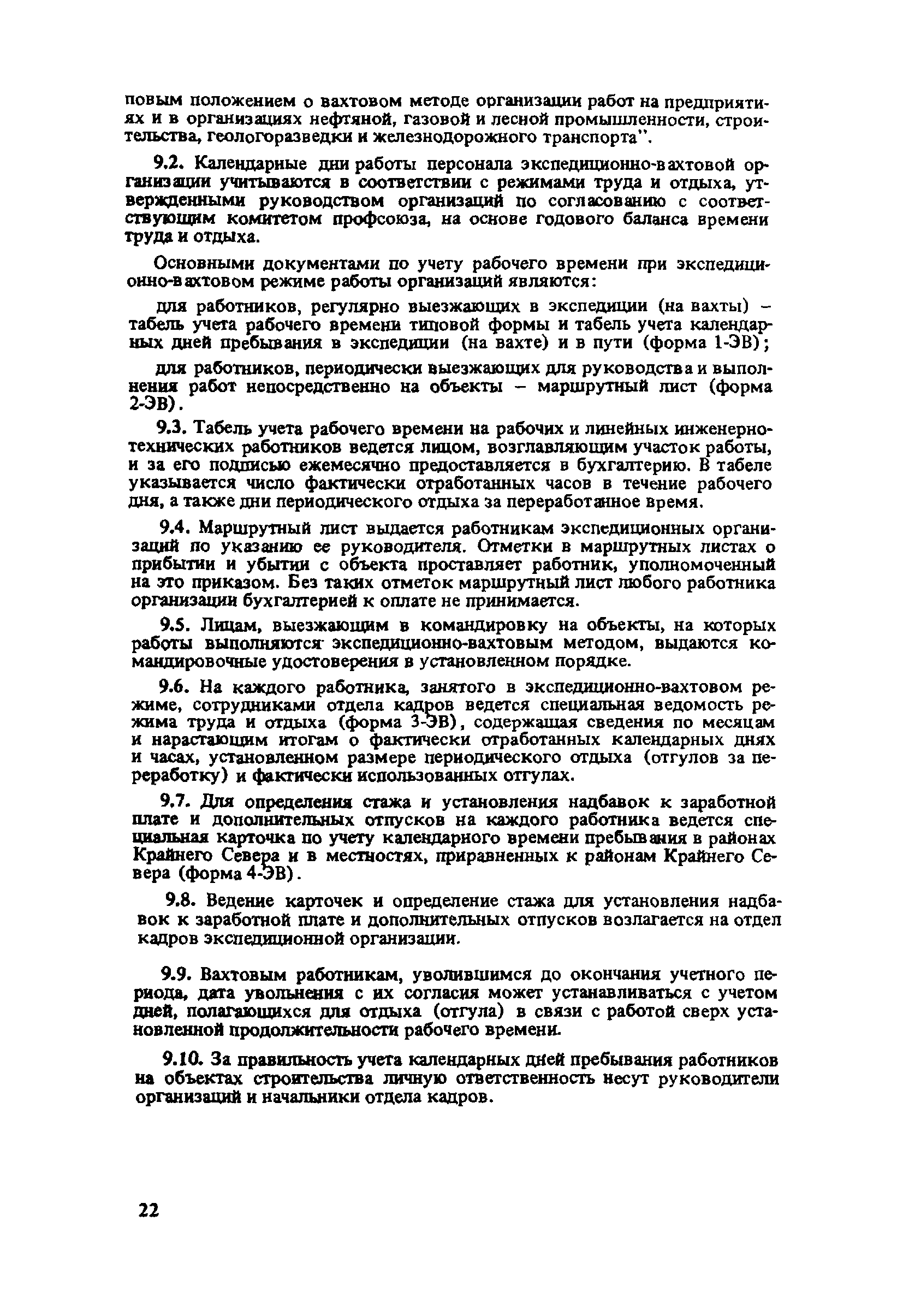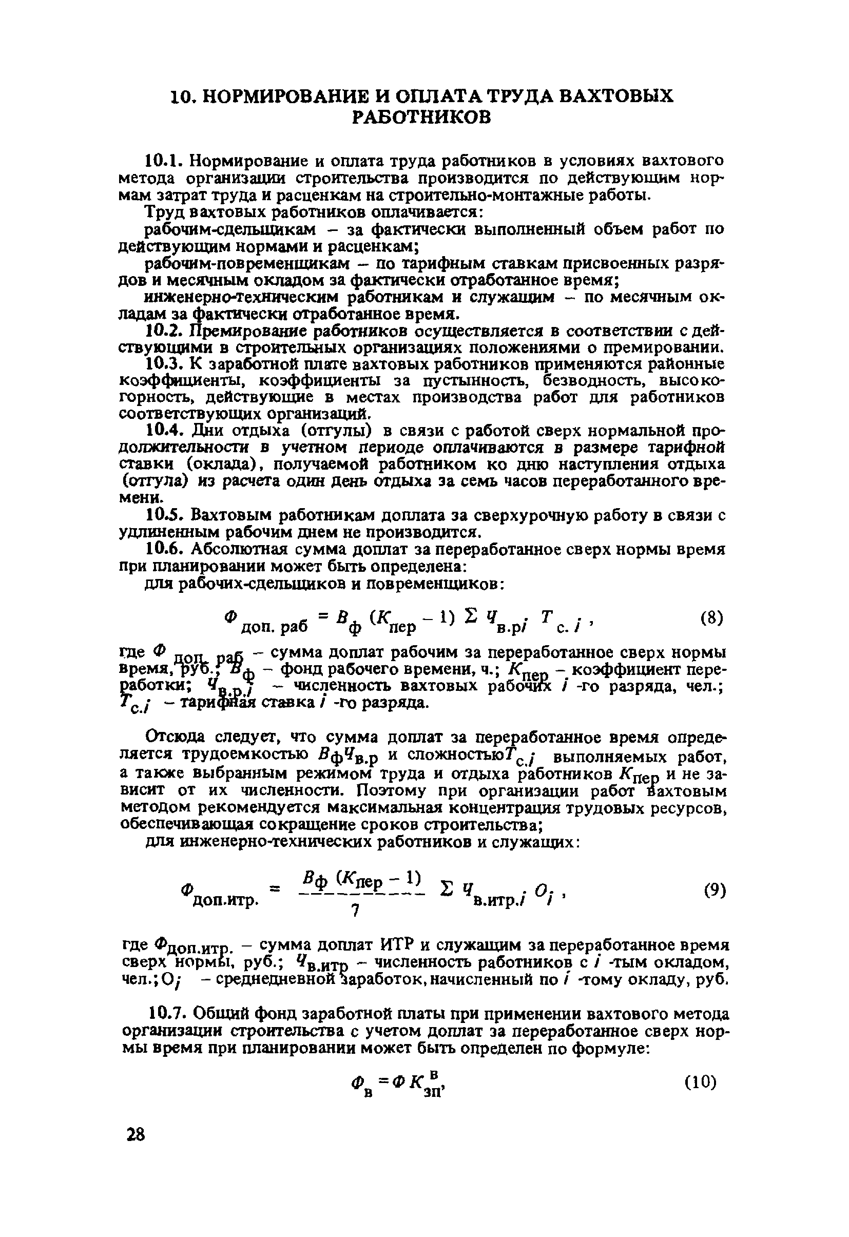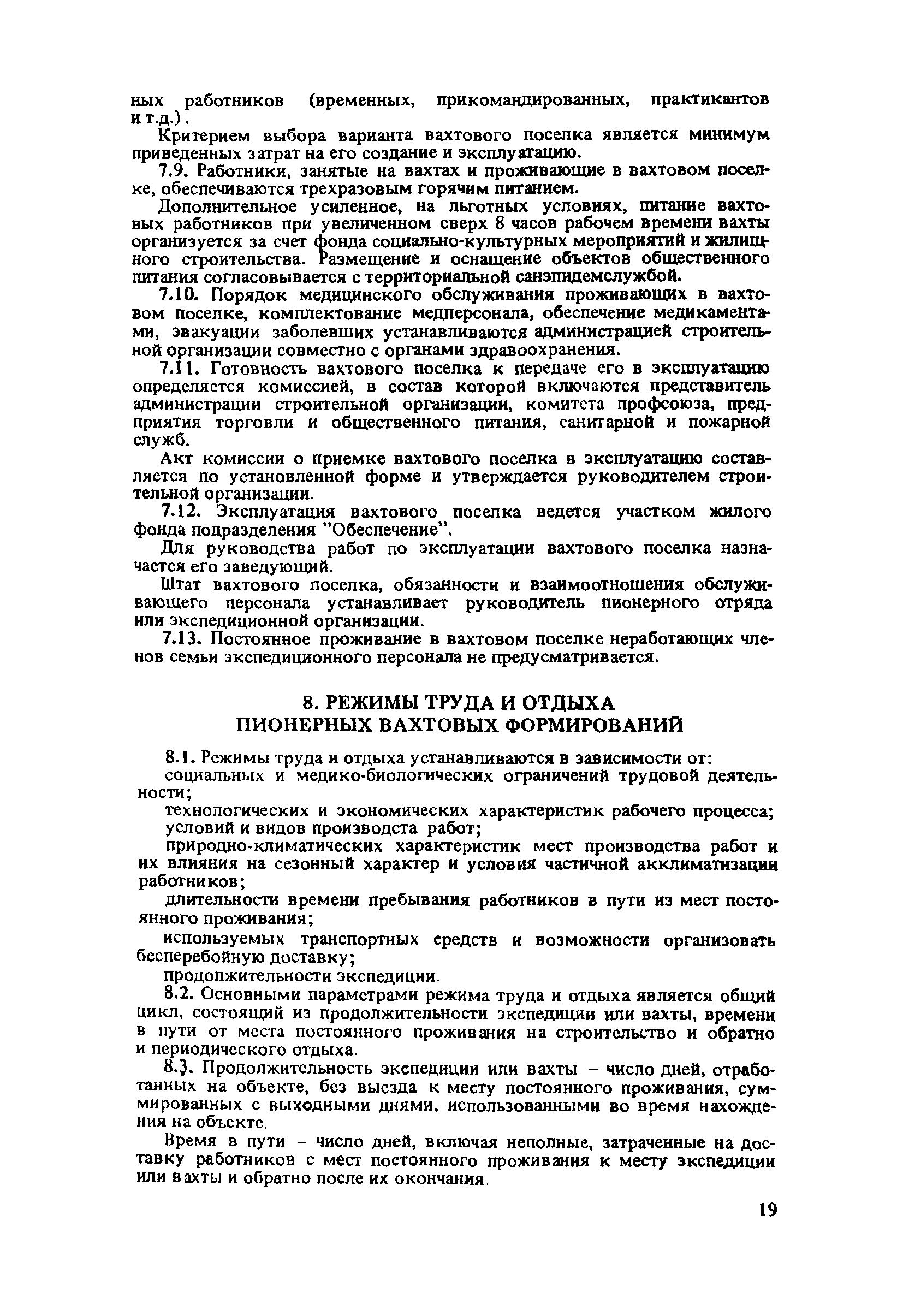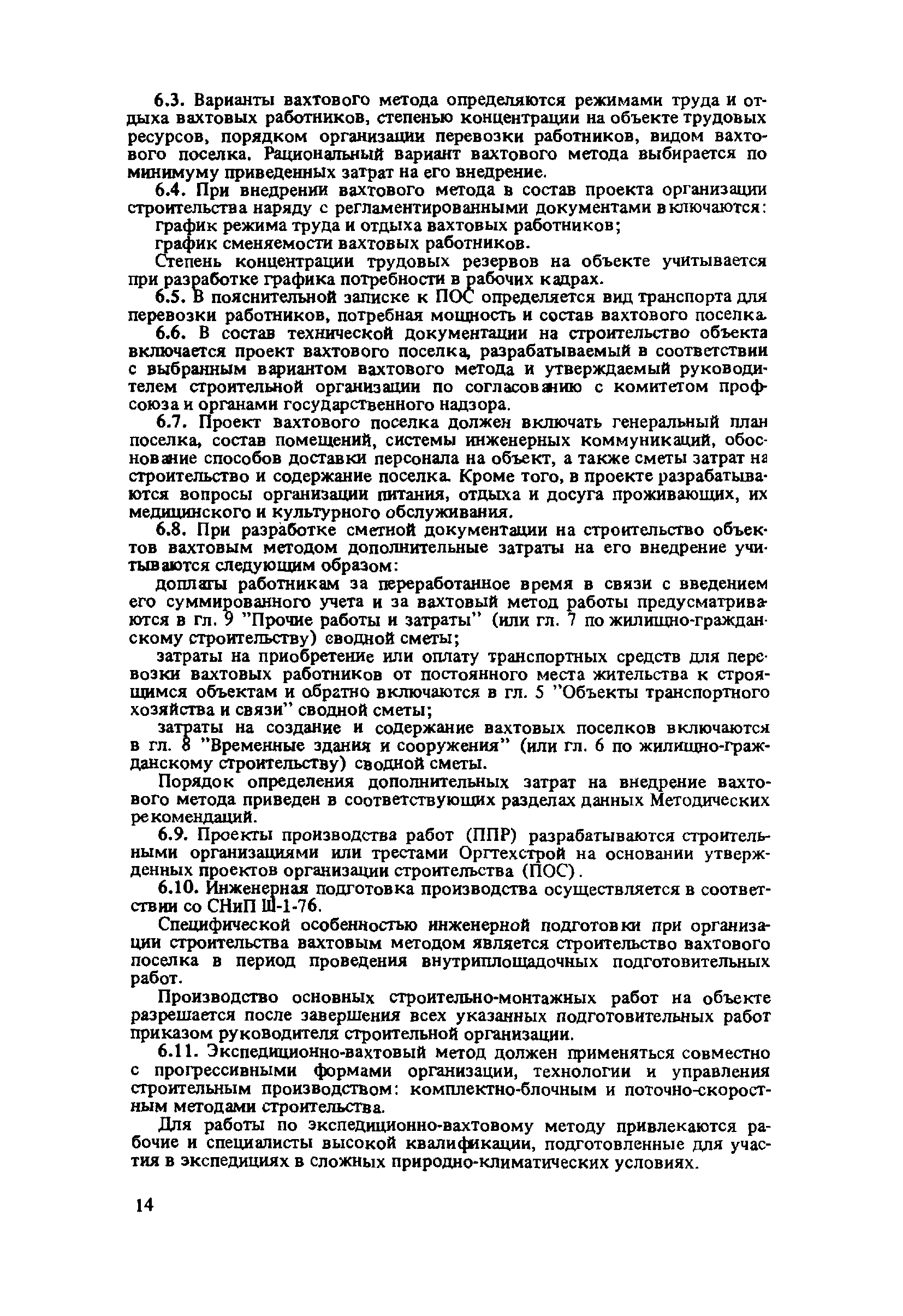 | Оглавление: | Введение 1. Общие положения 2. Структура пионерного комплекса 3. Организация пионерного освоения строительной площадки 4. Обеспечение подразделений пионерного комплекса материально-техническими ресурсами 5. Режимы строительного производства 6. Организация вахтового метода работ 7. Социально-бытовая подготовка. Вахтовые поселки 8. Режимы труда и отдыха пионерных вахтовых формирований 9. Учет рабочего времени 10. Нормирование и оплата труда вахтовых работников 11. Определение эффективности применения вахтового метода производства строительно-монтажных работ Приложение 1. Типовые режимы труда и отдыха вахтовых работников при различной продолжительности рабочей смены и вахтовой работы Приложение 2. Значения коэффициента увеличения фонда заработной платы К В ЗП в зависимости от изменения коэффициента переработки К пер Приложение 3. Строительное освоение новых территорий с экстремальными природными условиями за рубежом пионерными мобильными экспедиционно-вахтовыми строительными комплексами (ПММЭСК) |