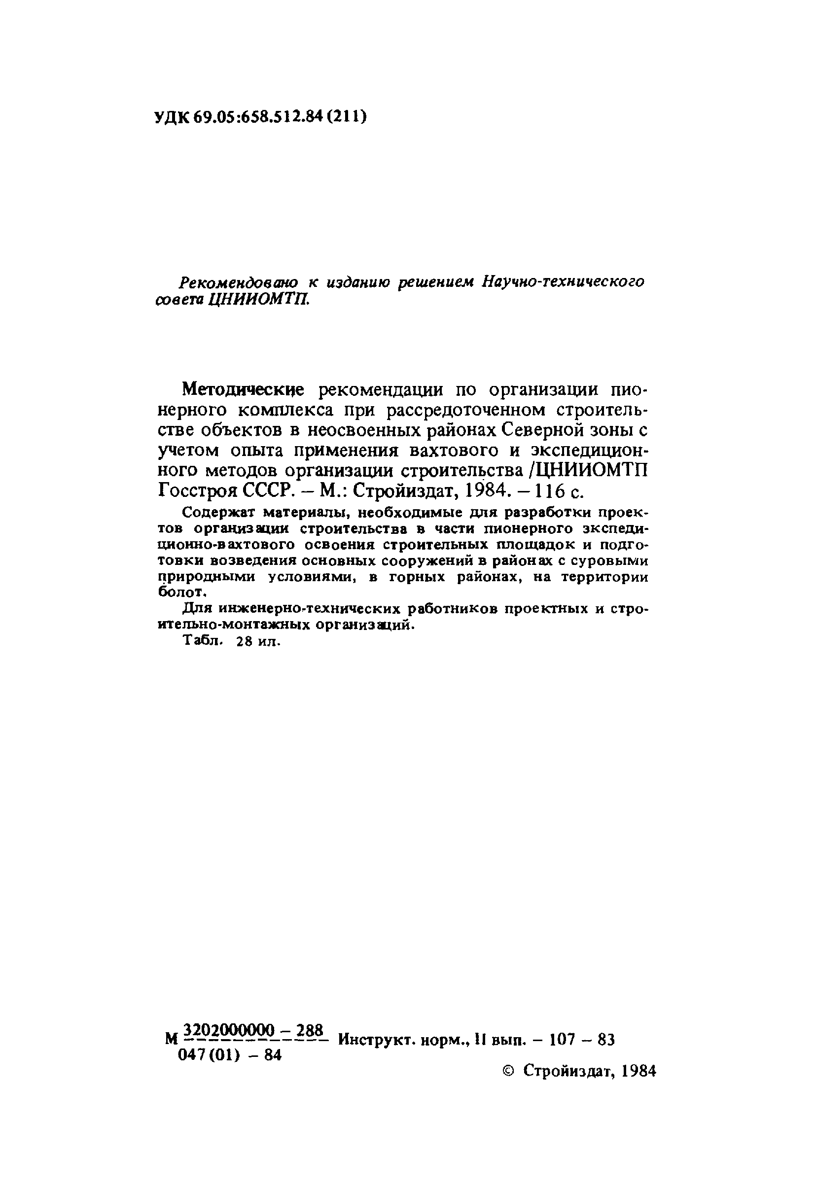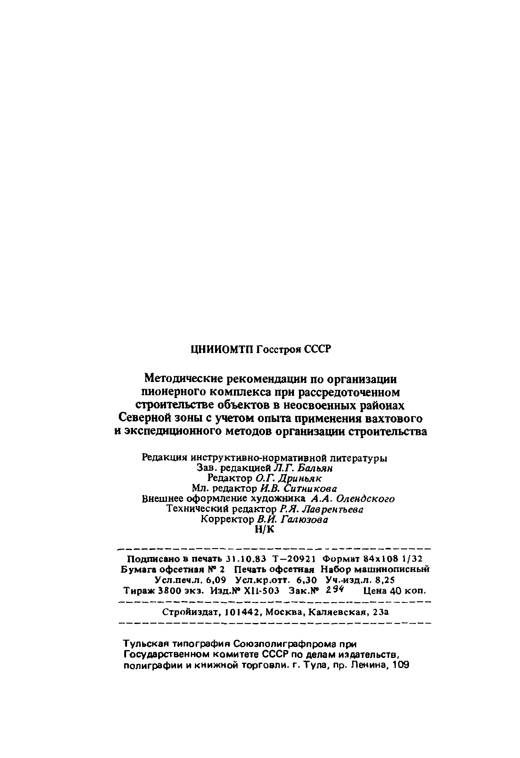 | Название рус.: | Методические рекомендации по организации пионерного комплекса при рассредоточенном строительстве объектов в неосвоенных районах Северной зоны с учетом опыта применения вахтового и экспедиционного методов организации строительства |