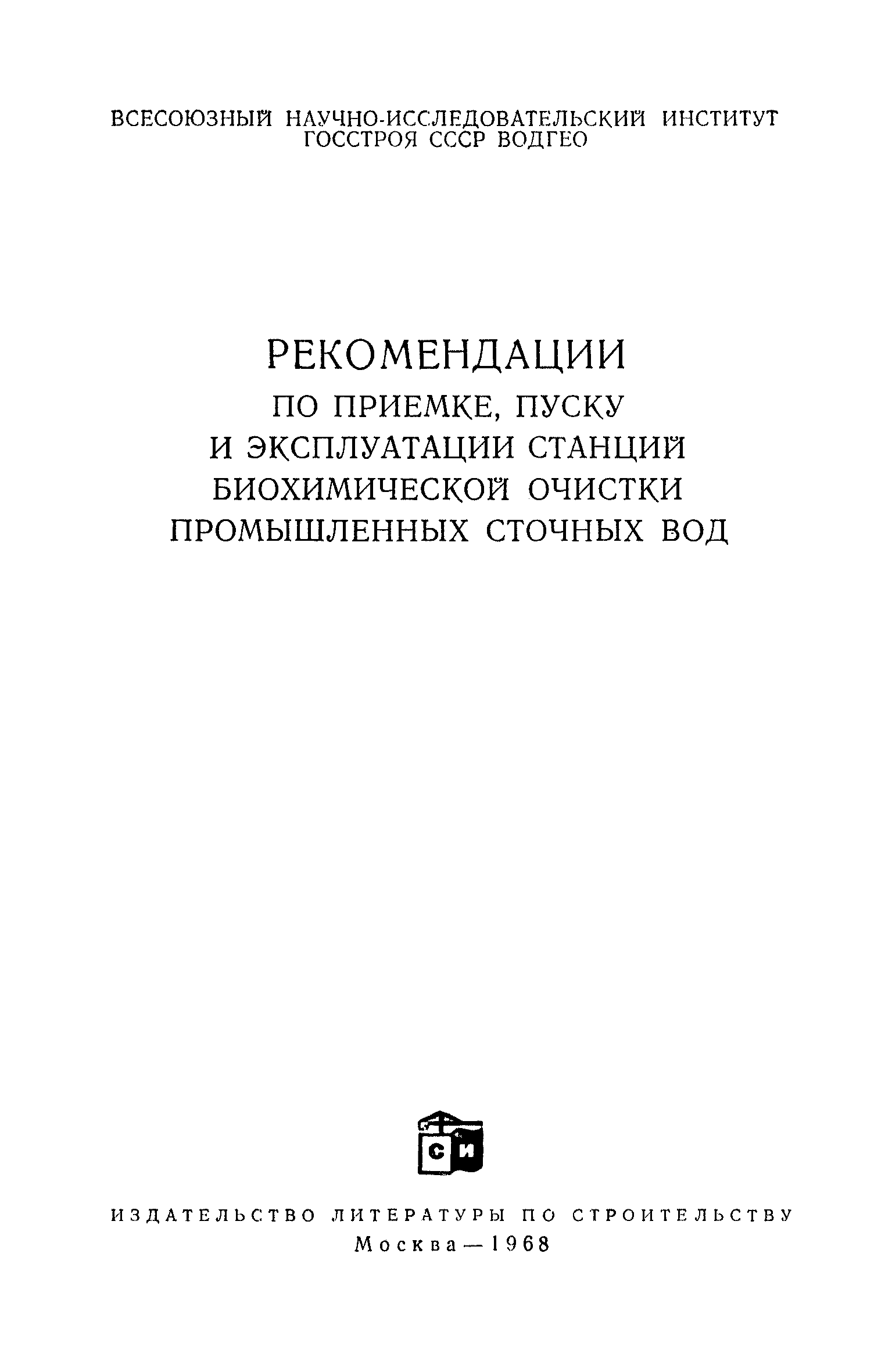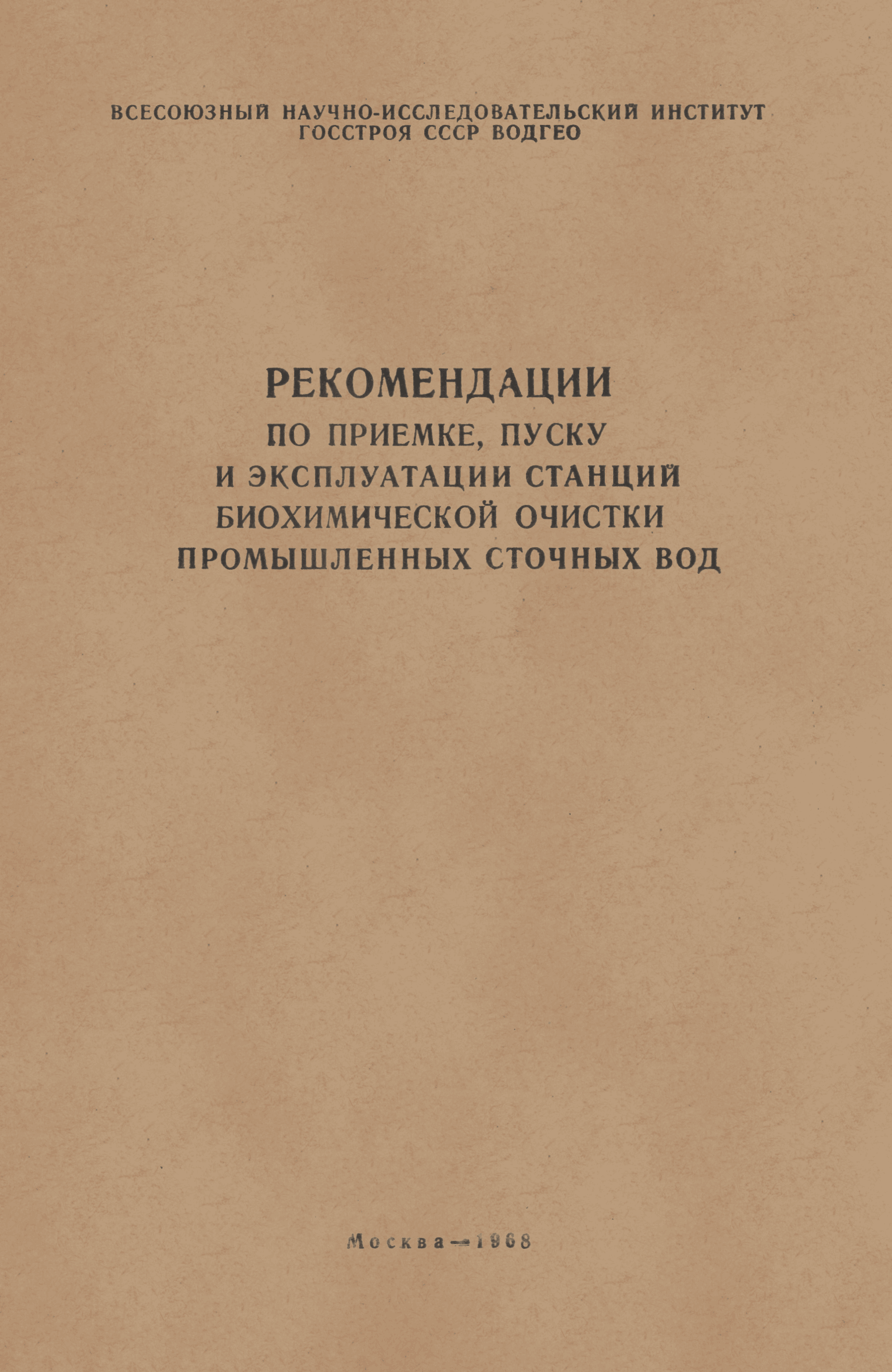 | Название рус.: | Рекомендации по приемке, пуску и эксплуатации станций биохимической очистки промышленных сточных вод |