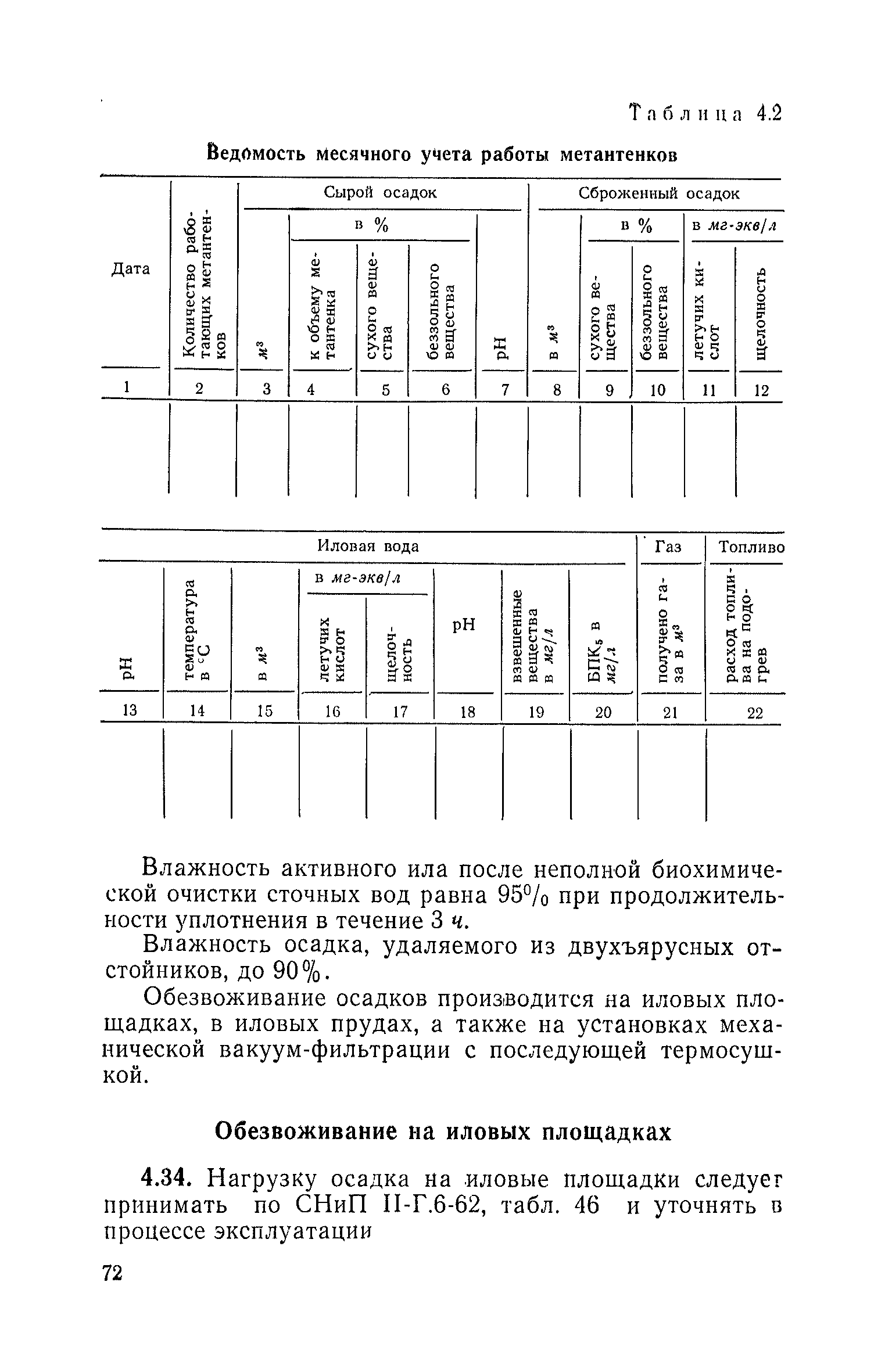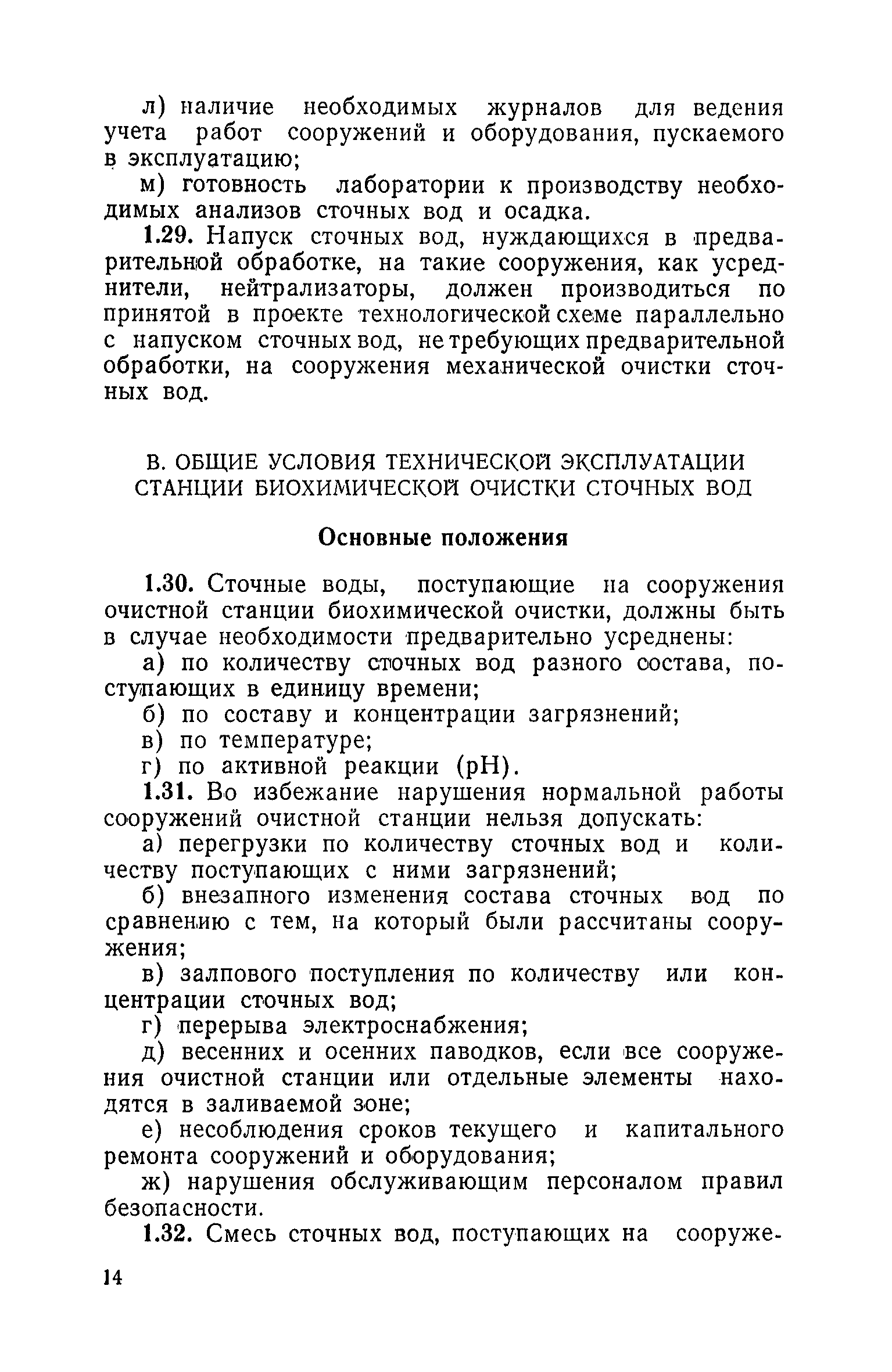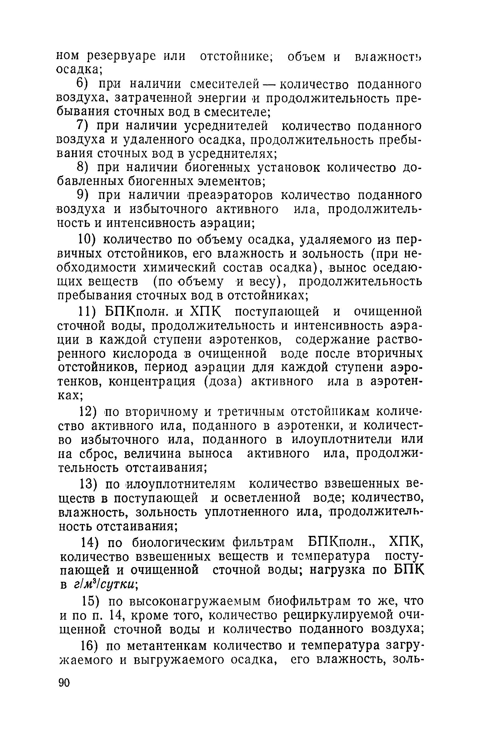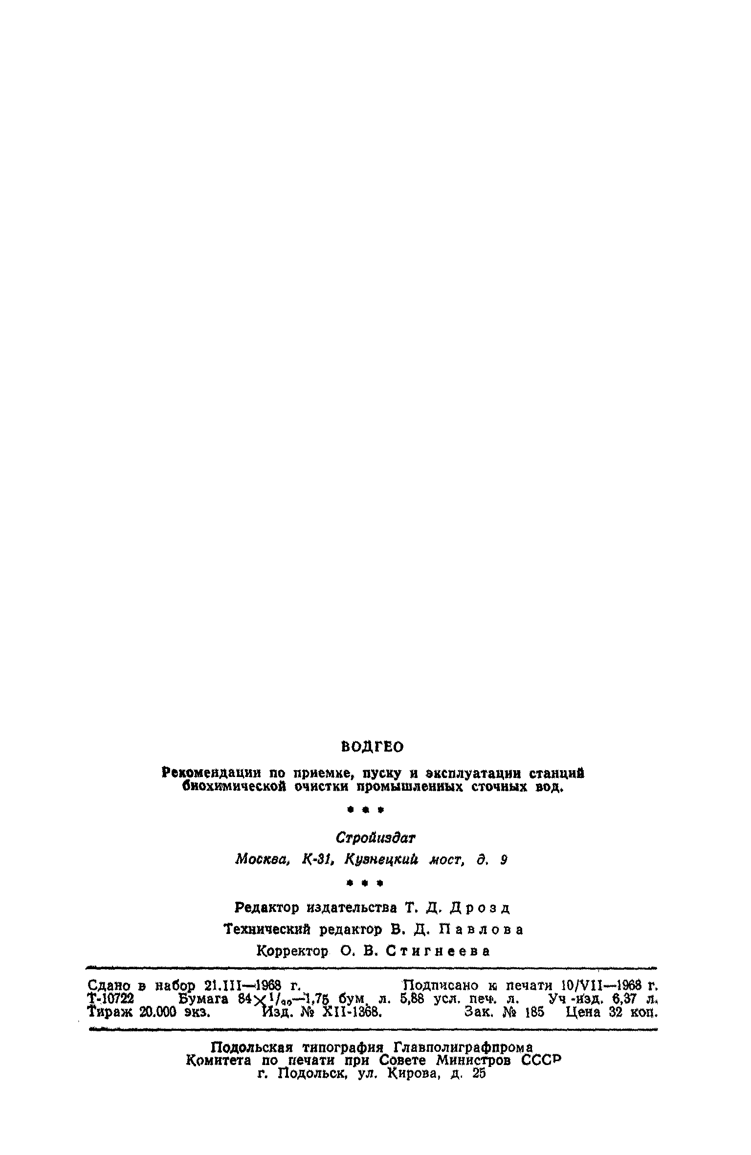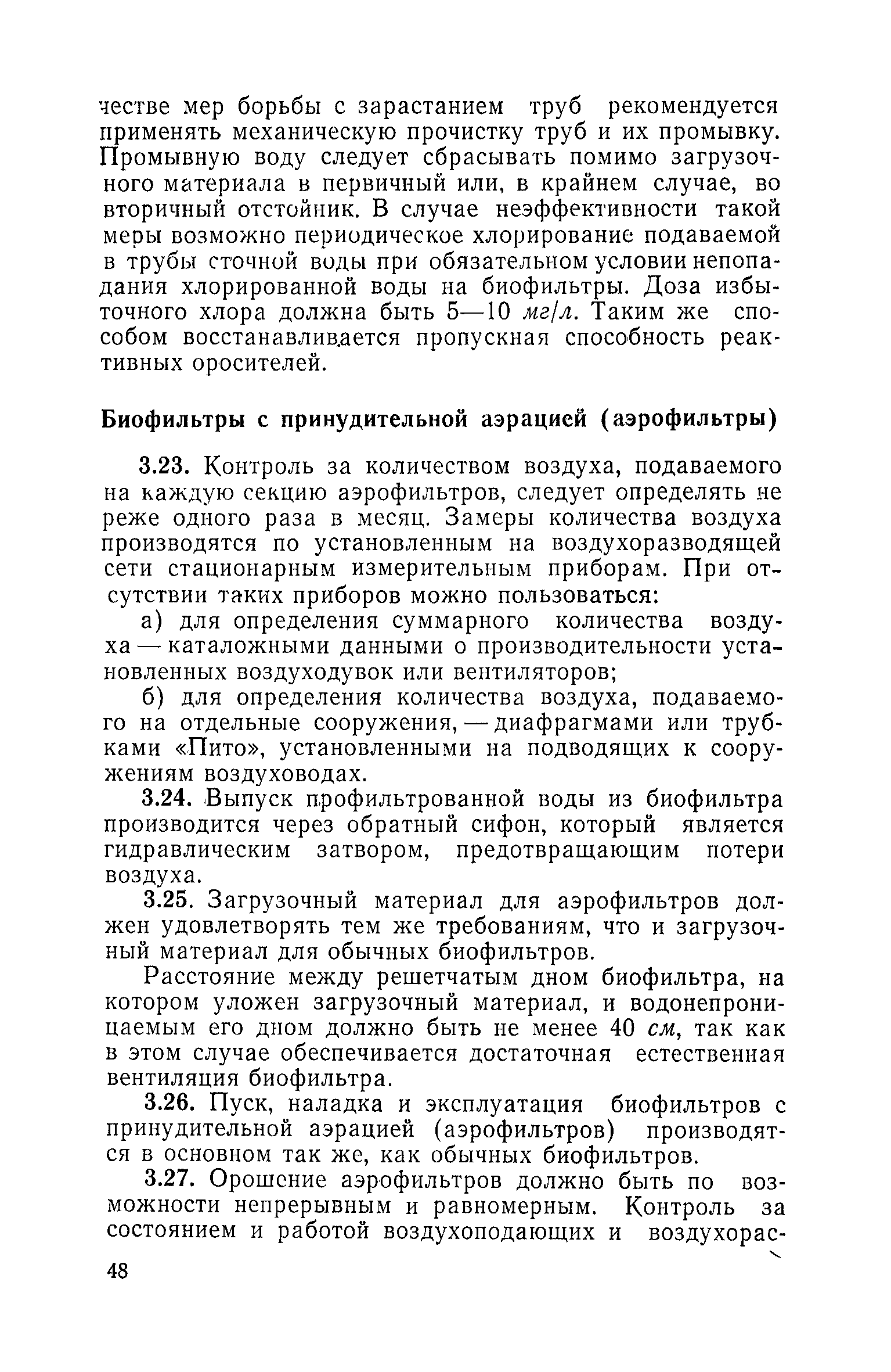 | Оглавление: | Глава 1. Общие условия по приемке, пуску и эксплуатации станций биохимической очистки промышленных сточных вод А. Приемка в эксплуатацию Общие положения Рабочая комиссия, ее права, обязанности и порядок работы Общие правила приемки в эксплуатацию сооружений очистной станции Приемка наружных трубопроводов и сооружений в эксплуатацию Б. Общие условия пуска сооружений в эксплуатацию Организационные положения Проверка готовности сооружений и основные технические операции В. Общие условие технической очистки сточных вод Основные положения Контроль за работой очистной станции Глава 2. Механическая очистка сточных вод Решетки Песколовки Первичные отстойники и преаэраторы Двухъярусные отстойники Усреднители Глава 3. Биохимическая (биологическая) очистка сточных вод . Сущность биохимической очистки сточных вод Условия для биохимической очистки сточных вод Биофильтры Биофильтры с принудительной аэрацией (аэрофильтры) Аэротенки Вторичные отстойники после аэротенков Вторичные отстойники после биофильтров Биологический контроль за сооружениями Глава 4. Обработка осадков и других примесей сточных вод Виды примесей твердых и всплывающих веществ Обработка отбросов, снимаемых с решеток Обработка песка, удаляемого из песколовок Обработка жиров и масел из первичных отстойников Обработка осадков сточных вод Обезвоживание осадков сточных вод Обезвоживание на иловых площадках Обезвоживание на иловых прудах Обезвоживание на вакуум-фильтрах Глава 5. Нейтрализация сточных вод Глава 6. Организация службы по эксплуатации очистной станции биохимической очистки сточных вод Приложение 1. Акт приемки в эксплуатацию рабочей комиссией законченного строительством (реконструкцией) и монтажом сооружения Приложение 2. Акт приемки в эксплуатацию рабочей приемочной комиссией законченных строительством (реконструкцией) сооружений Приложение 3. Акт пуска в эксплуатацию законченного строительством (реконструкцией) сооружения Приложение 4. Журнал учета работы станции нейтрализации Приложение 5. Журнал учета работы шламовой насосной станции отстойников Приложение 6. Журнал учета количества осадка, подаваемого в шламонакопитель Приложение 7. Журнал записи анализов сточных вод Приложение 8. Журнал записи анализов реагентов, применяемых для нейтрализации Приложение 9. Определение активной СаО в извести и в известковом молоке сахаратным методом Приложение 10. Метод определения токсичности промышленных сточных вод и их отдельных компонентов, направляемых на биохимическую очистку Приложение 11. Выписка из главы СНиП III-Г.4-62 Приложение 12. Перечень основных глав III части СНиП и других нормативных документов, которыми следует руководствоваться при приемке в эксплуатацию сооружений очистной станции |