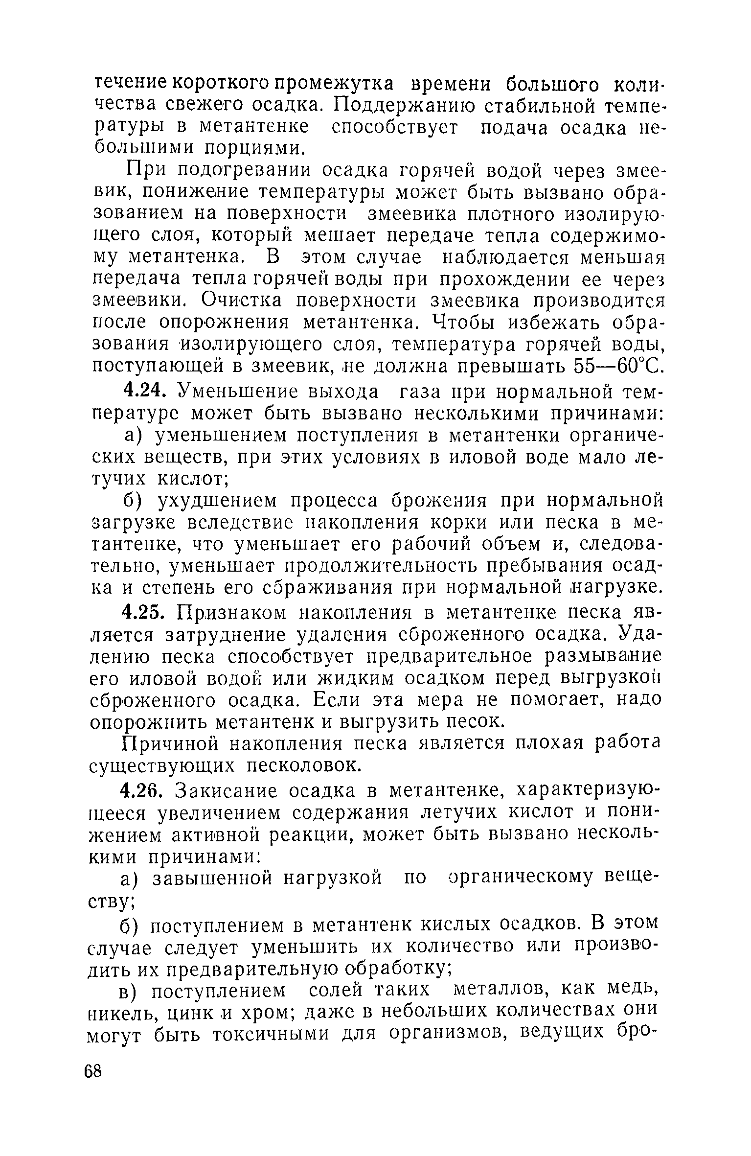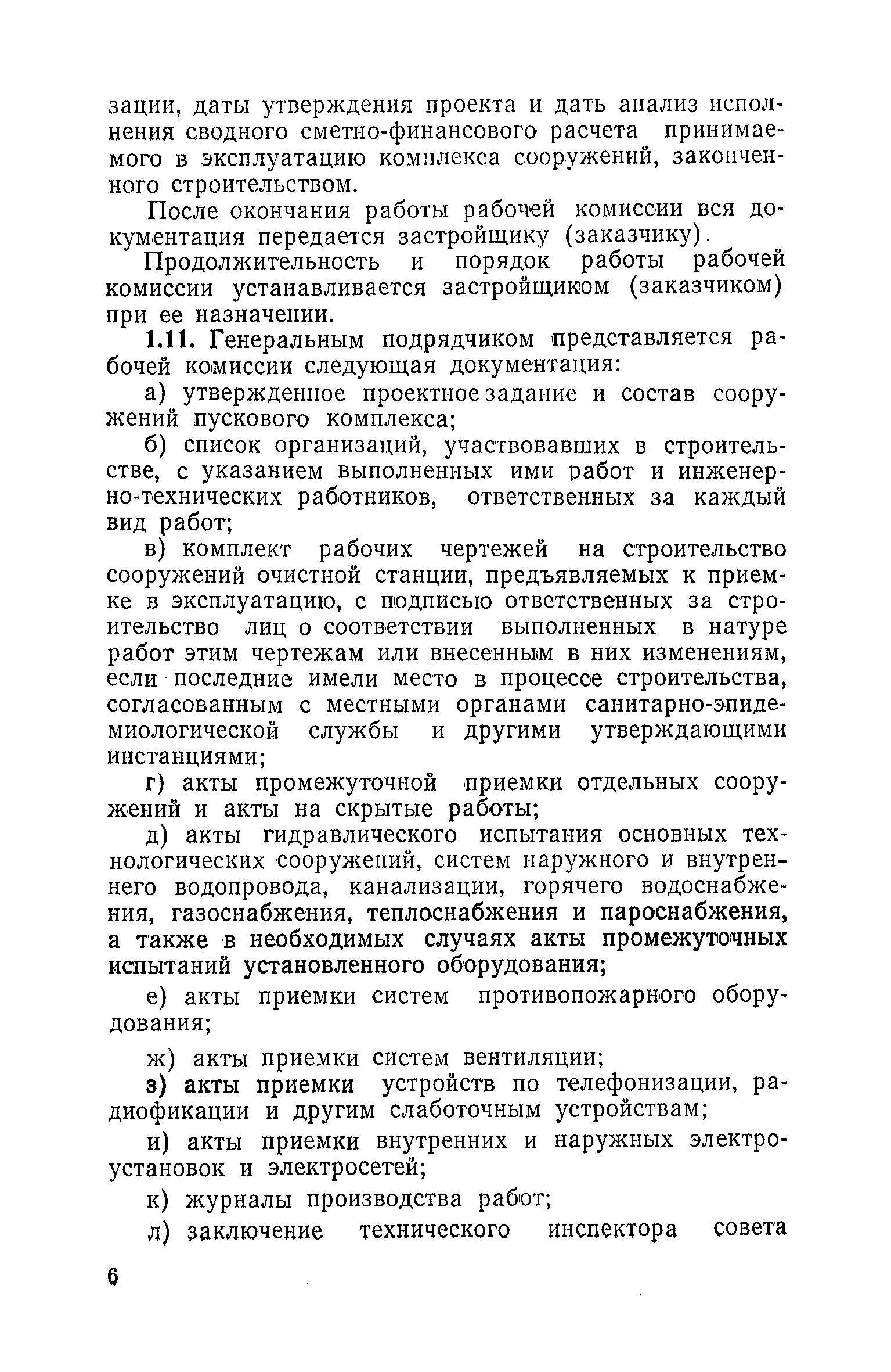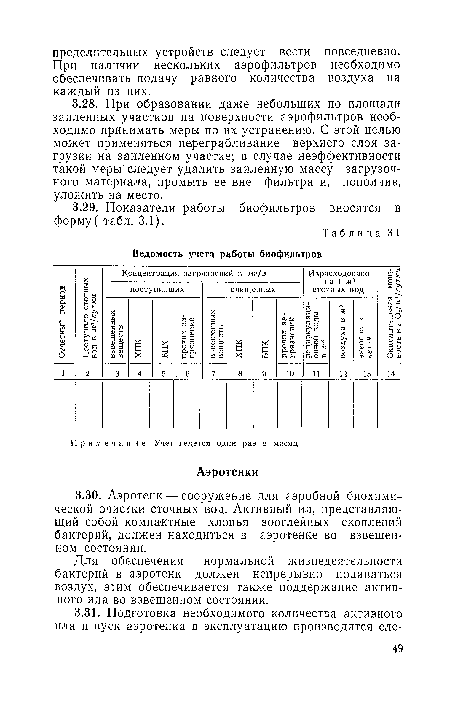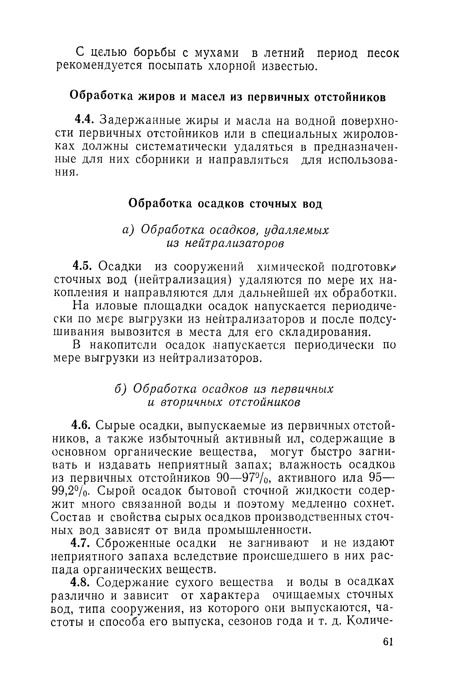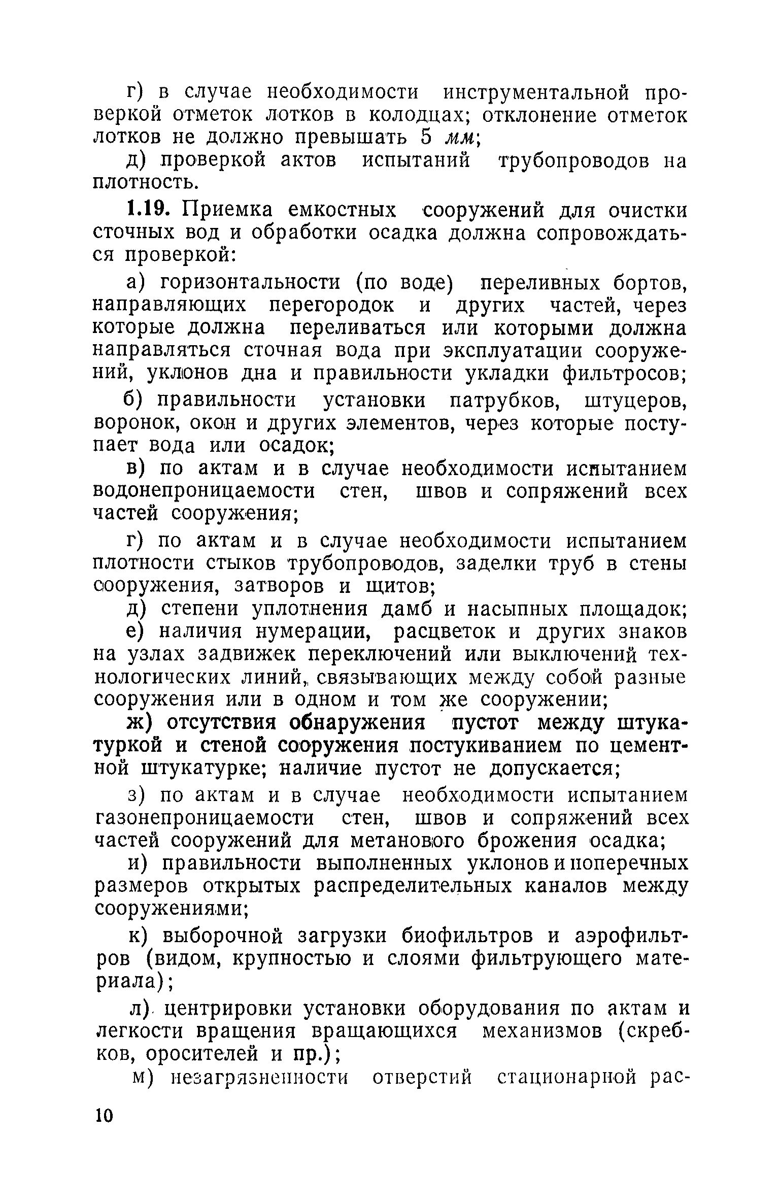 | Оглавление: | Глава 1. Общие условия по приемке, пуску и эксплуатации станций биохимической очистки промышленных сточных вод А. Приемка в эксплуатацию Общие положения Рабочая комиссия, ее права, обязанности и порядок работы Общие правила приемки в эксплуатацию сооружений очистной станции Приемка наружных трубопроводов и сооружений в эксплуатацию Б. Общие условия пуска сооружений в эксплуатацию Организационные положения Проверка готовности сооружений и основные технические операции В. Общие условие технической очистки сточных вод Основные положения Контроль за работой очистной станции Глава 2. Механическая очистка сточных вод Решетки Песколовки Первичные отстойники и преаэраторы Двухъярусные отстойники Усреднители Глава 3. Биохимическая (биологическая) очистка сточных вод . Сущность биохимической очистки сточных вод Условия для биохимической очистки сточных вод Биофильтры Биофильтры с принудительной аэрацией (аэрофильтры) Аэротенки Вторичные отстойники после аэротенков Вторичные отстойники после биофильтров Биологический контроль за сооружениями Глава 4. Обработка осадков и других примесей сточных вод Виды примесей твердых и всплывающих веществ Обработка отбросов, снимаемых с решеток Обработка песка, удаляемого из песколовок Обработка жиров и масел из первичных отстойников Обработка осадков сточных вод Обезвоживание осадков сточных вод Обезвоживание на иловых площадках Обезвоживание на иловых прудах Обезвоживание на вакуум-фильтрах Глава 5. Нейтрализация сточных вод Глава 6. Организация службы по эксплуатации очистной станции биохимической очистки сточных вод Приложение 1. Акт приемки в эксплуатацию рабочей комиссией законченного строительством (реконструкцией) и монтажом сооружения Приложение 2. Акт приемки в эксплуатацию рабочей приемочной комиссией законченных строительством (реконструкцией) сооружений Приложение 3. Акт пуска в эксплуатацию законченного строительством (реконструкцией) сооружения Приложение 4. Журнал учета работы станции нейтрализации Приложение 5. Журнал учета работы шламовой насосной станции отстойников Приложение 6. Журнал учета количества осадка, подаваемого в шламонакопитель Приложение 7. Журнал записи анализов сточных вод Приложение 8. Журнал записи анализов реагентов, применяемых для нейтрализации Приложение 9. Определение активной СаО в извести и в известковом молоке сахаратным методом Приложение 10. Метод определения токсичности промышленных сточных вод и их отдельных компонентов, направляемых на биохимическую очистку Приложение 11. Выписка из главы СНиП III-Г.4-62 Приложение 12. Перечень основных глав III части СНиП и других нормативных документов, которыми следует руководствоваться при приемке в эксплуатацию сооружений очистной станции |