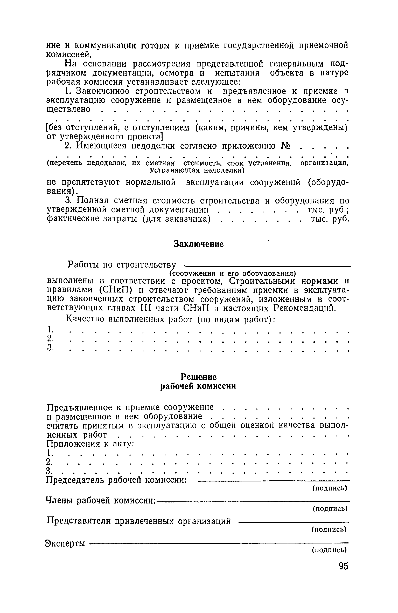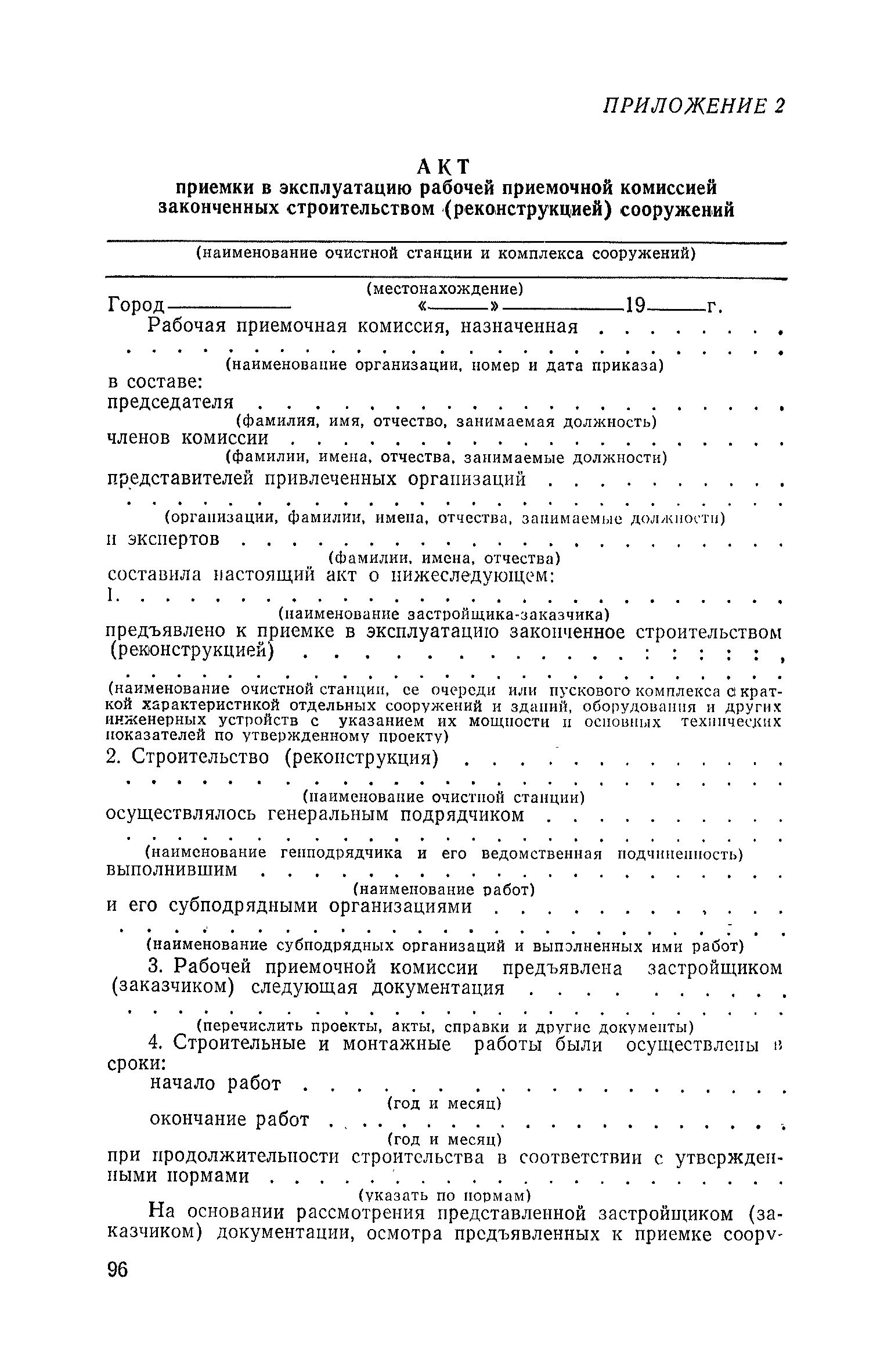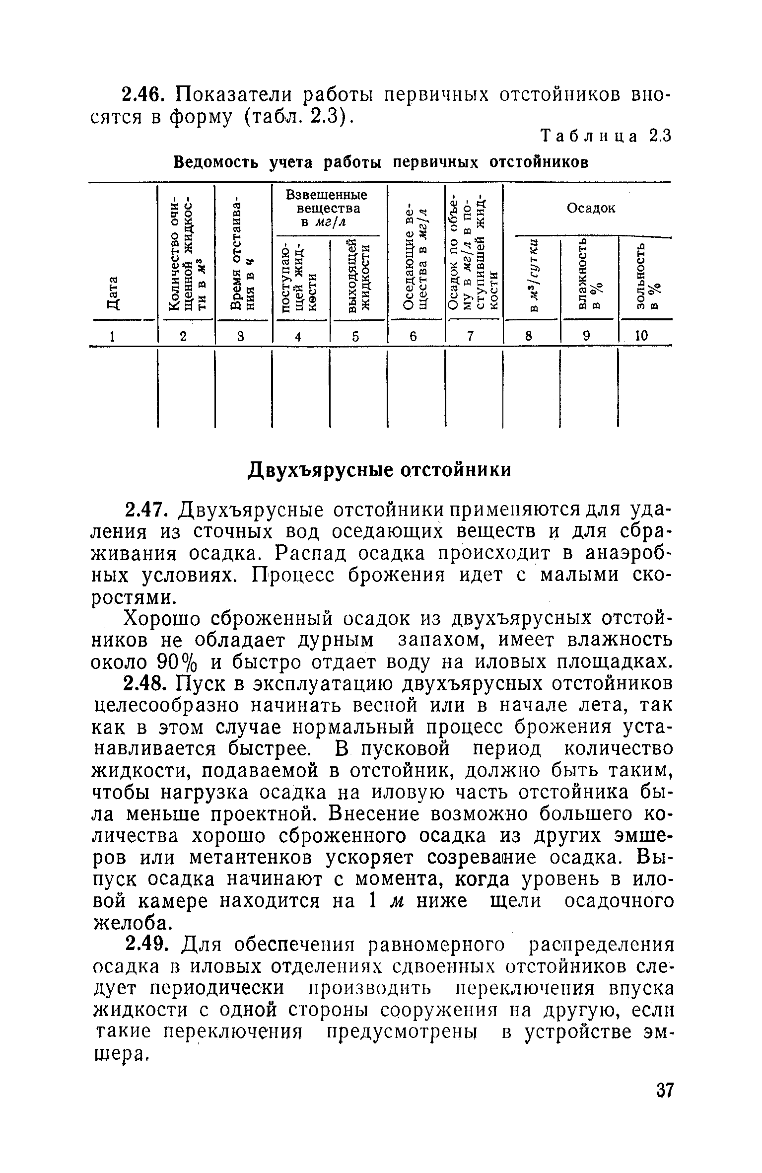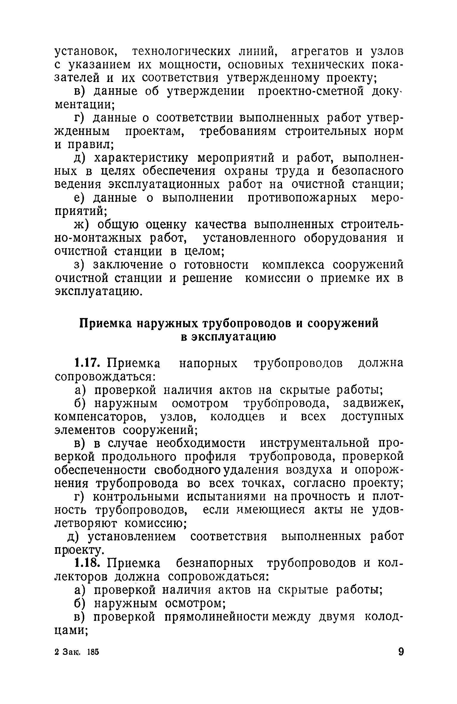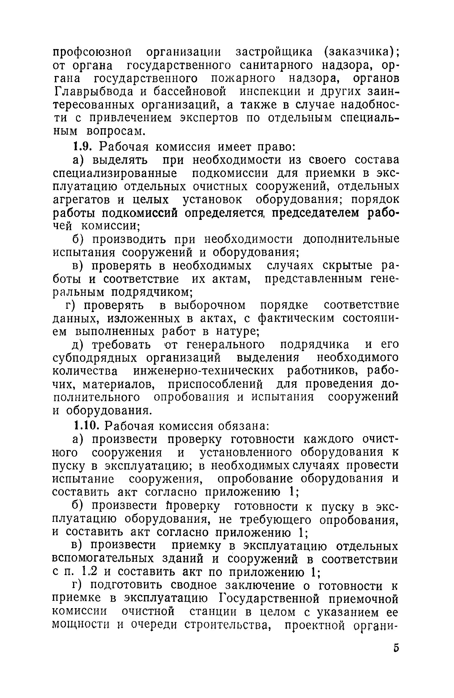 | Оглавление: | Глава 1. Общие условия по приемке, пуску и эксплуатации станций биохимической очистки промышленных сточных вод А. Приемка в эксплуатацию Общие положения Рабочая комиссия, ее права, обязанности и порядок работы Общие правила приемки в эксплуатацию сооружений очистной станции Приемка наружных трубопроводов и сооружений в эксплуатацию Б. Общие условия пуска сооружений в эксплуатацию Организационные положения Проверка готовности сооружений и основные технические операции В. Общие условие технической очистки сточных вод Основные положения Контроль за работой очистной станции Глава 2. Механическая очистка сточных вод Решетки Песколовки Первичные отстойники и преаэраторы Двухъярусные отстойники Усреднители Глава 3. Биохимическая (биологическая) очистка сточных вод . Сущность биохимической очистки сточных вод Условия для биохимической очистки сточных вод Биофильтры Биофильтры с принудительной аэрацией (аэрофильтры) Аэротенки Вторичные отстойники после аэротенков Вторичные отстойники после биофильтров Биологический контроль за сооружениями Глава 4. Обработка осадков и других примесей сточных вод Виды примесей твердых и всплывающих веществ Обработка отбросов, снимаемых с решеток Обработка песка, удаляемого из песколовок Обработка жиров и масел из первичных отстойников Обработка осадков сточных вод Обезвоживание осадков сточных вод Обезвоживание на иловых площадках Обезвоживание на иловых прудах Обезвоживание на вакуум-фильтрах Глава 5. Нейтрализация сточных вод Глава 6. Организация службы по эксплуатации очистной станции биохимической очистки сточных вод Приложение 1. Акт приемки в эксплуатацию рабочей комиссией законченного строительством (реконструкцией) и монтажом сооружения Приложение 2. Акт приемки в эксплуатацию рабочей приемочной комиссией законченных строительством (реконструкцией) сооружений Приложение 3. Акт пуска в эксплуатацию законченного строительством (реконструкцией) сооружения Приложение 4. Журнал учета работы станции нейтрализации Приложение 5. Журнал учета работы шламовой насосной станции отстойников Приложение 6. Журнал учета количества осадка, подаваемого в шламонакопитель Приложение 7. Журнал записи анализов сточных вод Приложение 8. Журнал записи анализов реагентов, применяемых для нейтрализации Приложение 9. Определение активной СаО в извести и в известковом молоке сахаратным методом Приложение 10. Метод определения токсичности промышленных сточных вод и их отдельных компонентов, направляемых на биохимическую очистку Приложение 11. Выписка из главы СНиП III-Г.4-62 Приложение 12. Перечень основных глав III части СНиП и других нормативных документов, которыми следует руководствоваться при приемке в эксплуатацию сооружений очистной станции |