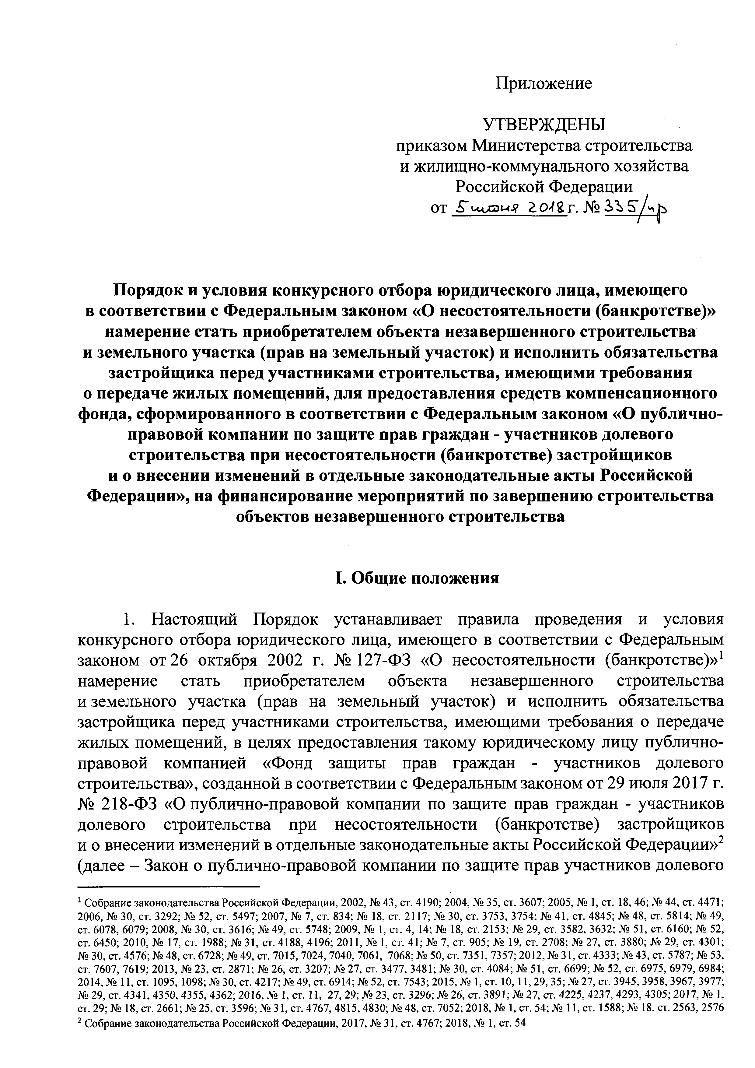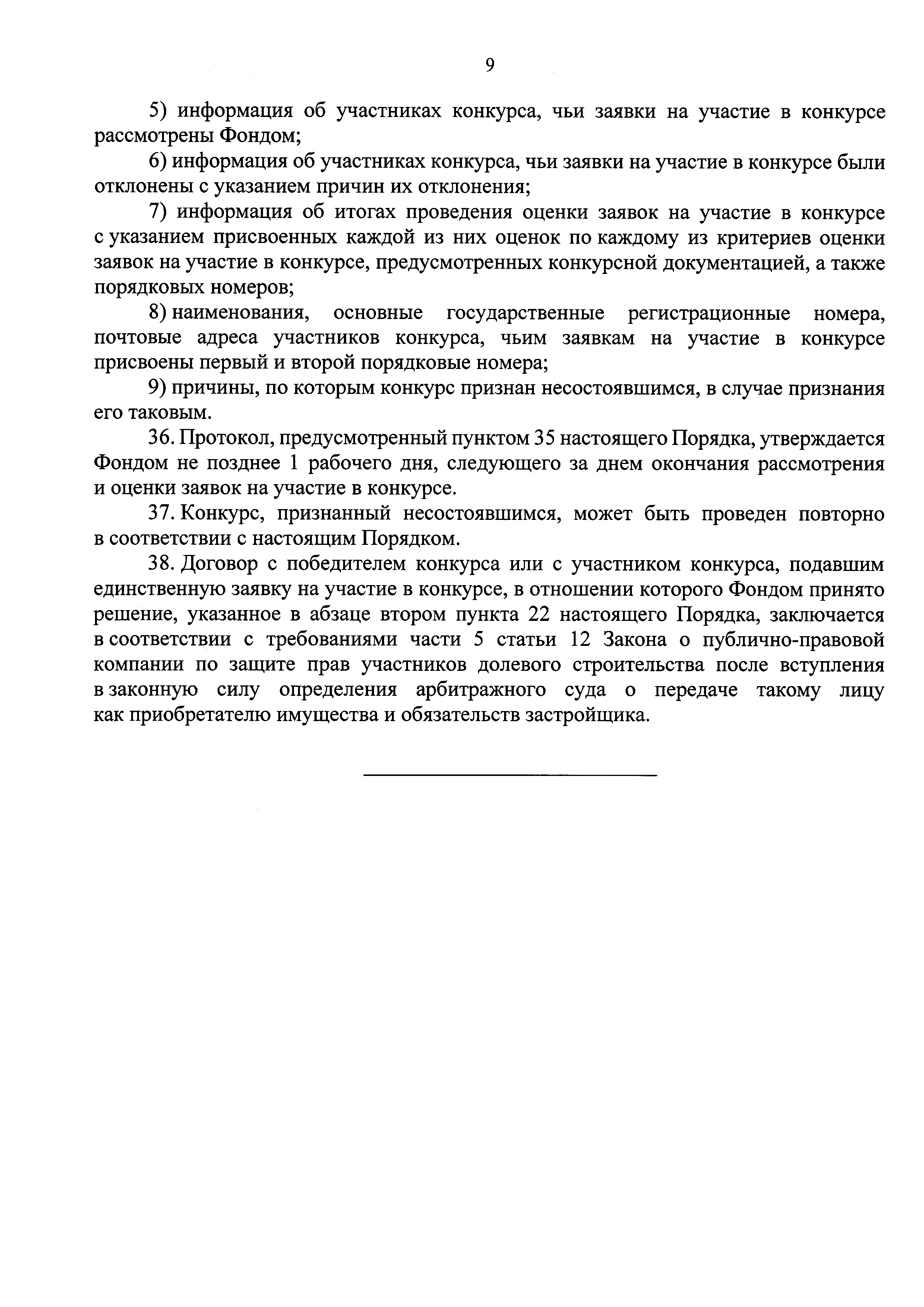 | Название рус.: | Порядок и условия конкурсного отбора юридического лица, имеющего в соответствии с Федеральным законом "О несостоятельности (банкротстве)" намерение стать приобретателем объекта незавершенного строительства и земельного участка (прав на земельный участок) и исполнить обязательства застройщика перед участниками строительства, имеющими требования о передаче жилых помещений, для предоставления средств компенсационного фонда, сформированного в соответствии с Федеральным законом "О публично-правовой компании по защите прав граждан - участников долевого строительства при несостоятельности (банкротстве) застройщиков и о внесении изменений в отдельные законодательные акты Российской Федерации", на финансирование мероприятий по завершению строительства объектов незавершенного строительства |