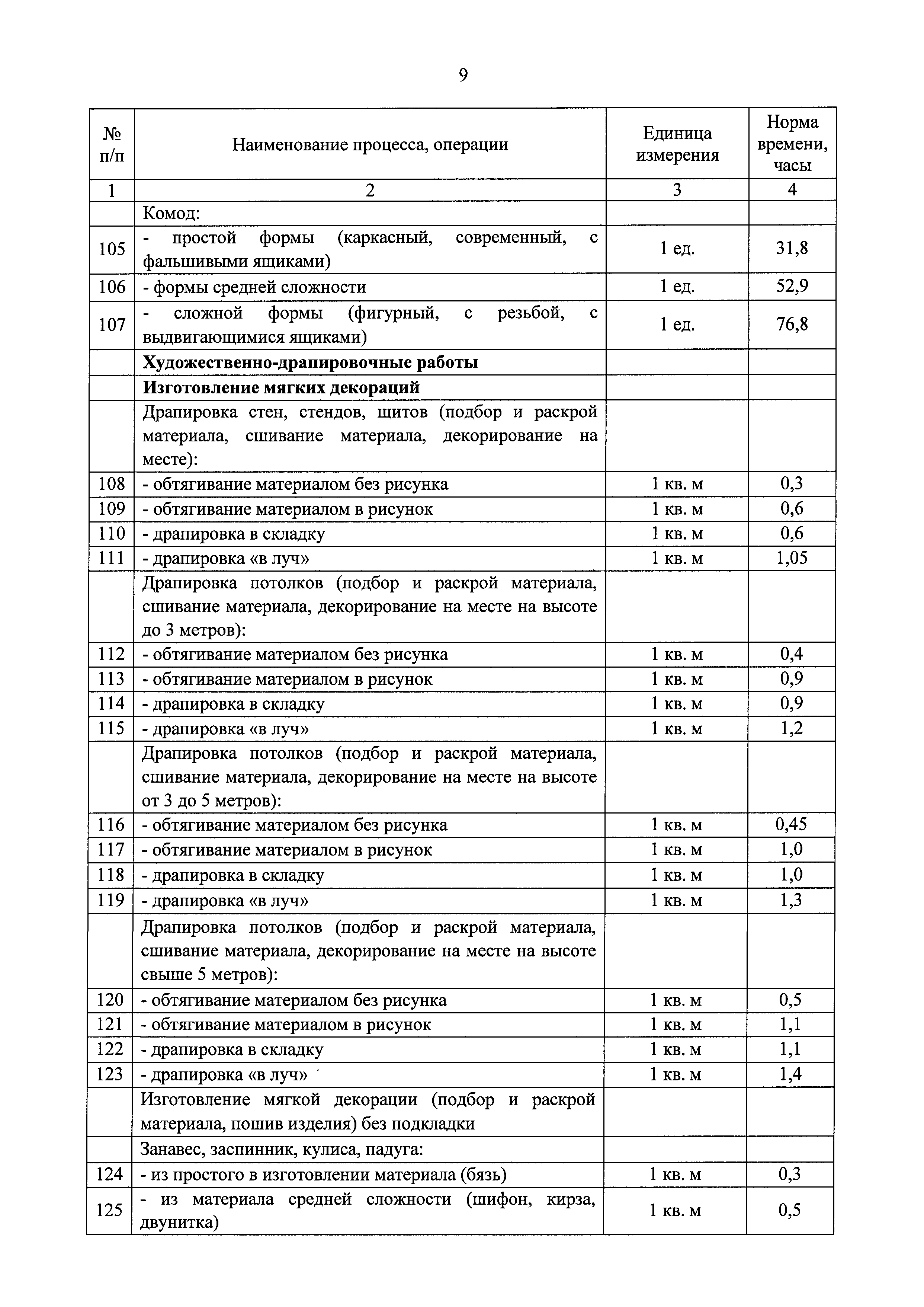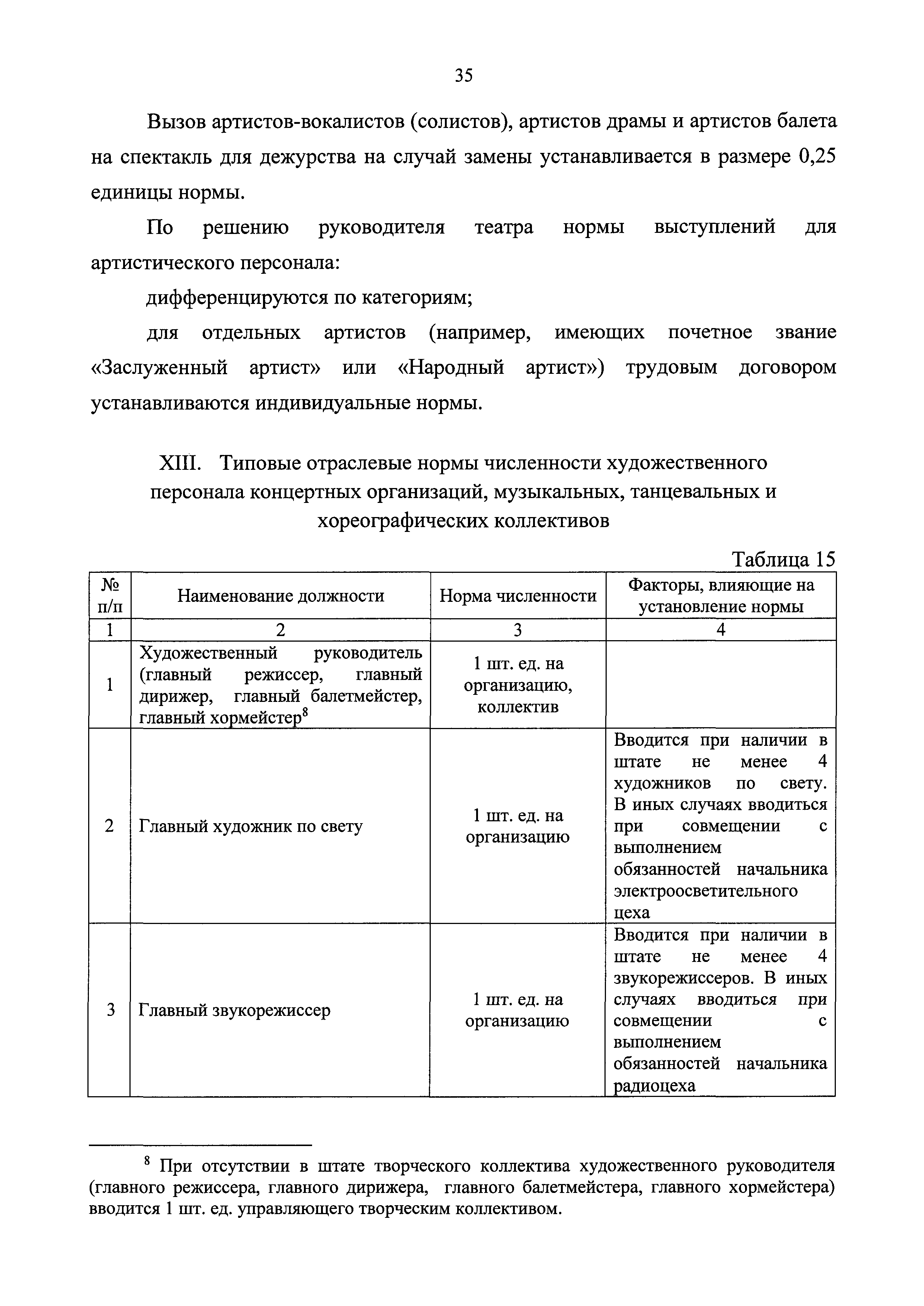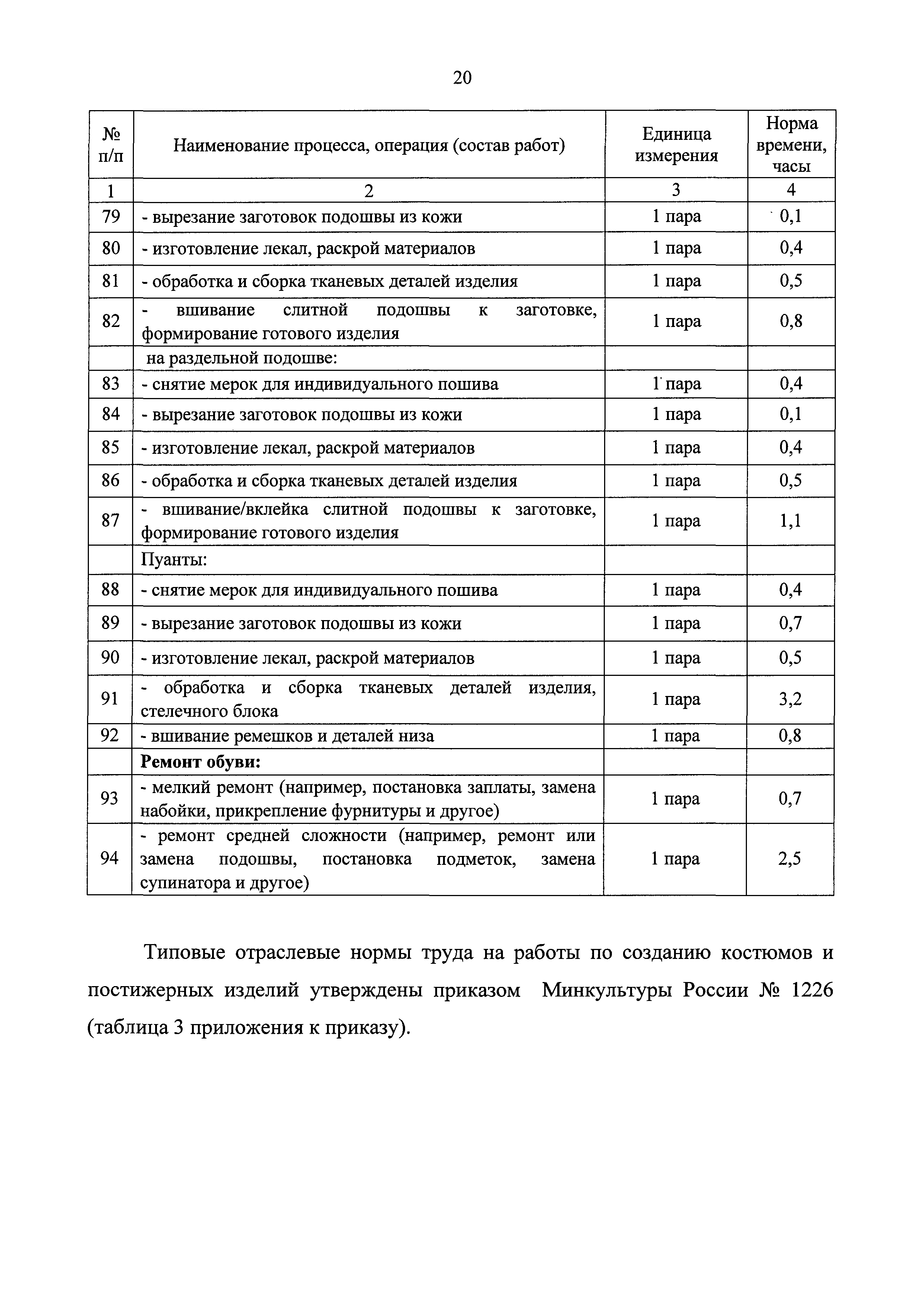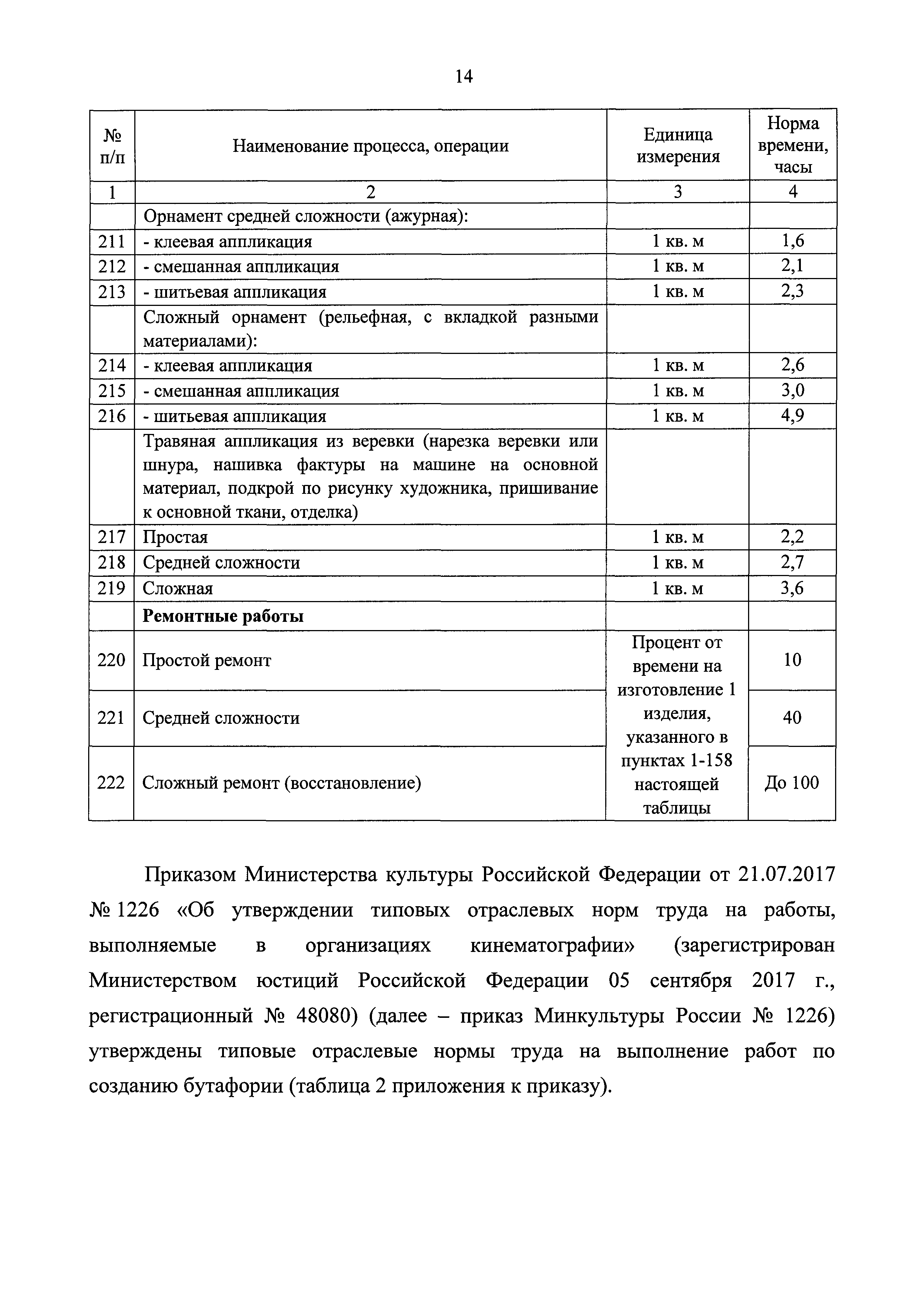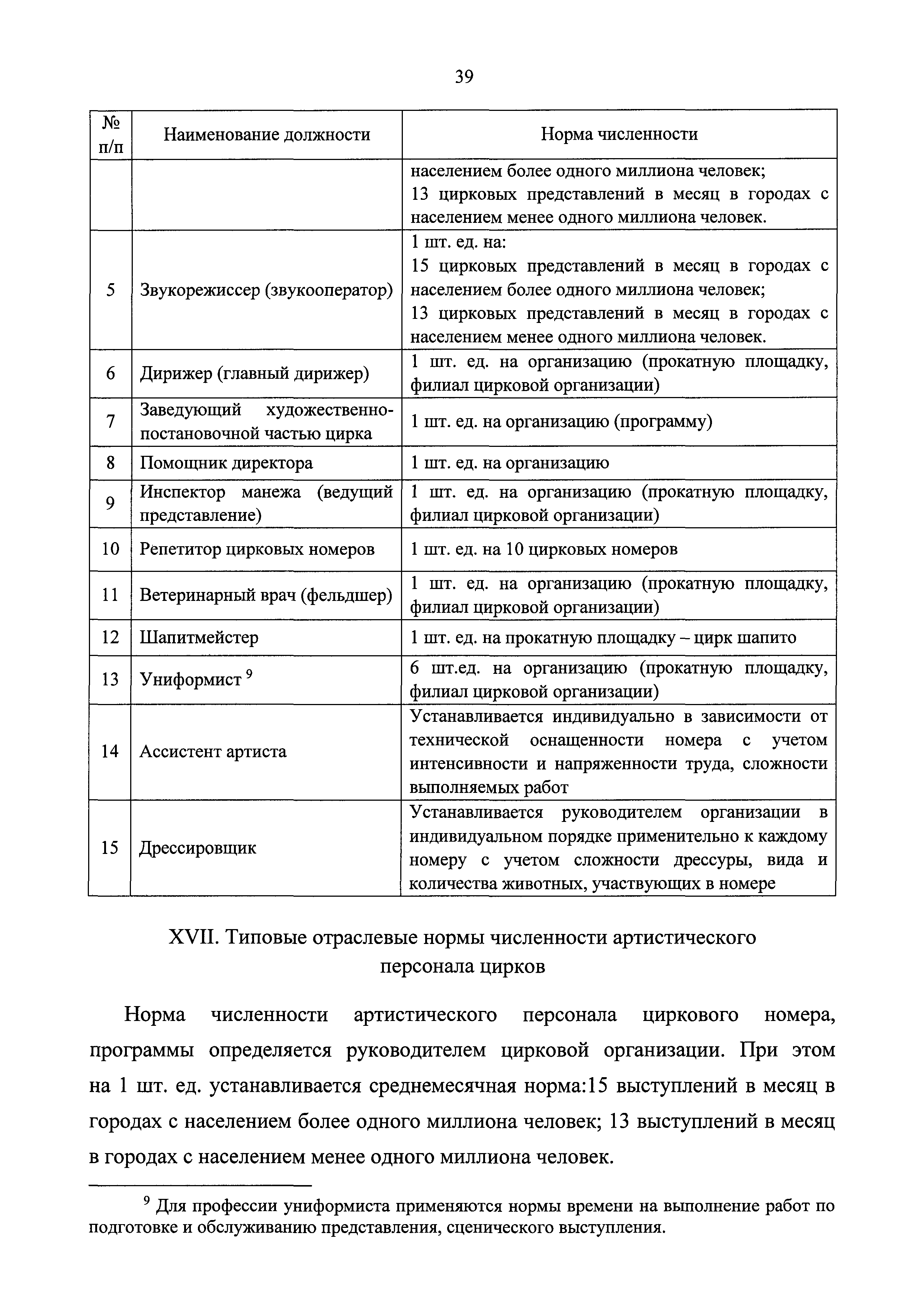 Типовые отраслевые нормы труда на работы, выполняемые в организациях исполнительских искусств| Статус: | действует | | Название рус.: | Типовые отраслевые нормы труда на работы, выполняемые в организациях исполнительских искусств | | Дата добавления в базу: | 01.01.2019 | | Дата актуализации: | 01.01.2021 | | Область применения: | Типовые отраслевые нормы труда на работы, выполняемые в организациях исполнительских искусств предназначены для формирования обоснованных оптимальных показателей трудоемкости выполнения работ в государственных (муниципальных) организациях исполнительских искусств (театрах, цирках, концертных организациях, самостоятельных музыкальных коллективах), определения штатной численности работников, выдачи нормированных заданий и соотношений между плановыми и договорными работами | | Оглавление: | I. Общее положение II. Типовые отраслевые нормы на выполнение работ по созданию художественного оформления спектакля (представления, сценического выступления) III. Типовые отраслевые нормы труда на выполнение работ по созданию декораций IV. Типовые отраслевые нормы труда на выполнение работ по созданию костюмов, обуви, головных уборов 4.1. Типовые отраслевые нормы труда на выполнение работ по созданию балетных костюмов и ремонту костюмов 4.2. Типовые отраслевые нормы труда на выполнение работ по созданию обуви, головных уборов V. Типовые отраслевые нормы труда на выполнение работ по созданию игровых кукол VI. Типовые отраслевые нормы на выполнение работ по подготовке и обслуживанию спектакля (представления, сценического выступления) 6.1. Типовые отраслевые нормы на выполнение работ по подготовке спектакля (представления, сценического выступления) 6.2. Типовые отраслевые нормы на выполнение работ по монтажу мягких декораций 6.3. Типовые отраслевые нормы на выполнение работ по монтажу жестких декораций 6.4. Типовые отраслевые нормы на выполнение работ по монтажу объемных жестких декораций глубиной более 0,5 м VII. Типовые отраслевые нормы на выполнение работ по ремонту и реставрации музыкальных инструментов VIII. Типовые отраслевые нормы на выполнение работ по организации сценических выступлений, конкурсов, фестивалей и других видов публичных выступлений IX. Типовые отраслевые нормы численности руководителей организаций исполнительского искусства, руководителей структурных подразделений X. Типовые отраслевые нормы численности художественного персонала театров XI. Типовые отраслевые нормы численности специалистов театров XII. Типовые отраслевые нормы численности артистического персонала театров XIII. Типовые отраслевые нормы численности художественного персонала концертных организаций, музыкальных, танцевальных и хореографических коллективов XIV. Типовые отраслевые нормы численности специалистов концертных организаций, музыкальных, танцевальных и хореографических коллективов ХV. Типовые отраслевые нормы численности артистического персонала музыкальных, танцевальных и хореографических коллективов, концертных организаций XVI. Типовые отраслевые нормы численности художественного персонала, специалистов, служащих цирков и циркового конвейера цирковой организации XVII. Типовые отраслевые нормы численности артистического персонала цирков XVIII. Типовые отраслевые нормы численности ассистентов, рабочих по уходу за животн