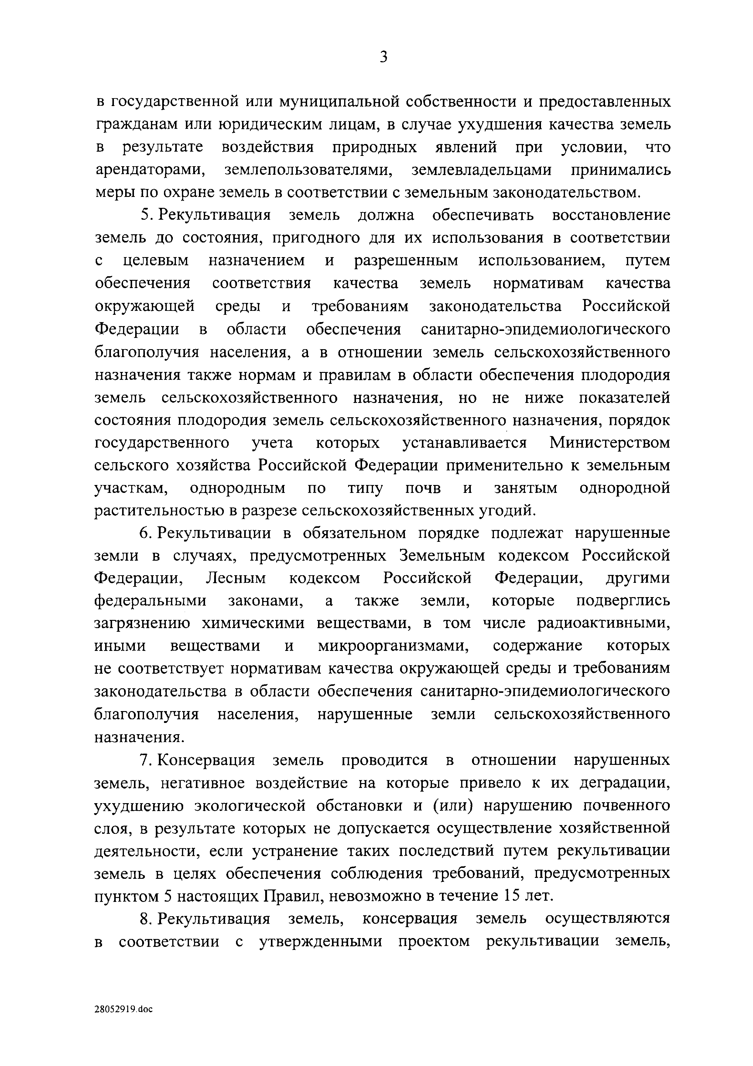 | Область применения: | Правила устанавливают порядок проведения рекультивации и консервации земель и в равной мере распространяются на земли и земельные участки |
