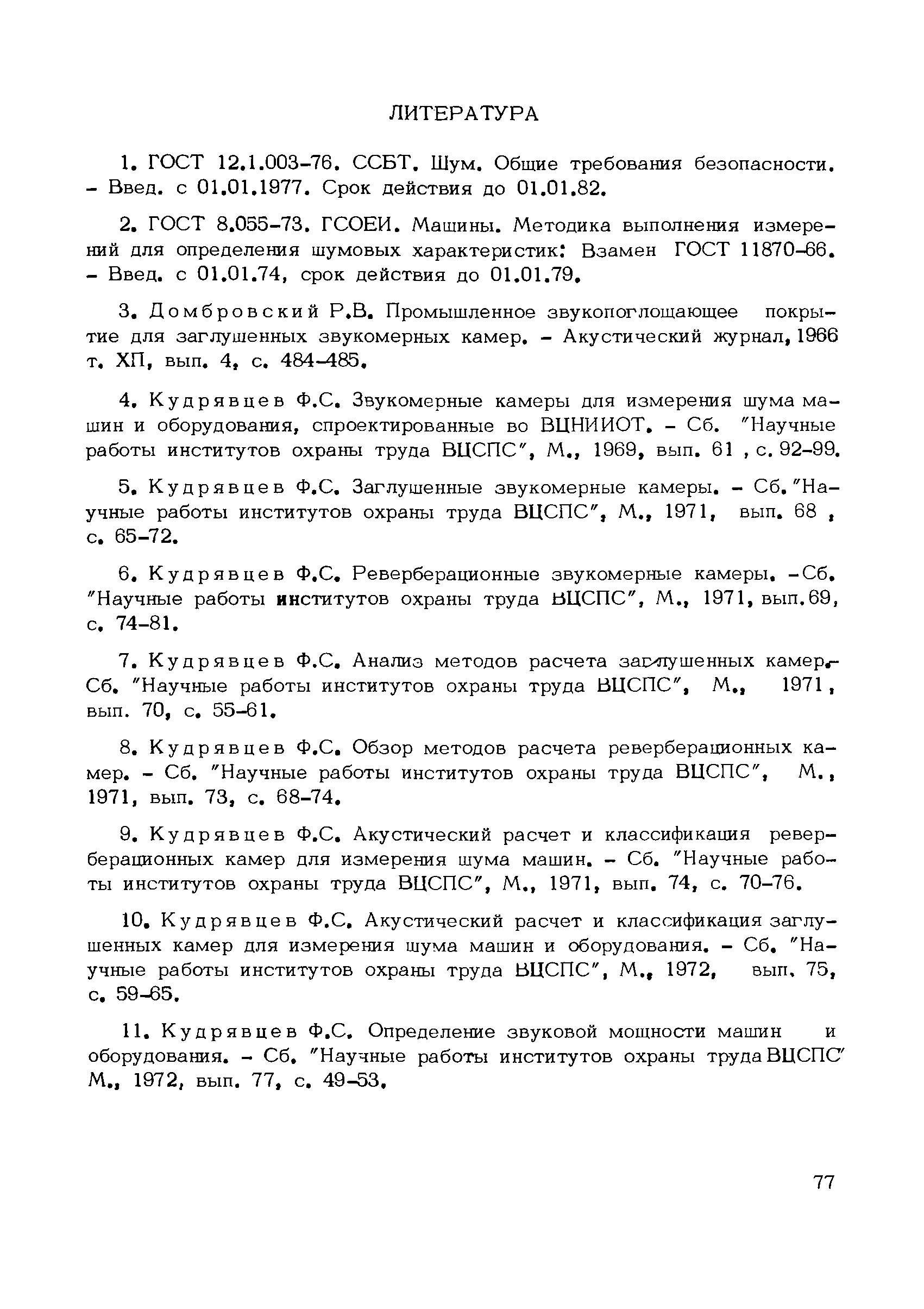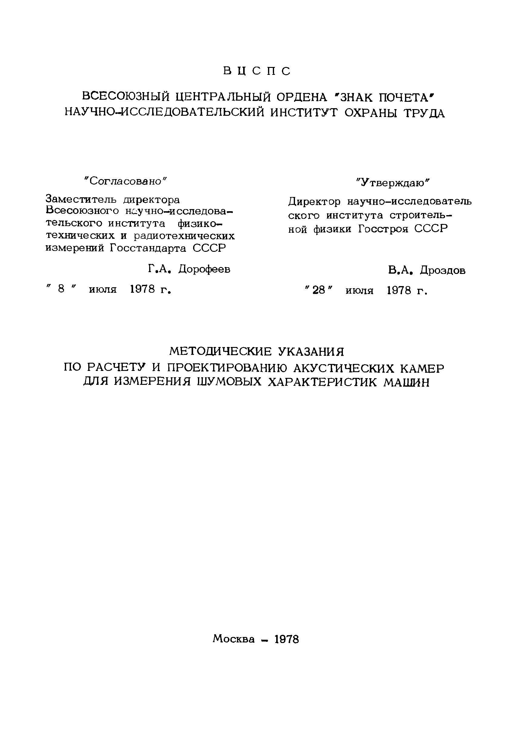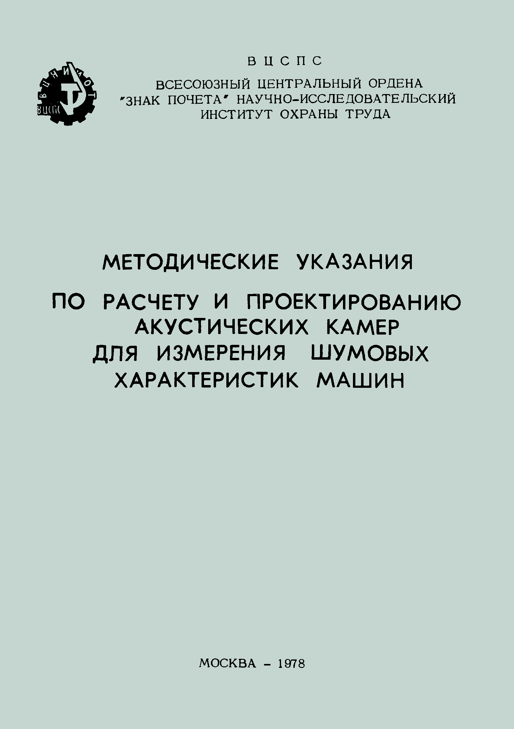 | Название рус.: | Методические указания по расчету и проектированию акустических камер для измерения шумовых характеристик машин |