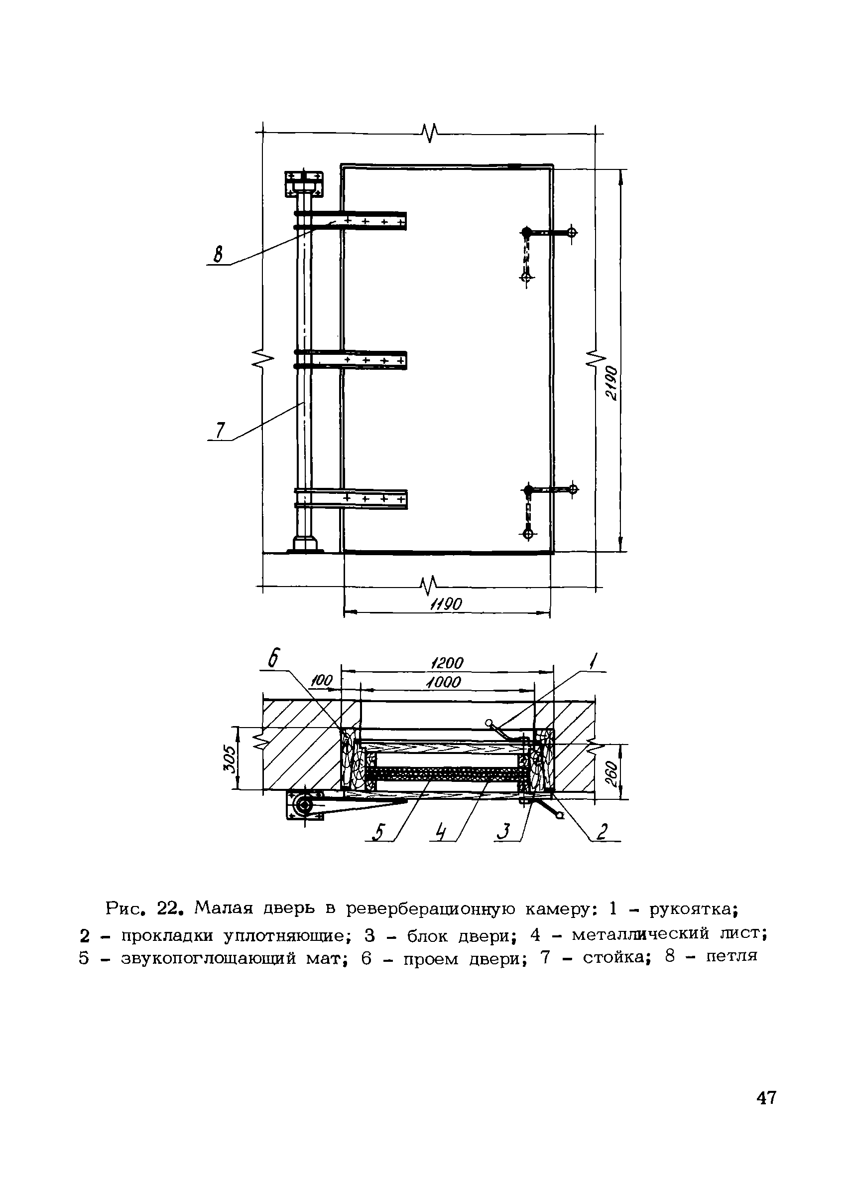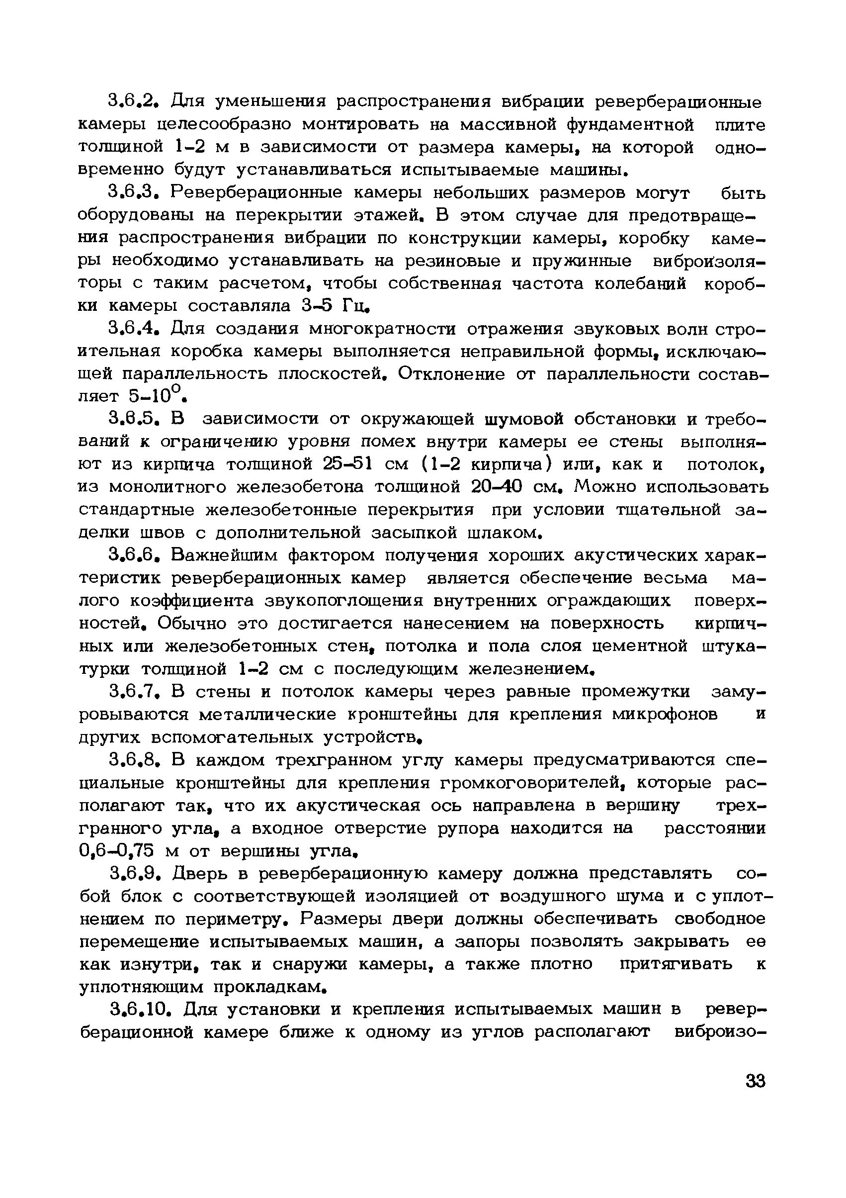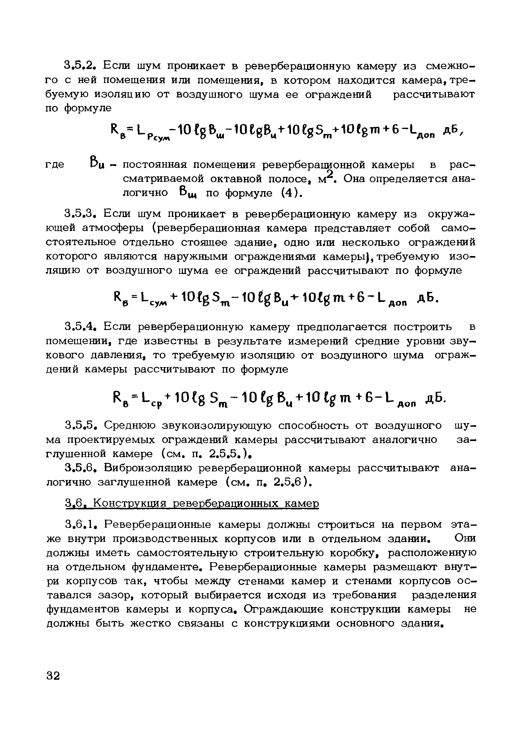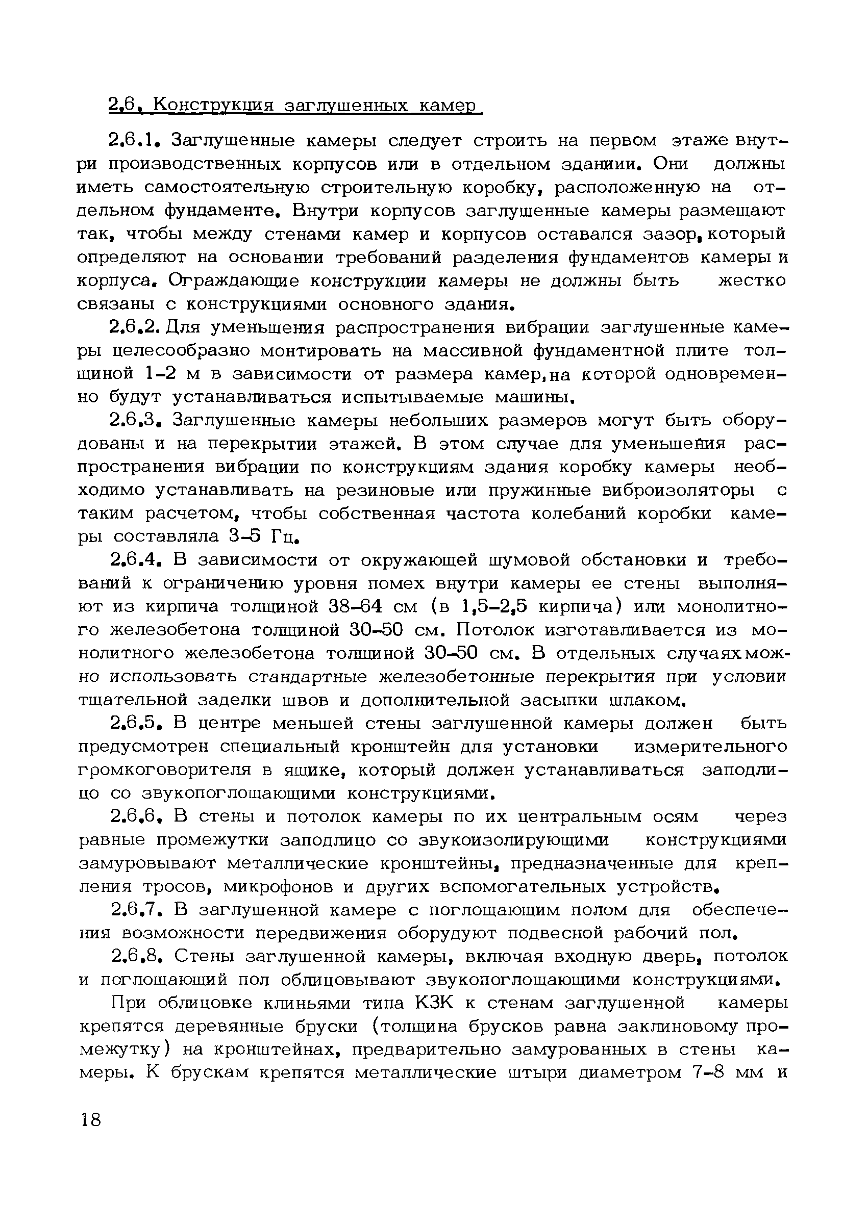 | Оглавление: | 1. Общие положения 1.1. Заглушенные камеры 1.2. Реверберационные камеры 2. Заглушенные камеры 2.1. Основные требования 2.2. Исходные данные 2.3. Акустический расчет заглушенных камер 2.4. Расчет неравномерности звукового поля в заглушенных камерах и погрешности измерения 2.5. Расчет звуковиброизоляции заглушенных камер 2.6. Конструкция заглушенных камер 2.7. Выбор типов заглушенных камер 3. Реверберационные камеры 3.1. Основные требования 3.2. Исходные данные 3.3. Акустический расчет реверберационных камер 3.4. Расчет неравномерности звукового поля в реверберационных камерах и погрешности измерения 3.5. Расчет звуковиброизоляции реверберационных камер 3.6. Конструкция реверберационных камер 3.7. Выбор типов реверберационных камер 4. Оборудование акустических камер 4.1. Механическое оборудование 4.2. Аппаратные 4.3. Электротехническое оборудование 4.4. Санитарно-техническое оборудование 4.5. Пожарная безопасность 5. Испытание акустических камер 5.1. Методика испытания заглушенных камер 5.2. Методика испытания реверберационных камер 6. Определение и нормирование шумовых характеристик машин 6.1. Определение шумовых характеристик машин 6.2. Нормирование шумовых характеристик машин Приложение 1. Пример акустического расчета заглушенных камер Приложение 2. Пример акустического расчета реверберационных камер Литература |