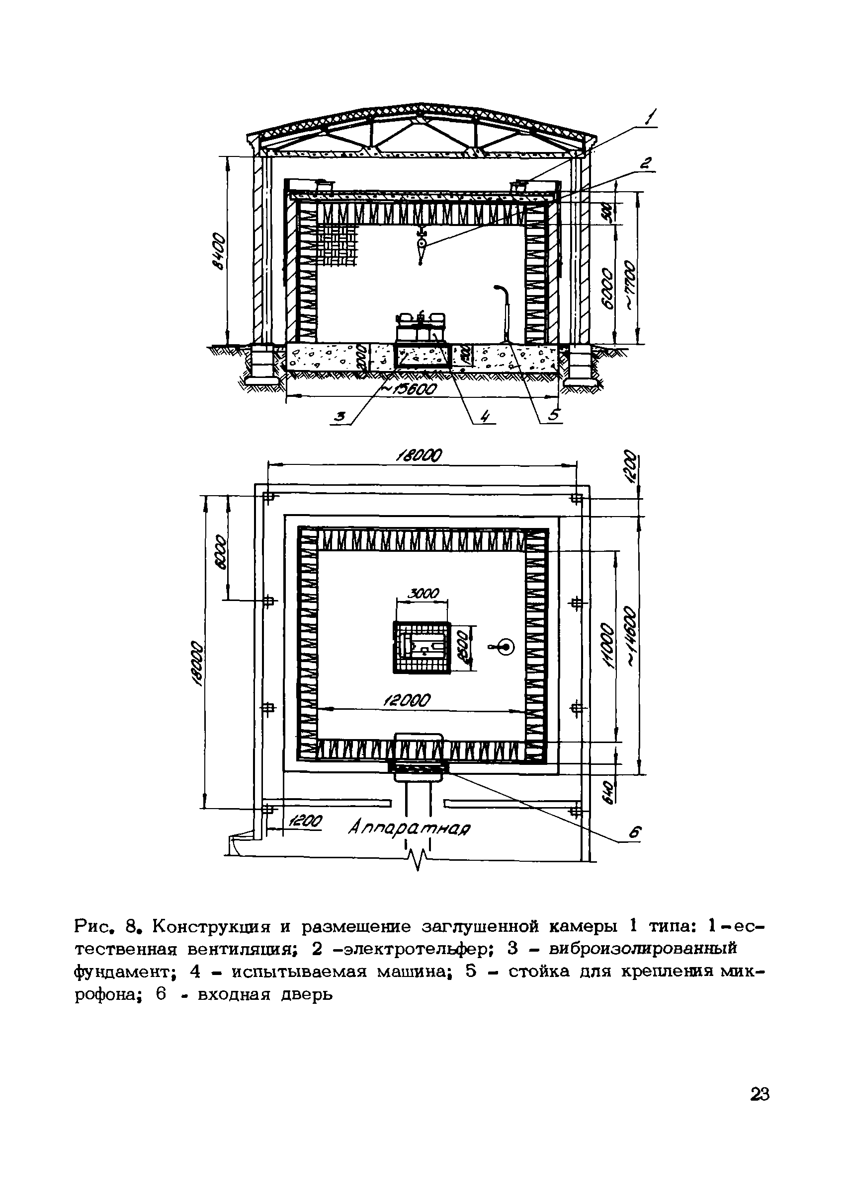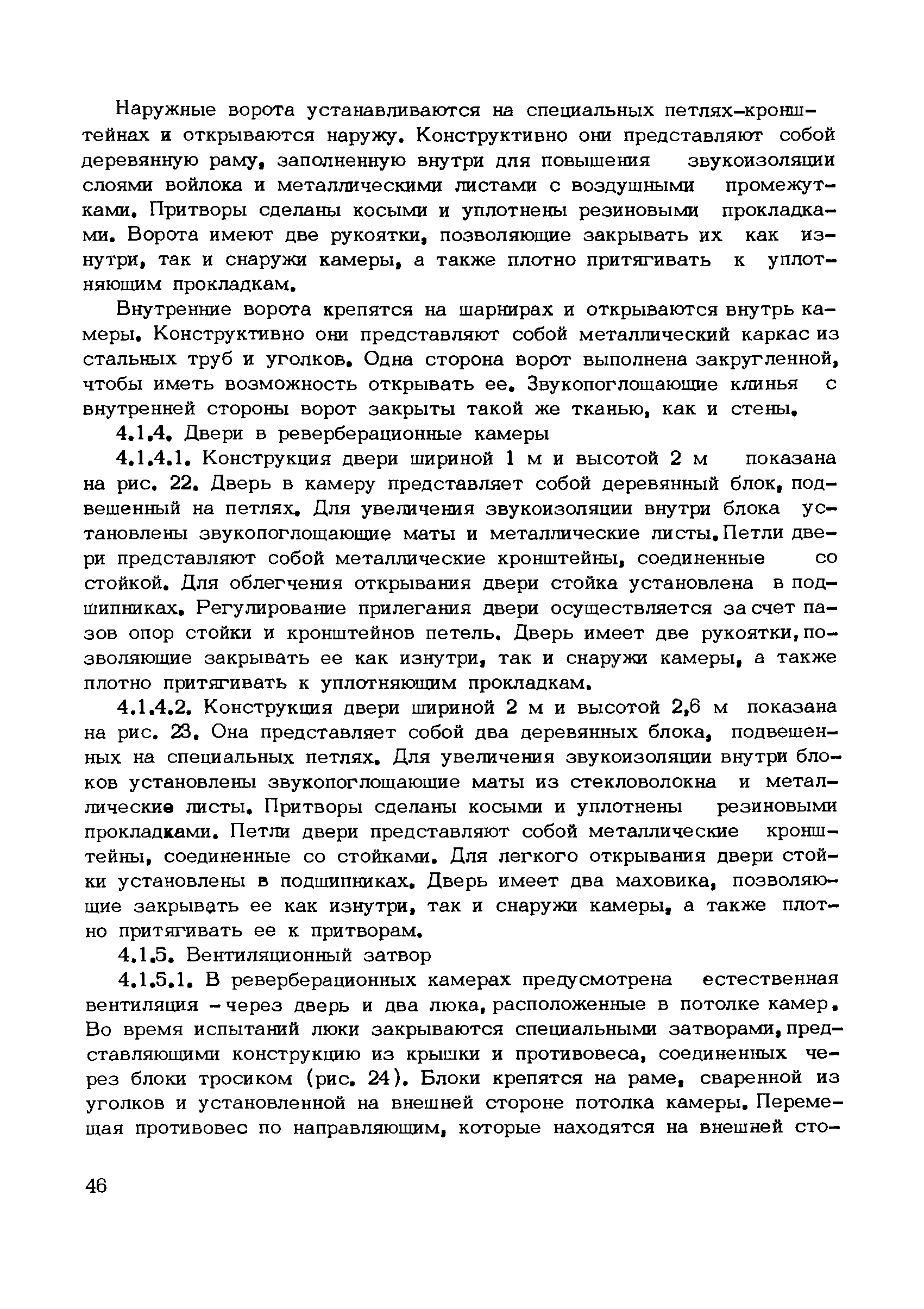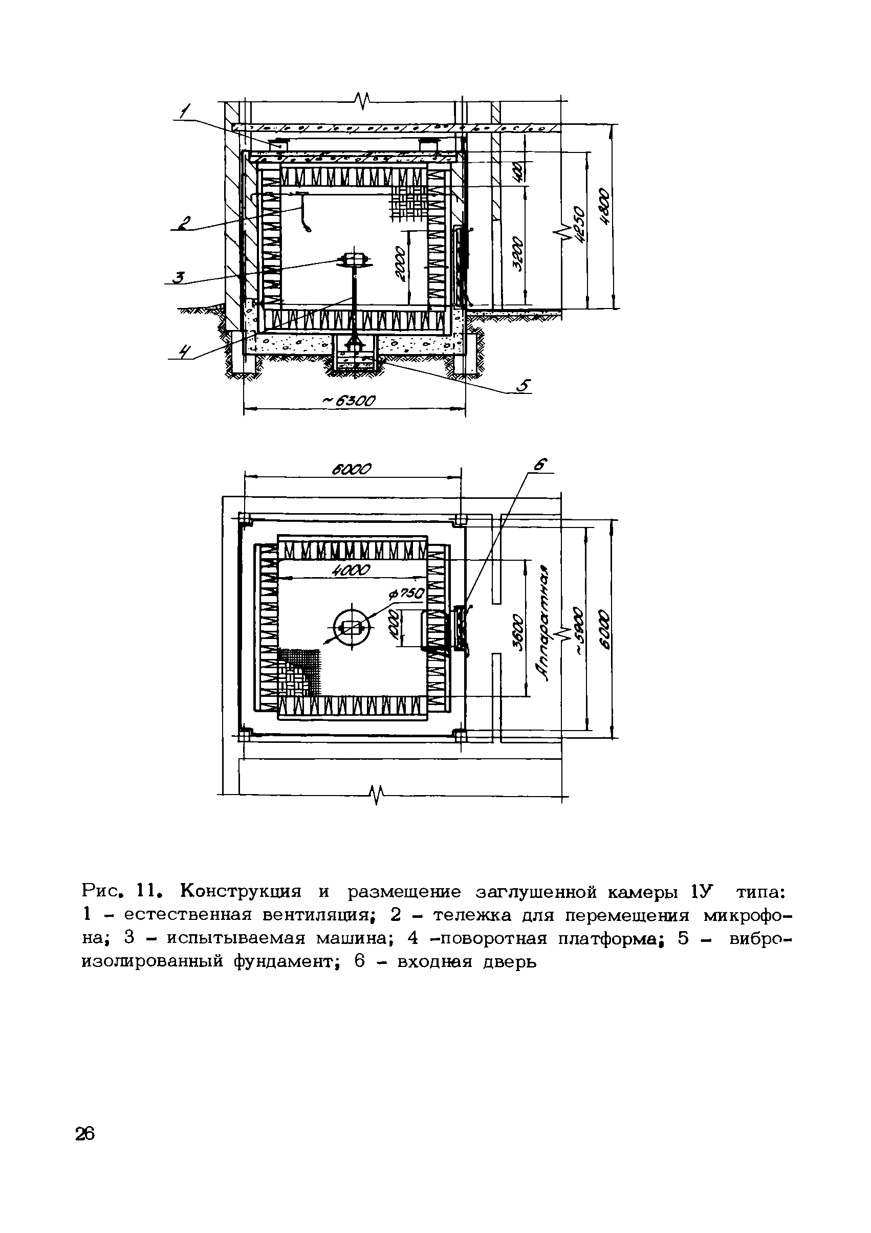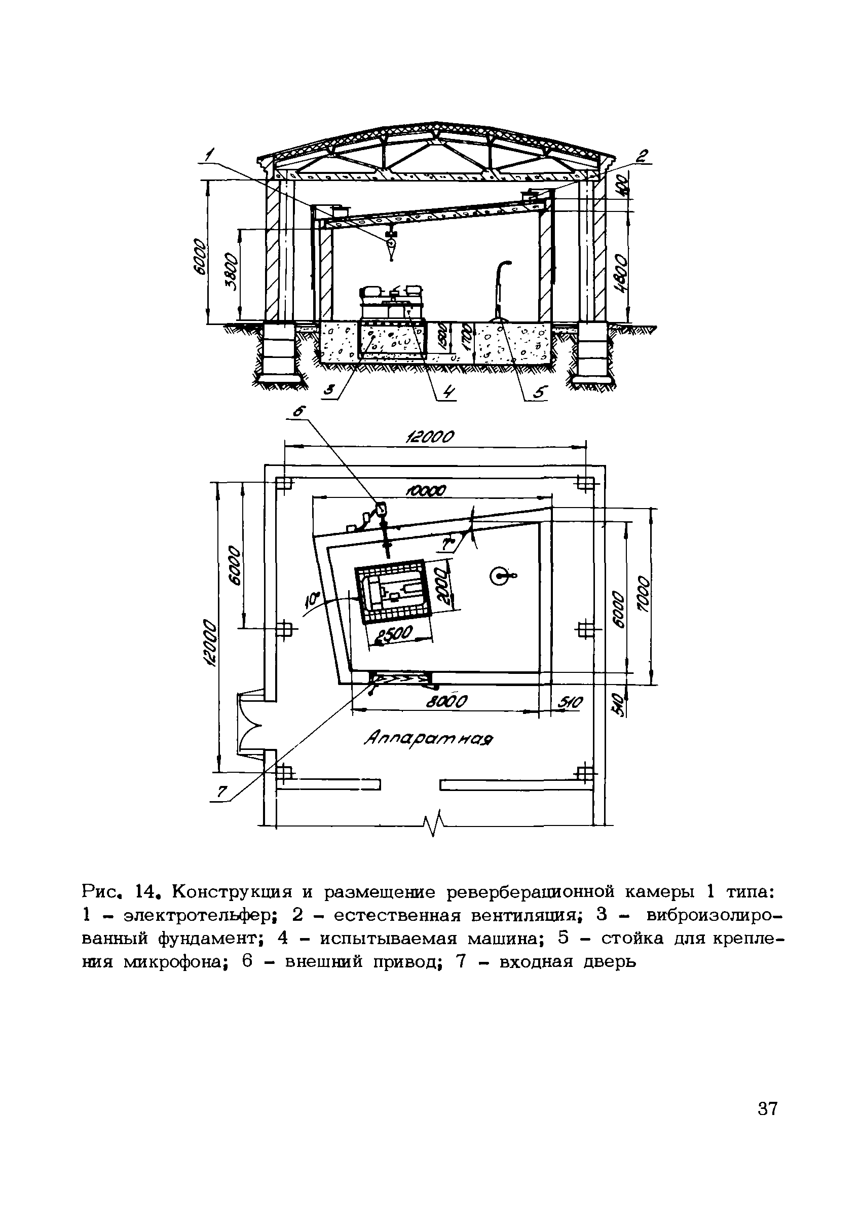 | Оглавление: | 1. Общие положения 1.1. Заглушенные камеры 1.2. Реверберационные камеры 2. Заглушенные камеры 2.1. Основные требования 2.2. Исходные данные 2.3. Акустический расчет заглушенных камер 2.4. Расчет неравномерности звукового поля в заглушенных камерах и погрешности измерения 2.5. Расчет звуковиброизоляции заглушенных камер 2.6. Конструкция заглушенных камер 2.7. Выбор типов заглушенных камер 3. Реверберационные камеры 3.1. Основные требования 3.2. Исходные данные 3.3. Акустический расчет реверберационных камер 3.4. Расчет неравномерности звукового поля в реверберационных камерах и погрешности измерения 3.5. Расчет звуковиброизоляции реверберационных камер 3.6. Конструкция реверберационных камер 3.7. Выбор типов реверберационных камер 4. Оборудование акустических камер 4.1. Механическое оборудование 4.2. Аппаратные 4.3. Электротехническое оборудование 4.4. Санитарно-техническое оборудование 4.5. Пожарная безопасность 5. Испытание акустических камер 5.1. Методика испытания заглушенных камер 5.2. Методика испытания реверберационных камер 6. Определение и нормирование шумовых характеристик машин 6.1. Определение шумовых характеристик машин 6.2. Нормирование шумовых характеристик машин Приложение 1. Пример акустического расчета заглушенных камер Приложение 2. Пример акустического расчета реверберационных камер Литература |
