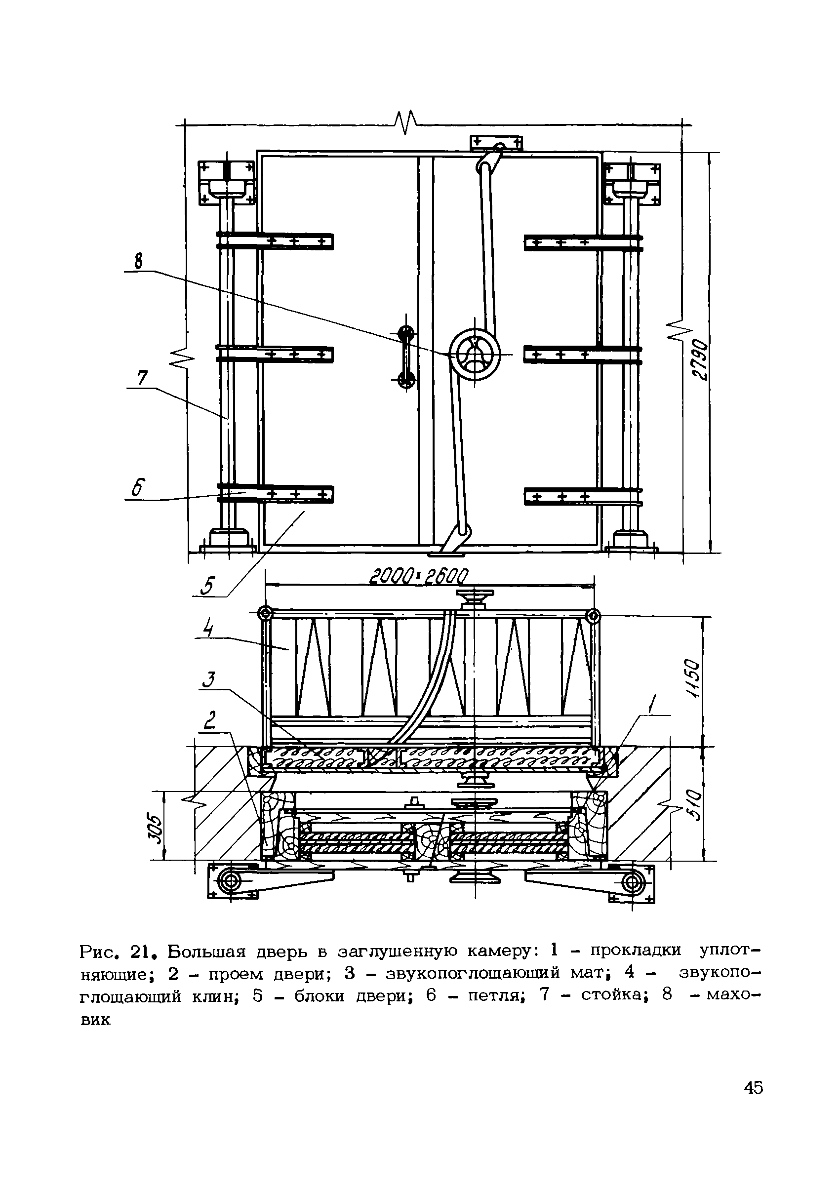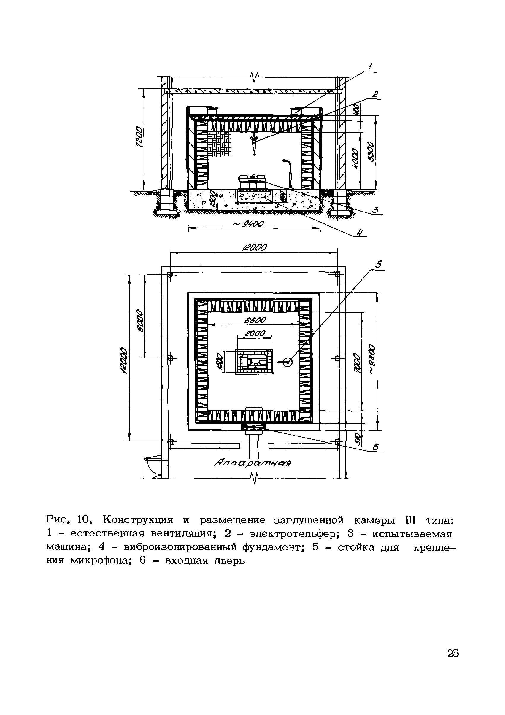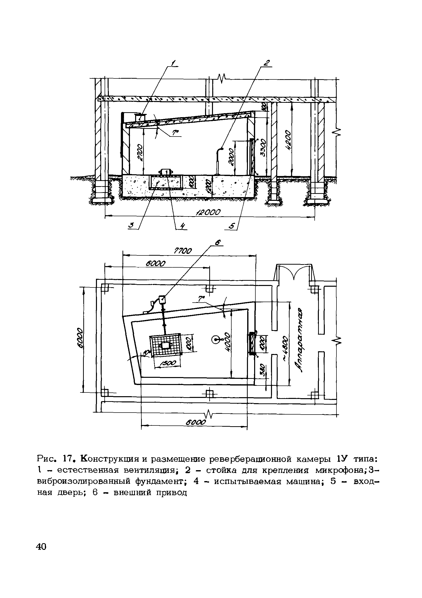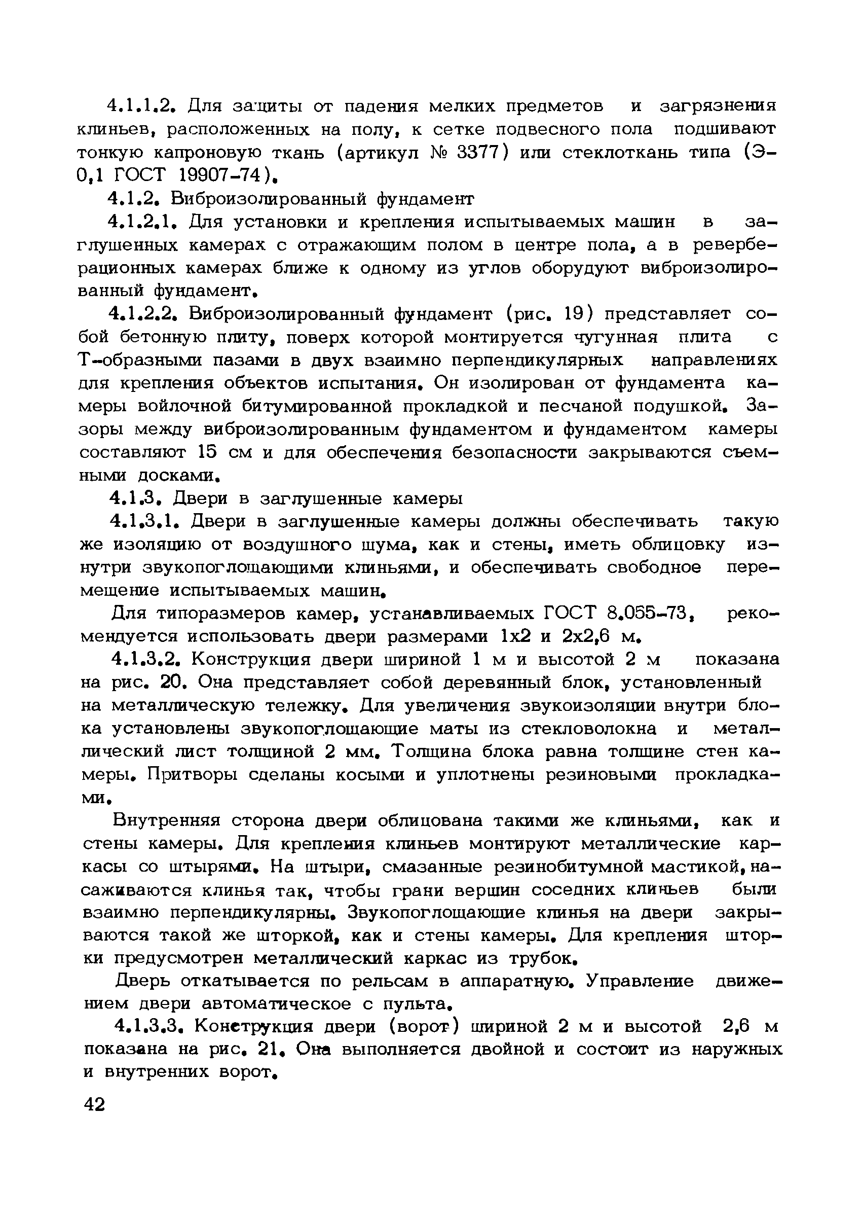 | Оглавление: | 1. Общие положения 1.1. Заглушенные камеры 1.2. Реверберационные камеры 2. Заглушенные камеры 2.1. Основные требования 2.2. Исходные данные 2.3. Акустический расчет заглушенных камер 2.4. Расчет неравномерности звукового поля в заглушенных камерах и погрешности измерения 2.5. Расчет звуковиброизоляции заглушенных камер 2.6. Конструкция заглушенных камер 2.7. Выбор типов заглушенных камер 3. Реверберационные камеры 3.1. Основные требования 3.2. Исходные данные 3.3. Акустический расчет реверберационных камер 3.4. Расчет неравномерности звукового поля в реверберационных камерах и погрешности измерения 3.5. Расчет звуковиброизоляции реверберационных камер 3.6. Конструкция реверберационных камер 3.7. Выбор типов реверберационных камер 4. Оборудование акустических камер 4.1. Механическое оборудование 4.2. Аппаратные 4.3. Электротехническое оборудование 4.4. Санитарно-техническое оборудование 4.5. Пожарная безопасность 5. Испытание акустических камер 5.1. Методика испытания заглушенных камер 5.2. Методика испытания реверберационных камер 6. Определение и нормирование шумовых характеристик машин 6.1. Определение шумовых характеристик машин 6.2. Нормирование шумовых характеристик машин Приложение 1. Пример акустического расчета заглушенных камер Приложение 2. Пример акустического расчета реверберационных камер Литература |