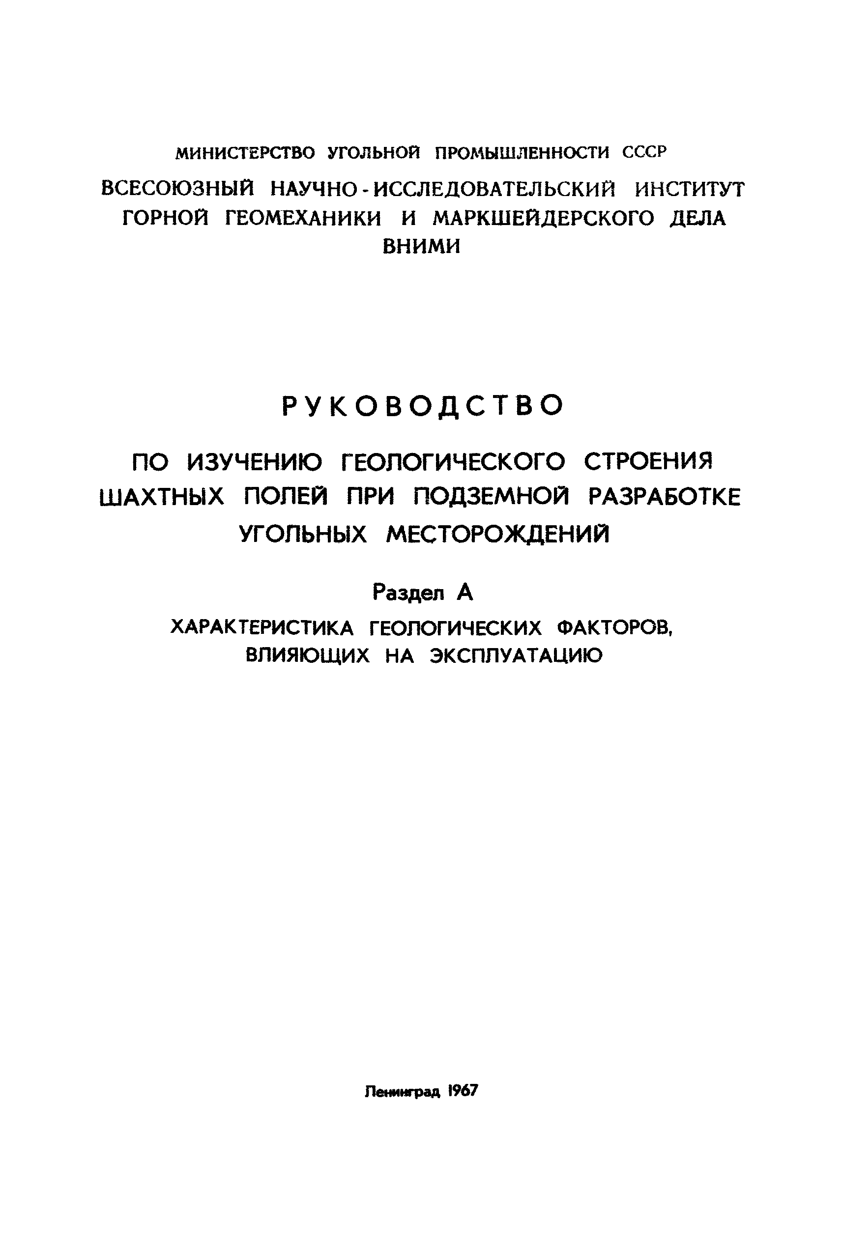 Скачать Руководство по изучению геологического строения шахтных полей при подземной разработке угольных месторождений. Раздел А. Характеристика геологических факторов, влияющих на эксплуатациюДата актуализации: 01.01.2021