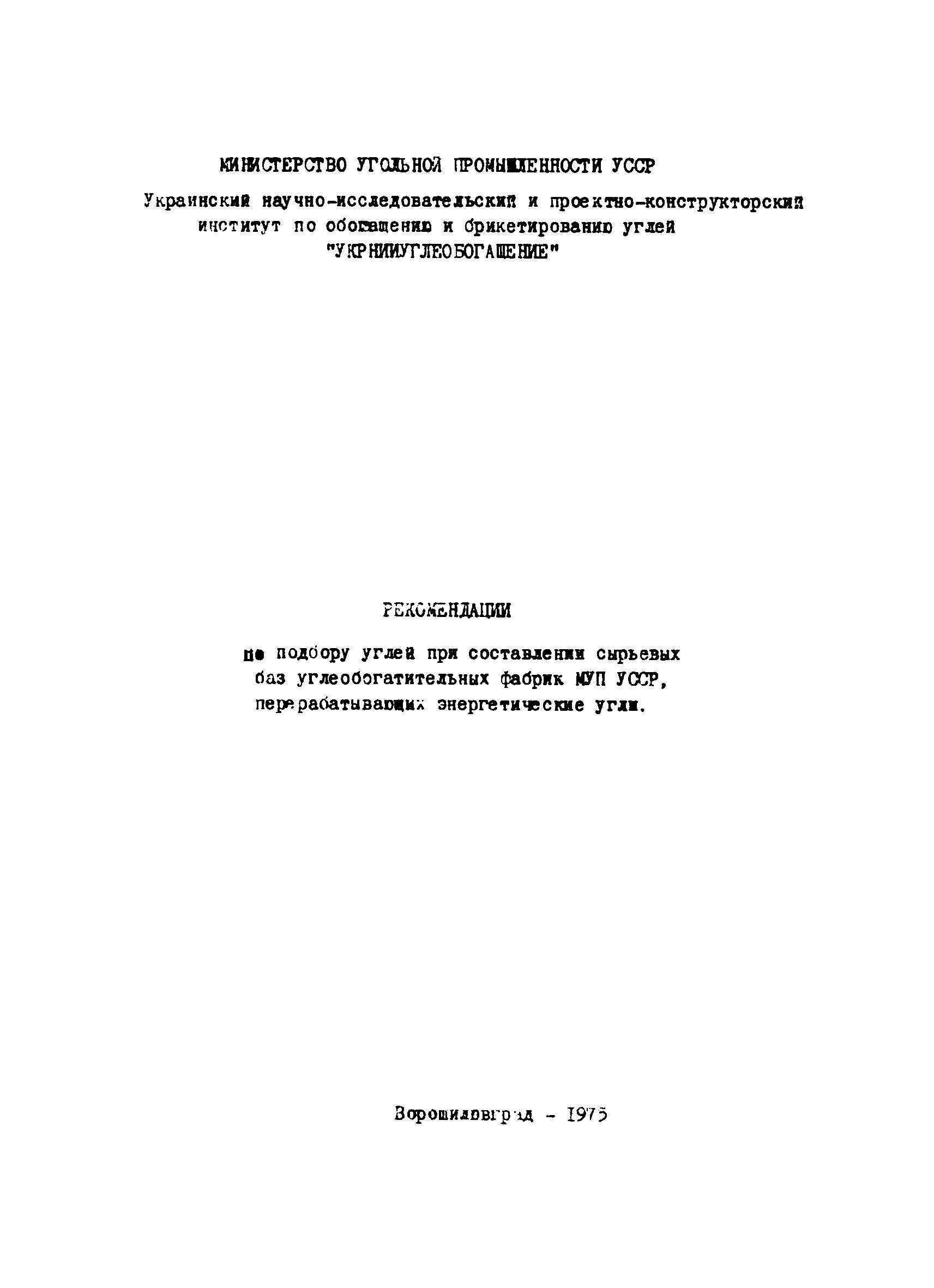 Скачать Рекомендации по подбору углей при составлении сырьевых баз углеобогатительных фабрик МУП УССР, перерабатывающих энергетические углиДата актуализации: 01.01.2021