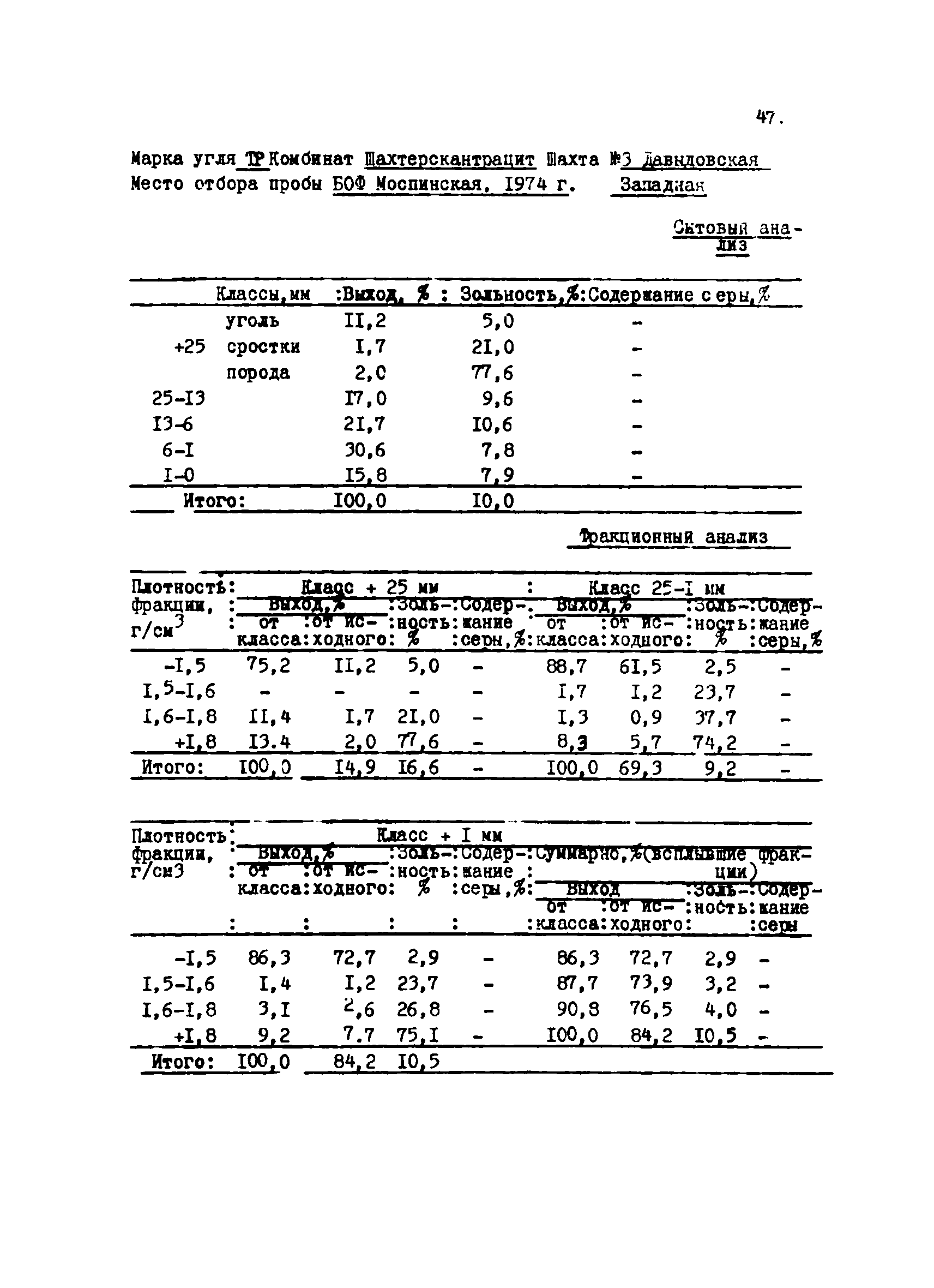 Рекомендации по подбору углей при составлении сырьевых баз углеобогатительных фабрик МУП УССР, перерабатывающих энергетические угли| Статус: | справочные материалы, мп, тпр | | Название рус.: | Рекомендации по подбору углей при составлении сырьевых баз углеобогатительных фабрик МУП УССР, перерабатывающих энергетические угли | | Дата добавления в базу: | 01.01.2019 | | Дата актуализации: | 01.01.2021 | | Область применения: | В рекомендациях приведены материалы, необходимые при составлении сырьевых баз обогатительных фабрик. Рекомендации предназначены для работников угольной промышленности, научно-исследовательских и проектных организаций. Они могут быть также использованы при организации усреднение углей, при выборе схем обогащения и т.д. | | Оглавление: | Оценка обогатительности углей по методу "УкрНИИуглеобогащение" Сводная таблица качества и обогатительности энергетических углей Донбасса Ситовые и фракционные анализы энергетических углей шахт Донецкого бассейна | | Разработан: | УкрНИИуглеобогащение