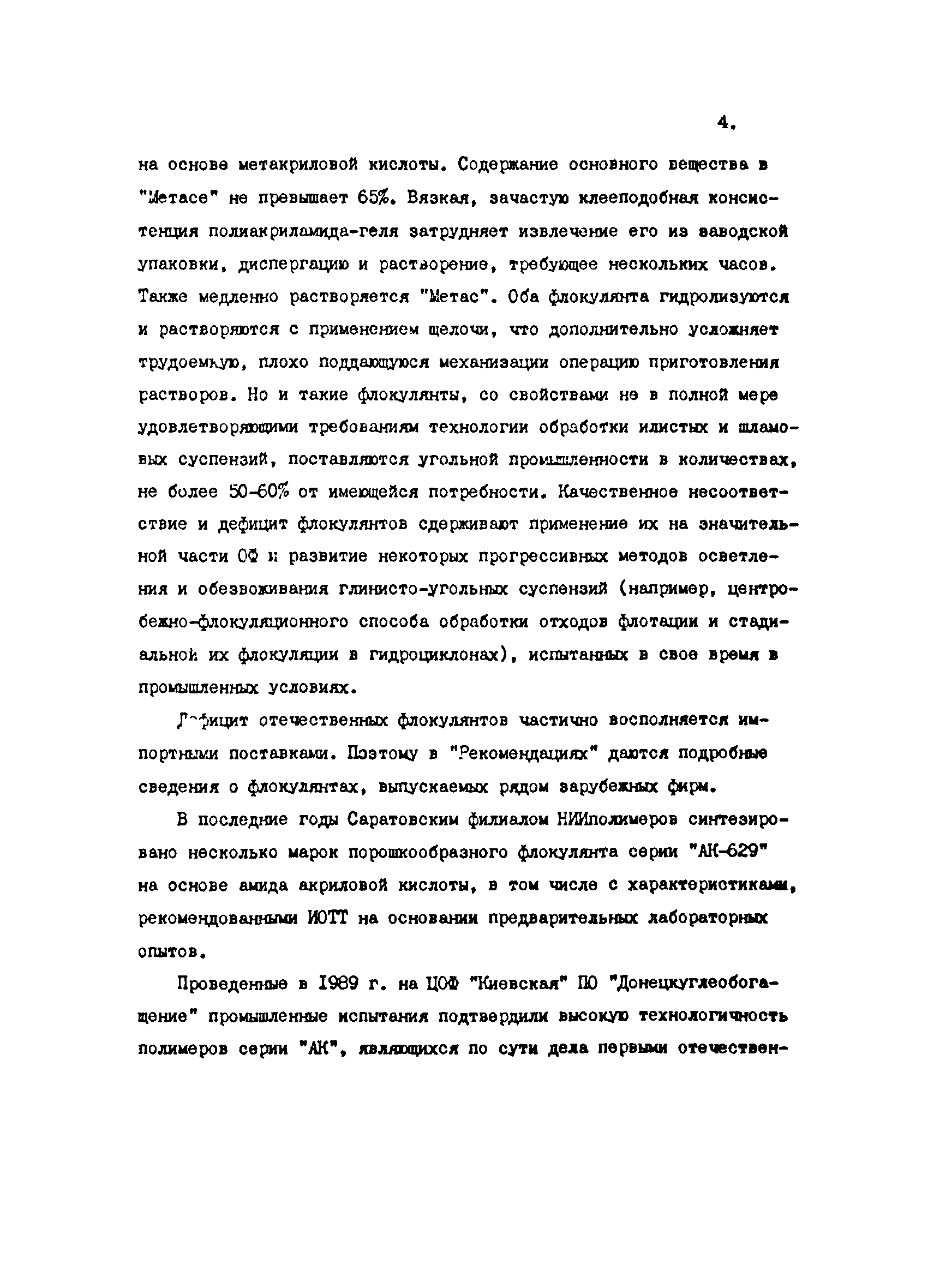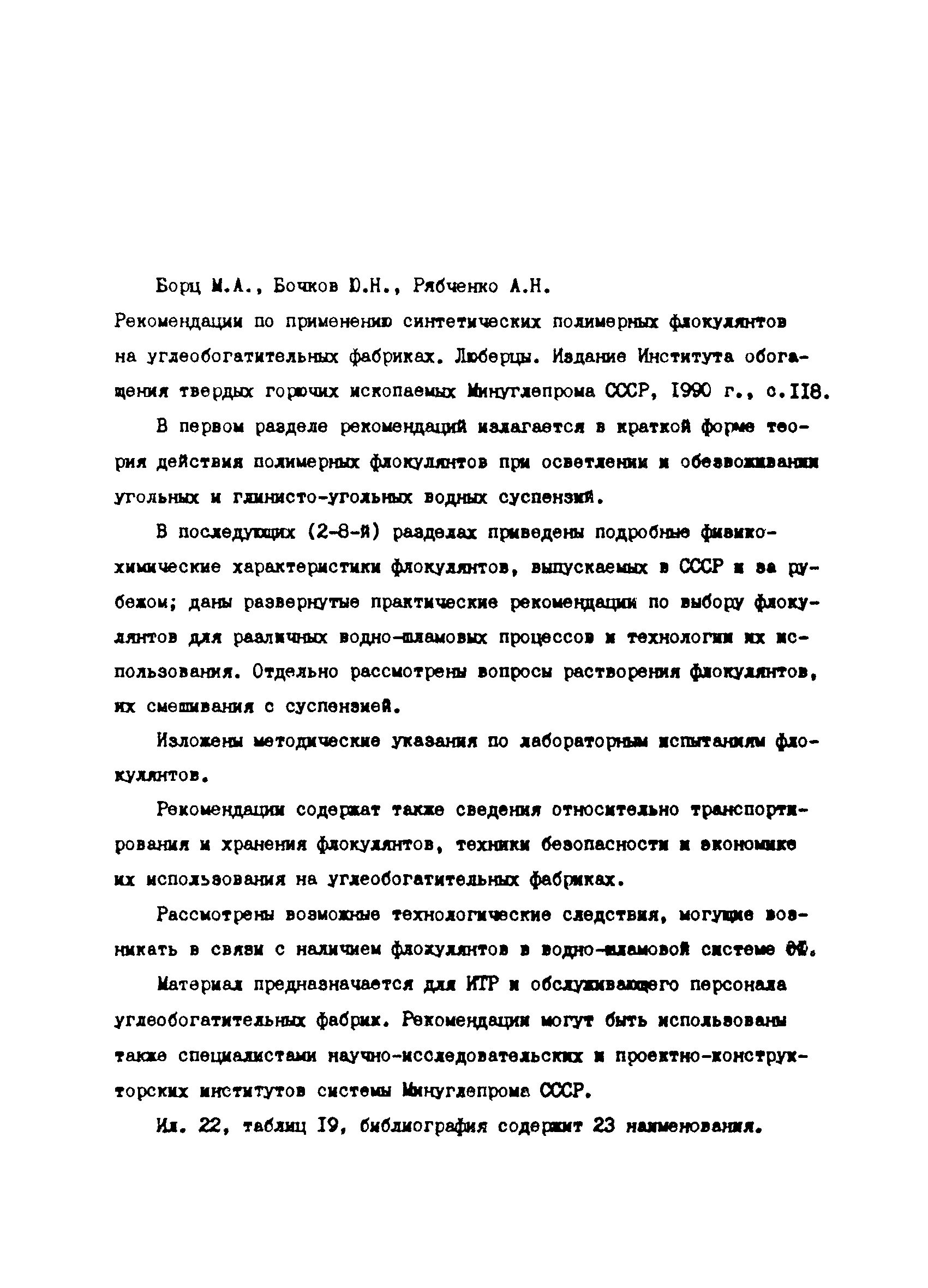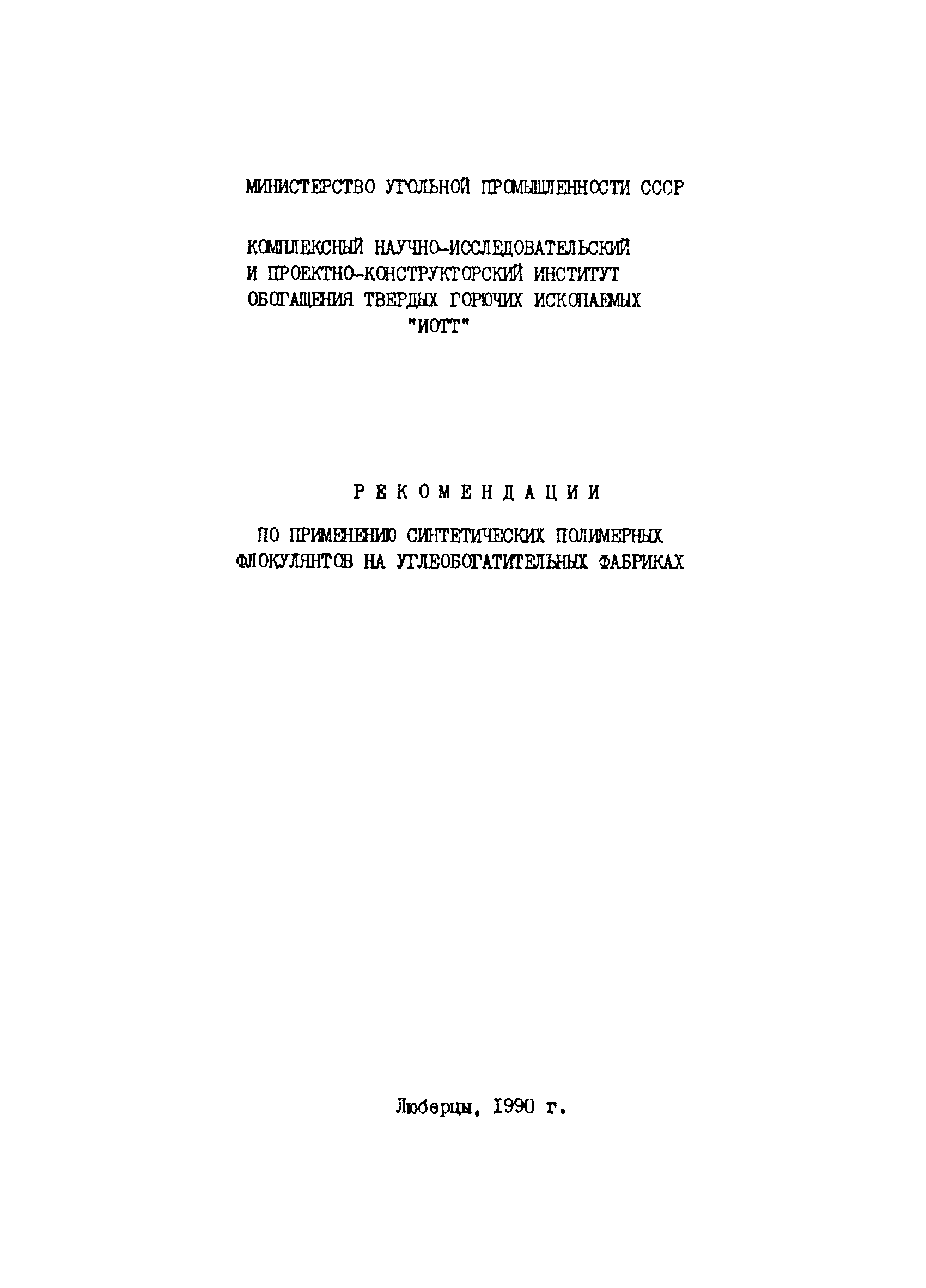 | Название рус.: | Рекомендации по применению синтетических полимерных флокулянтов на углеобогатительных фабриках |