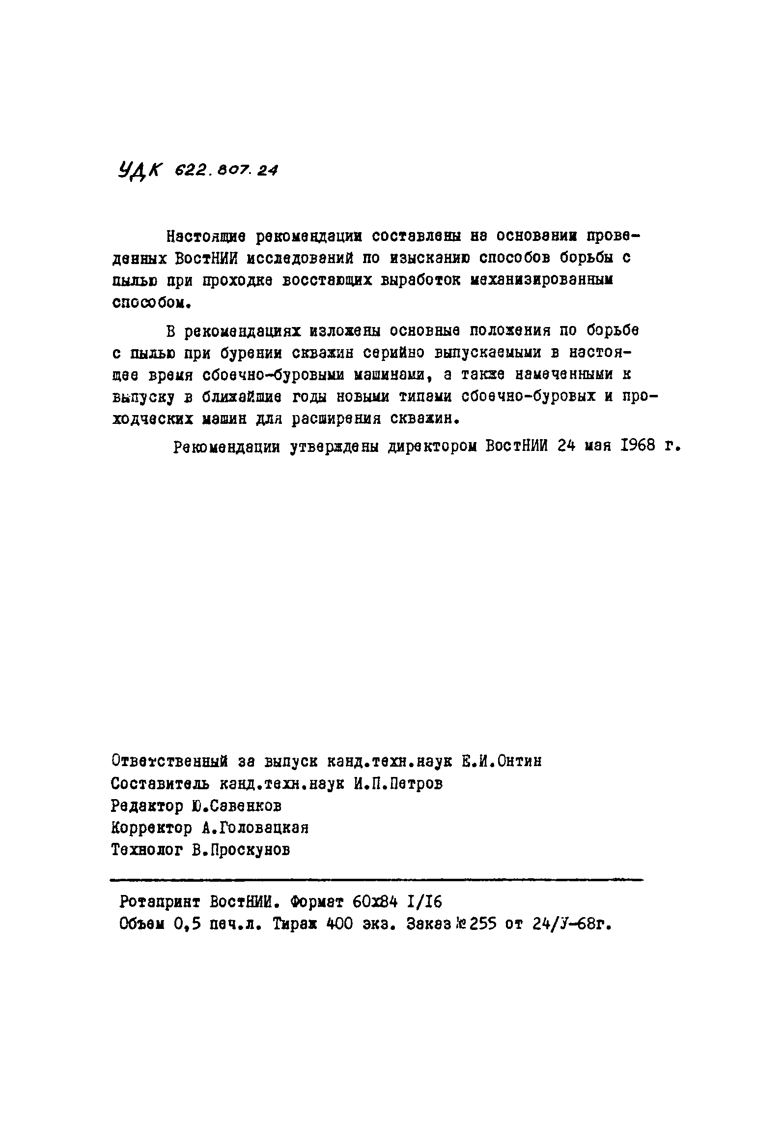 Скачать Рекомендации по обеспыливанию процесса бурения скважин сбоечно-буровыми машинами и проходческими машинами типа ПВВДата актуализации: 01.01.2021