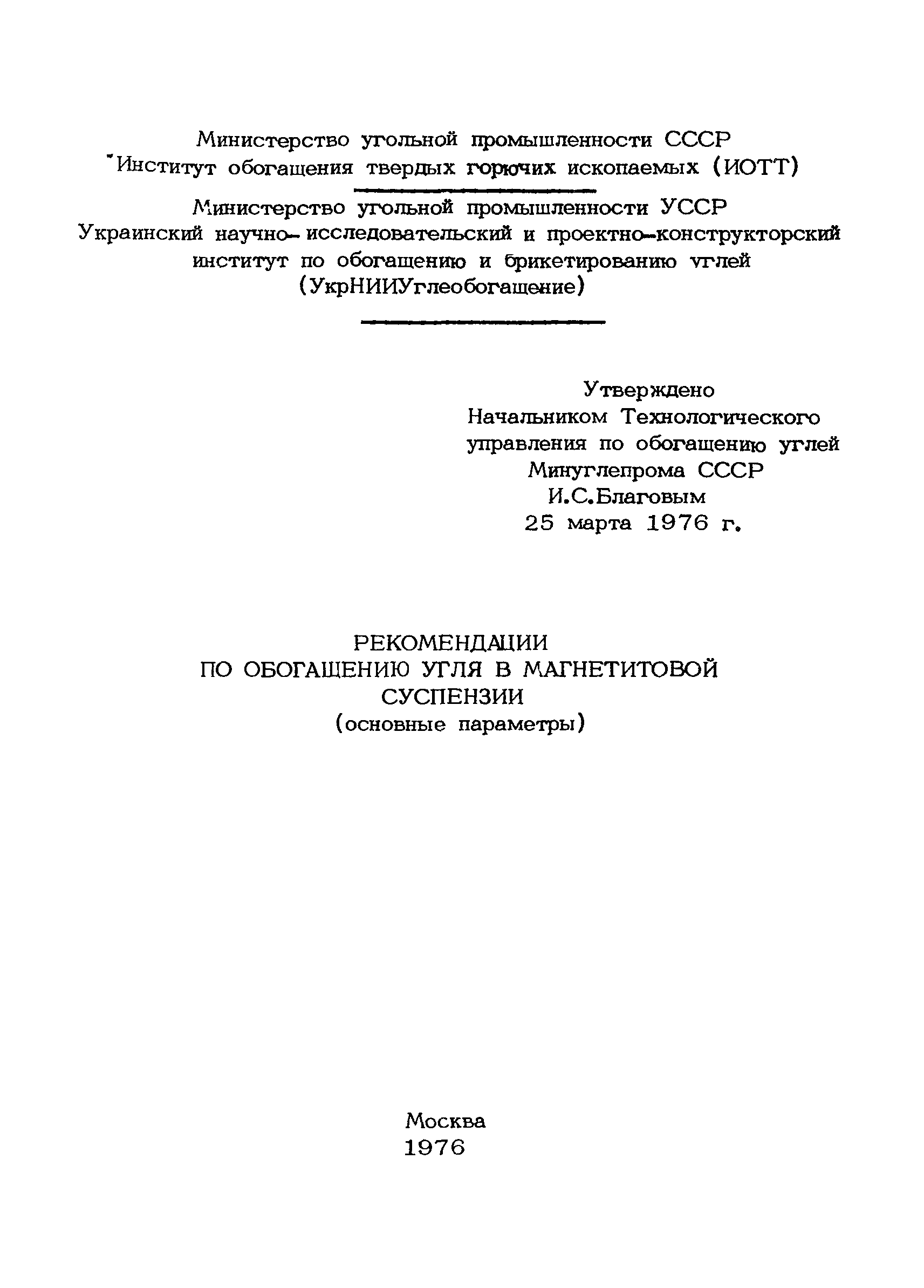 | Утверждён: | 25.03.1976 Министерство угольной промышленности СССР (USSR Ministry of the Coal Industry )