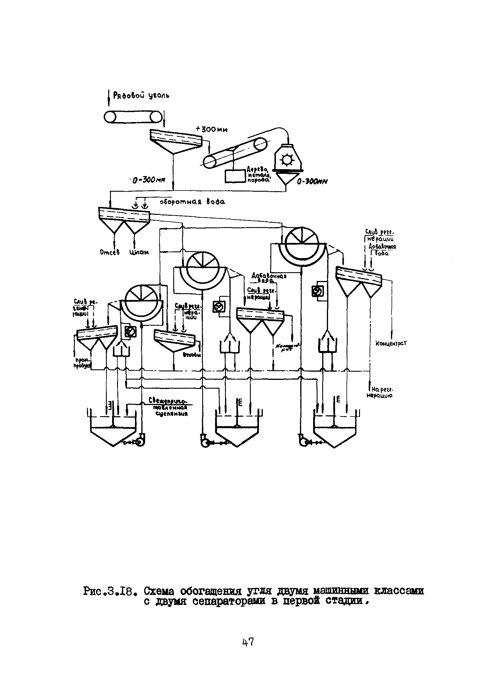 | Оглавление: | 1. Введение 2. Требования, предъявляемые к магнетитовому утяжелителю, и расчет компонентов суспензии 2.1. Характеристика магнетита 2.2. Реологические параметры суспензии и нормы содержания в ней шлама 2.3. Основные формулы для расчета параметров суспензии 2.4. Расчет компонентов суспензий, загрязненных шламом 2.5. Улучшение свойств суспензий 3. Схемы технологического процесса обогащения угля в магнетитовой суспензии 3.1. Схемы подготовки угля. Классификация и обесшламливание 3.2. Приготовление магнетитовой суспензии 3.3. Схемы обогащения угля в сепараторах 3.4. Схемы обогащения мелкого угля и переобогащения промпродукта в гидроциклонах 4. Технологические схемы регенерации суспензии 4.1. Схема регенерации суспензии в одну стадию 4.2. Двухстадиальная схема регенерации суспензии 4.3. Комбинированная схема регенерации суспензии 4.4. Схема раздельной регенерации суспензии 4.5. Схема полной регенерации суспензии 5. Оборудование, применяемое для обогащения в тяжелых средах 5.1. Сепараторы для обогащения крупного угля 5.2. Оборудование для обогащения мелкого угля 5.3. Сепараторы для регенерации магнетитовой суспензии 5.4. Вспомогательное оборудование 5.5. Средства контроля и регулирования 5.6. Опытные образцы тяжелосредного оборудования 6. Основные параметры расчета технологических схем обогащения угля в магнетитовой суспензии 6.1. Подготовка угля 6.2. Обогащение крупного угля в сепараторах 6.3. Обогащение мелкого угля в гидроциклонах 6.4. Эффективность обогащения в магнетитовой суспензии 6.5. Промывка и обезвоживание продуктов обогащения на грохотах 6.6. Регенерация магнетитовой суспензии 6.7. Расход утяжелителя 7. Рекомендации по компоновке тяжелосредных установок 8. Заключение Литература и использованные материалы |