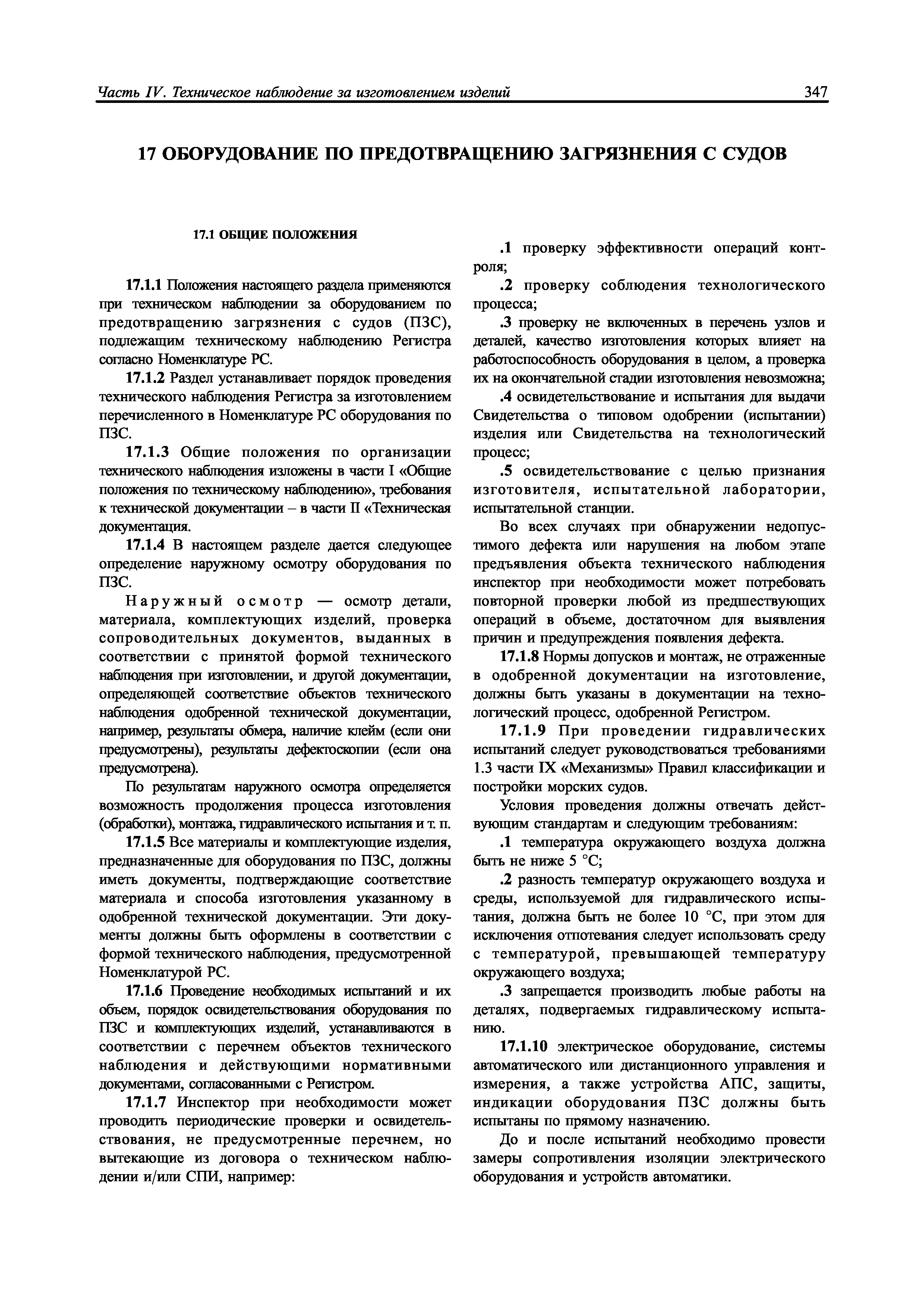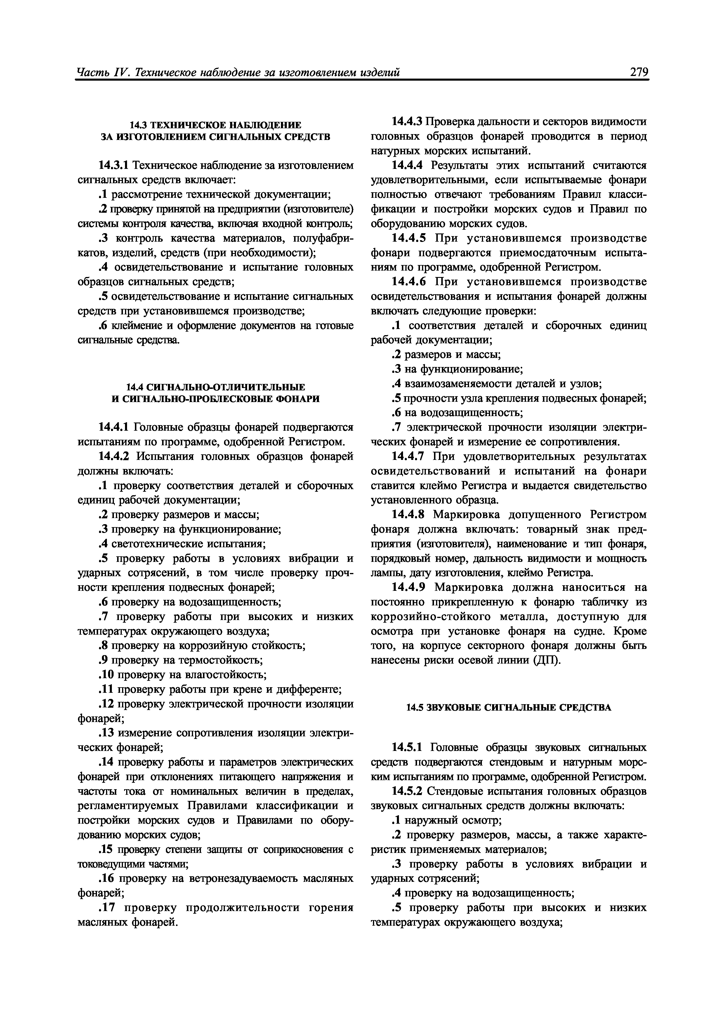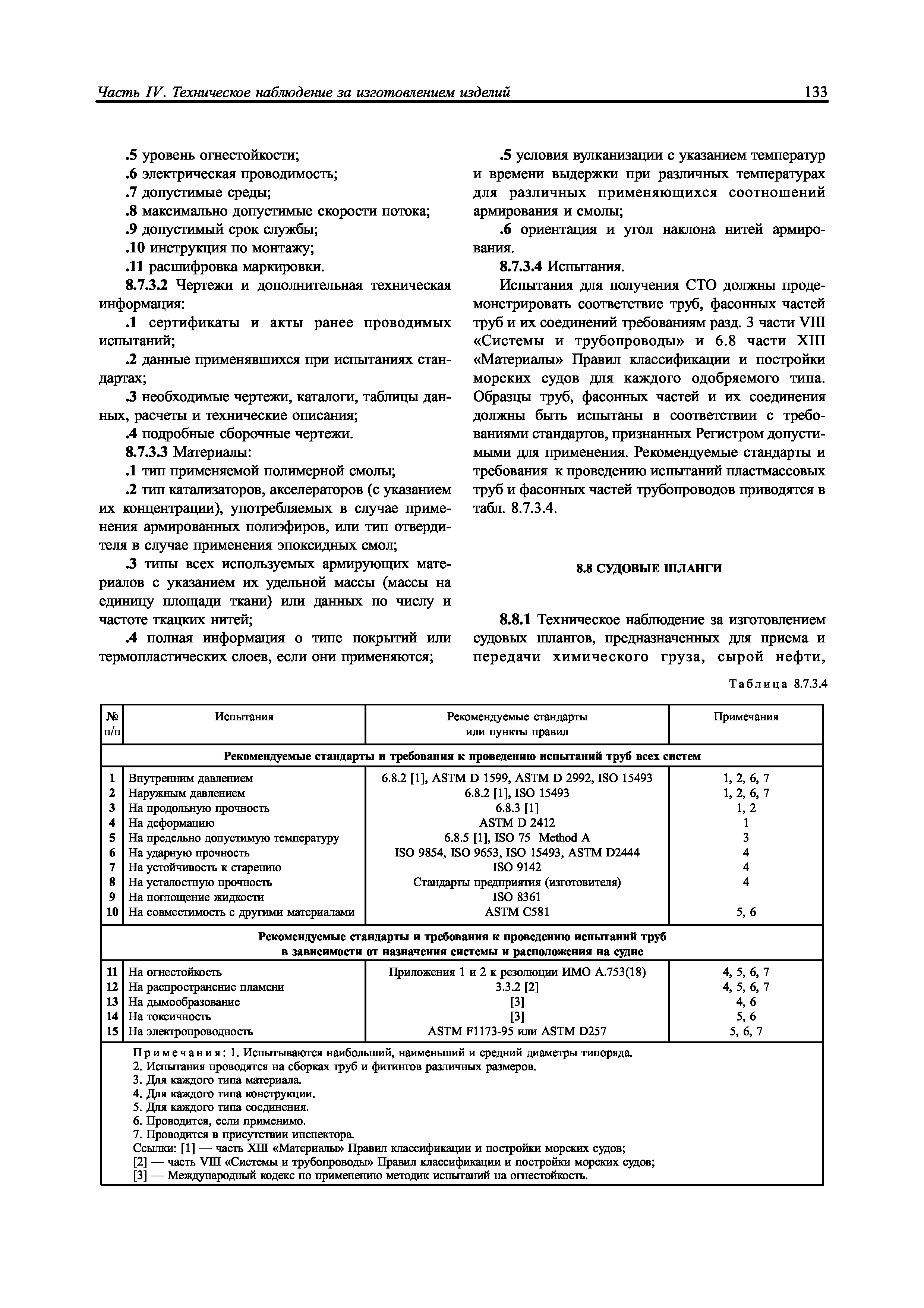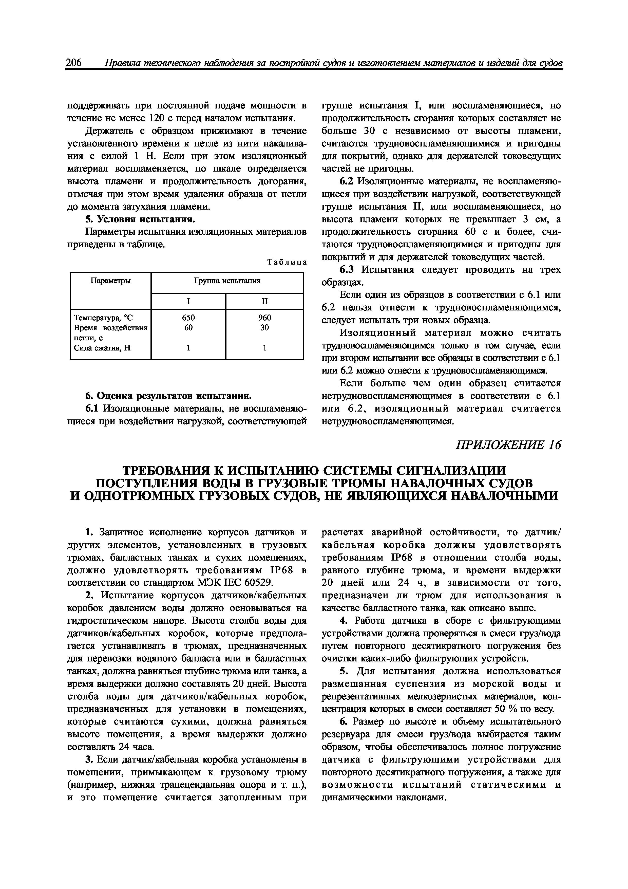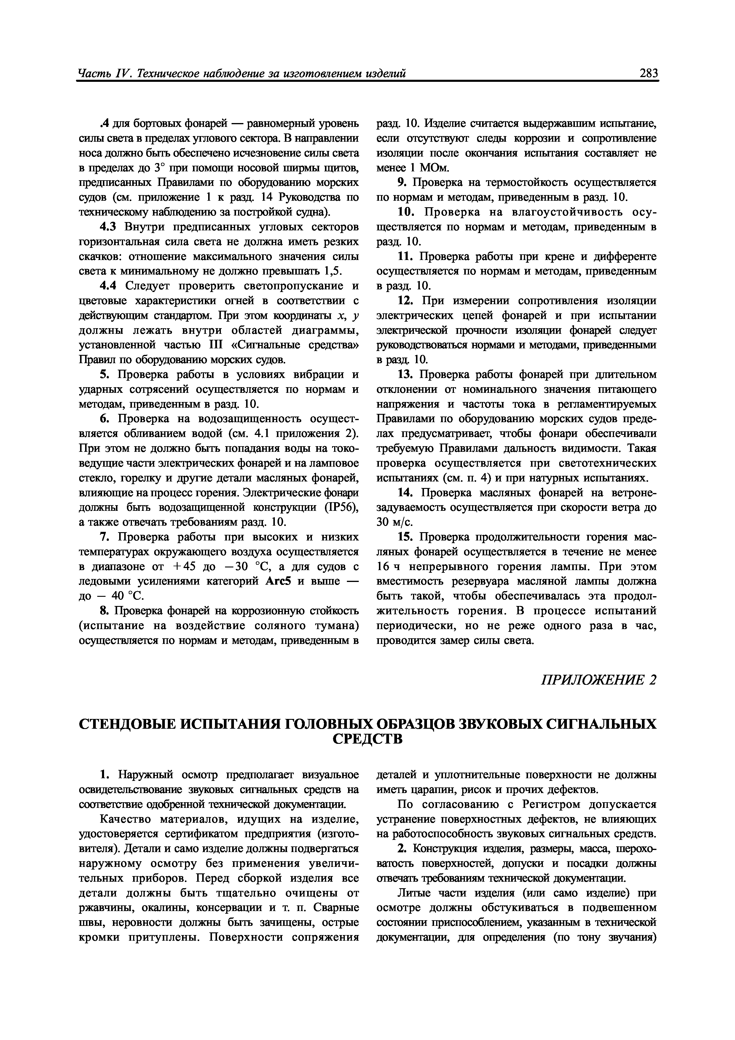| Оглавление: | 1 Общие положения 1.1 Область распространения 1.2 Термины, определения, сокращения 1.3 Объем технического наблюдения 1.4 Техническая документация 1.5 Опытный образец изделия 1.6 Головной образец изделия 1.7 Серийные изделия установившегося производства 1.8 Эксплуатационные испытания изделий 2 Корпус 2.1 Общие положения 3 Устройства, оборудование и снабжение 3.1 Общие положения 3.2 Техническое наблюдение Регистра 3.3 Документация 3.4 Рулевые устройства 3.5 Якорные устройства 3.6 Швартовные устройства 3.7 Буксирные устройства 3.8 Сигнальные мачты 3.9 Устройства и закрытия отверстий в корпусе, надстройках и рубках 3.10 Устройство и оборудование помещений, различные устройства и оборудование, аварийное снабжение 3.11 Цепи без распорок, применяемые в судовых устройствах, кроме якорных 3.12 Стальные тросы 3.13 Растительные тросы и тросы из синтетического волокна (канаты) Приложение 1. Допустимые величины пороков на литых деталях якорей Приложение 2. Испытание якорей и их деталей бросанием Приложение 3. Испытание на растяжение пробной нагрузкой якорей и якорных скоб Приложение 4. Испытания буксирных гаков Приложение 5. Испытания головных образцов иллюминаторов, дверей надстройки и рубки, люков сходных, световых и вентиляционных Приложение 6. Испытания растительных тросов и тросов из синтетического волокна 4 Материалы, конструкции и изделия противопожарной защиты 4.1 Общие положения 4.2 Материалы, конструкции и изделия конструктивной противопожарной защиты 4.3 Изделия систем пожаротушения, противопожарного снабжения и огнетушащие вещества 5 Механизмы 5.1 Общие положения 5.2 Главные и вспомогательные двигатели внутреннего сгорания мощностью 55 кВт и более 5.3 Вспомогательные двигатели внутреннего сгорания мощностью менее 55 кВт 5.4 Главные паровые турбины и турбины электрогенераторов 5.5 Вспомогательные паровые турбины 5.6 Главные газотурбинные двигатели (ГТД) и газовые турбины (ГТ) для привода электрогенераторов 5.7 Передачи и разобщительные муфты главных и вспомогательных механизмов 5.8 Вспомогательные механизмы 5.9 Детали механизмов, перечисленных в таблице 5.8.1 5.10 Палубные механизмы 5.11 Телеграфы механические 5.12 Стендовые испытания 5.13 Документы Регистра 5.14 Документы Регистра для технического наблюдения за изготовлением и одобрения ДВС Приложение 1.Термины и определения (применительно к разд. 5 "Механизмы") (приведены в строгом соответствии с Приложением 1 "Глоссарий" УТ М44 (Rev.8 Mar 2015) МАКО) Приложение 2. Порядок представления и прохождения документации Приложение 3. Форма заявки на типовое одобрение ДВС и основные технические данные (в соответствии с приложением 3 к УТ МАКО М44, изм. 9) Приложение 4. Таблица соответствия документации и данных по ДВС лицензиара и лицензиата Приложение 5. Образец формы подтверждения лицензиаром изменений конструкции ДВС, выполненных лицензиатом Приложение 6. Типовые испытания ДВС Приложение 7. Стендовые испытания ДВС (заводские приемочные испытания) и испытания ДВС после установки на судне Приложение 8. Порядок освидетельствования и оформления документов на компоненты ДВС Приложение 9. Порядок освидетельствования, испытаний, одобрения турбонагнетателей и их компоновки с ДВС Приложение 10. Процедура типового испытания для предохранительных клапанов картеров Приложение 11. Процедура типовых испытаний приборов обнар
