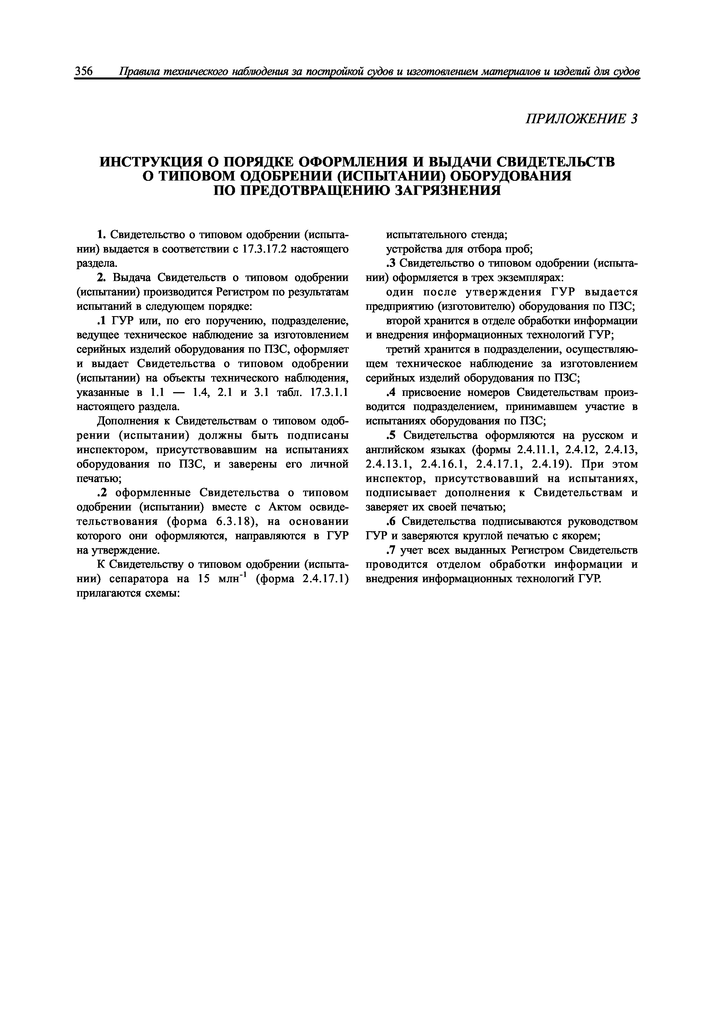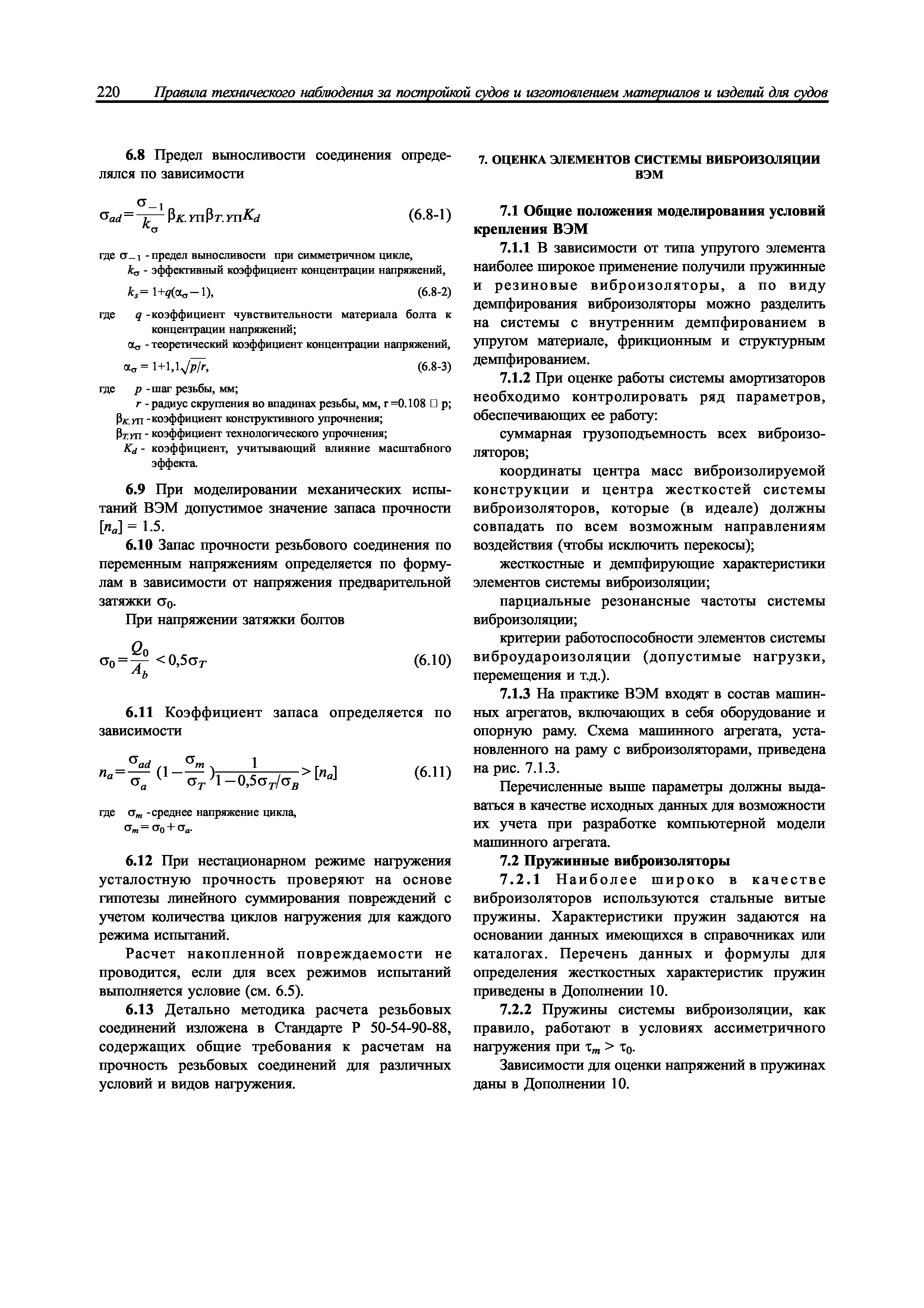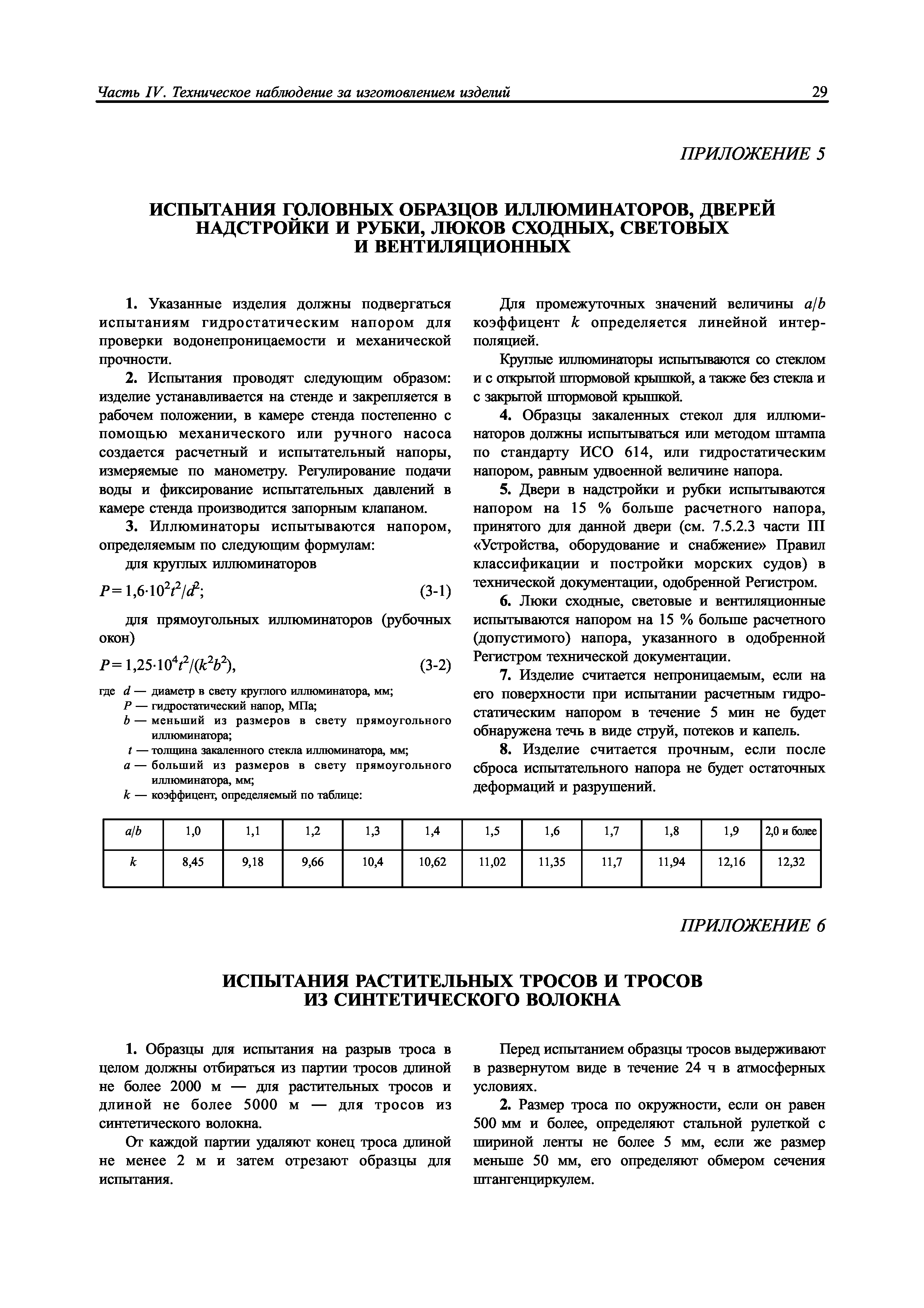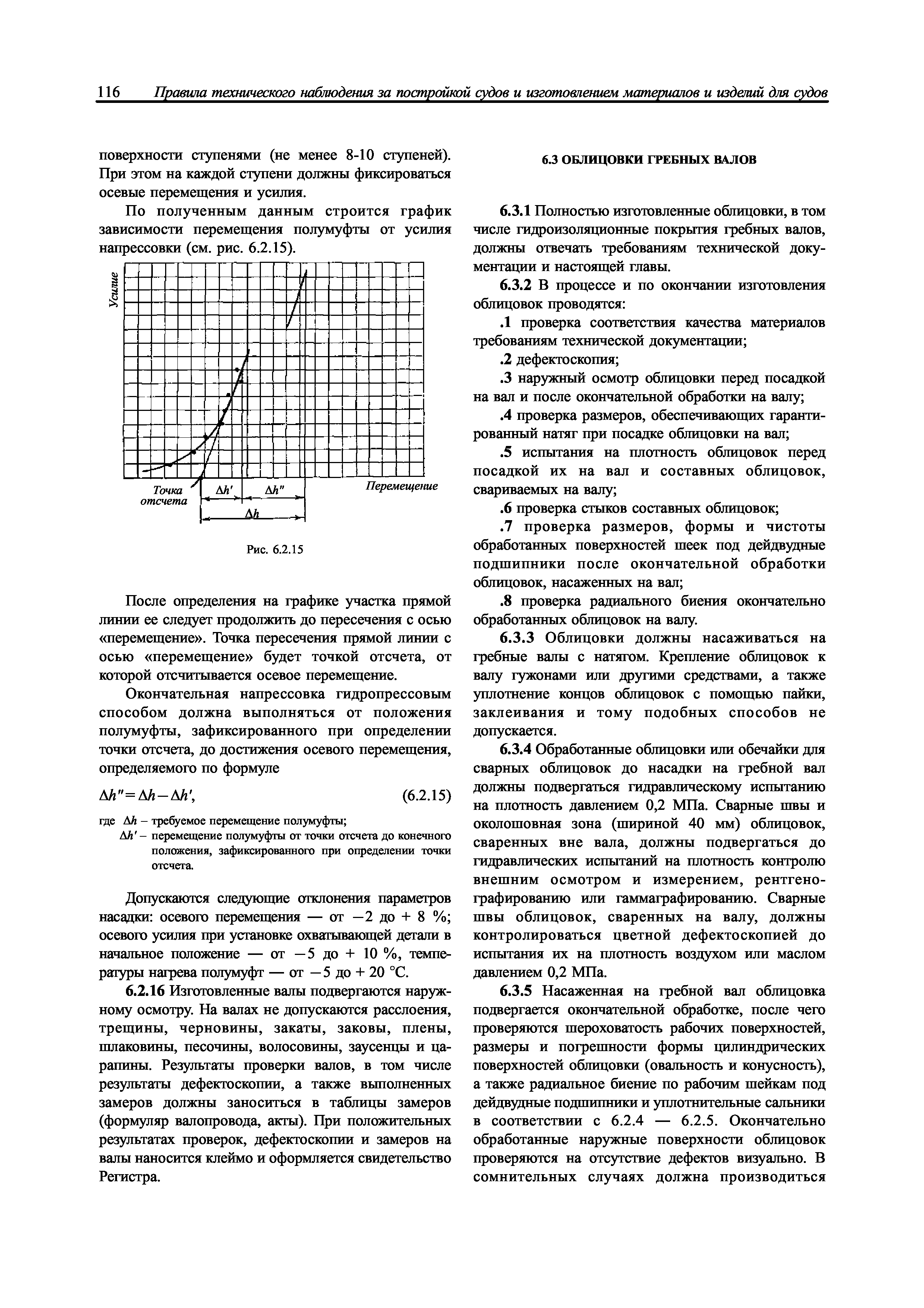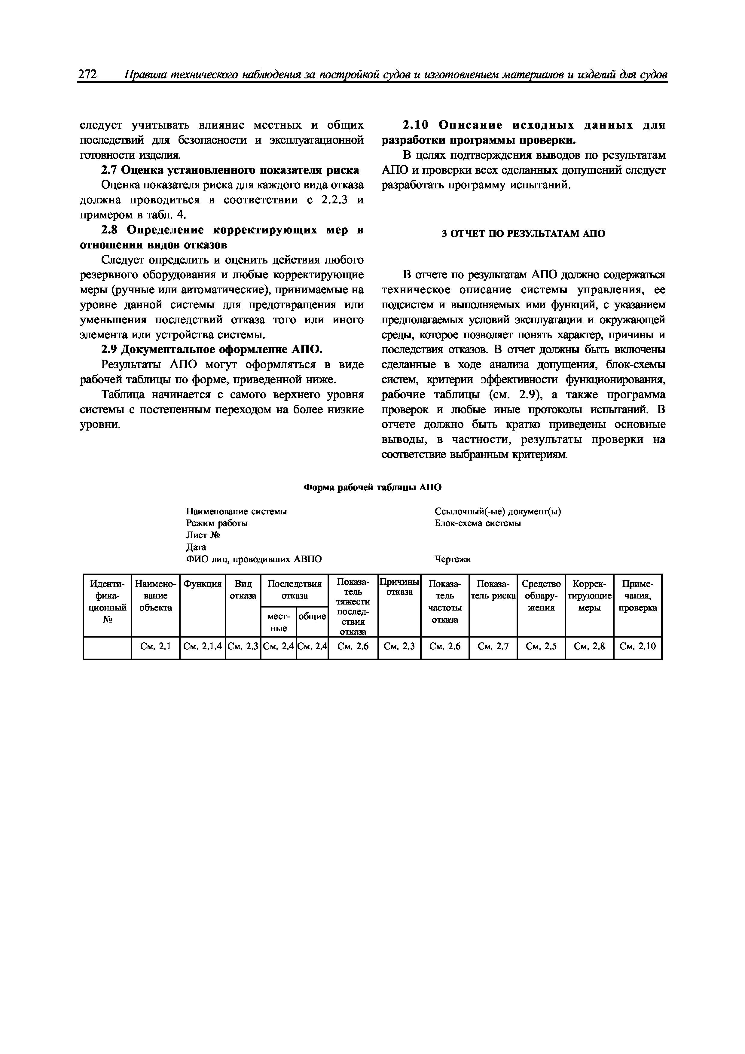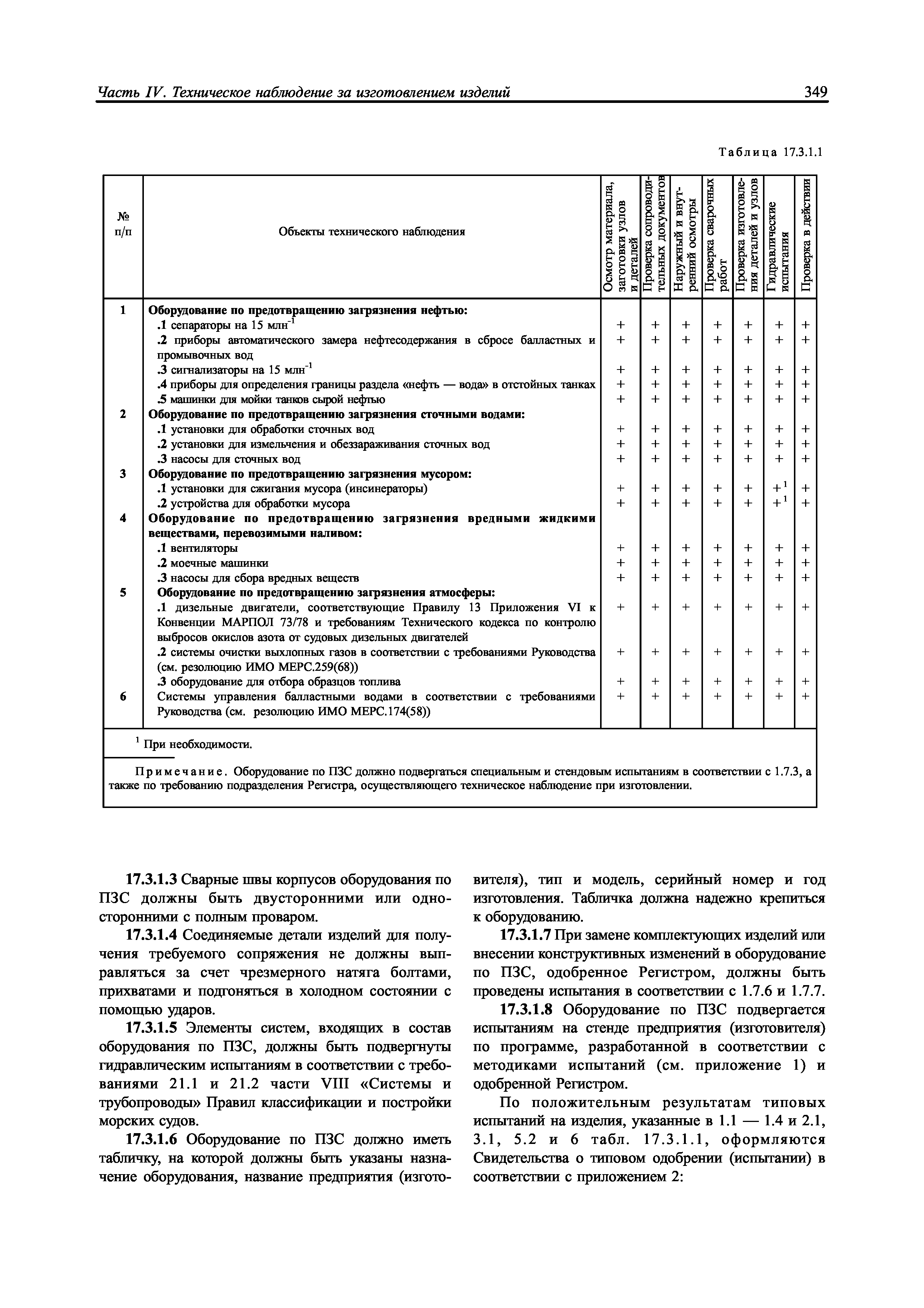 | Оглавление: | 1 Общие положения 1.1 Область распространения 1.2 Термины, определения, сокращения 1.3 Объем технического наблюдения 1.4 Техническая документация 1.5 Опытный образец изделия 1.6 Головной образец изделия 1.7 Серийные изделия установившегося производства 1.8 Эксплуатационные испытания изделий 2 Корпус 2.1 Общие положения 3 Устройства, оборудование и снабжение 3.1 Общие положения 3.2 Техническое наблюдение Регистра 3.3 Документация 3.4 Рулевые устройства 3.5 Якорные устройства 3.6 Швартовные устройства 3.7 Буксирные устройства 3.8 Сигнальные мачты 3.9 Устройства и закрытия отверстий в корпусе, надстройках и рубках 3.10 Устройство и оборудование помещений, различные устройства и оборудование, аварийное снабжение 3.11 Цепи без распорок, применяемые в судовых устройствах, кроме якорных 3.12 Стальные тросы 3.13 Растительные тросы и тросы из синтетического волокна (канаты) Приложение 1. Допустимые величины пороков на литых деталях якорей Приложение 2. Испытание якорей и их деталей бросанием Приложение 3. Испытание на растяжение пробной нагрузкой якорей и якорных скоб Приложение 4. Испытания буксирных гаков Приложение 5. Испытания головных образцов иллюминаторов, дверей надстройки и рубки, люков сходных, световых и вентиляционных Приложение 6. Испытания растительных тросов и тросов из синтетического волокна 4 Материалы, конструкции и изделия противопожарной защиты 4.1 Общие положения 4.2 Материалы, конструкции и изделия конструктивной противопожарной защиты 4.3 Изделия систем пожаротушения, противопожарного снабжения и огнетушащие вещества 5 Механизмы 5.1 Общие положения 5.2 Главные и вспомогательные двигатели внутреннего сгорания мощностью 55 кВт и более 5.3 Вспомогательные двигатели внутреннего сгорания мощностью менее 55 кВт 5.4 Главные паровые турбины и турбины электрогенераторов 5.5 Вспомогательные паровые турбины 5.6 Главные газотурбинные двигатели (ГТД) и газовые турбины (ГТ) для привода электрогенераторов 5.7 Передачи и разобщительные муфты главных и вспомогательных механизмов 5.8 Вспомогательные механизмы 5.9 Детали механизмов, перечисленных в таблице 5.8.1 5.10 Палубные механизмы 5.11 Телеграфы механические 5.12 Стендовые испытания 5.13 Документы Регистра 5.14 Документы Регистра для технического наблюдения за изготовлением и одобрения ДВС Приложение 1.Термины и определения (применительно к разд. 5 "Механизмы") (приведены в строгом соответствии с Приложением 1 "Глоссарий" УТ М44 (Rev.8 Mar 2015) МАКО) Приложение 2. Порядок представления и прохождения документации Приложение 3. Форма заявки на типовое одобрение ДВС и основные технические данные (в соответствии с приложением 3 к УТ МАКО М44, изм. 9) Приложение 4. Таблица соответствия документации и данных по ДВС лицензиара и лицензиата Приложение 5. Образец формы подтверждения лицензиаром изменений конструкции ДВС, выполненных лицензиатом Приложение 6. Типовые испытания ДВС Приложение 7. Стендовые испытания ДВС (заводские приемочные испытания) и испытания ДВС после установки на судне Приложение 8. Порядок освидетельствования и оформления документов на компоненты ДВС Приложение 9. Порядок освидетельствования, испытаний, одобрения турбонагнетателей и их компоновки с ДВС Приложение 10. Процедура типового испытания для предохранительных клапанов картеров Приложение 11. Процедура типовых испытаний приборов обнар