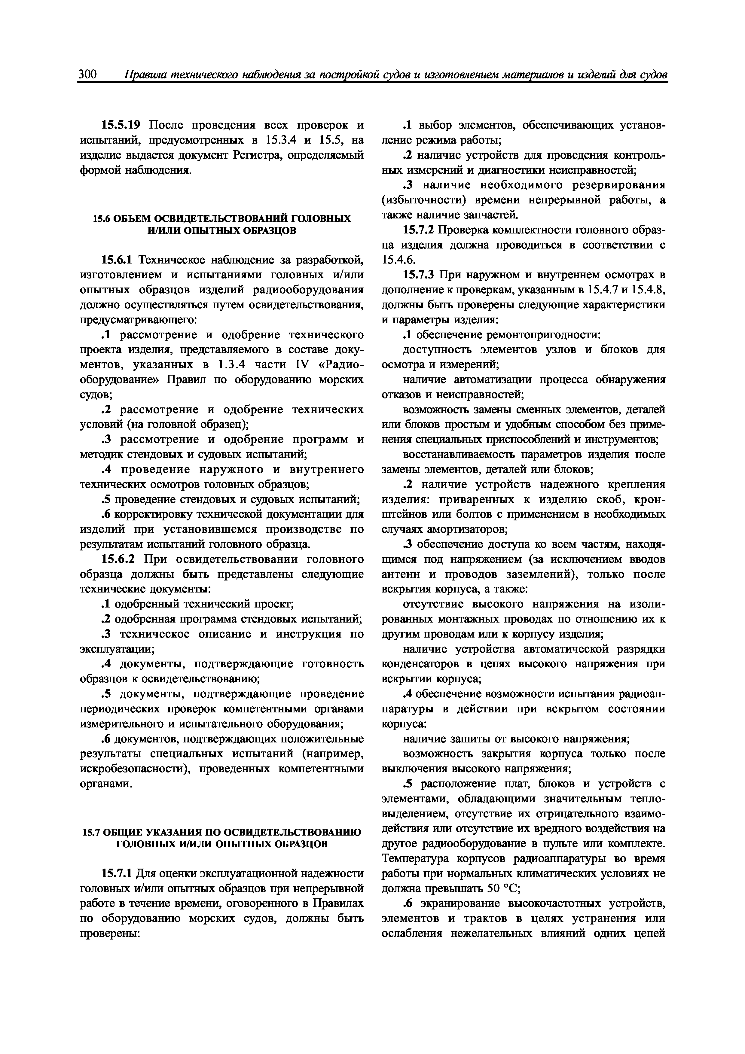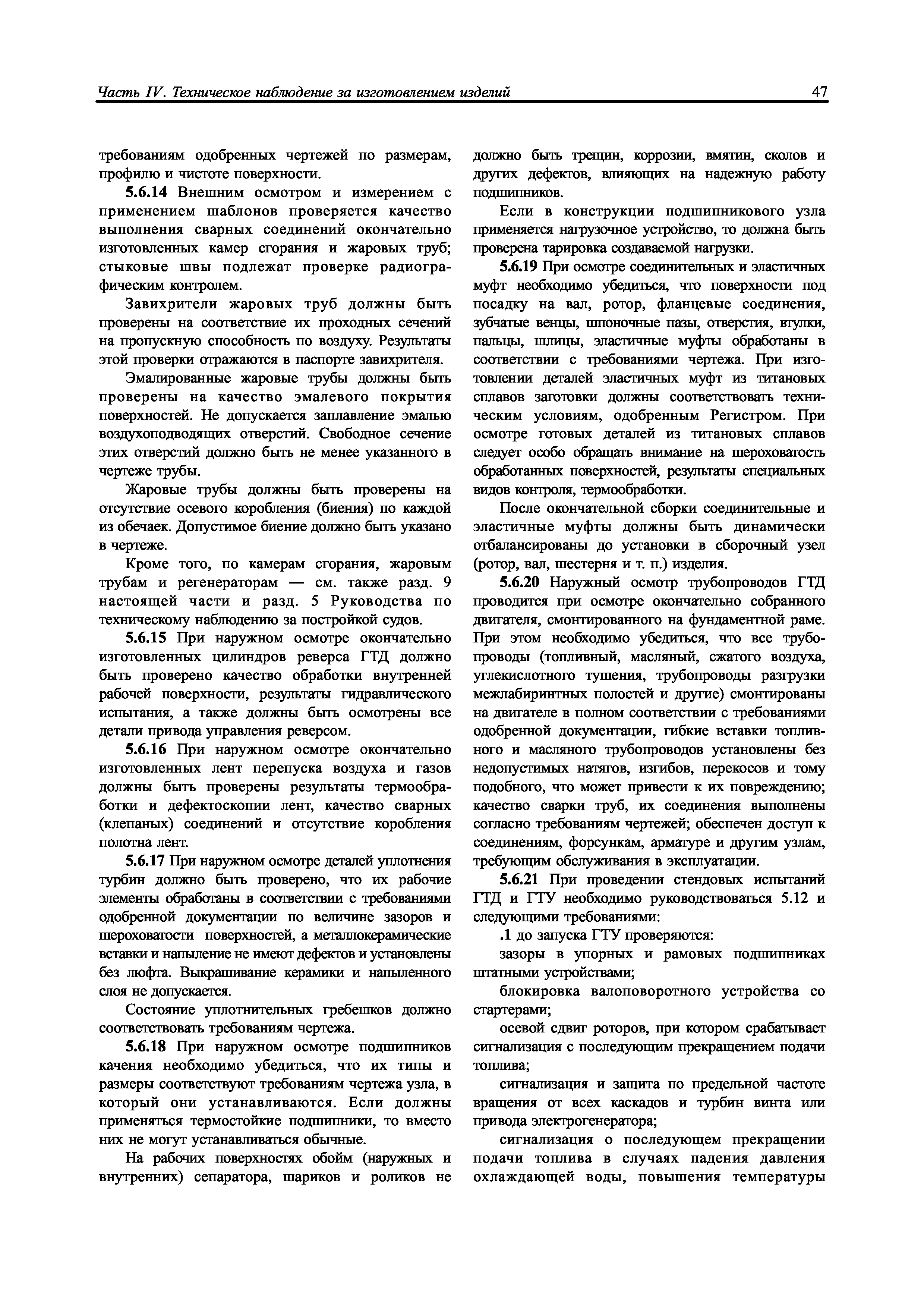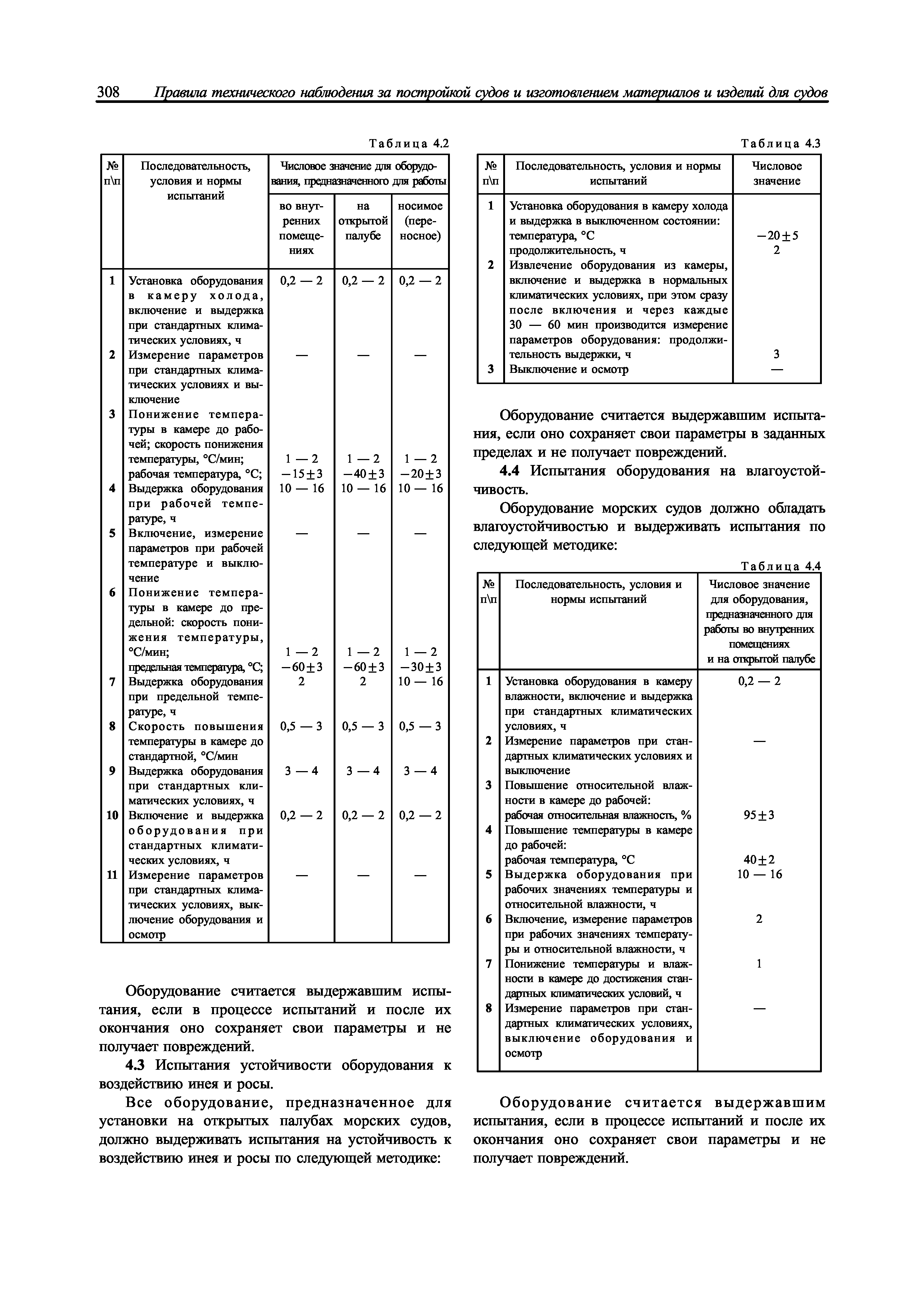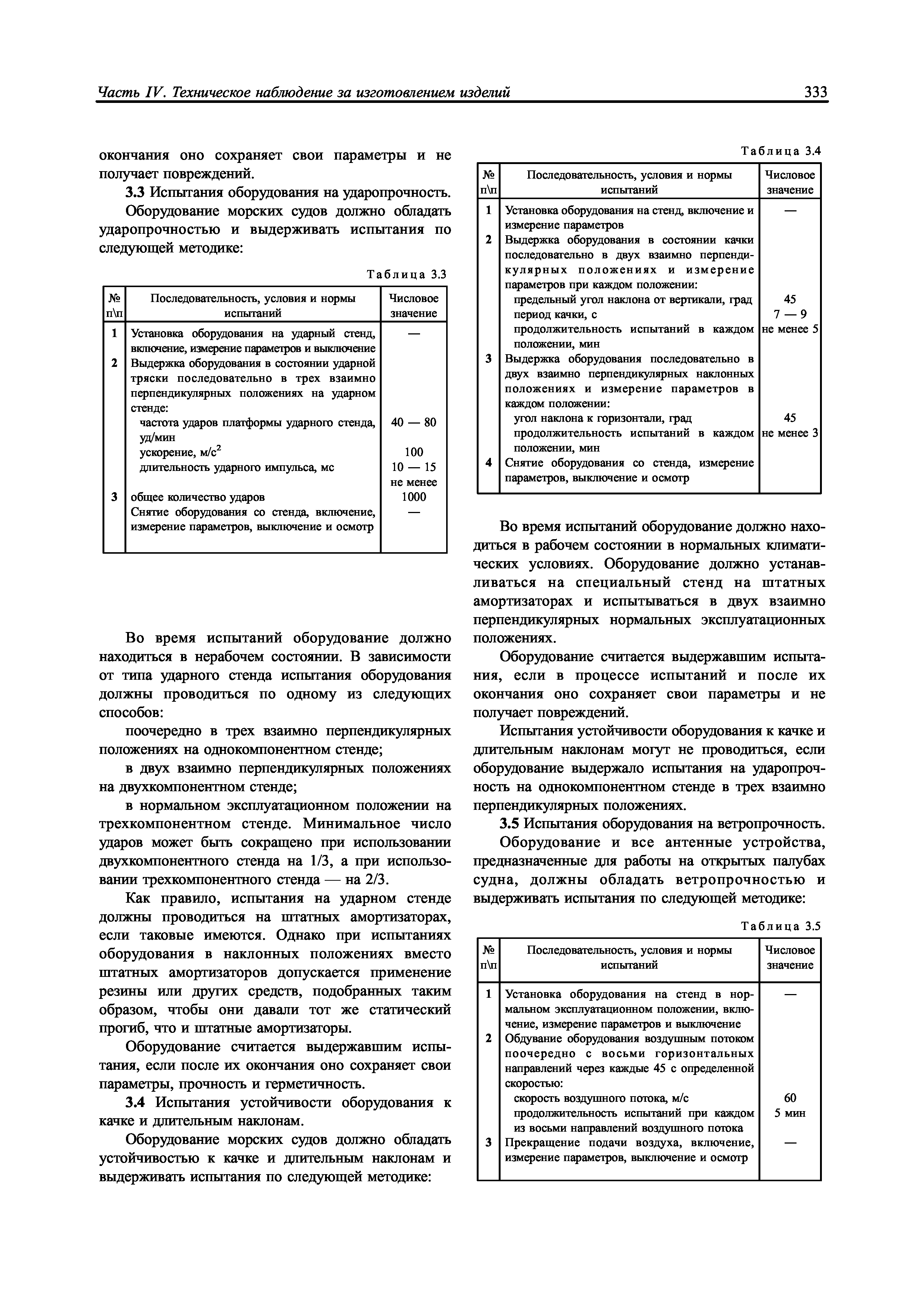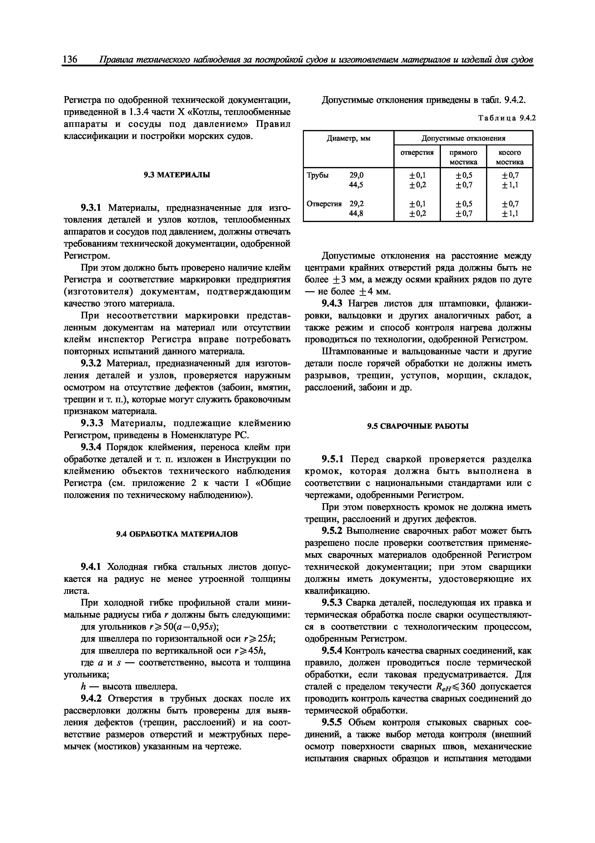 | Оглавление: | 1 Общие положения 1.1 Область распространения 1.2 Термины, определения, сокращения 1.3 Объем технического наблюдения 1.4 Техническая документация 1.5 Опытный образец изделия 1.6 Головной образец изделия 1.7 Серийные изделия установившегося производства 1.8 Эксплуатационные испытания изделий 2 Корпус 2.1 Общие положения 3 Устройства, оборудование и снабжение 3.1 Общие положения 3.2 Техническое наблюдение Регистра 3.3 Документация 3.4 Рулевые устройства 3.5 Якорные устройства 3.6 Швартовные устройства 3.7 Буксирные устройства 3.8 Сигнальные мачты 3.9 Устройства и закрытия отверстий в корпусе, надстройках и рубках 3.10 Устройство и оборудование помещений, различные устройства и оборудование, аварийное снабжение 3.11 Цепи без распорок, применяемые в судовых устройствах, кроме якорных 3.12 Стальные тросы 3.13 Растительные тросы и тросы из синтетического волокна (канаты) Приложение 1. Допустимые величины пороков на литых деталях якорей Приложение 2. Испытание якорей и их деталей бросанием Приложение 3. Испытание на растяжение пробной нагрузкой якорей и якорных скоб Приложение 4. Испытания буксирных гаков Приложение 5. Испытания головных образцов иллюминаторов, дверей надстройки и рубки, люков сходных, световых и вентиляционных Приложение 6. Испытания растительных тросов и тросов из синтетического волокна 4 Материалы, конструкции и изделия противопожарной защиты 4.1 Общие положения 4.2 Материалы, конструкции и изделия конструктивной противопожарной защиты 4.3 Изделия систем пожаротушения, противопожарного снабжения и огнетушащие вещества 5 Механизмы 5.1 Общие положения 5.2 Главные и вспомогательные двигатели внутреннего сгорания мощностью 55 кВт и более 5.3 Вспомогательные двигатели внутреннего сгорания мощностью менее 55 кВт 5.4 Главные паровые турбины и турбины электрогенераторов 5.5 Вспомогательные паровые турбины 5.6 Главные газотурбинные двигатели (ГТД) и газовые турбины (ГТ) для привода электрогенераторов 5.7 Передачи и разобщительные муфты главных и вспомогательных механизмов 5.8 Вспомогательные механизмы 5.9 Детали механизмов, перечисленных в таблице 5.8.1 5.10 Палубные механизмы 5.11 Телеграфы механические 5.12 Стендовые испытания 5.13 Документы Регистра 5.14 Документы Регистра для технического наблюдения за изготовлением и одобрения ДВС Приложение 1.Термины и определения (применительно к разд. 5 "Механизмы") (приведены в строгом соответствии с Приложением 1 "Глоссарий" УТ М44 (Rev.8 Mar 2015) МАКО) Приложение 2. Порядок представления и прохождения документации Приложение 3. Форма заявки на типовое одобрение ДВС и основные технические данные (в соответствии с приложением 3 к УТ МАКО М44, изм. 9) Приложение 4. Таблица соответствия документации и данных по ДВС лицензиара и лицензиата Приложение 5. Образец формы подтверждения лицензиаром изменений конструкции ДВС, выполненных лицензиатом Приложение 6. Типовые испытания ДВС Приложение 7. Стендовые испытания ДВС (заводские приемочные испытания) и испытания ДВС после установки на судне Приложение 8. Порядок освидетельствования и оформления документов на компоненты ДВС Приложение 9. Порядок освидетельствования, испытаний, одобрения турбонагнетателей и их компоновки с ДВС Приложение 10. Процедура типового испытания для предохранительных клапанов картеров Приложение 11. Процедура типовых испытаний приборов обнар
