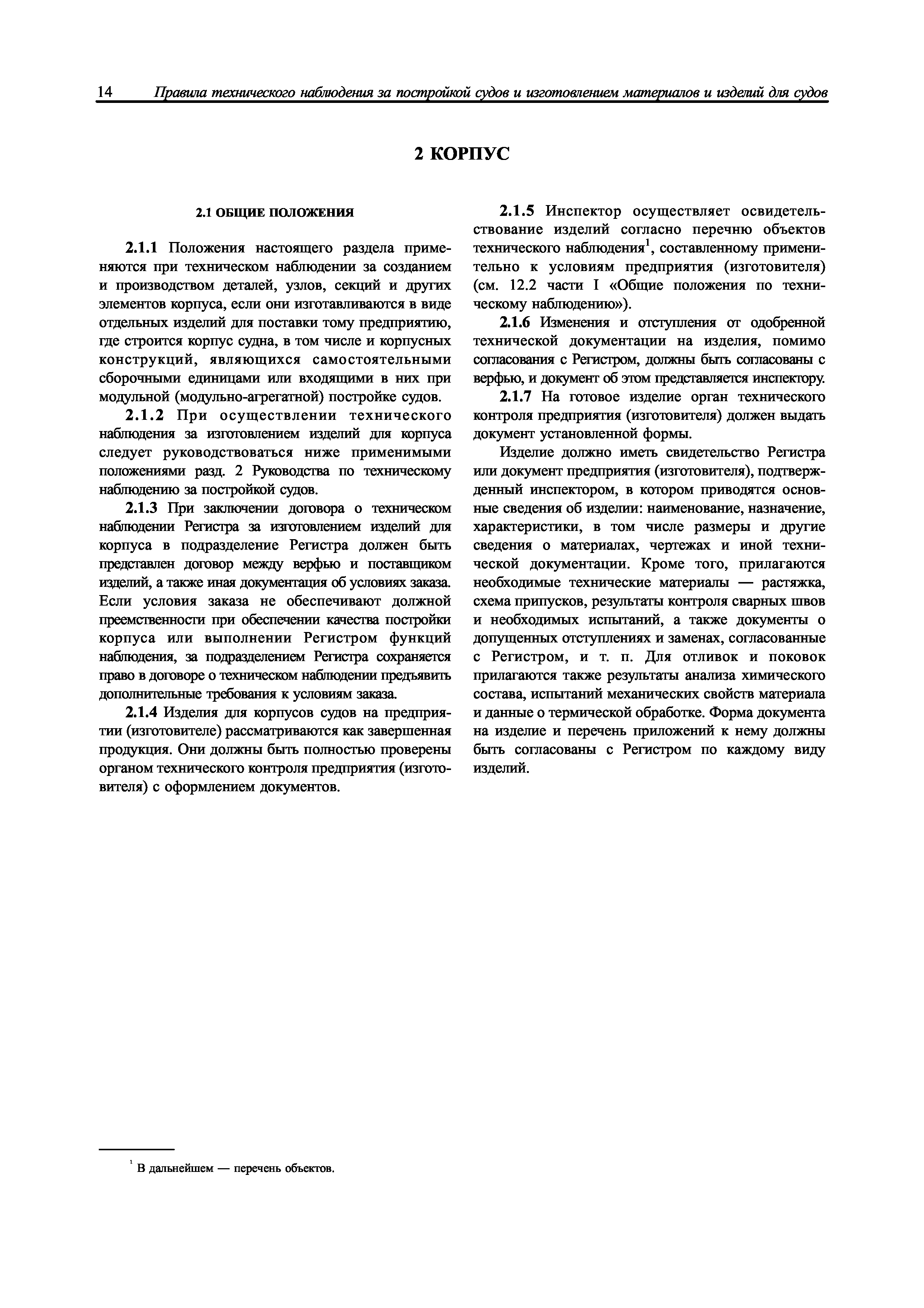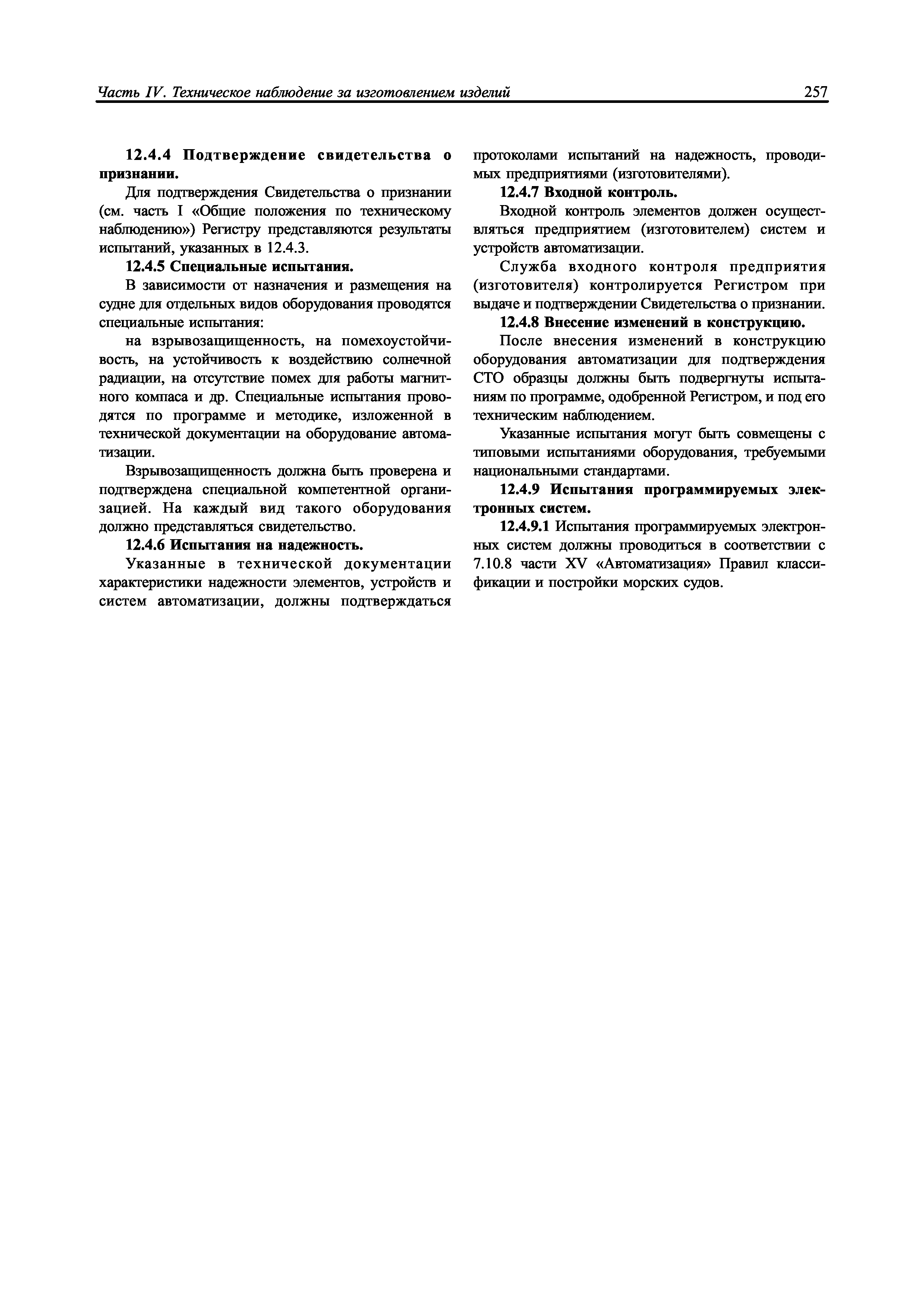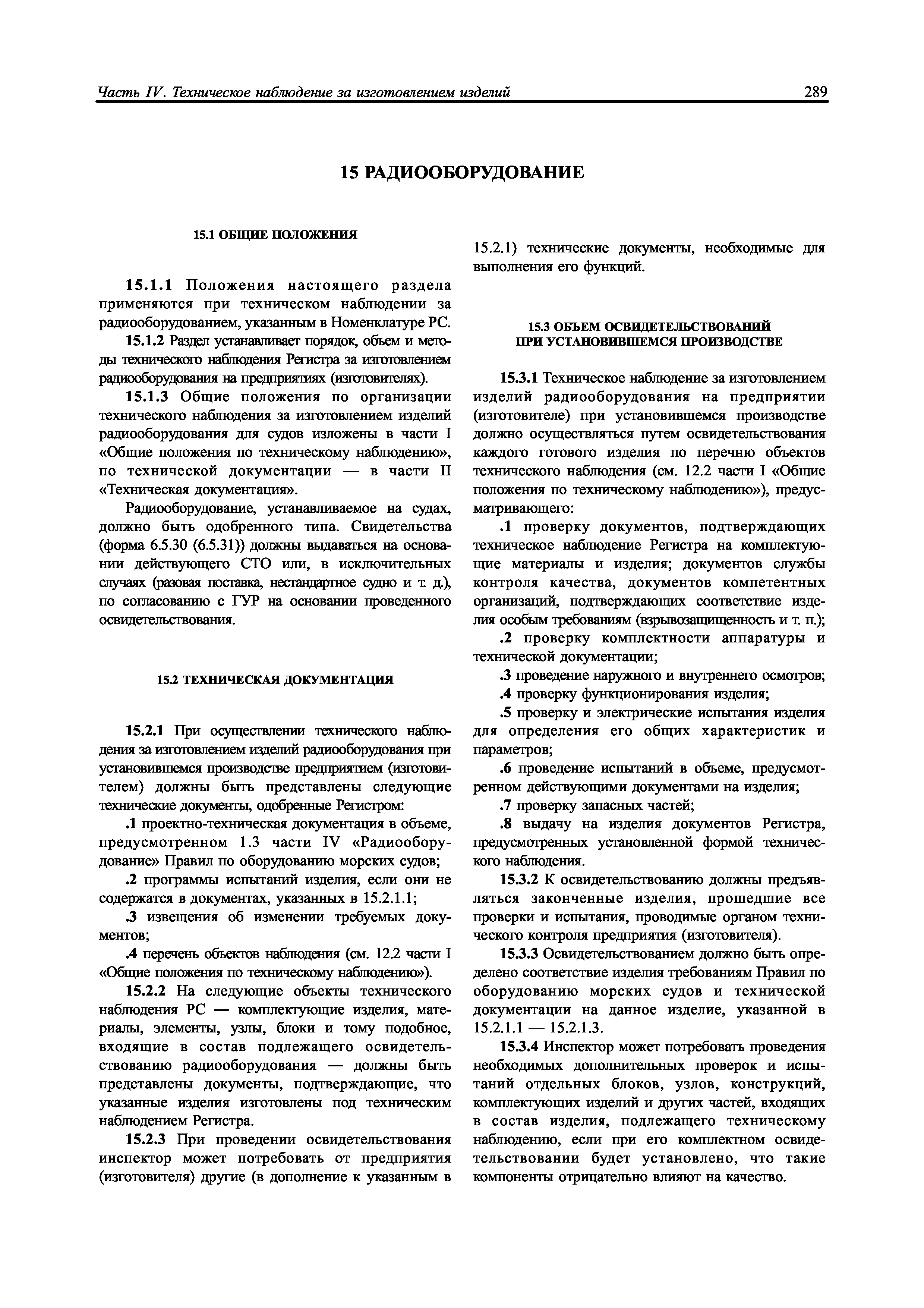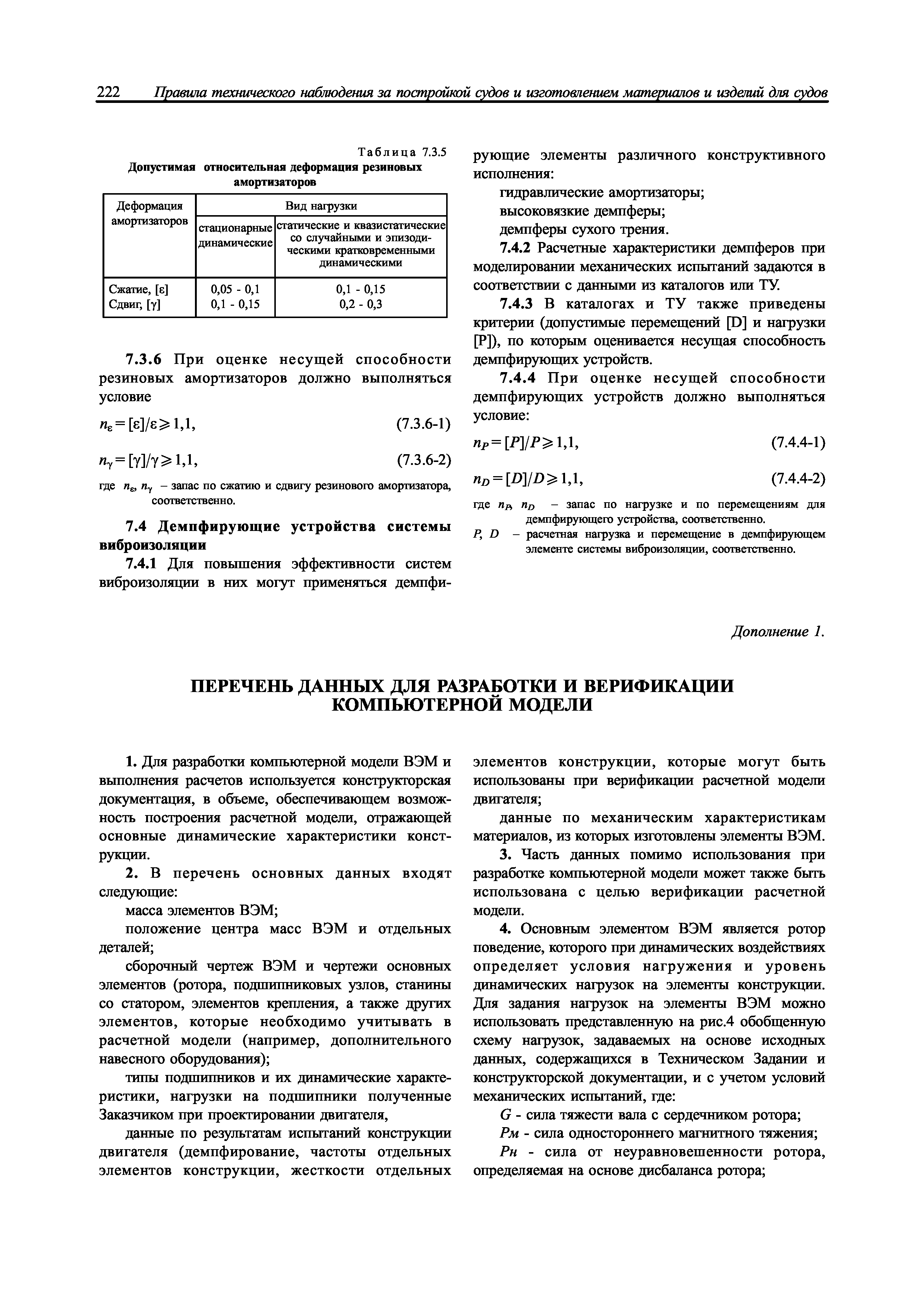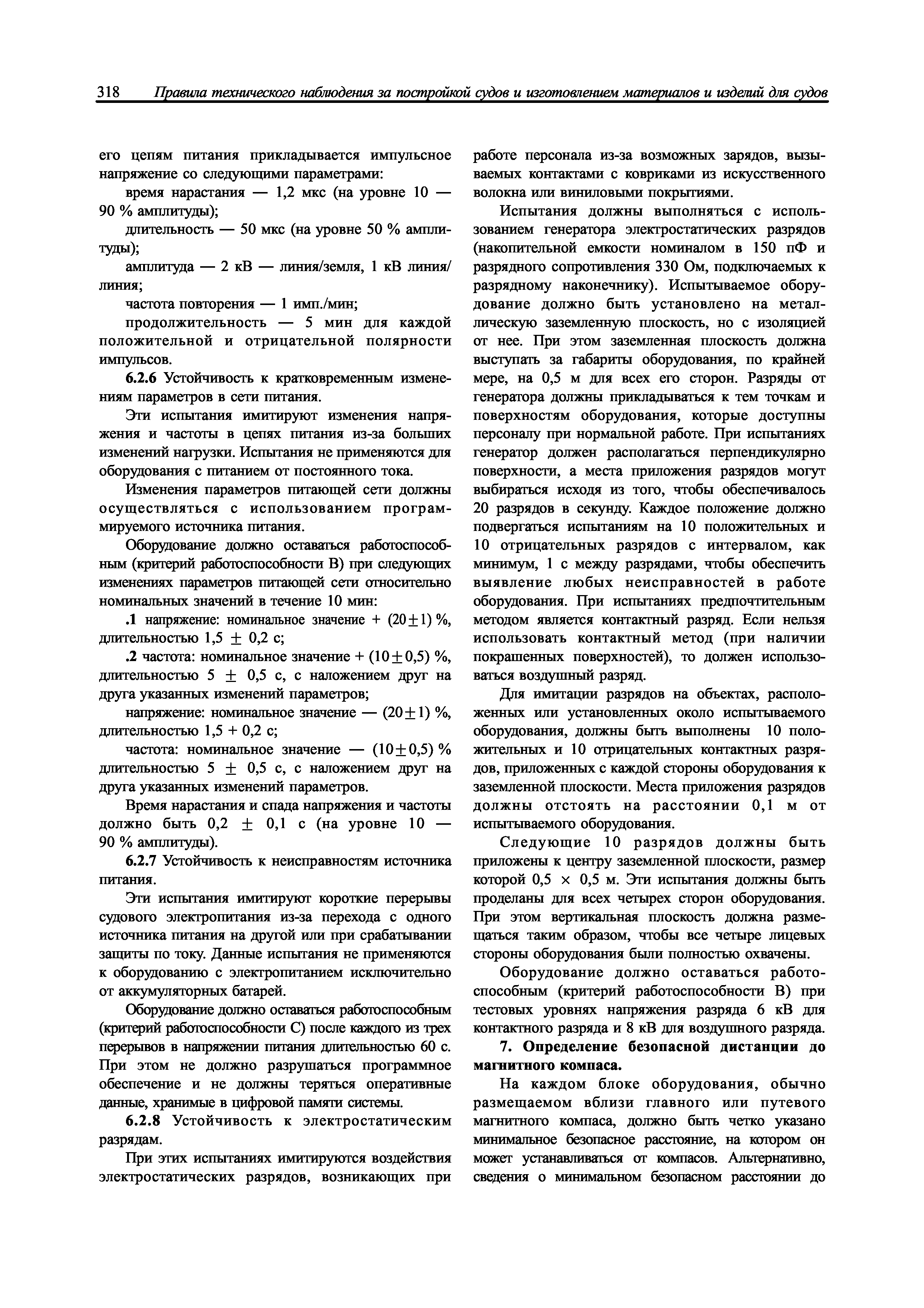 | Оглавление: | 1 Общие положения 1.1 Область распространения 1.2 Термины, определения, сокращения 1.3 Объем технического наблюдения 1.4 Техническая документация 1.5 Опытный образец изделия 1.6 Головной образец изделия 1.7 Серийные изделия установившегося производства 1.8 Эксплуатационные испытания изделий 2 Корпус 2.1 Общие положения 3 Устройства, оборудование и снабжение 3.1 Общие положения 3.2 Техническое наблюдение Регистра 3.3 Документация 3.4 Рулевые устройства 3.5 Якорные устройства 3.6 Швартовные устройства 3.7 Буксирные устройства 3.8 Сигнальные мачты 3.9 Устройства и закрытия отверстий в корпусе, надстройках и рубках 3.10 Устройство и оборудование помещений, различные устройства и оборудование, аварийное снабжение 3.11 Цепи без распорок, применяемые в судовых устройствах, кроме якорных 3.12 Стальные тросы 3.13 Растительные тросы и тросы из синтетического волокна (канаты) Приложение 1. Допустимые величины пороков на литых деталях якорей Приложение 2. Испытание якорей и их деталей бросанием Приложение 3. Испытание на растяжение пробной нагрузкой якорей и якорных скоб Приложение 4. Испытания буксирных гаков Приложение 5. Испытания головных образцов иллюминаторов, дверей надстройки и рубки, люков сходных, световых и вентиляционных Приложение 6. Испытания растительных тросов и тросов из синтетического волокна 4 Материалы, конструкции и изделия противопожарной защиты 4.1 Общие положения 4.2 Материалы, конструкции и изделия конструктивной противопожарной защиты 4.3 Изделия систем пожаротушения, противопожарного снабжения и огнетушащие вещества 5 Механизмы 5.1 Общие положения 5.2 Главные и вспомогательные двигатели внутреннего сгорания мощностью 55 кВт и более 5.3 Вспомогательные двигатели внутреннего сгорания мощностью менее 55 кВт 5.4 Главные паровые турбины и турбины электрогенераторов 5.5 Вспомогательные паровые турбины 5.6 Главные газотурбинные двигатели (ГТД) и газовые турбины (ГТ) для привода электрогенераторов 5.7 Передачи и разобщительные муфты главных и вспомогательных механизмов 5.8 Вспомогательные механизмы 5.9 Детали механизмов, перечисленных в таблице 5.8.1 5.10 Палубные механизмы 5.11 Телеграфы механические 5.12 Стендовые испытания 5.13 Документы Регистра 5.14 Документы Регистра для технического наблюдения за изготовлением и одобрения ДВС Приложение 1.Термины и определения (применительно к разд. 5 "Механизмы") (приведены в строгом соответствии с Приложением 1 "Глоссарий" УТ М44 (Rev.8 Mar 2015) МАКО) Приложение 2. Порядок представления и прохождения документации Приложение 3. Форма заявки на типовое одобрение ДВС и основные технические данные (в соответствии с приложением 3 к УТ МАКО М44, изм. 9) Приложение 4. Таблица соответствия документации и данных по ДВС лицензиара и лицензиата Приложение 5. Образец формы подтверждения лицензиаром изменений конструкции ДВС, выполненных лицензиатом Приложение 6. Типовые испытания ДВС Приложение 7. Стендовые испытания ДВС (заводские приемочные испытания) и испытания ДВС после установки на судне Приложение 8. Порядок освидетельствования и оформления документов на компоненты ДВС Приложение 9. Порядок освидетельствования, испытаний, одобрения турбонагнетателей и их компоновки с ДВС Приложение 10. Процедура типового испытания для предохранительных клапанов картеров Приложение 11. Процедура типовых испытаний приборов обнар