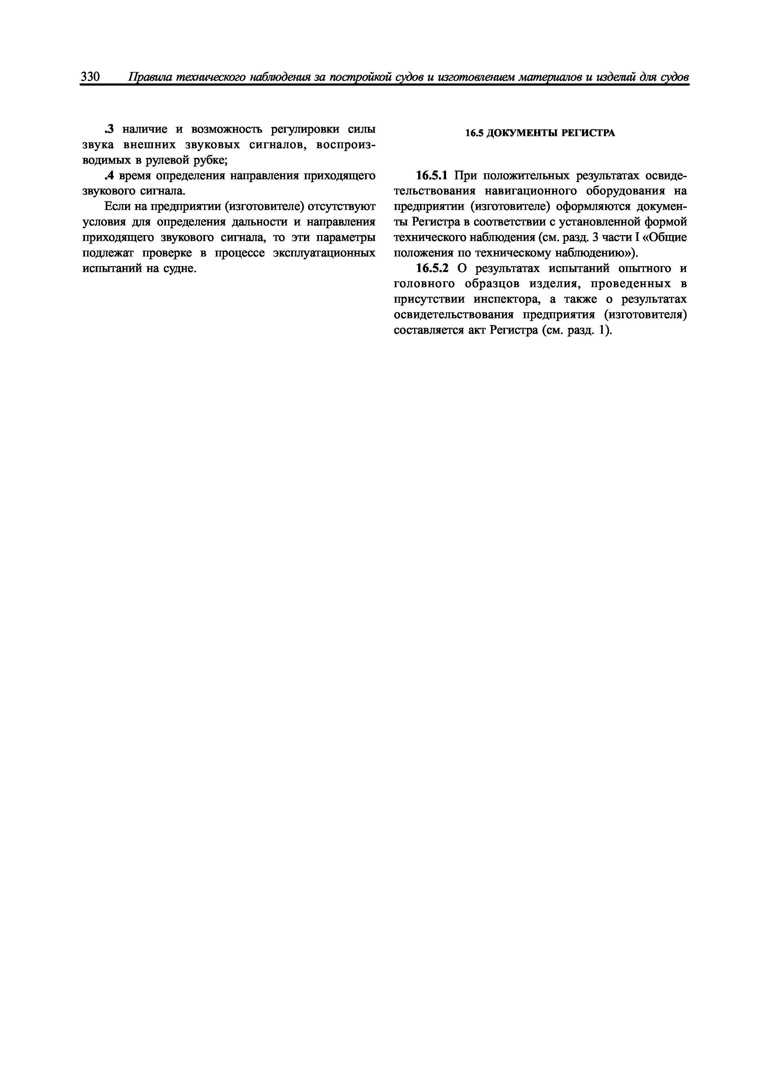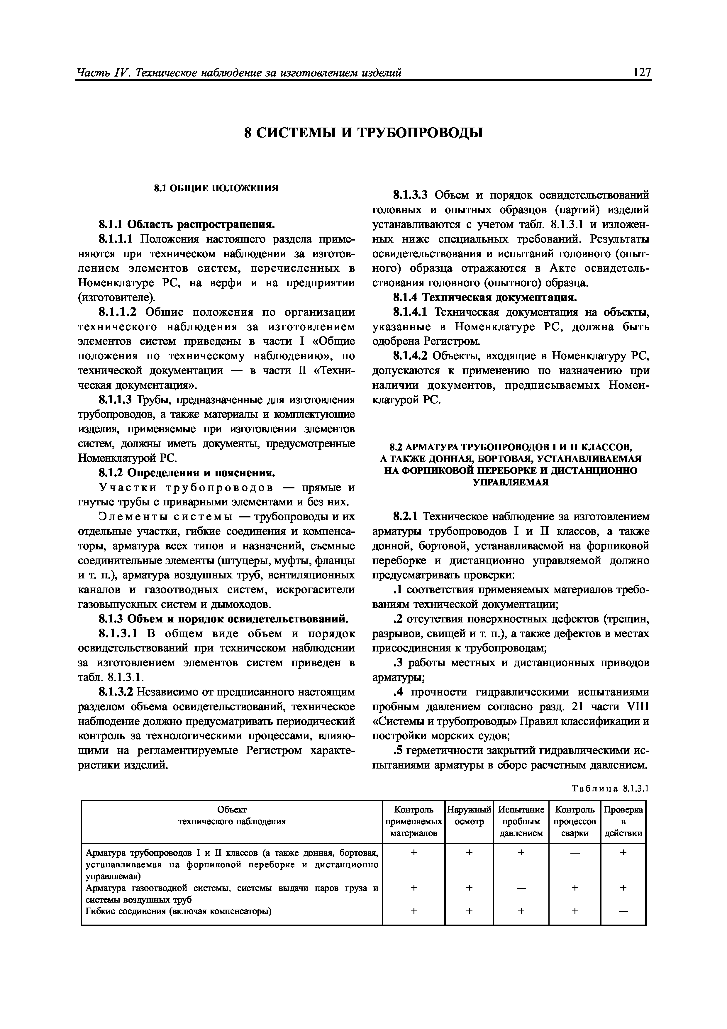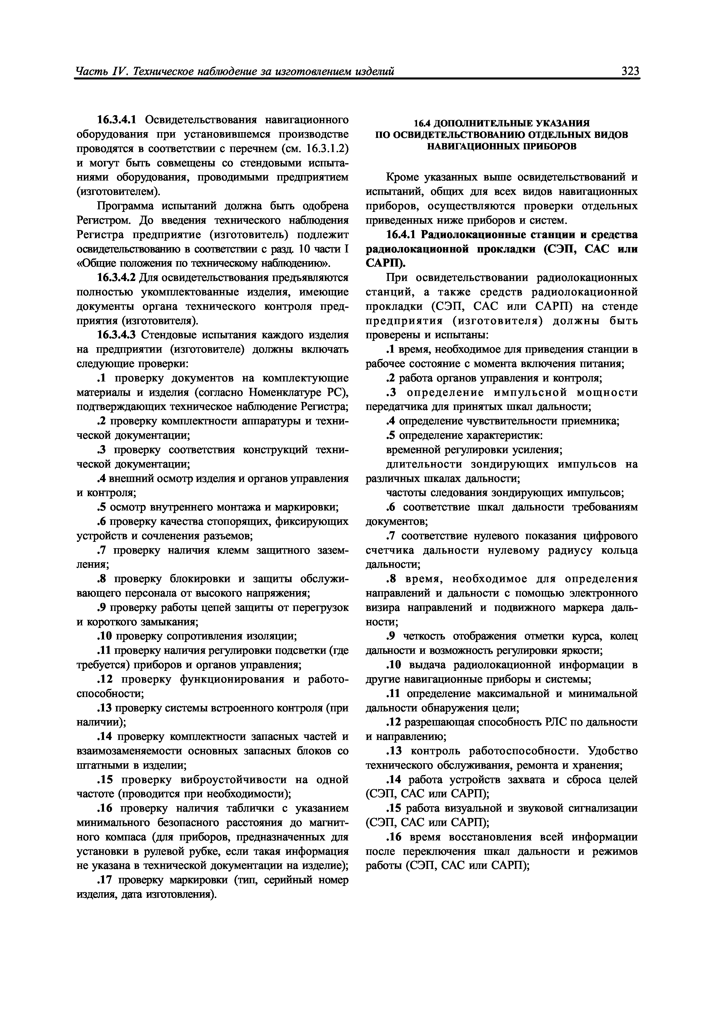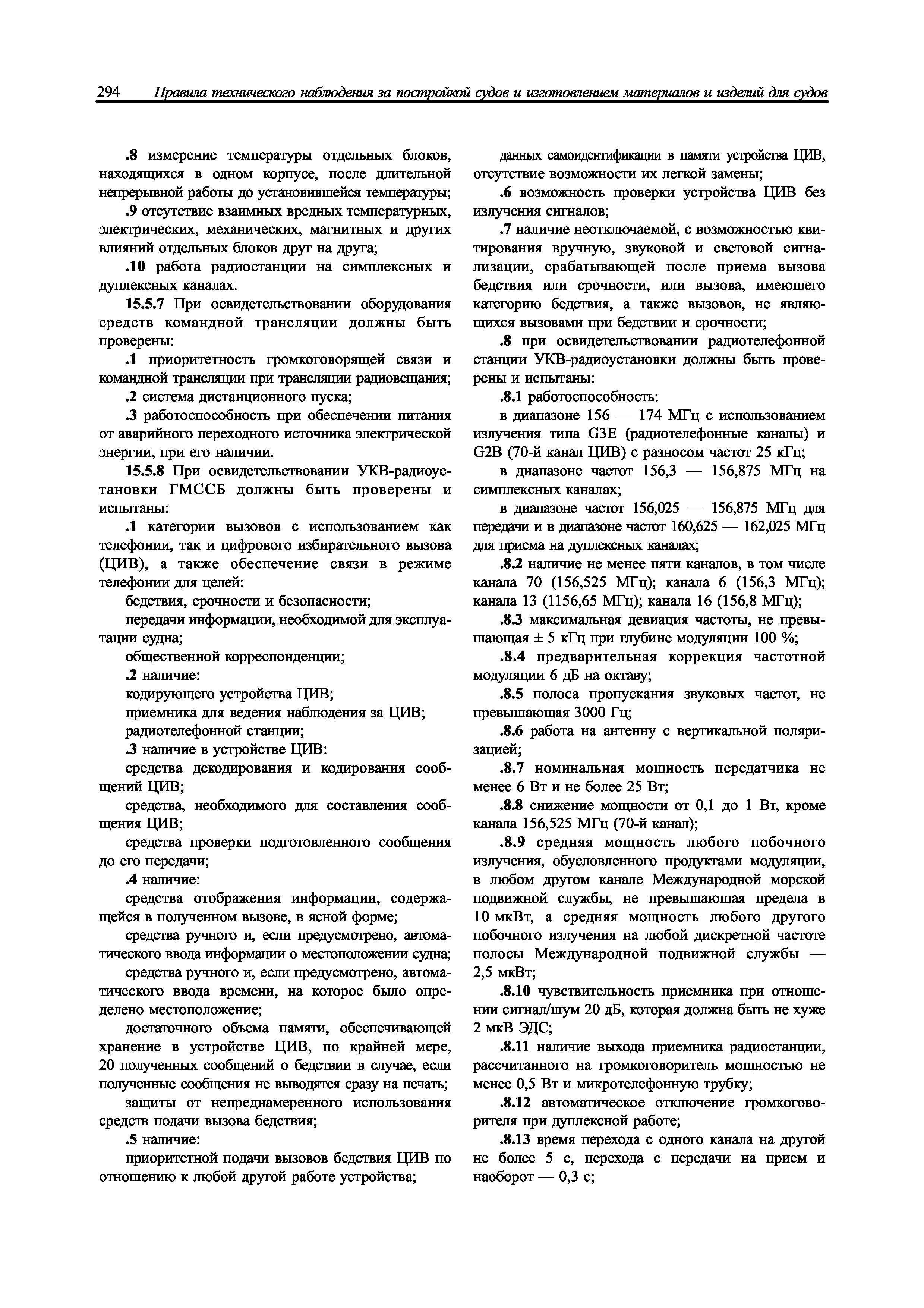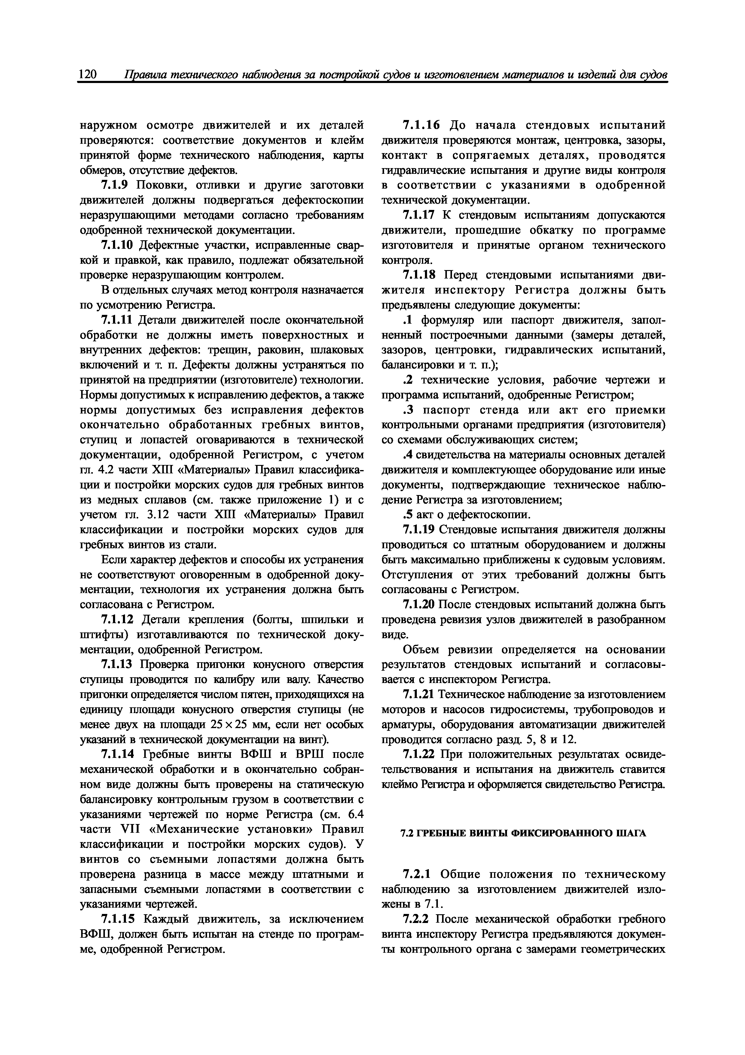 | Оглавление: | 1 Общие положения 1.1 Область распространения 1.2 Термины, определения, сокращения 1.3 Объем технического наблюдения 1.4 Техническая документация 1.5 Опытный образец изделия 1.6 Головной образец изделия 1.7 Серийные изделия установившегося производства 1.8 Эксплуатационные испытания изделий 2 Корпус 2.1 Общие положения 3 Устройства, оборудование и снабжение 3.1 Общие положения 3.2 Техническое наблюдение Регистра 3.3 Документация 3.4 Рулевые устройства 3.5 Якорные устройства 3.6 Швартовные устройства 3.7 Буксирные устройства 3.8 Сигнальные мачты 3.9 Устройства и закрытия отверстий в корпусе, надстройках и рубках 3.10 Устройство и оборудование помещений, различные устройства и оборудование, аварийное снабжение 3.11 Цепи без распорок, применяемые в судовых устройствах, кроме якорных 3.12 Стальные тросы 3.13 Растительные тросы и тросы из синтетического волокна (канаты) Приложение 1. Допустимые величины пороков на литых деталях якорей Приложение 2. Испытание якорей и их деталей бросанием Приложение 3. Испытание на растяжение пробной нагрузкой якорей и якорных скоб Приложение 4. Испытания буксирных гаков Приложение 5. Испытания головных образцов иллюминаторов, дверей надстройки и рубки, люков сходных, световых и вентиляционных Приложение 6. Испытания растительных тросов и тросов из синтетического волокна 4 Материалы, конструкции и изделия противопожарной защиты 4.1 Общие положения 4.2 Материалы, конструкции и изделия конструктивной противопожарной защиты 4.3 Изделия систем пожаротушения, противопожарного снабжения и огнетушащие вещества 5 Механизмы 5.1 Общие положения 5.2 Главные и вспомогательные двигатели внутреннего сгорания мощностью 55 кВт и более 5.3 Вспомогательные двигатели внутреннего сгорания мощностью менее 55 кВт 5.4 Главные паровые турбины и турбины электрогенераторов 5.5 Вспомогательные паровые турбины 5.6 Главные газотурбинные двигатели (ГТД) и газовые турбины (ГТ) для привода электрогенераторов 5.7 Передачи и разобщительные муфты главных и вспомогательных механизмов 5.8 Вспомогательные механизмы 5.9 Детали механизмов, перечисленных в таблице 5.8.1 5.10 Палубные механизмы 5.11 Телеграфы механические 5.12 Стендовые испытания 5.13 Документы Регистра 5.14 Документы Регистра для технического наблюдения за изготовлением и одобрения ДВС Приложение 1.Термины и определения (применительно к разд. 5 "Механизмы") (приведены в строгом соответствии с Приложением 1 "Глоссарий" УТ М44 (Rev.8 Mar 2015) МАКО) Приложение 2. Порядок представления и прохождения документации Приложение 3. Форма заявки на типовое одобрение ДВС и основные технические данные (в соответствии с приложением 3 к УТ МАКО М44, изм. 9) Приложение 4. Таблица соответствия документации и данных по ДВС лицензиара и лицензиата Приложение 5. Образец формы подтверждения лицензиаром изменений конструкции ДВС, выполненных лицензиатом Приложение 6. Типовые испытания ДВС Приложение 7. Стендовые испытания ДВС (заводские приемочные испытания) и испытания ДВС после установки на судне Приложение 8. Порядок освидетельствования и оформления документов на компоненты ДВС Приложение 9. Порядок освидетельствования, испытаний, одобрения турбонагнетателей и их компоновки с ДВС Приложение 10. Процедура типового испытания для предохранительных клапанов картеров Приложение 11. Процедура типовых испытаний приборов обнар