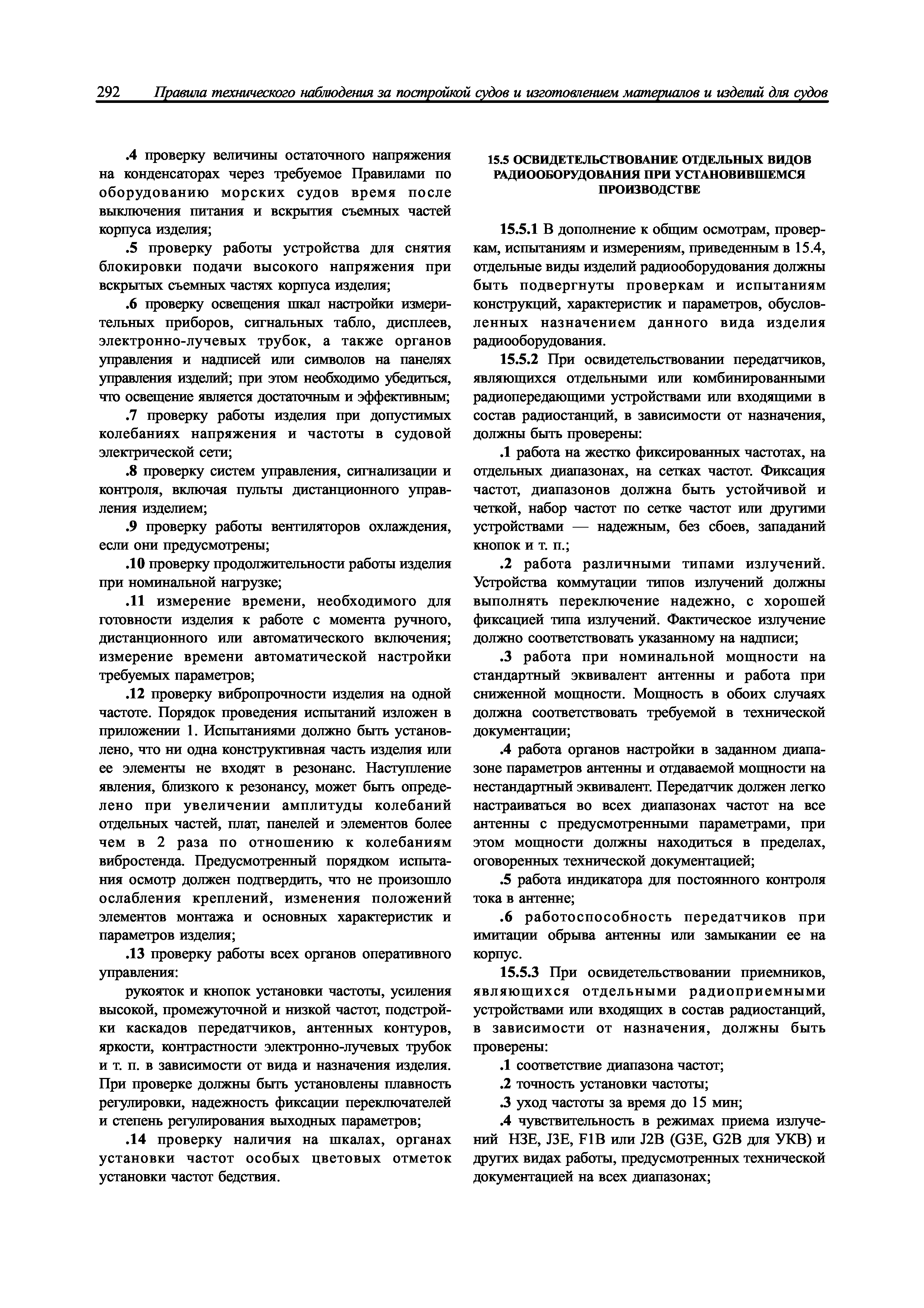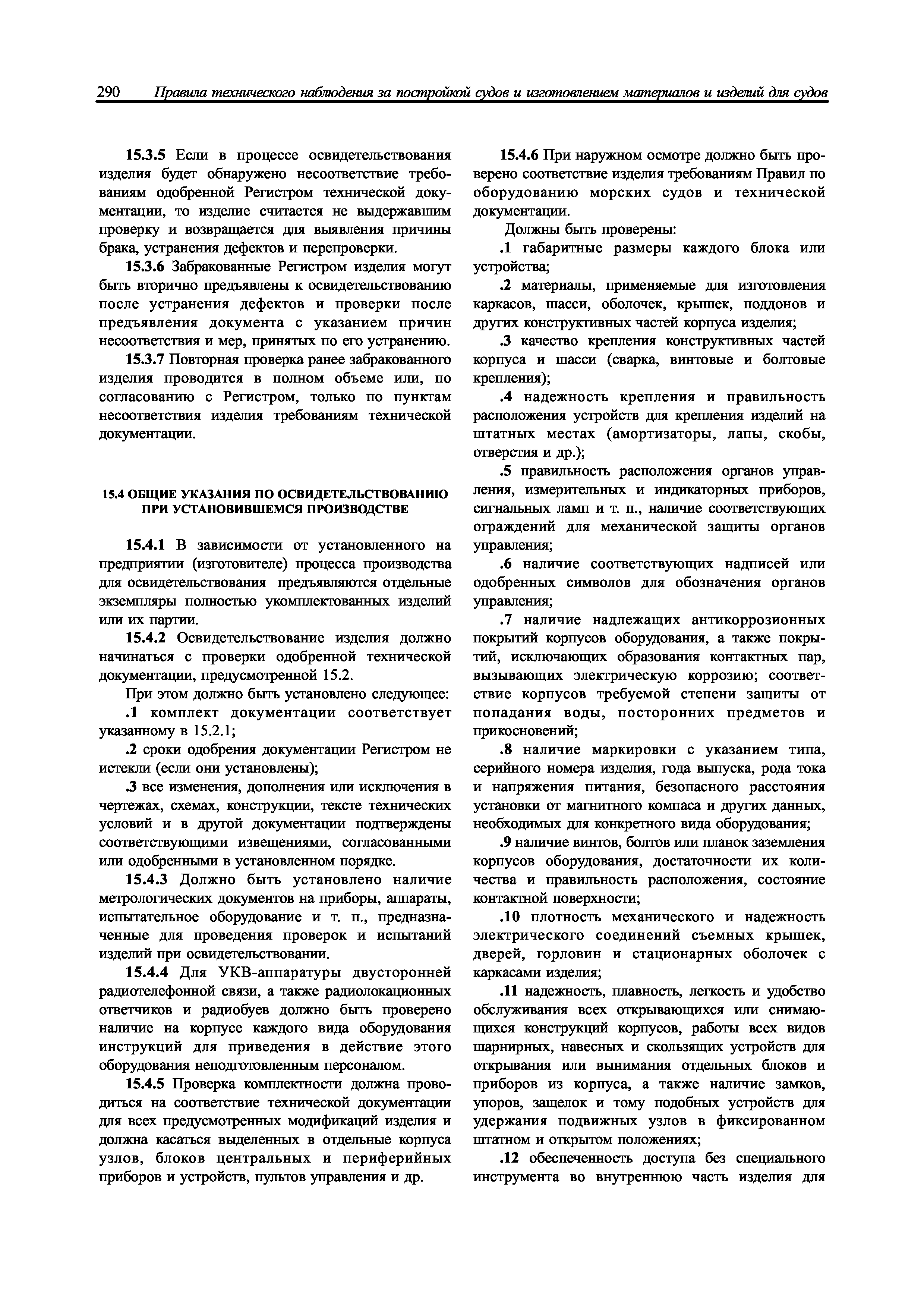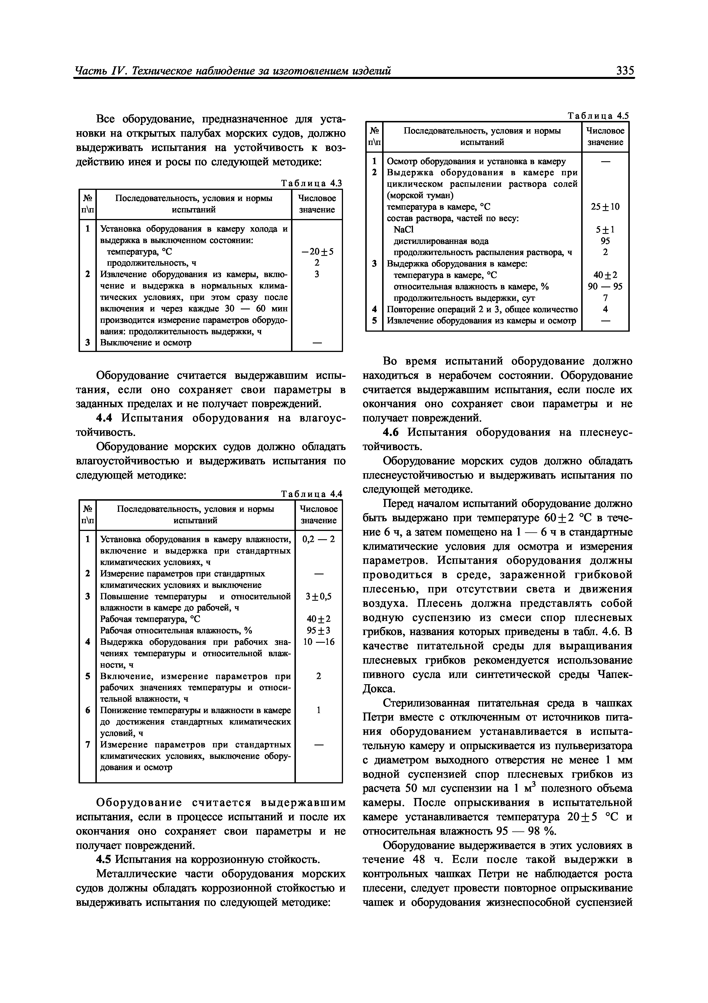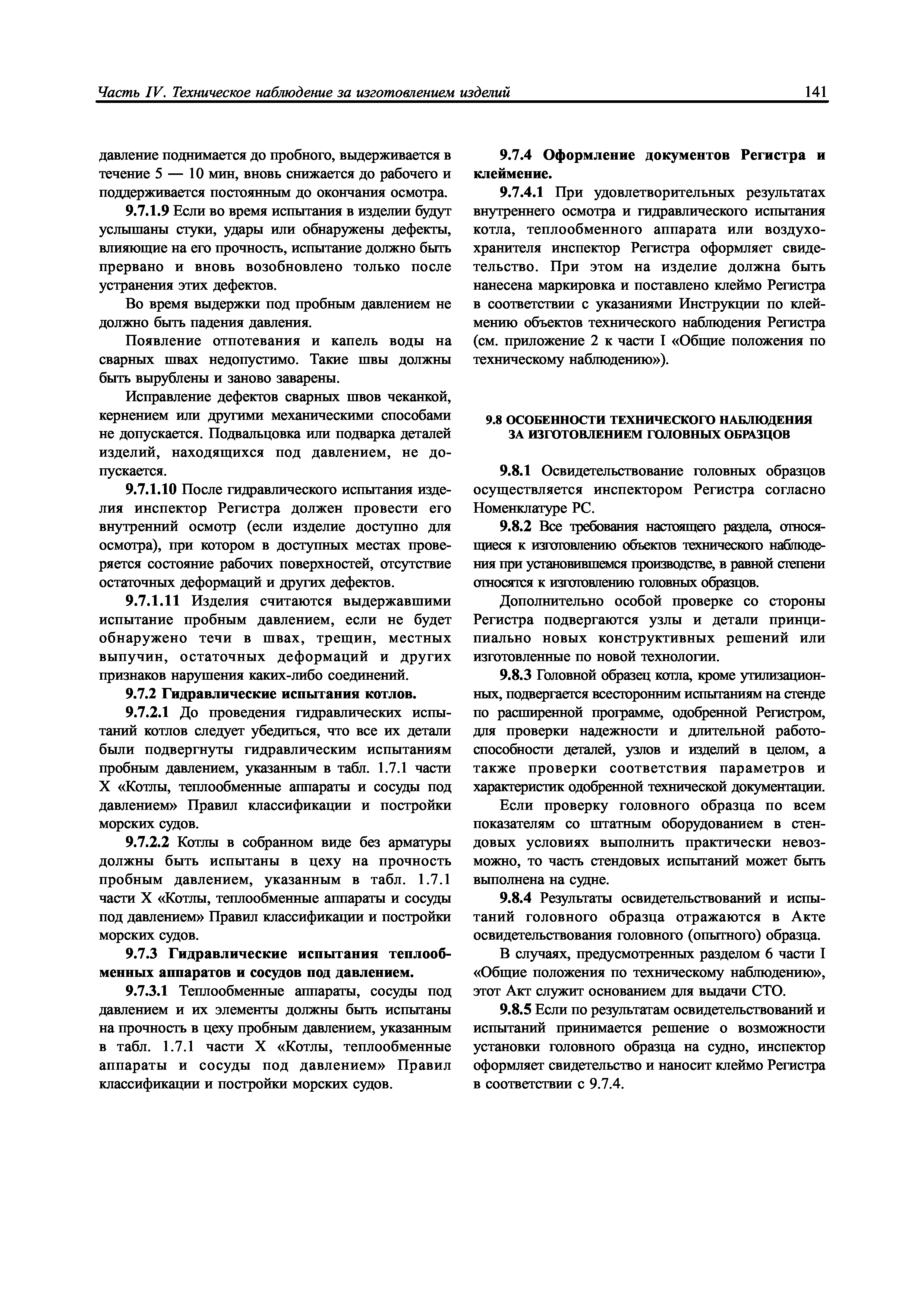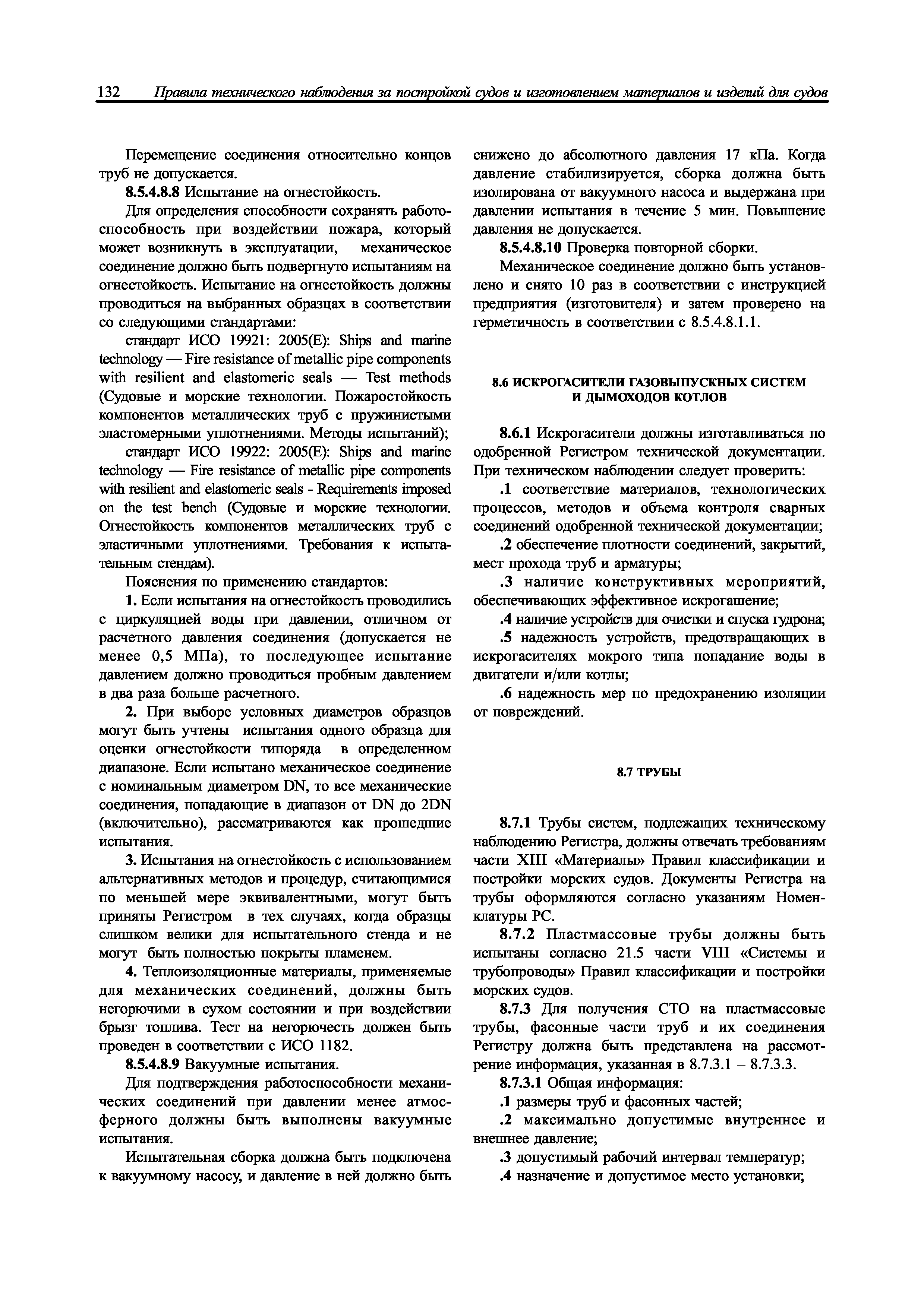 | Оглавление: | 1 Общие положения 1.1 Область распространения 1.2 Термины, определения, сокращения 1.3 Объем технического наблюдения 1.4 Техническая документация 1.5 Опытный образец изделия 1.6 Головной образец изделия 1.7 Серийные изделия установившегося производства 1.8 Эксплуатационные испытания изделий 2 Корпус 2.1 Общие положения 3 Устройства, оборудование и снабжение 3.1 Общие положения 3.2 Техническое наблюдение Регистра 3.3 Документация 3.4 Рулевые устройства 3.5 Якорные устройства 3.6 Швартовные устройства 3.7 Буксирные устройства 3.8 Сигнальные мачты 3.9 Устройства и закрытия отверстий в корпусе, надстройках и рубках 3.10 Устройство и оборудование помещений, различные устройства и оборудование, аварийное снабжение 3.11 Цепи без распорок, применяемые в судовых устройствах, кроме якорных 3.12 Стальные тросы 3.13 Растительные тросы и тросы из синтетического волокна (канаты) Приложение 1. Допустимые величины пороков на литых деталях якорей Приложение 2. Испытание якорей и их деталей бросанием Приложение 3. Испытание на растяжение пробной нагрузкой якорей и якорных скоб Приложение 4. Испытания буксирных гаков Приложение 5. Испытания головных образцов иллюминаторов, дверей надстройки и рубки, люков сходных, световых и вентиляционных Приложение 6. Испытания растительных тросов и тросов из синтетического волокна 4 Материалы, конструкции и изделия противопожарной защиты 4.1 Общие положения 4.2 Материалы, конструкции и изделия конструктивной противопожарной защиты 4.3 Изделия систем пожаротушения, противопожарного снабжения и огнетушащие вещества 5 Механизмы 5.1 Общие положения 5.2 Главные и вспомогательные двигатели внутреннего сгорания мощностью 55 кВт и более 5.3 Вспомогательные двигатели внутреннего сгорания мощностью менее 55 кВт 5.4 Главные паровые турбины и турбины электрогенераторов 5.5 Вспомогательные паровые турбины 5.6 Главные газотурбинные двигатели (ГТД) и газовые турбины (ГТ) для привода электрогенераторов 5.7 Передачи и разобщительные муфты главных и вспомогательных механизмов 5.8 Вспомогательные механизмы 5.9 Детали механизмов, перечисленных в таблице 5.8.1 5.10 Палубные механизмы 5.11 Телеграфы механические 5.12 Стендовые испытания 5.13 Документы Регистра 5.14 Документы Регистра для технического наблюдения за изготовлением и одобрения ДВС Приложение 1.Термины и определения (применительно к разд. 5 "Механизмы") (приведены в строгом соответствии с Приложением 1 "Глоссарий" УТ М44 (Rev.8 Mar 2015) МАКО) Приложение 2. Порядок представления и прохождения документации Приложение 3. Форма заявки на типовое одобрение ДВС и основные технические данные (в соответствии с приложением 3 к УТ МАКО М44, изм. 9) Приложение 4. Таблица соответствия документации и данных по ДВС лицензиара и лицензиата Приложение 5. Образец формы подтверждения лицензиаром изменений конструкции ДВС, выполненных лицензиатом Приложение 6. Типовые испытания ДВС Приложение 7. Стендовые испытания ДВС (заводские приемочные испытания) и испытания ДВС после установки на судне Приложение 8. Порядок освидетельствования и оформления документов на компоненты ДВС Приложение 9. Порядок освидетельствования, испытаний, одобрения турбонагнетателей и их компоновки с ДВС Приложение 10. Процедура типового испытания для предохранительных клапанов картеров Приложение 11. Процедура типовых испытаний приборов обнар