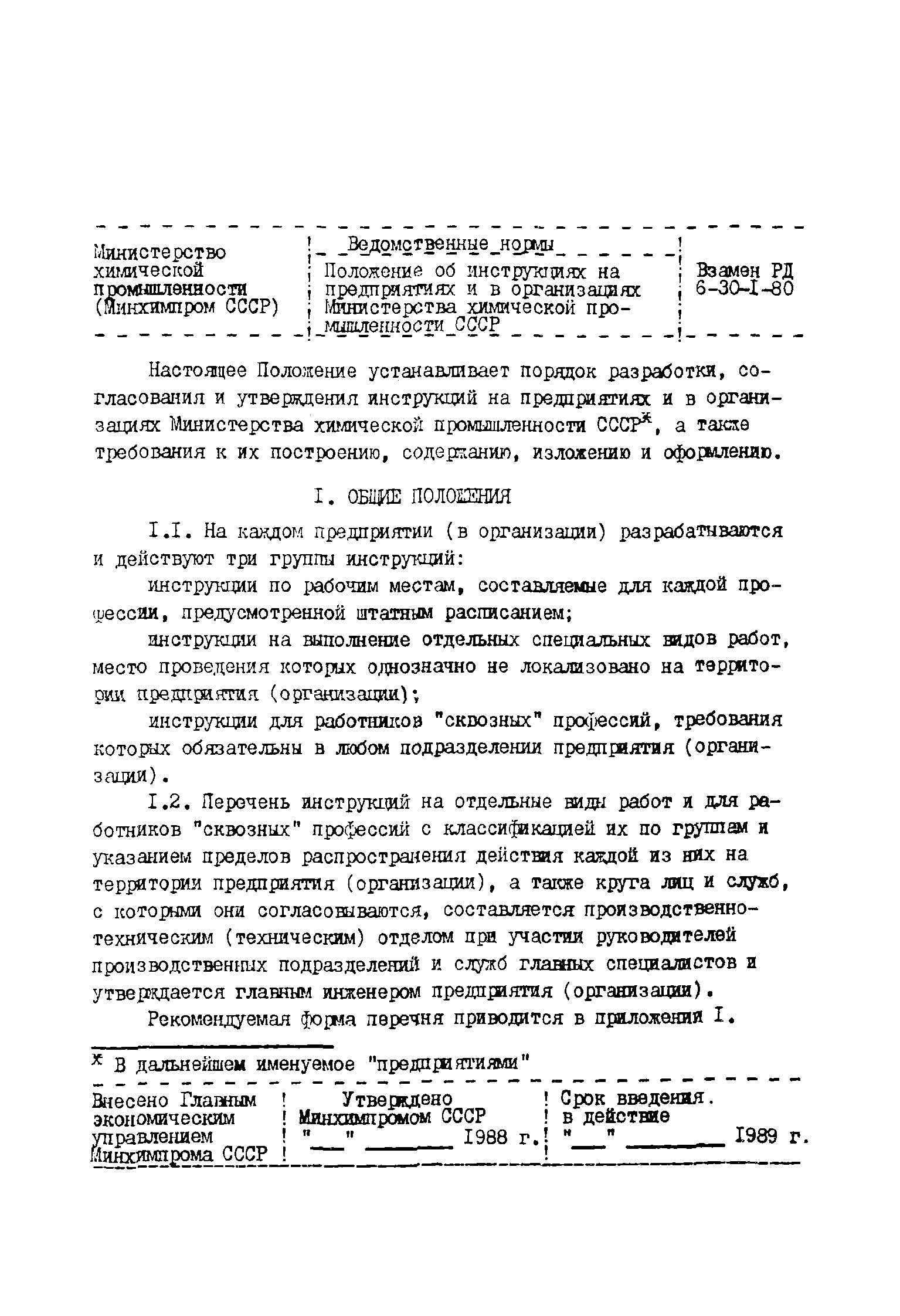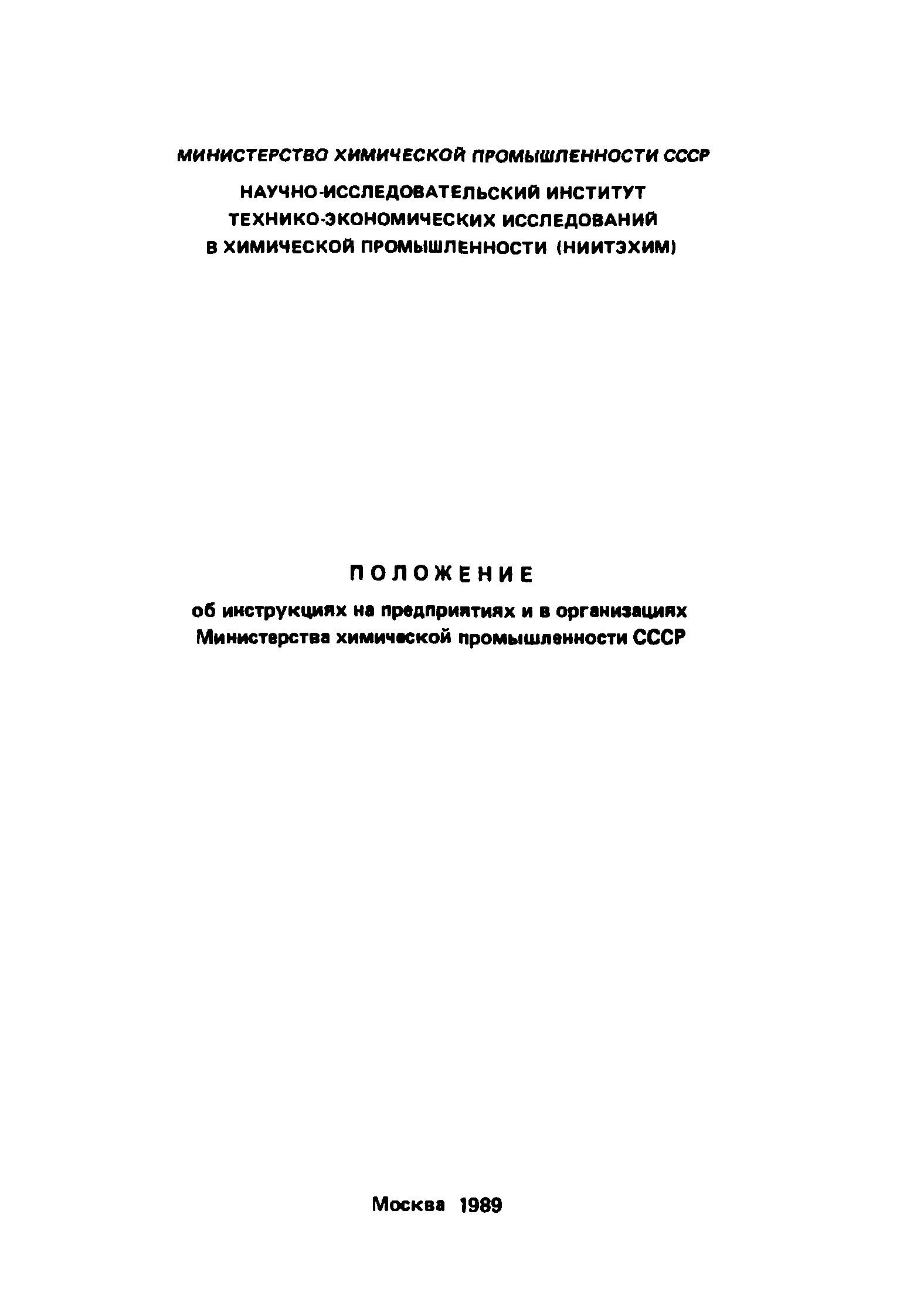 | Название рус.: | Положение об инструкциях на предприятиях и в организациях Министерства химической промышленности СССР |