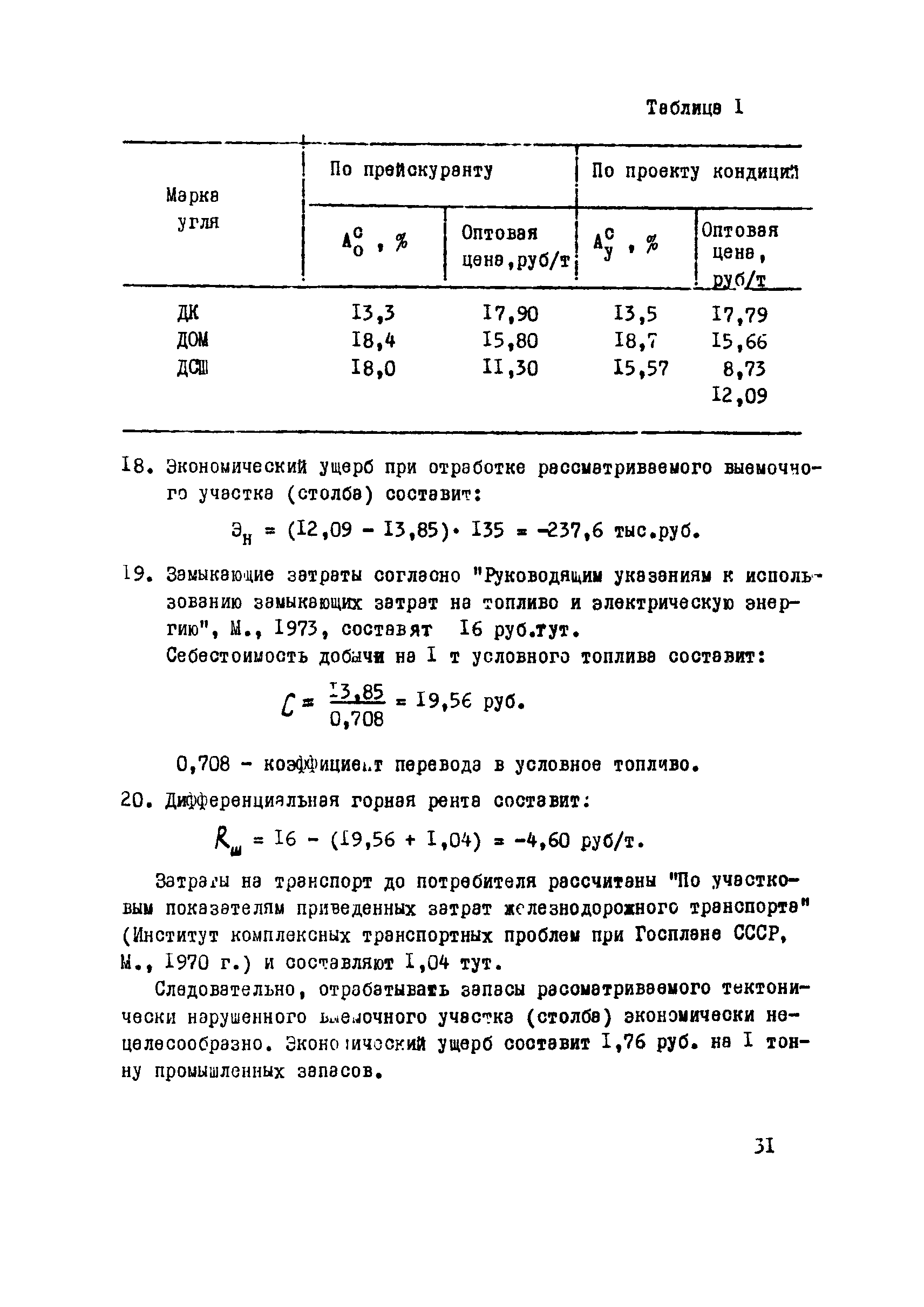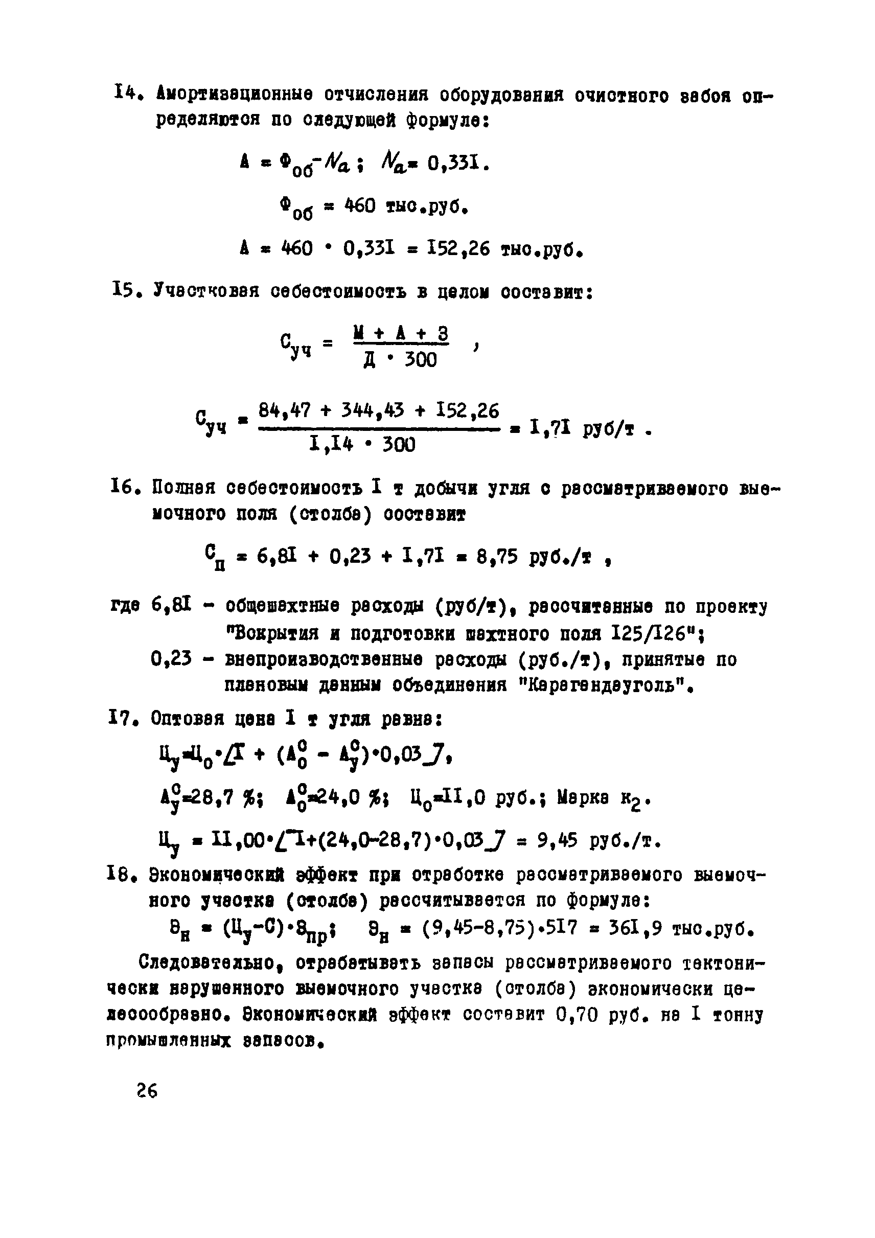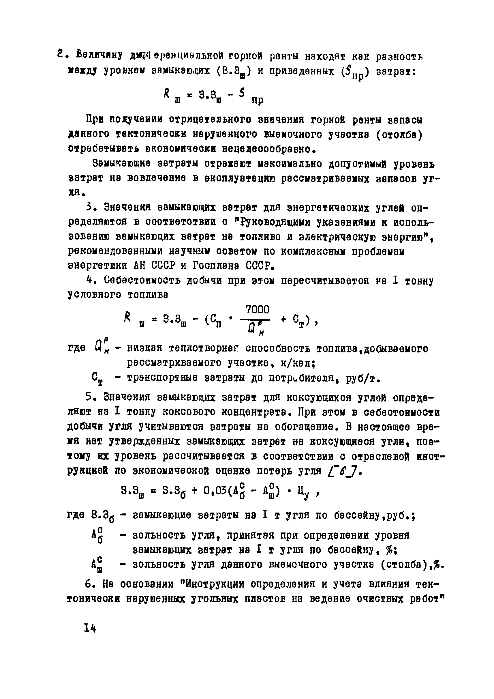 | Область применения: | В работе рассмотрено как отдельное, так и совместное влияние параметров нарушения - амплитуды, угла и протяженности на показатели очистного забоя ( нагрузки и себестоимости добычи угля), при различных значениях длины лавы и вынимаемой мощности пласта. Рассмотрена целесообразность разработки нарушенных угольных пластов с использованием экономических критериев - оптовой цены, прибыли и замыкающих затрат. Документ предназначен для использования в проектных институтах Минуглепрома СССР |