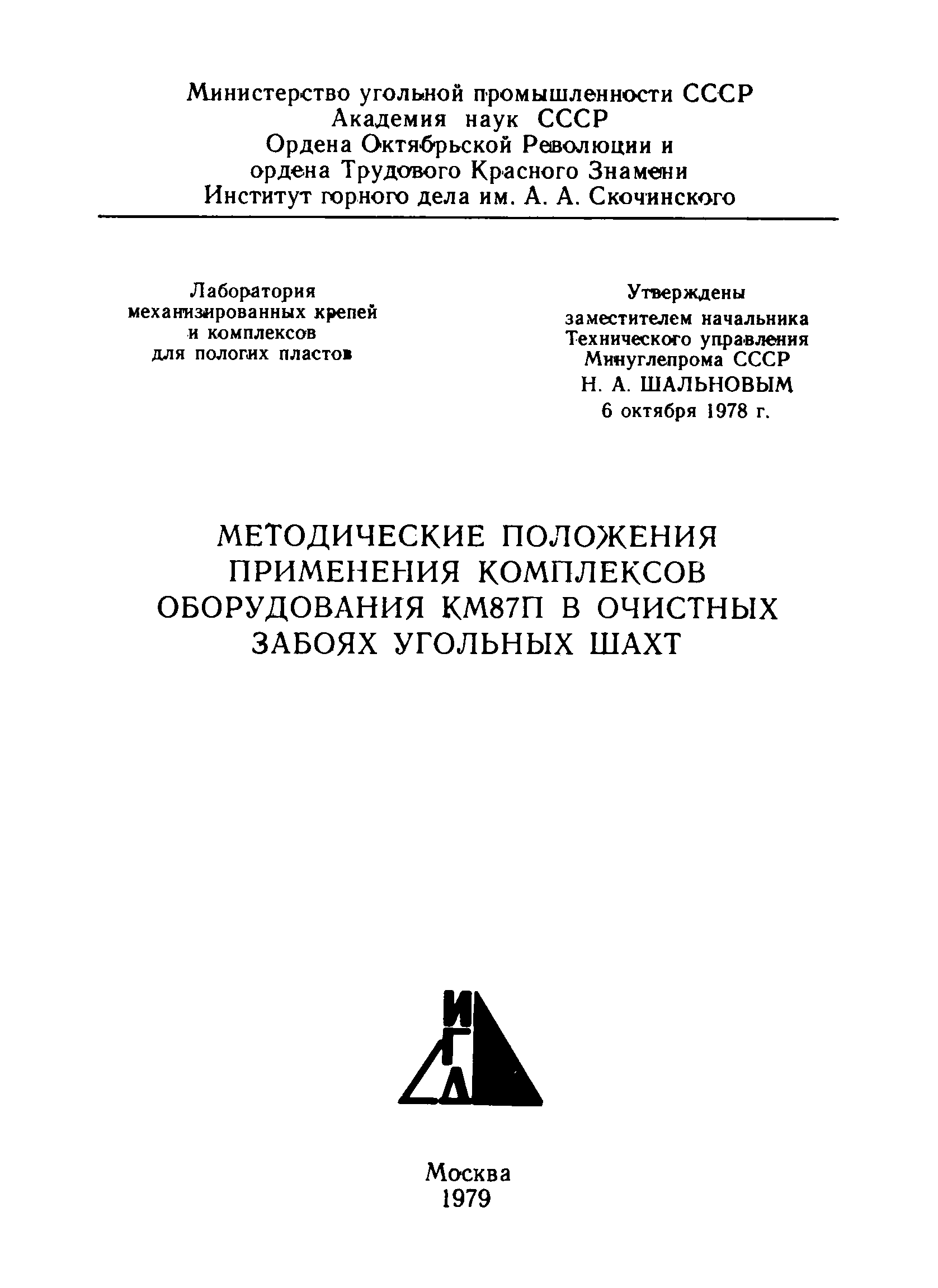 | | Утверждён: | 06.10.1978 Министерство угольной промышленности СССР (USSR Ministry of the Coal Industry )