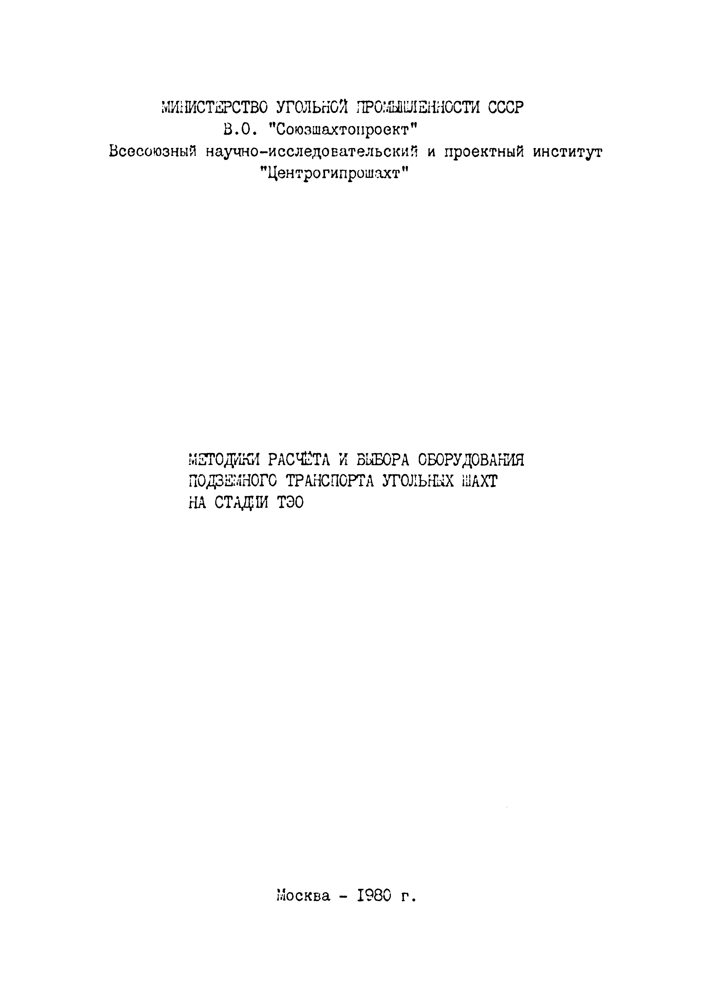 | Название рус.: | Методики расчета и выбора оборудования подземного транспорта угольных шахт на стадии ТЭО |
