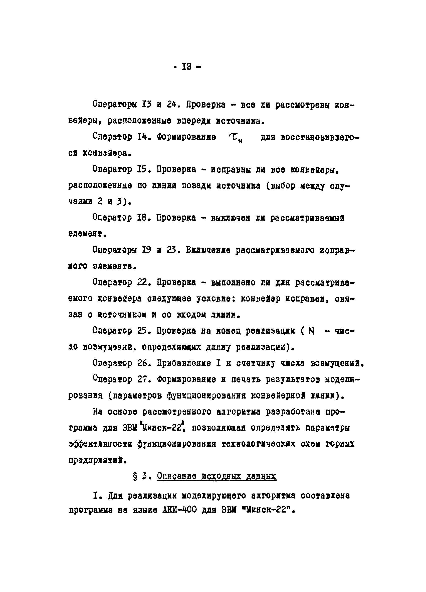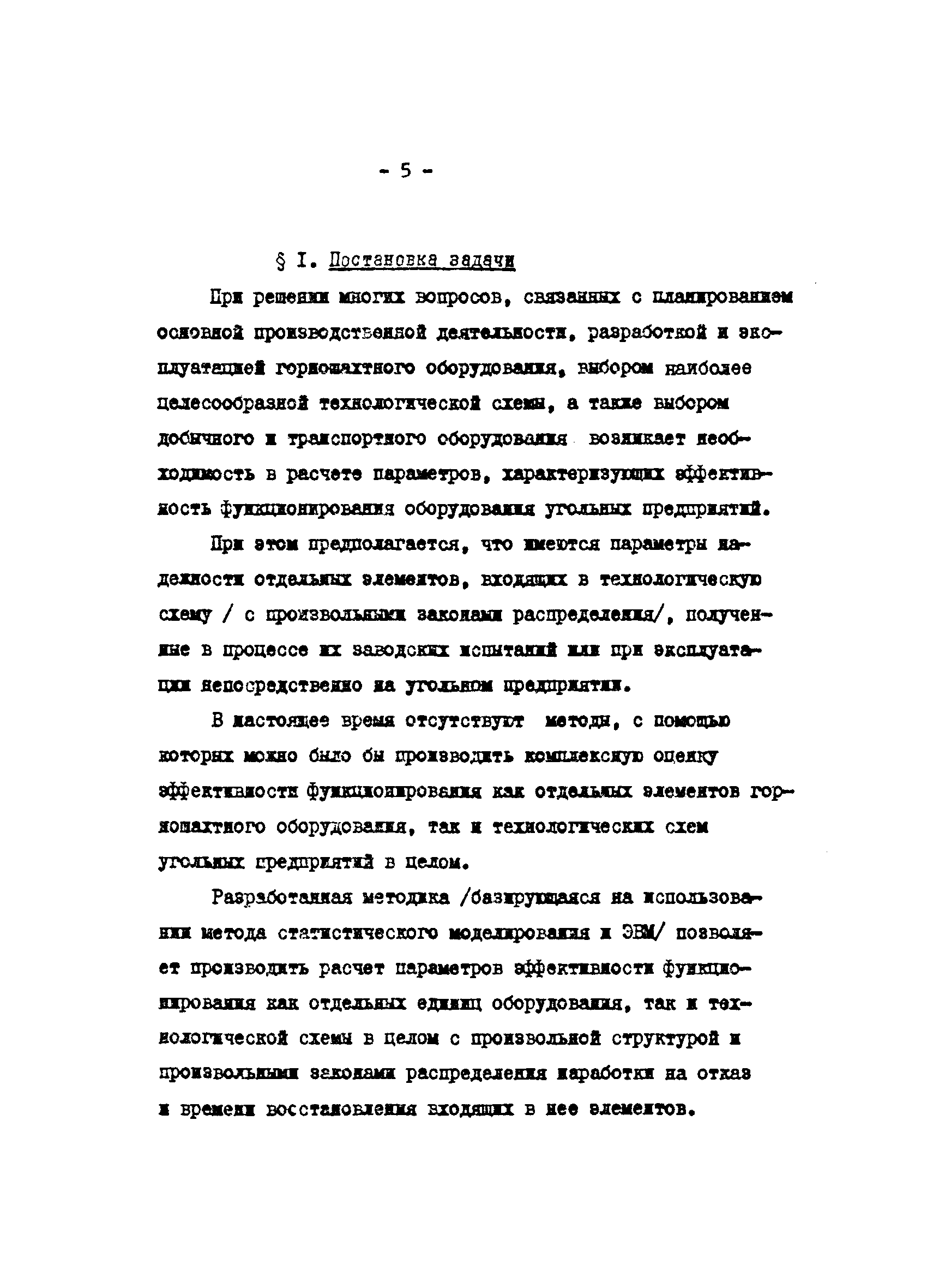 | Область применения: | В работе приведена методика, которая позволяет производить расчет (с применением ЭВМ Минск-22 и Минск-32) параметров эффективности функционирования оборудования технологических схем угольных предприятий с произвольной структурой и различными законами распределения наработки на отказ и времени восстановления входящих в них элементов. Методика предназначена для использования информационно-вычислительными центрами угольных комбинатов при расчете параметров эффективности функционирования оборудования технологических схем, выборе наиболее целесообразного оборудования, расчете пропускных способностей транспортных систем, планирования добычи угля |