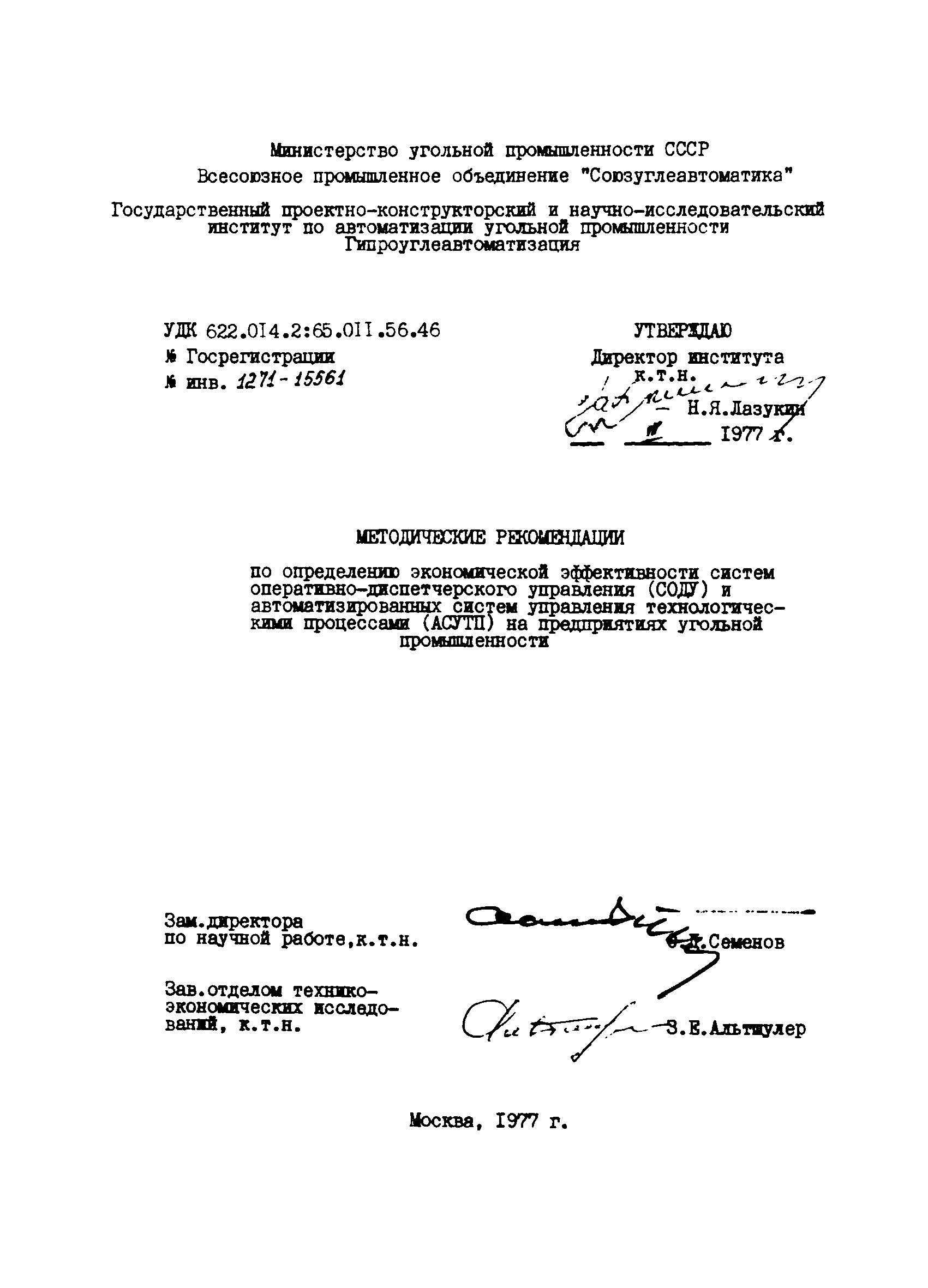 | | Утверждён: | 14.09.1977 Гипроуглеавтоматизация