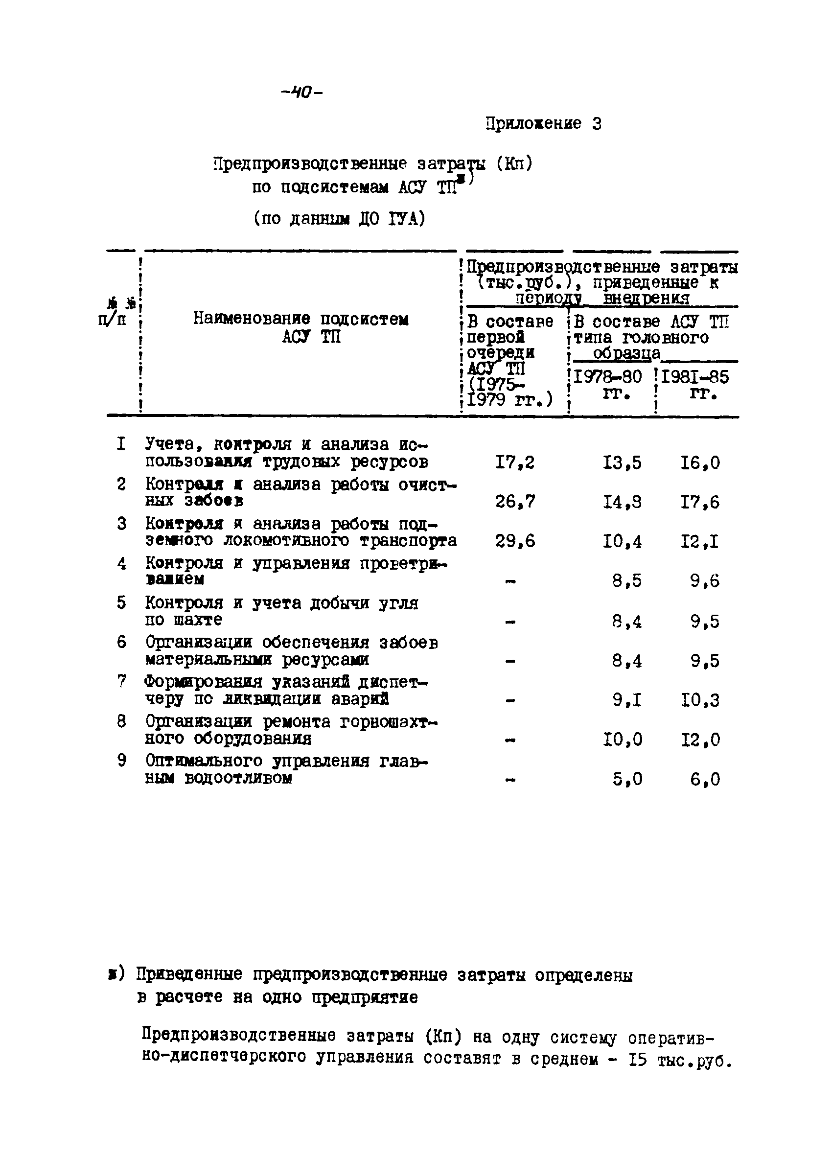Методические рекомендации по определению экономической эффективности систем оперативно-диспетчерского управления (СОДУ) и автоматизированных систем управления технологическими процессами (АСУТП) на предприятиях угольной промышленности| Статус: | информационный документ | | Название рус.: | Методические рекомендации по определению экономической эффективности систем оперативно-диспетчерского управления (СОДУ) и автоматизированных систем управления технологическими процессами (АСУТП) на предприятиях угольной промышленности | | Дата добавления в базу: | 01.01.2019 | | Дата актуализации: | 01.01.2021 | | Область применения: | Основные положения рекомендаций могут быть использованы для определения экономической эффективности СОДУ и АСУТП при формировании планов, на стадиях проектирования и внедрения. Рекомендации предназначены для определения экономической эффективности при перспективном планировании, проектировании, внедрении и эксплуатации СОДУ и АСУТП | | Оглавление: | Введение 1. Основные положения 2. Порядок проведения и основные положения расчетов экономической эффективности СОДУ и АСУТП 3. Источники экономической эффективности СОДУ и АСУТП 4. Расчет единовременных затрат на создание и внедрение СОДУ и АСУТП 5. Расчет дополнительных эксплуатационных затрат, связанных с функционированием систем (СОДУ и АСУТП) 6. Основные показатели экономической эффективности систем 7. Расчет изменения себестоимости продукции Приложение 1. Автоматизированные системы управления технологическими процессами (АСУТП) на предприятиях угольной промышленности. Основные положения, термины и определения Приложение 2. Источники экономической эффективности подсистем АСУТП Приложение 3. Предпроизводственные затраты (Кп) по подсистемам АСУТП (по данным ДО ГУА) Приложение 4. Нормативы удельных капитальных вложений на АСУТП (по данным института Гипроуглеавтоматизация) Приложение 5. Коэффициенты, учитывающие высвобождение технологического оборудования при внедрении подсистем АСУТП Приложение 6. Показатели роста нагрузки на шахту за счет внедрения подсистем АСУТП (по данным института Гипроуглеавтоматизация) Приложение 7. Показатели роста нагрузки на угольный разрез при внедрении СОДУ и АСУТП Приложение 8. Показатели экономической эффективности АСУТП и их количественные значения на обогатительных фабриках (по предварительным данным В.Ф. Гипроуглеавтоматизации) Приложение 9. Нормативы для расчета численности обслуживающего персонала до эксплуатации технических средств отбора, передачи и отображения информации Приложение 10. Пример определения численности обслуживающего персонала в соответствии с расчетными нормативами Приложение 11. Расчетные коэффициенты доплат (Нд) для подсчета полной заработной платы рабочих, ИТР и служащих на шахтах основных бассейнов Приложение 12. Штат по обслуживанию средств вычислительной техники при использовании комплекса УВМ АСВТ М-6000 9 модификаций (по данным НПО "Импульс") Приложение 13. Выписка из "Норм амортизационных отчислений по основным фондам народного хозяйства СССР и положение о порядке планирования, начисления и использования амортизационных отчислений в народном хозяйстве", утвержденных Постановлением Совета Министров СССР от 14 марта 1974 года № 183, вводимых в действие с 1 января 1975 года Приложение 14. Пок