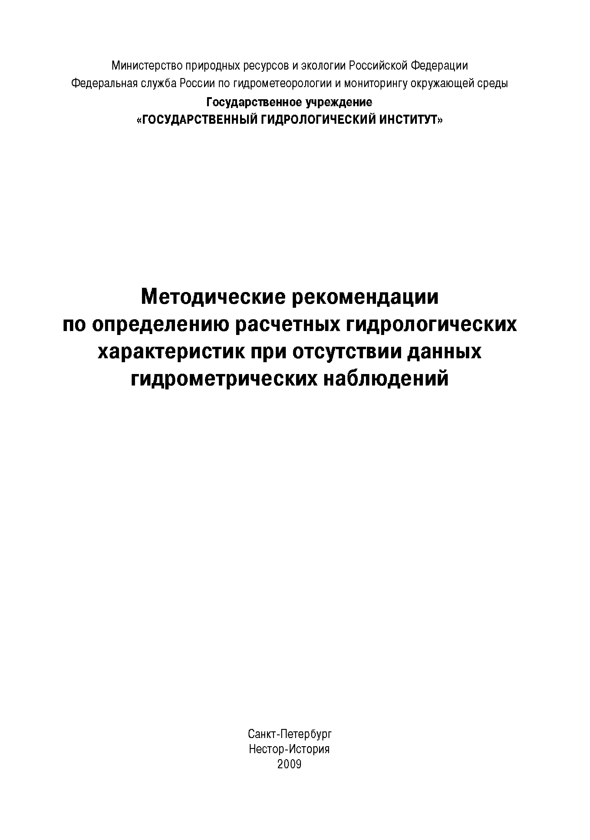 | Название рус.: | Методические рекомендации по определению расчетных гидрологических характеристик при отсутствии данных гидрометрических наблюдений |